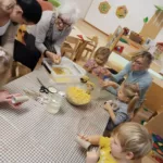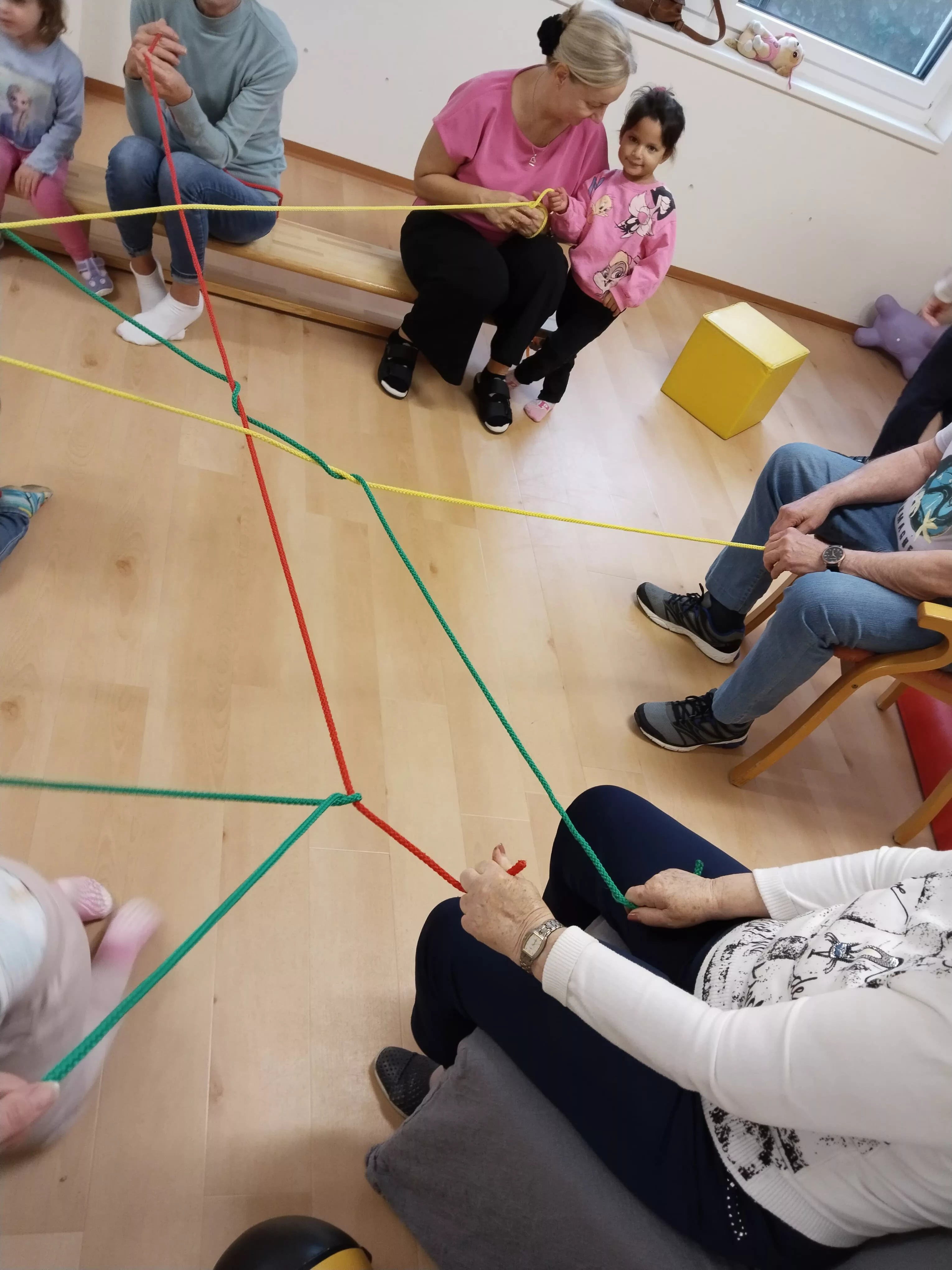 Die Kinder der Kindertagesstätte Abracadabra und die Bewohner und Bewohnerinnen des „Wie daham…“ Generationenparks Welzenegg verbrachten heute einen lustigen Vormittag in der Kita.