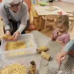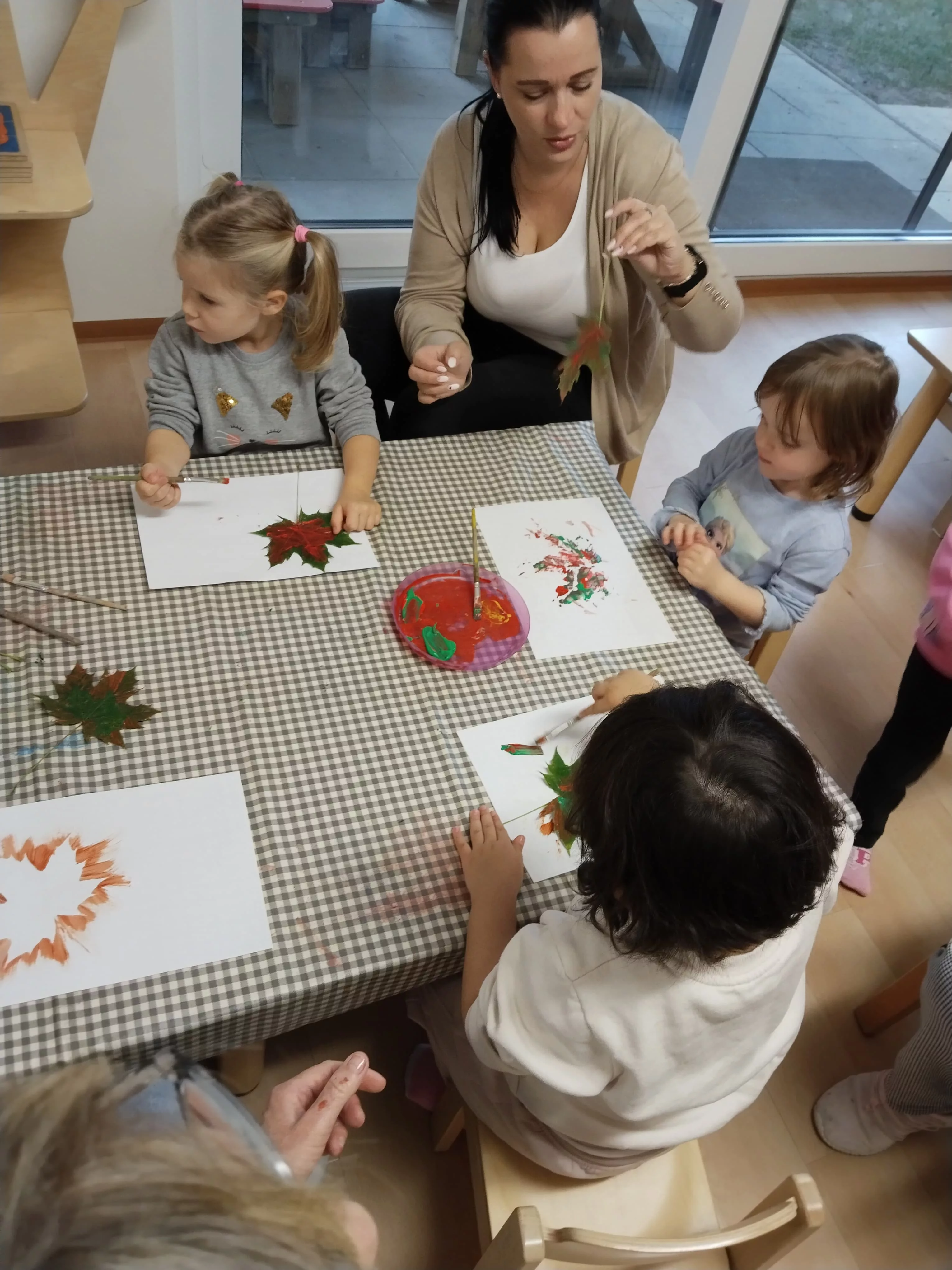Heute wurden wir ganz lieb mit dem Willkommens-Lied begrüßt. Danach haben uns die Kinder die wunderschönen Laternen für das Laternenfest gezeigt. Es wurde herbstlich gebastelt und mit den Bällen gespielt.