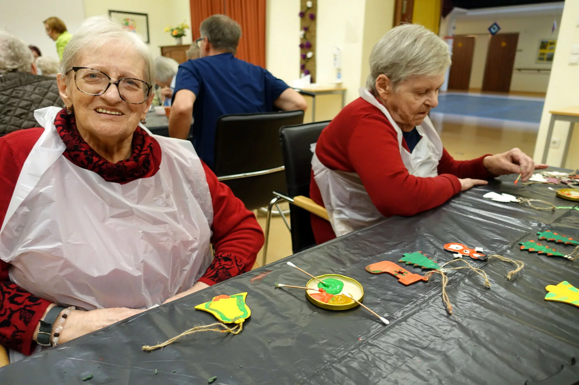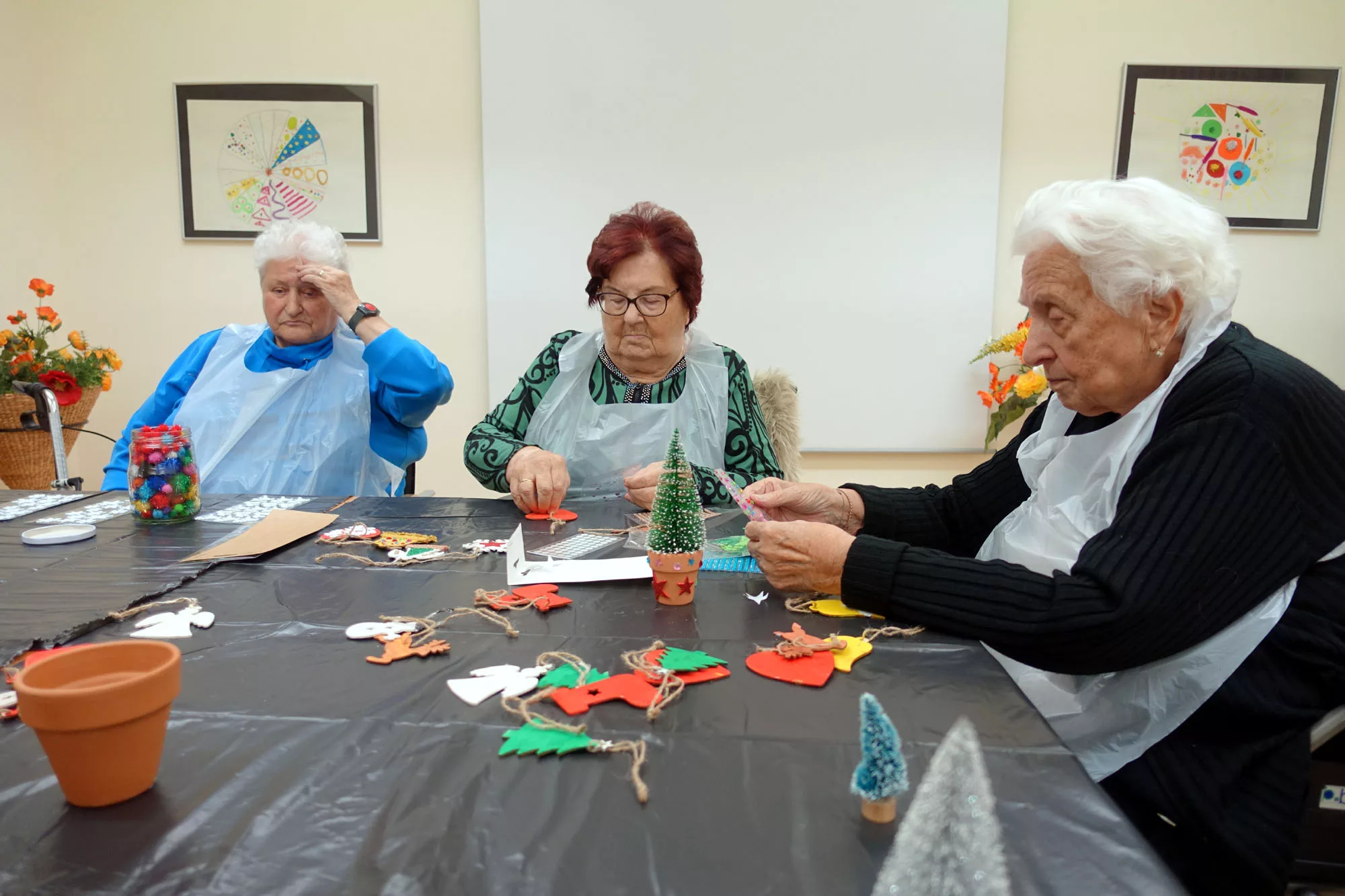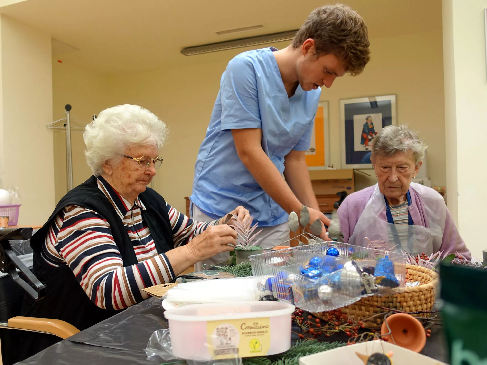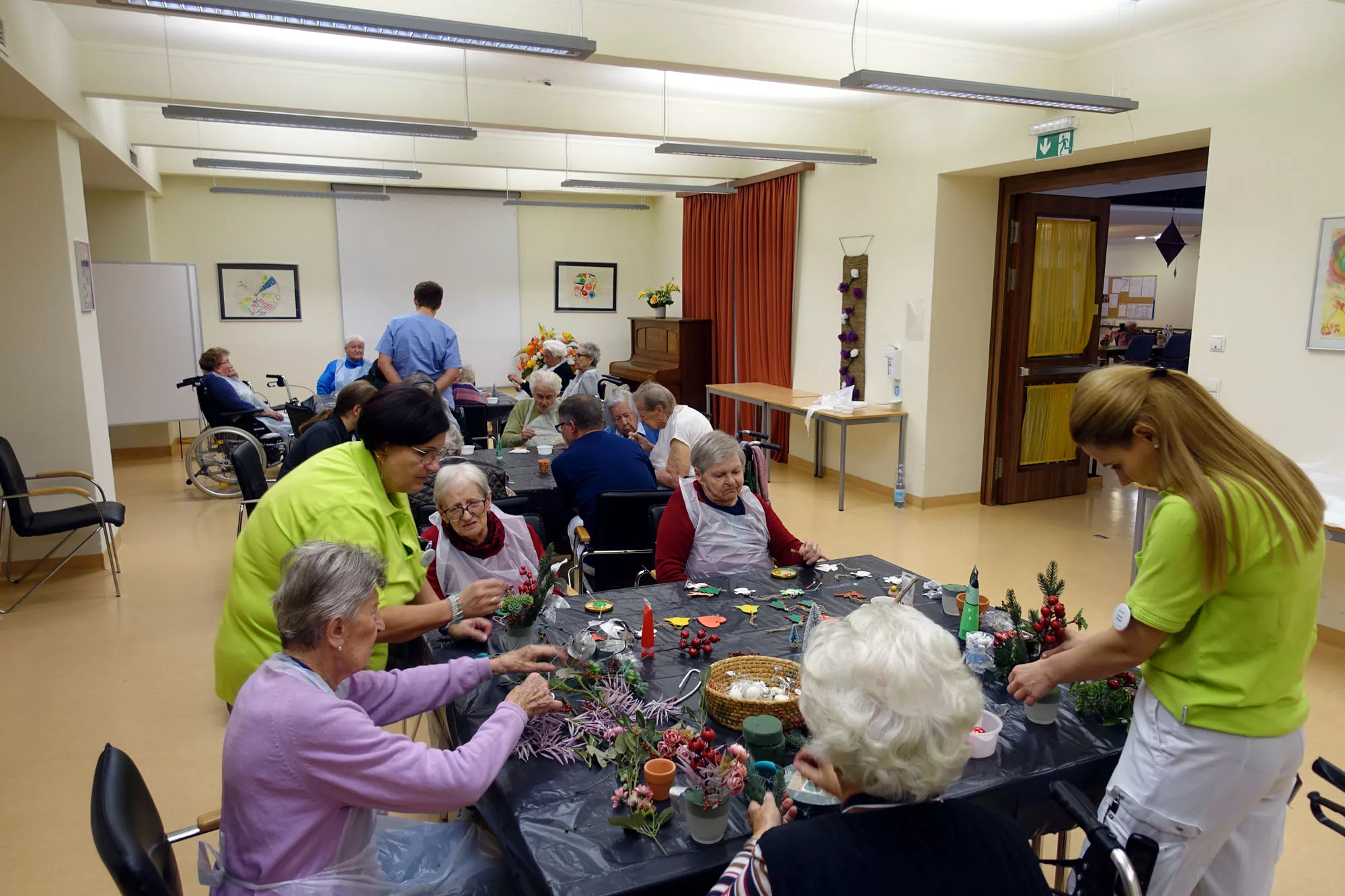Basteln für den Adventmarkt Die Vorbereitungen für den nahenden Adventmarkt laufen auf Hochtouren. Mit Eifer und Geschick haben die Bewohner heute hübsche kleine Kunstwerke hergestellt, um sie am Adventmarkt den Besuchern zum Kauf anzubieten.