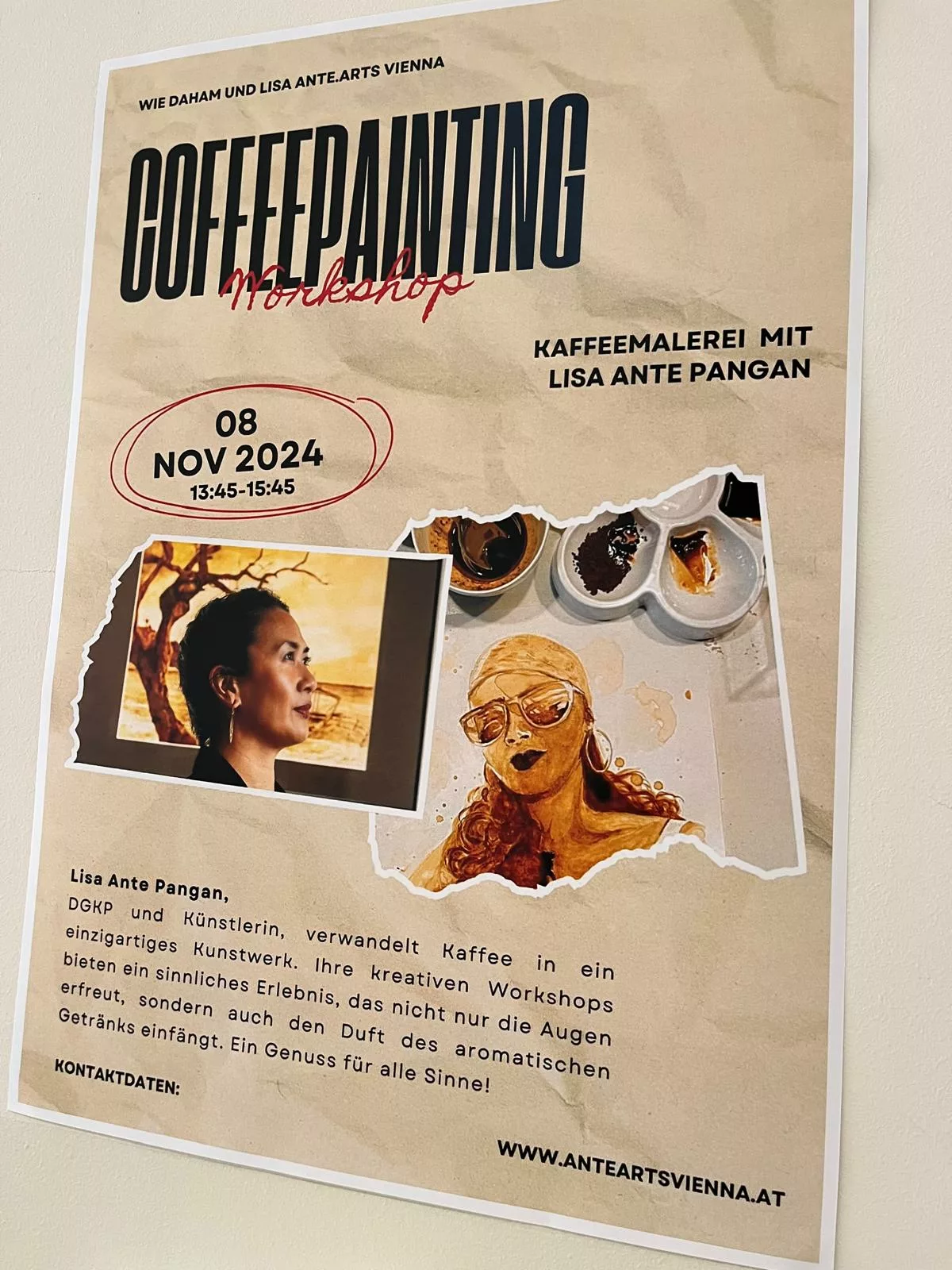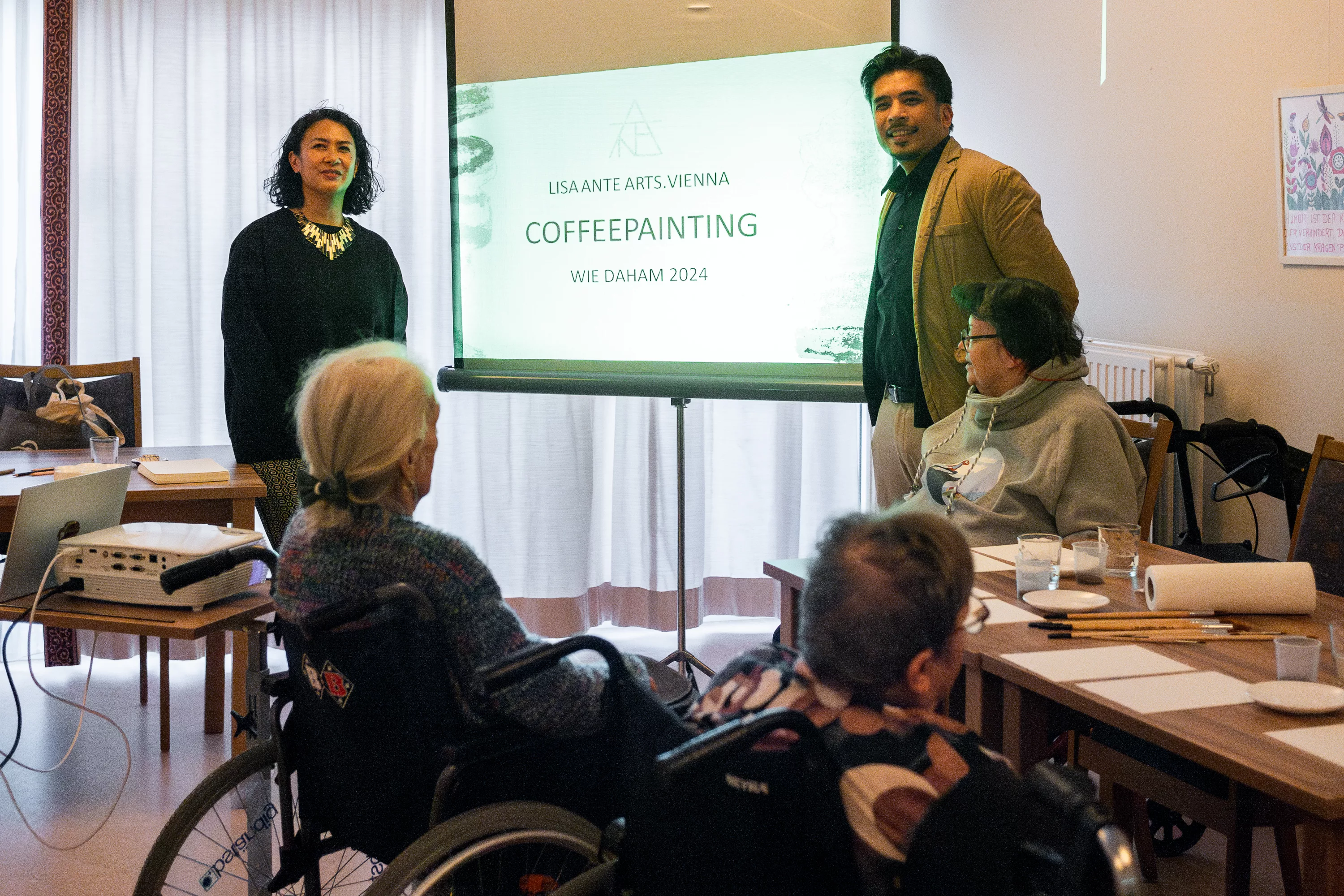 Am Freitag, den 8. November, fand im Generationendorf ein ganz besonderes Kaffeekränzchen statt – ein Kreativworkshop der etwas anderen Art. Die Künstlerin Lisa Ante lud die BewohnerInnen zu einer Einführung in die faszinierende Technik der Kaffeemalerei ein und gab Einblicke in die Geschichte des Kaffees als Genussmittel auf den Philippinen und in Österreich.