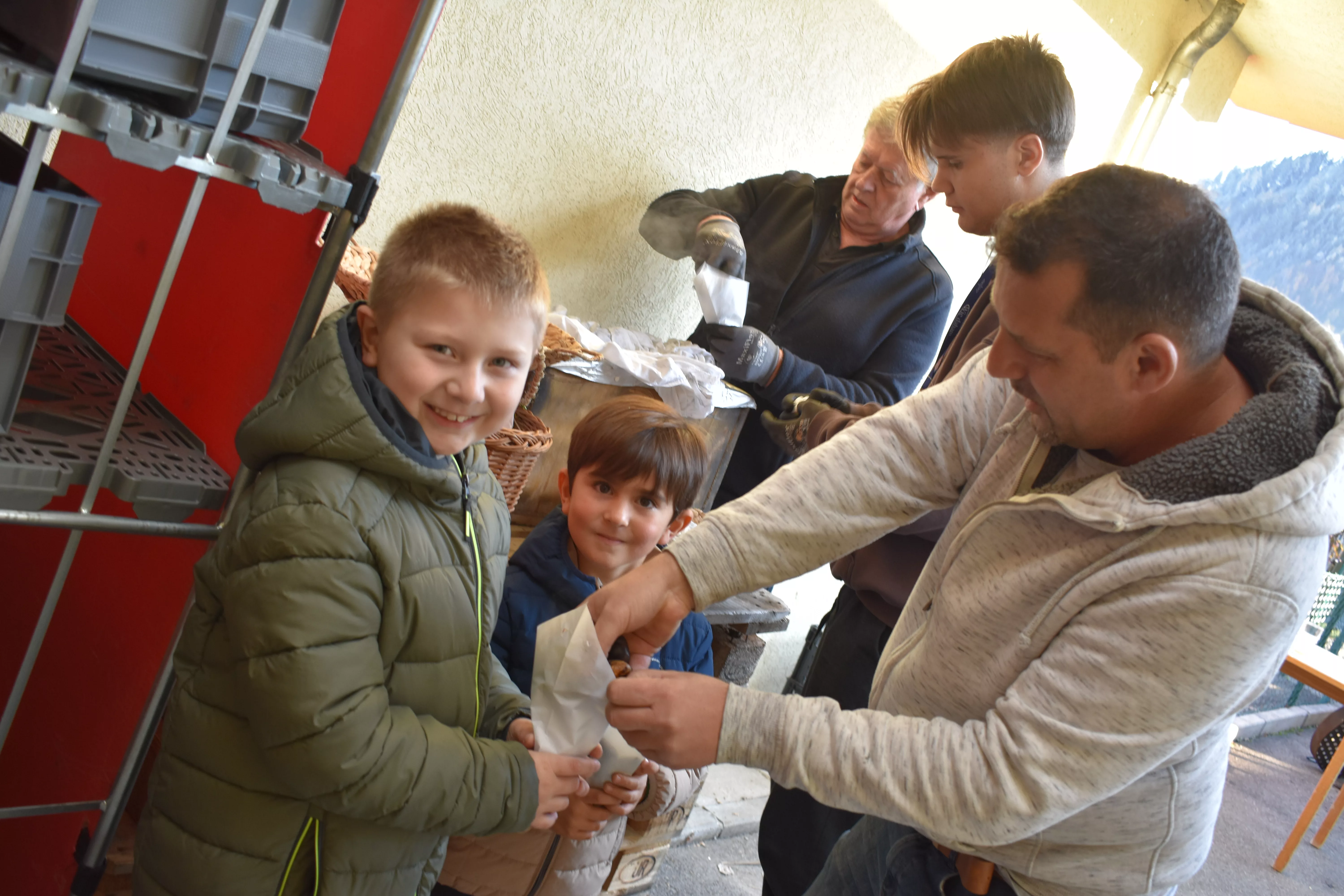 Danach zauberte uns Safet unser langjähriger Kastanienbrater wieder ein hervorragendes Ergebnis in die Papiertüten und Kastanienduft ins ganze Haus. Dazu wurde Glühwein und Punsch gereicht.