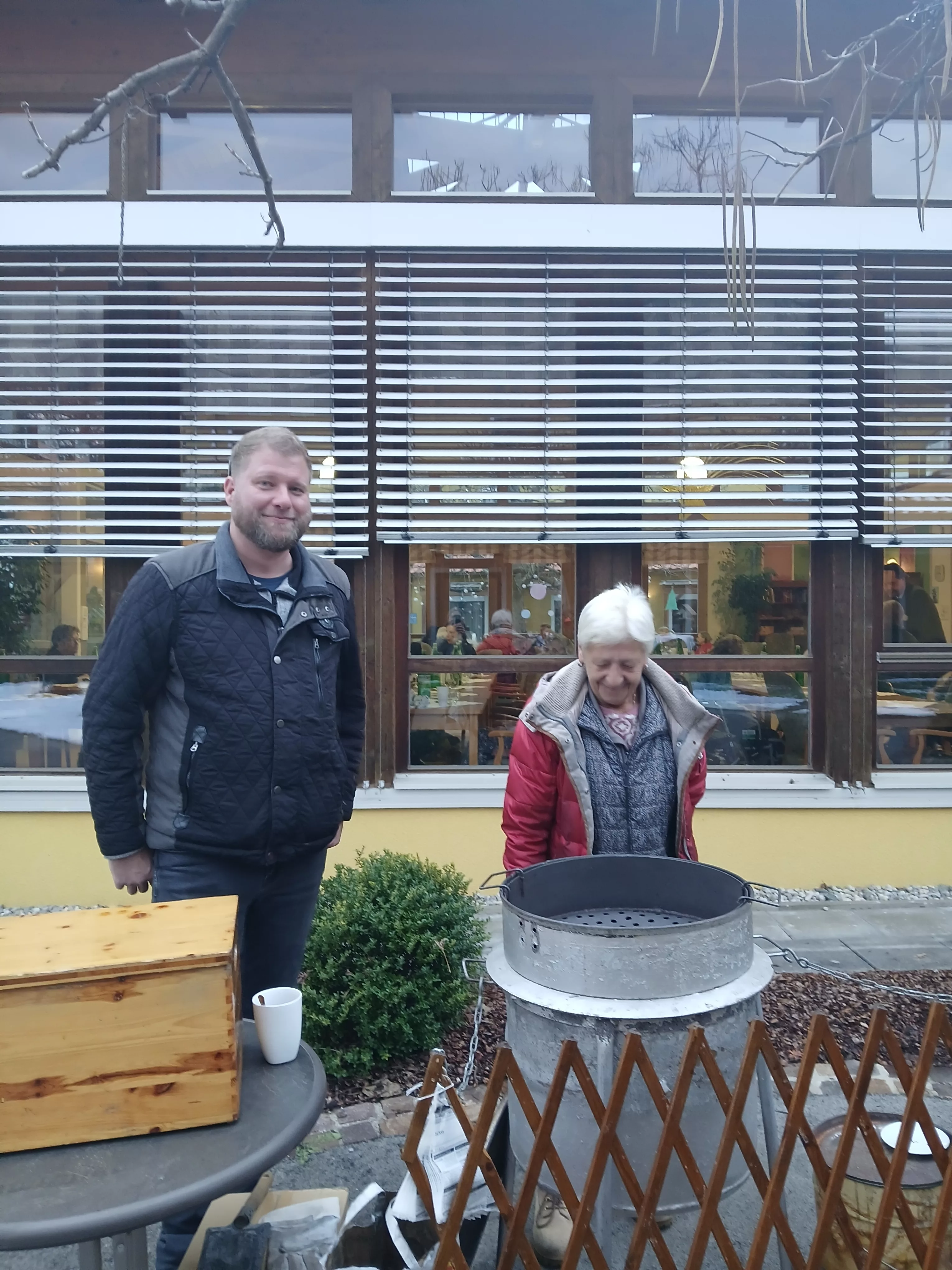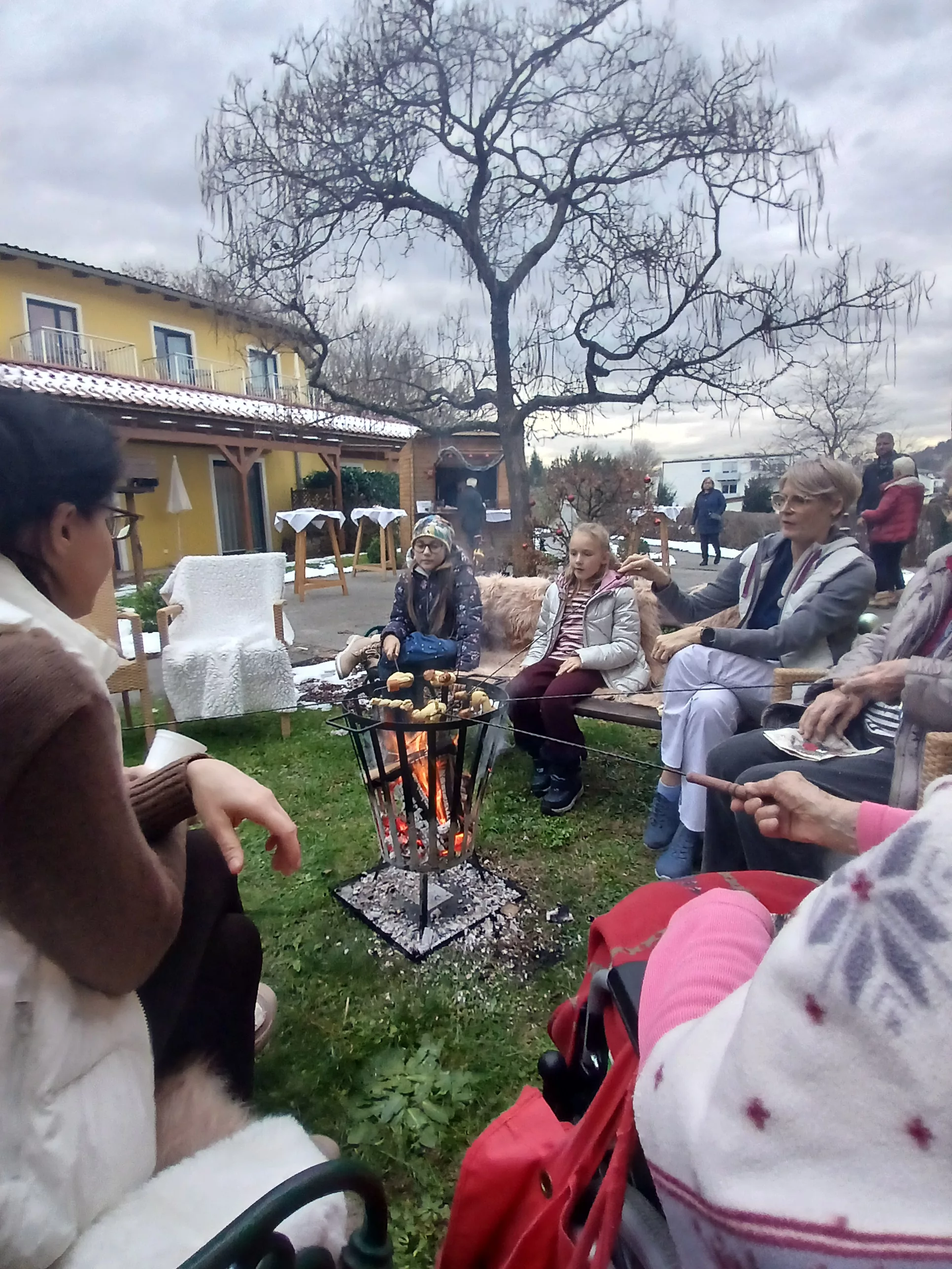 Die BewohnerInnen, Angehörigen und BesucherInnen konnten an unserem liebevoll dekorierten Adventstand stöbern, selbstgemachte Geschenke erwerben und sich bei Würstchen und Stockbrot am Lagerfeuer aufwärmen. Besonders viel Freude bereitete das gemeinsame Grillen, bei dem Erinnerungen ausgetauscht und herzhaft gelacht wurde.