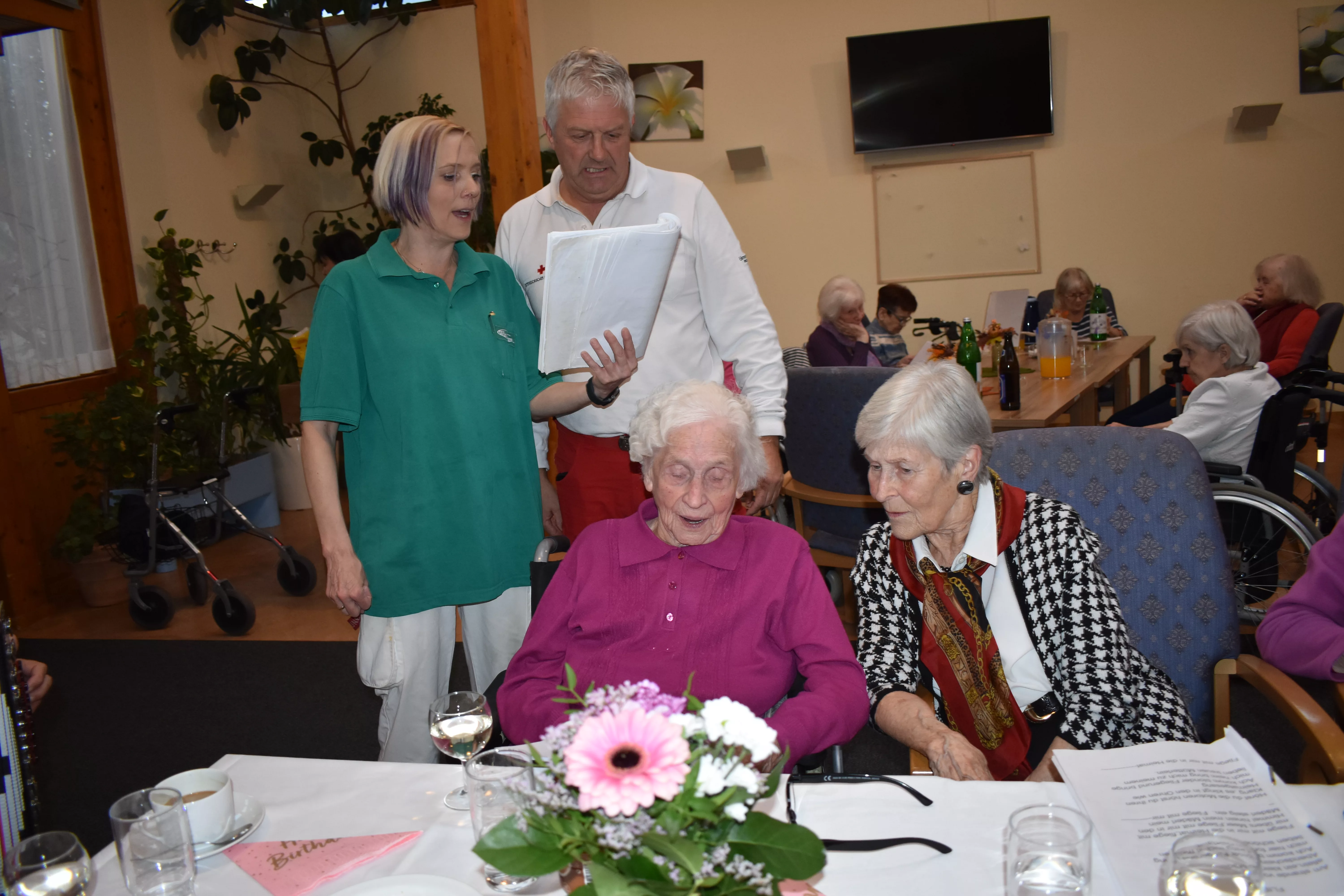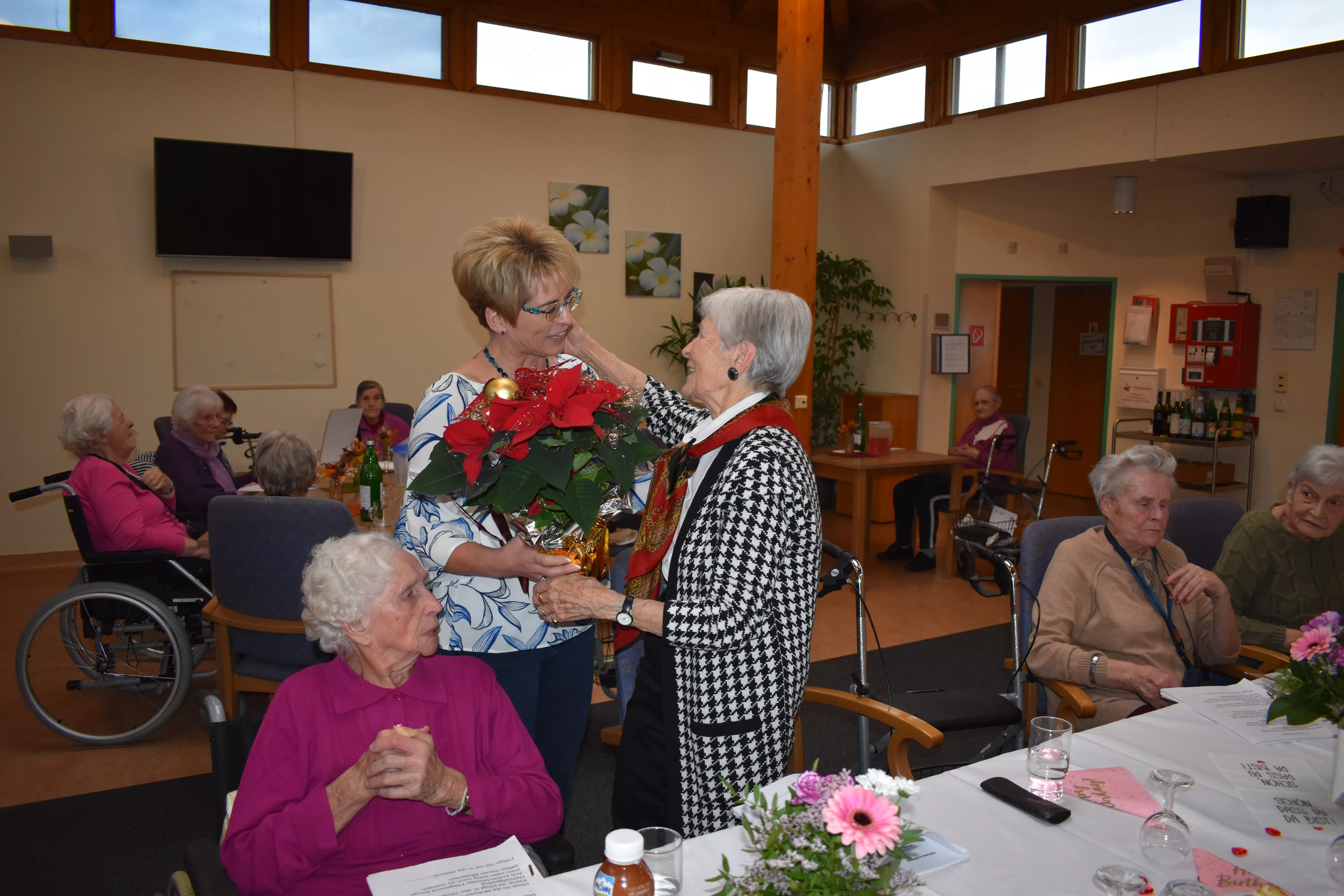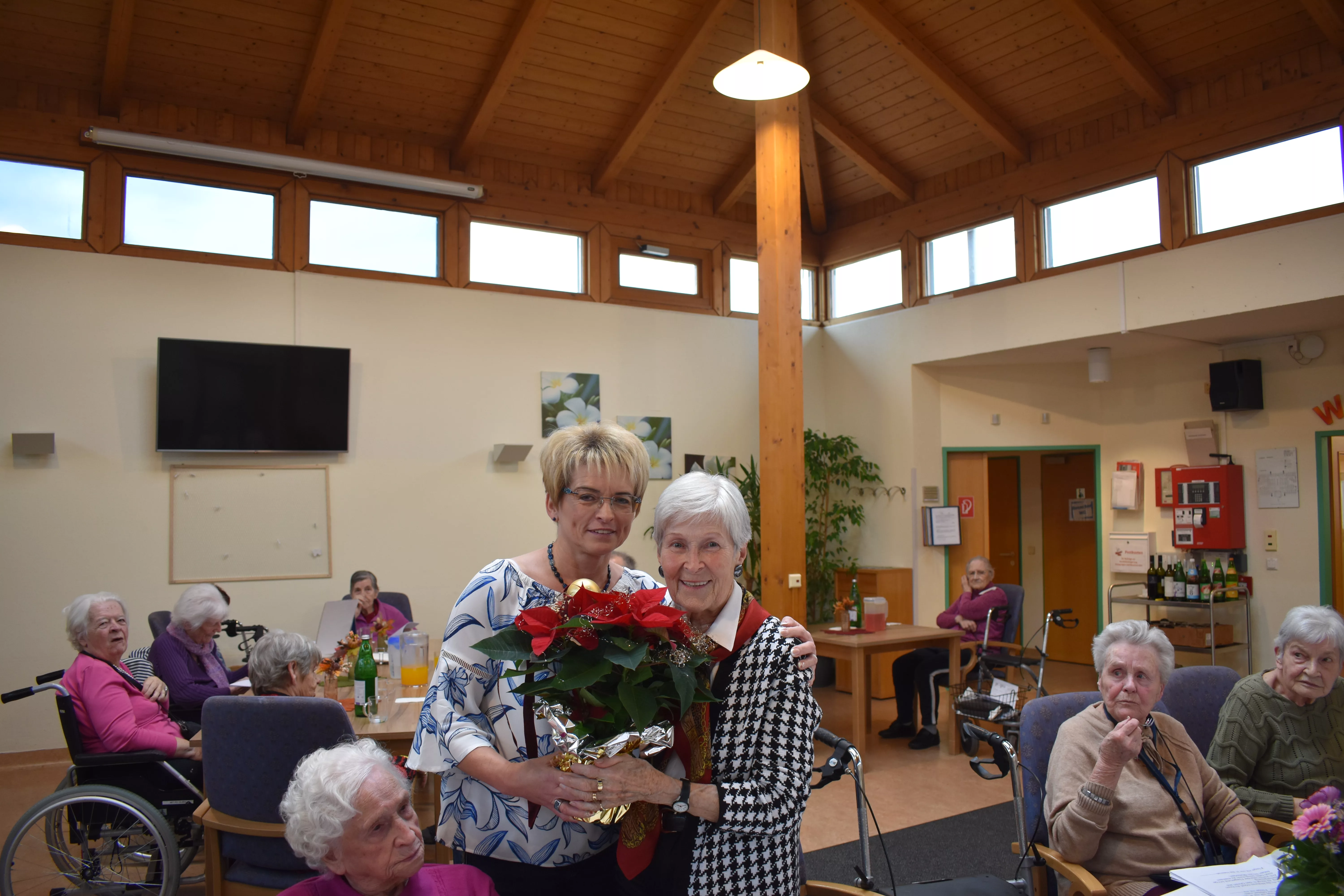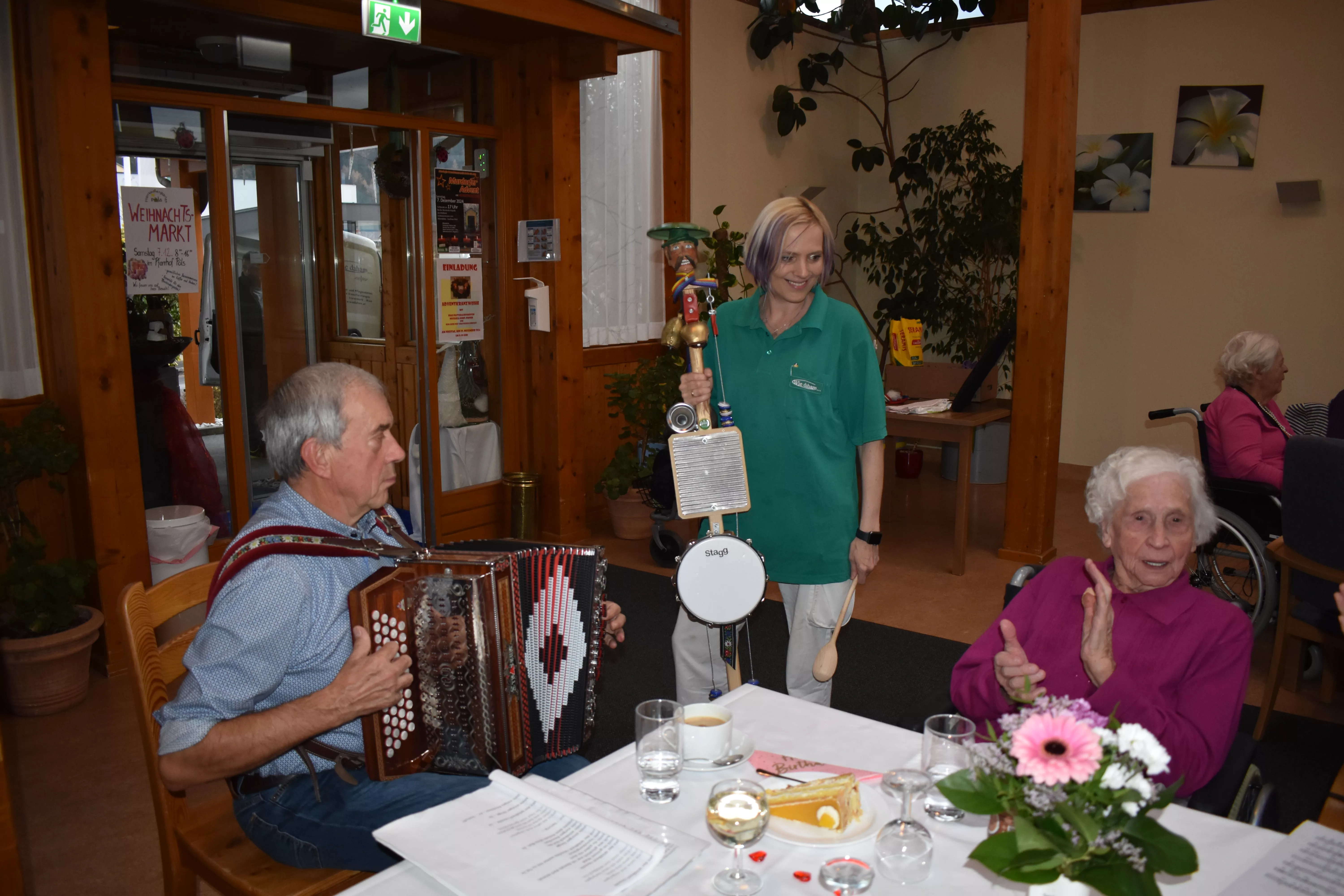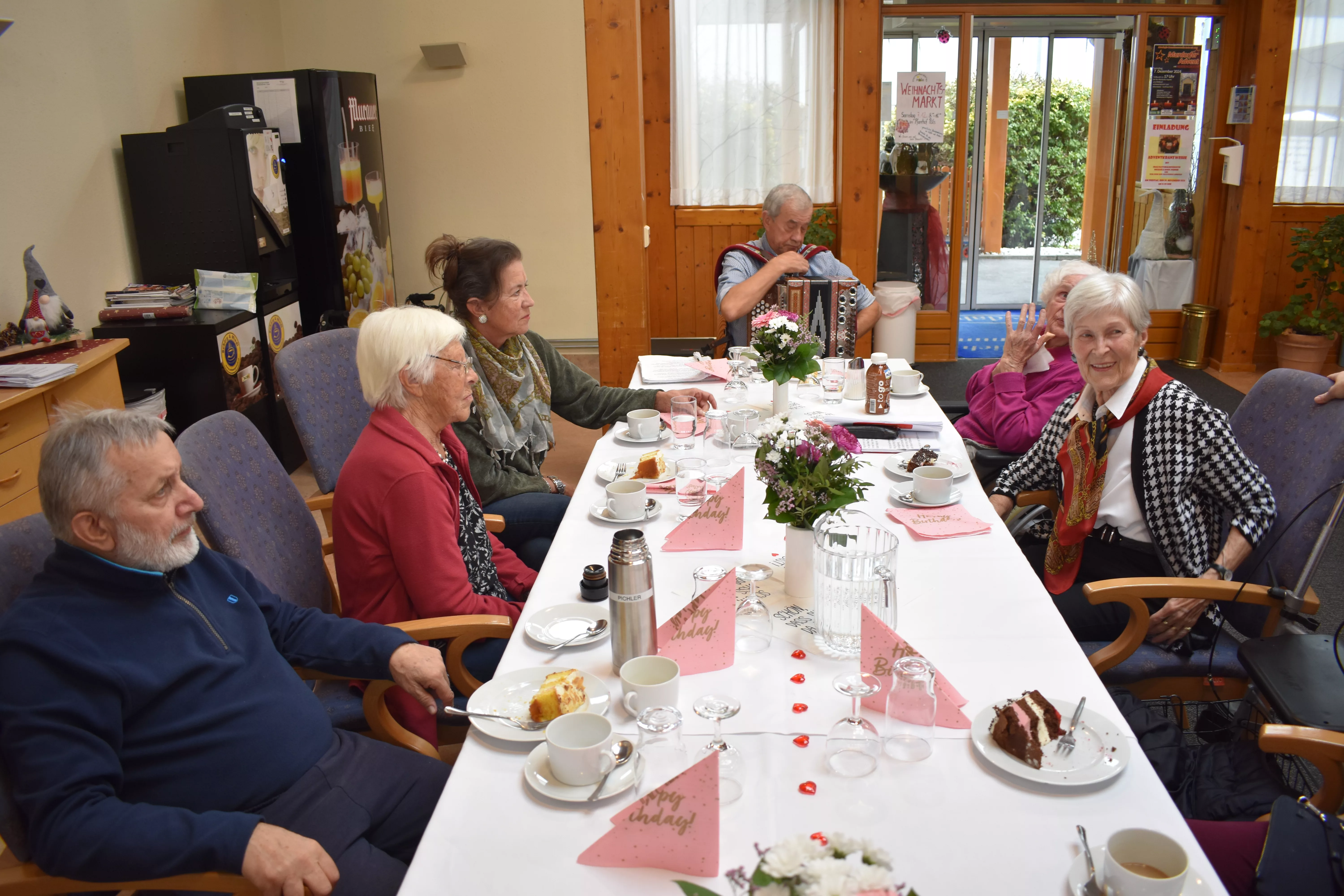 Am 26. November 2024 haben wir zur Monatsgeburtstagsfeier geladen. Frau Abersteiner Katharina, die bereits seit fast 19 Jahren Bewohnerin unseres Hauses ist, konnte in bester Gesundheit auf 98 Lebensjahre zurückblicken. Herr Sunitsch Josef spielte zu Ehren von Frau Abersteiner, von allen Kathi genannt ein paar Ihrer Lieblingsstücke auf seiner Harmonika und hat auch allen anderen Geburtstagskindern musikalisch gratuliert. Als Gaumenschmaus wurde eine Himbeermousse- und eine Pfirsichtopfentorte mit frisch gebrühtem Kaffee serviert. Mit einem Gläschen Wein oder Sekt haben wir danach auf das neue Lebensjahr angestoßen. Auch Frau Evelyne Saurugg, schon viele Jahre unser ehrenamtlicher Besuchsdienst wurde zu ihrem Geburtstag von uns eingeladen und bekam einen Blumengruß als Dankeschön für ihre wertvolle Arbeit überreicht. Das gesamte Wie daham… Team gratuliert nochmals auf das Allerherzlichste.
