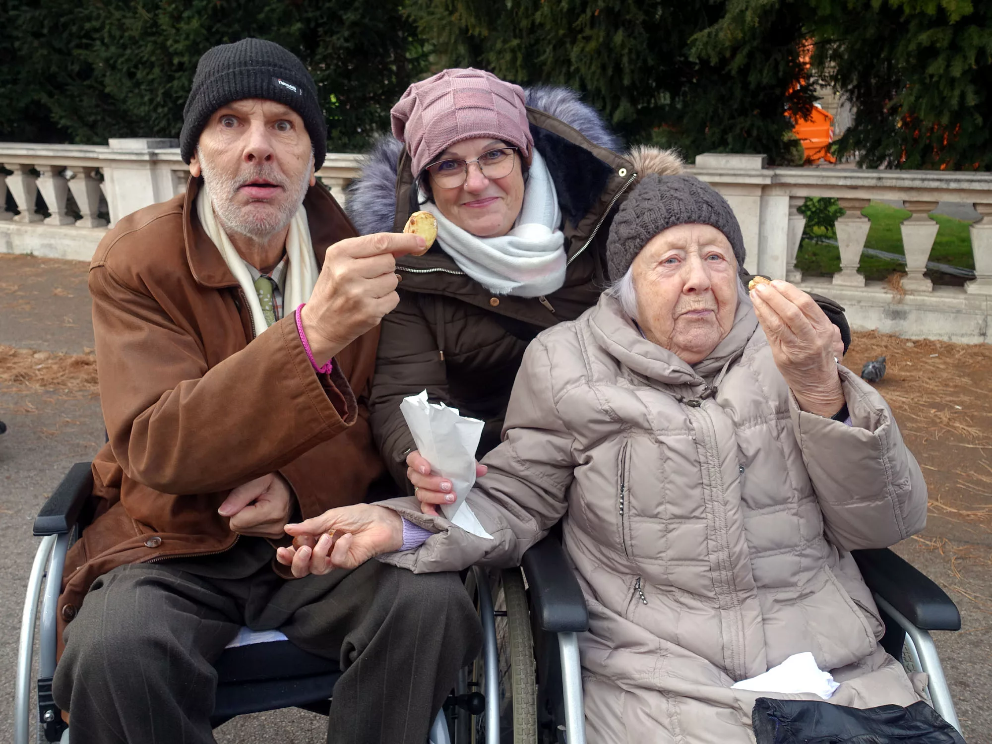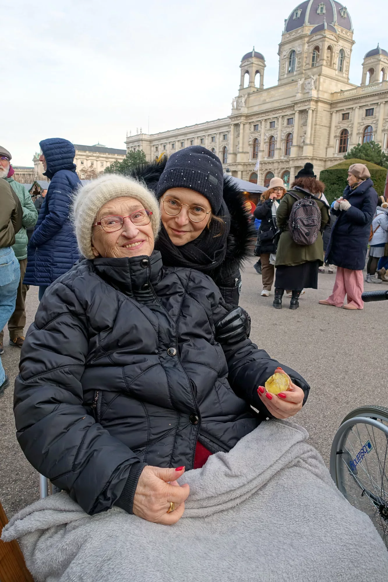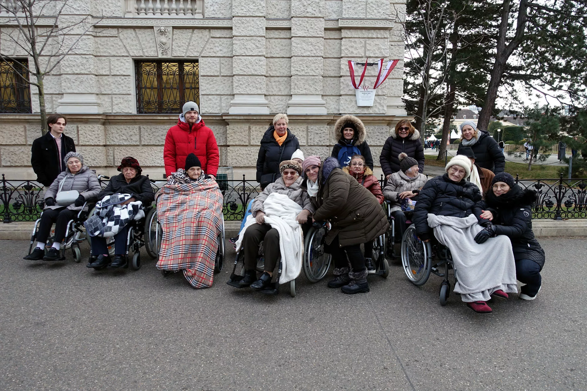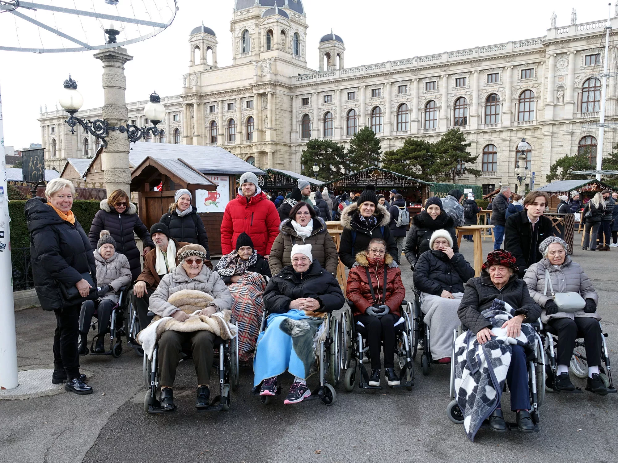 Eingehüllt in warme Kleidung machte sich eine Gruppe Bewohner auf den Weg zum Weihnachtsdorf am Maria-Theresien-Platz. Mit der Straßenbahn war das Ziel rasch erreicht. Nachdem die Senioren das große Angebot an Kunsthandwerken bestaunt haben, stärkten sie sich mit Bratkartoffeln, Punsch oder Glühwein.