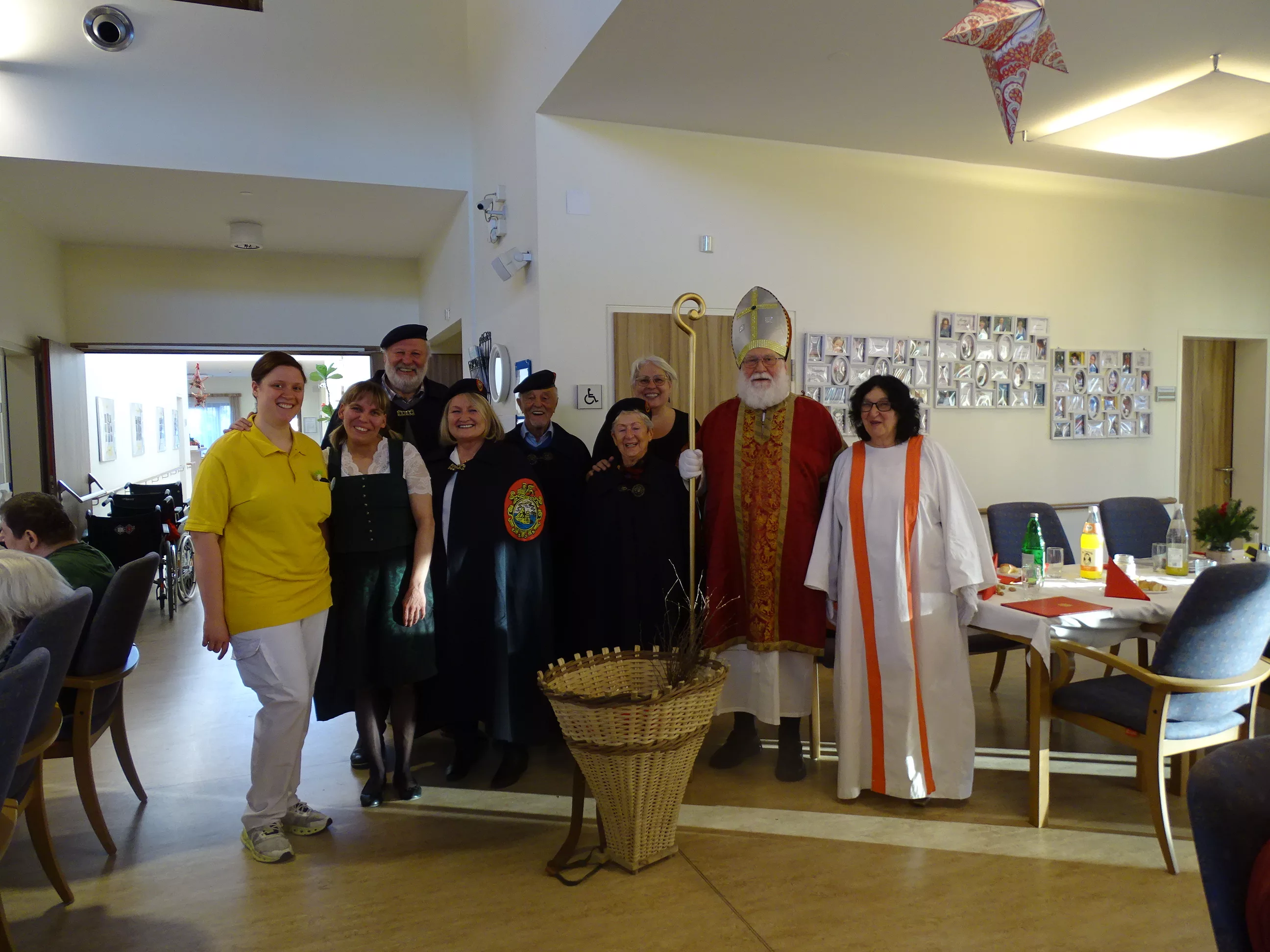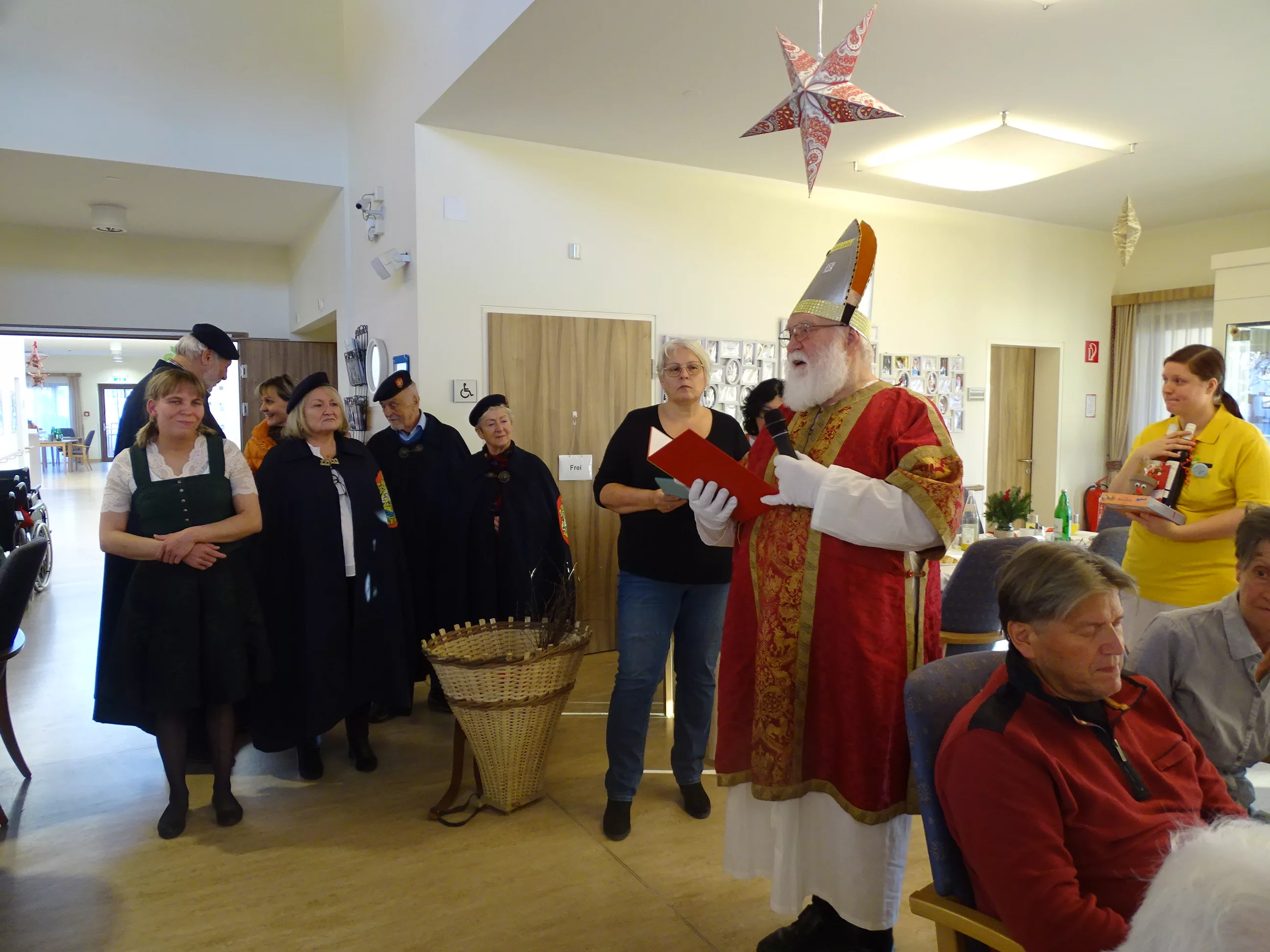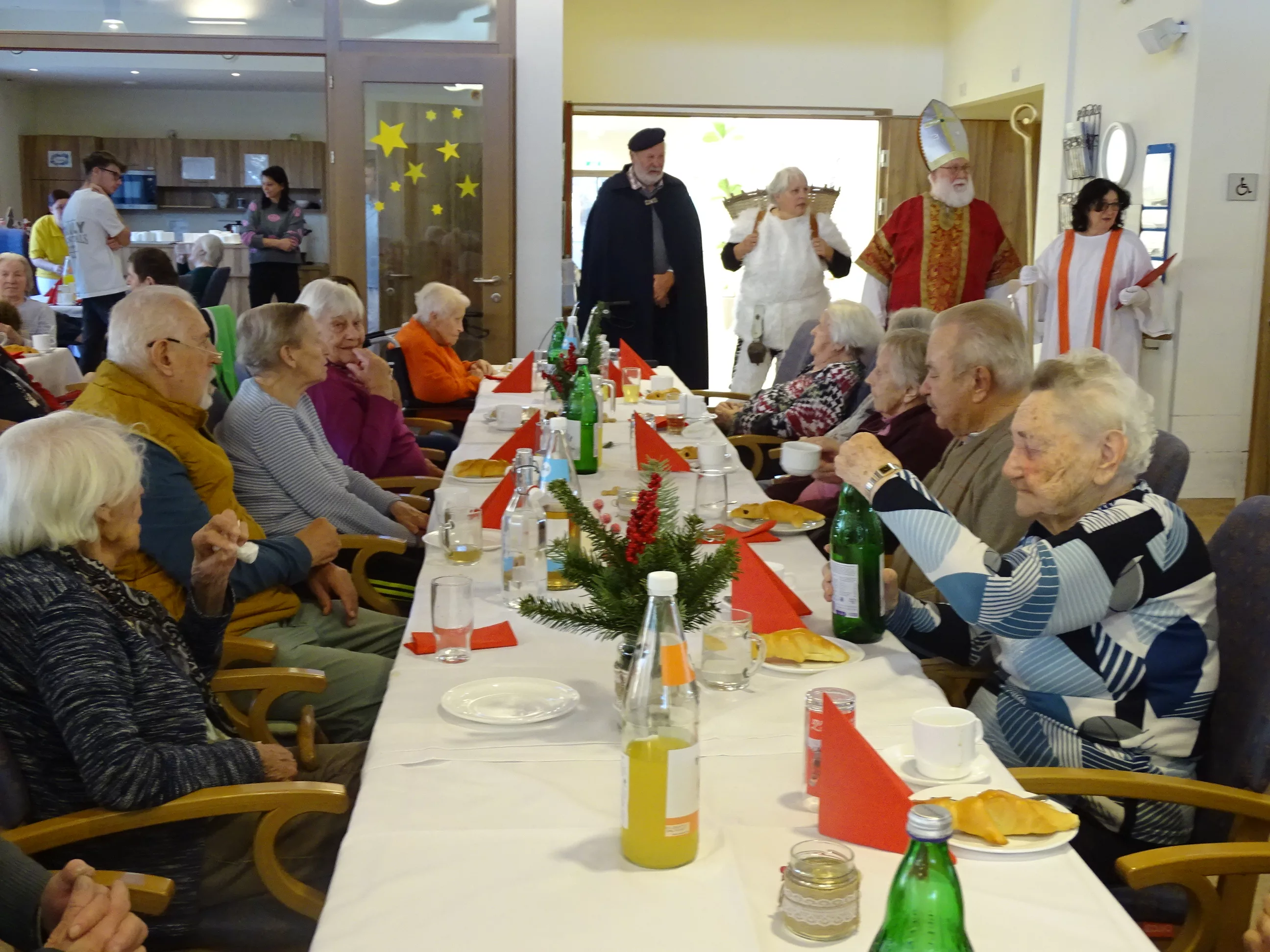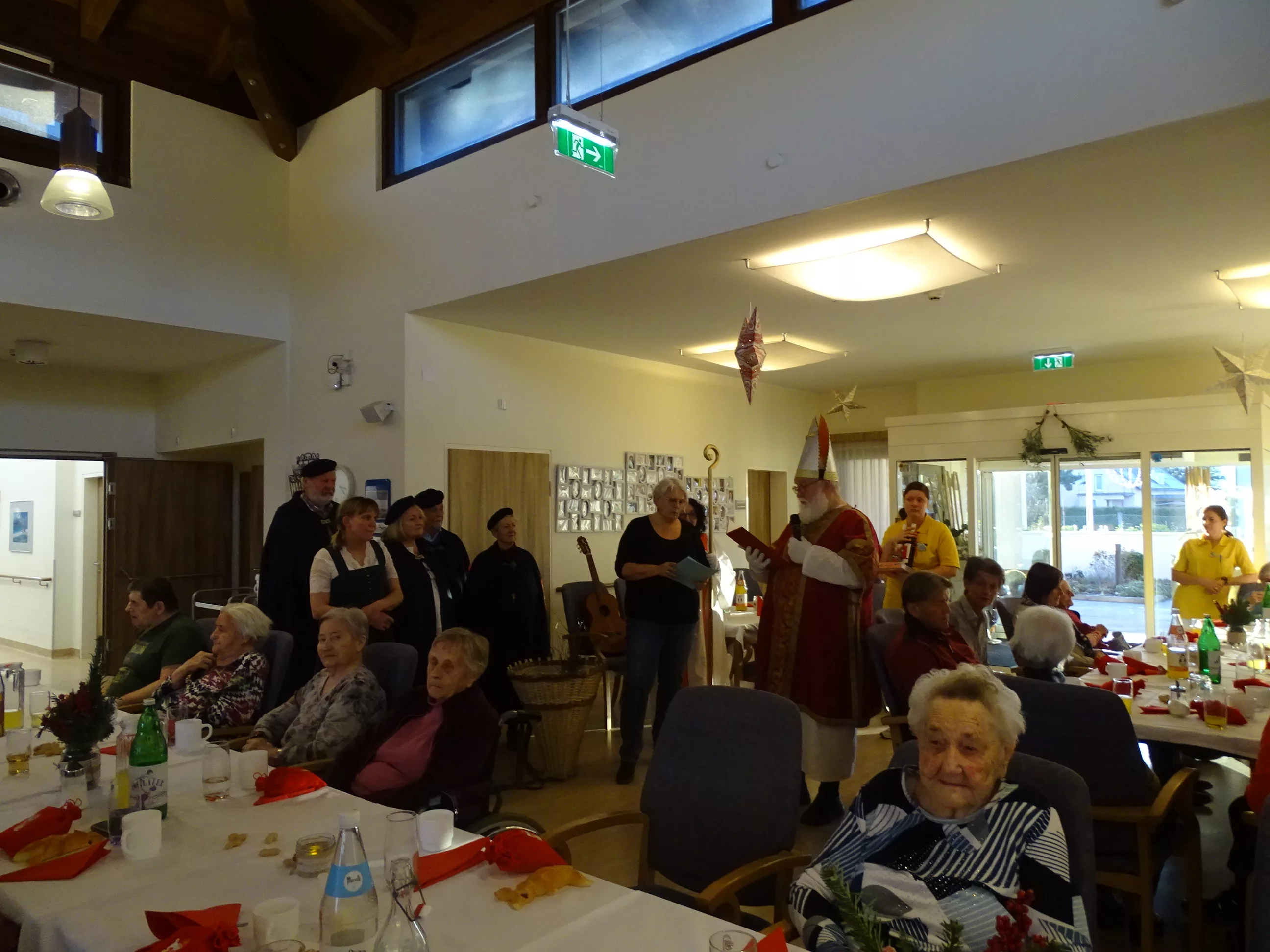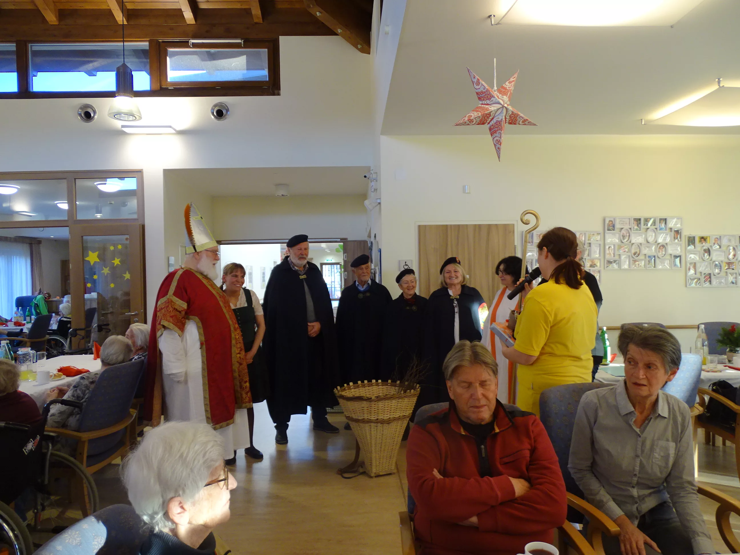 Pünktlich am 05. Dezember bekamen wir hohen Besuch vom Nikolaus mit seinem Engerl, seinem Krampus und den RITTERN VON DELO! Unsere Sabine begleitet mit Ihrer Gitarre den Einzug des Nikolaus, mit wunderschönen Nikolaus- und Weihnachtsliedern umrahmte sie unsere Nikolausfeier! Unsere BewohnerInnen bekamen eine Krampus zur Jause und ein Packerl vom Nikolaus. Den Punsch und den Glühwein ließen wir uns schmecken. Es war ein schöner Nachmittag und die Augen unserer Bewohner strahlten um die Wette!
