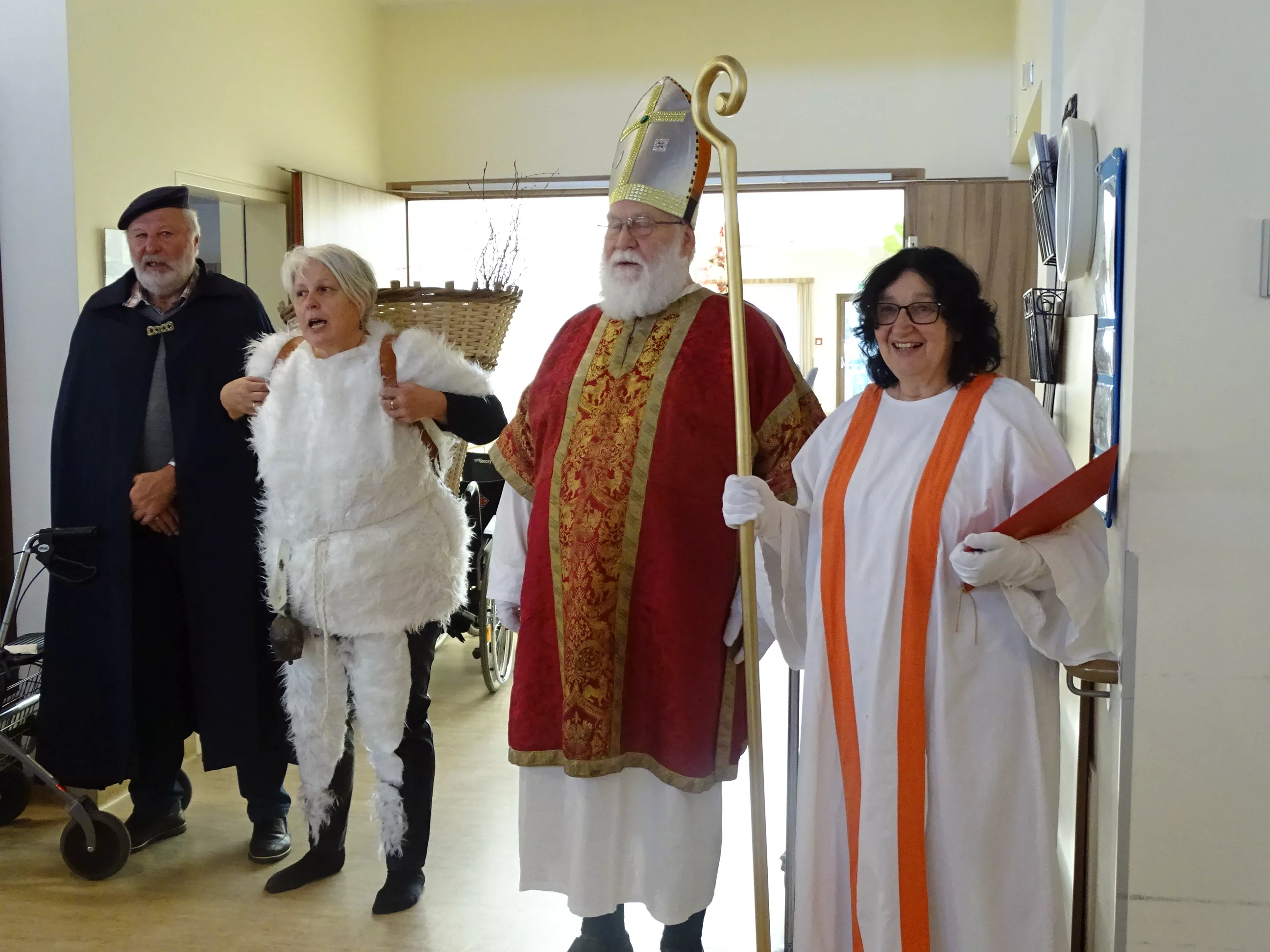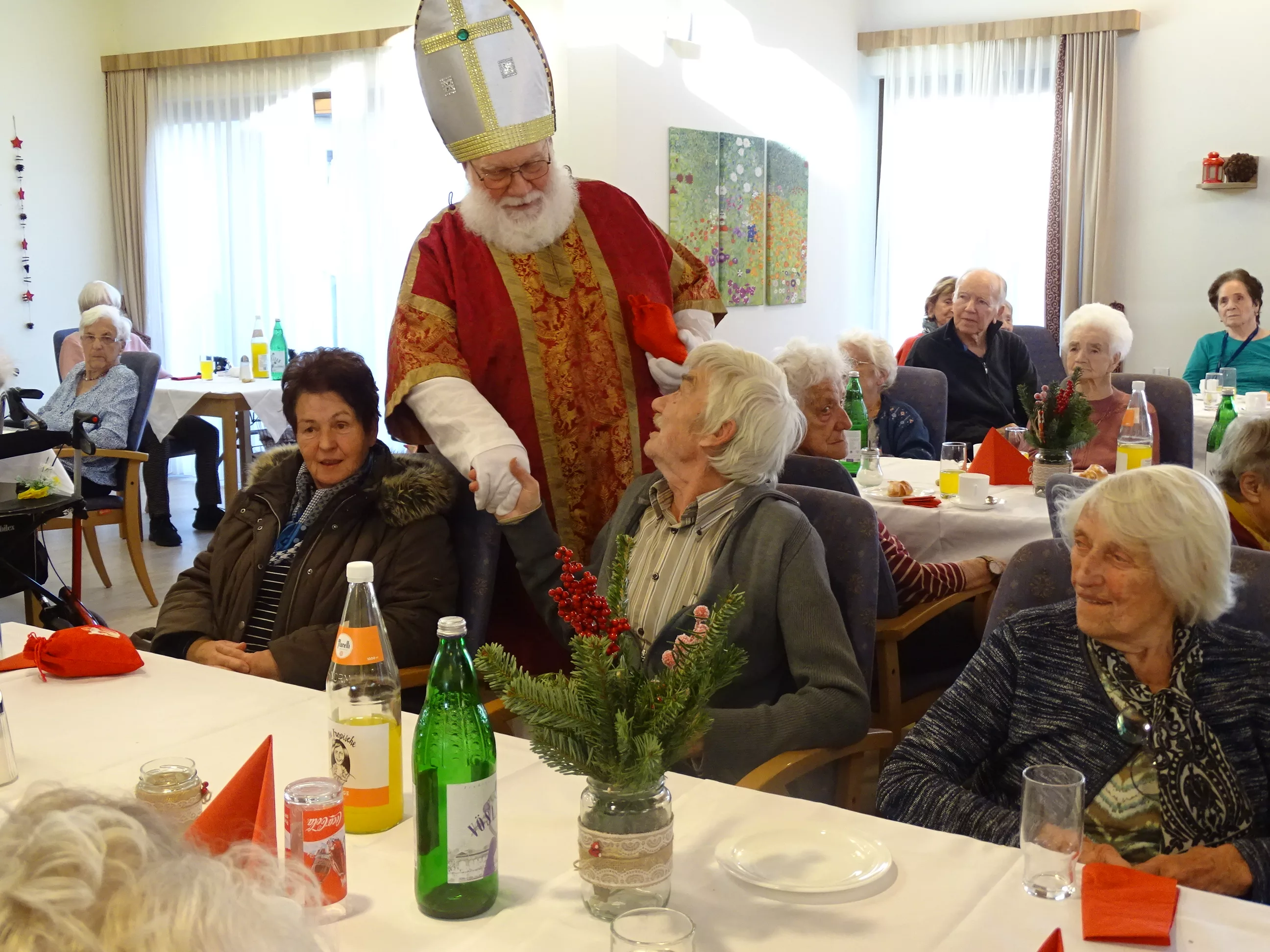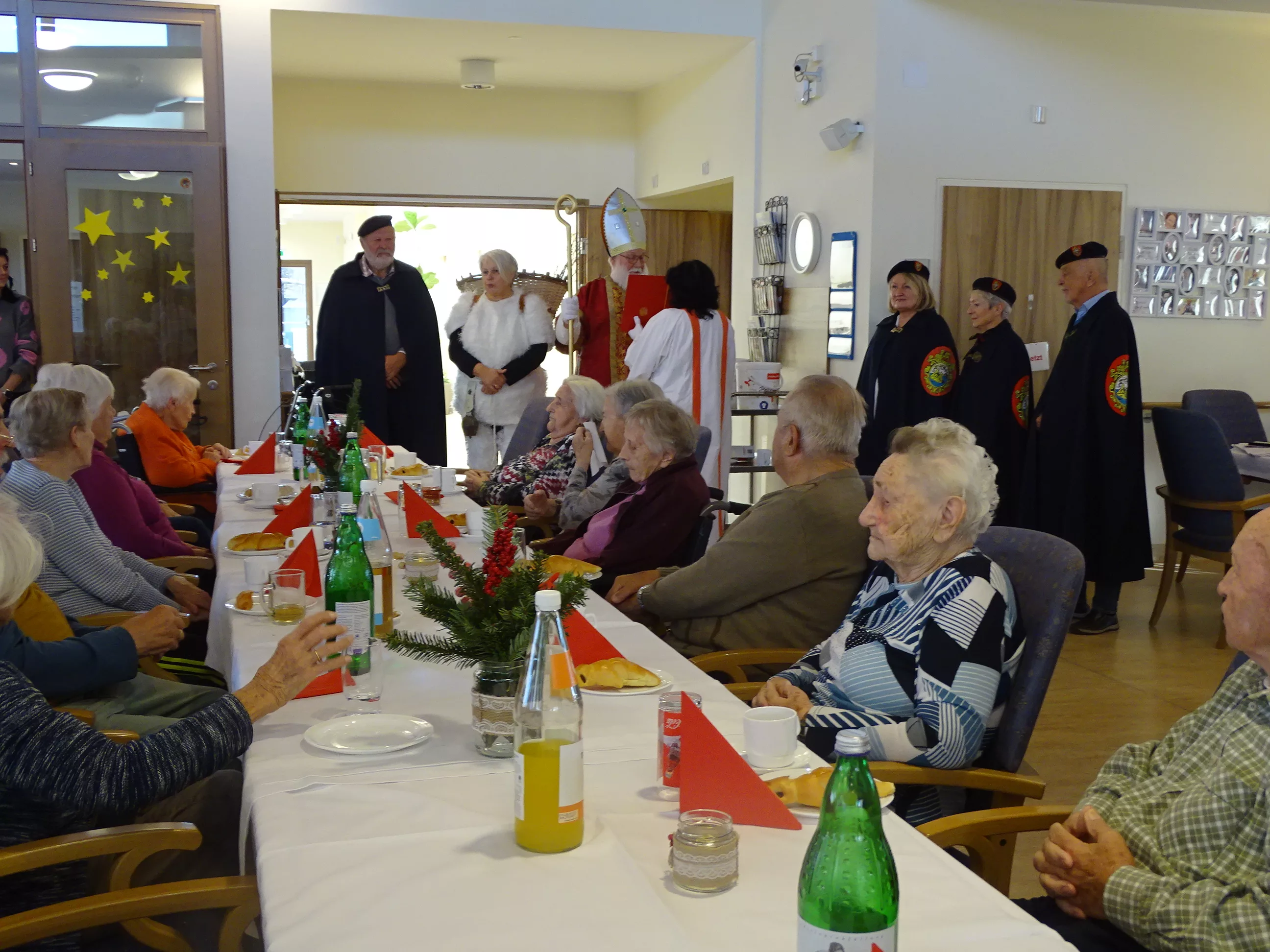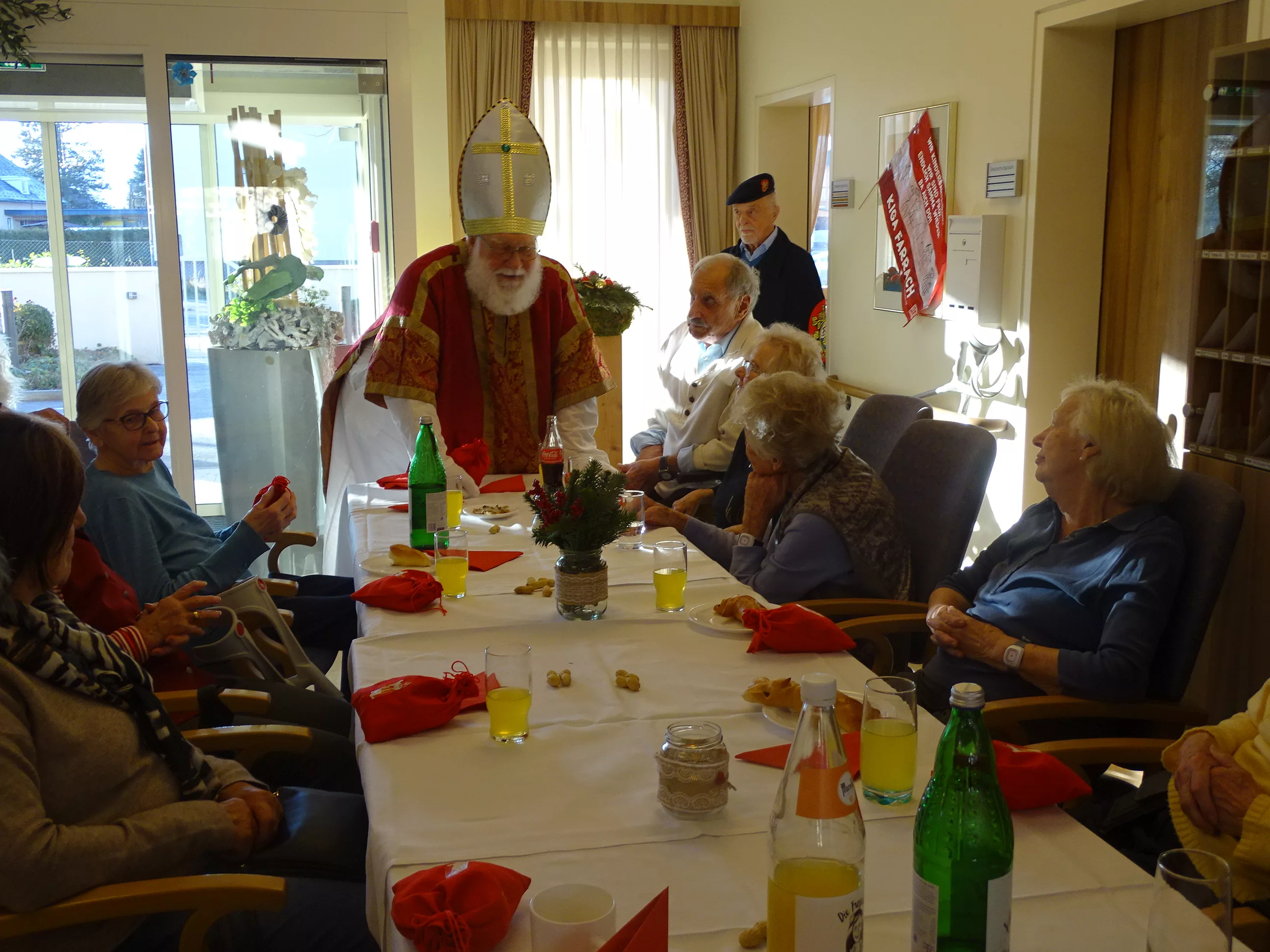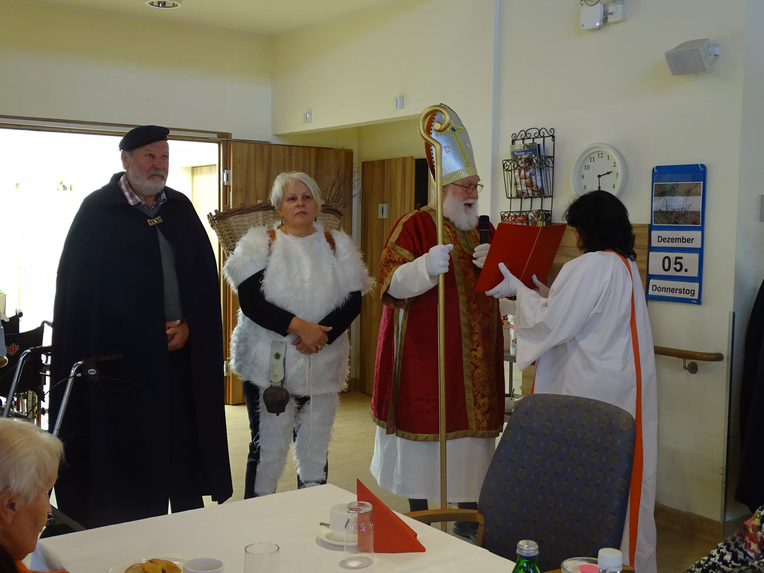 Pünktlich am 05. Dezember bekamen wir hohen Besuch vom Nikolaus mit seinem Engerl, seinem Krampus und den RITTERN VON DELO! Unsere Sabine begleitet mit Ihrer Gitarre den Einzug des Nikolaus, mit wunderschönen Nikolaus- und Weihnachtsliedern umrahmte sie unsere Nikolausfeier! Unsere BewohnerInnen bekamen eine Krampus zur Jause und ein Packerl vom Nikolaus. Den Punsch und den Glühwein ließen wir uns schmecken. Es war ein schöner Nachmittag und die Augen unserer Bewohner strahlten um die Wette!