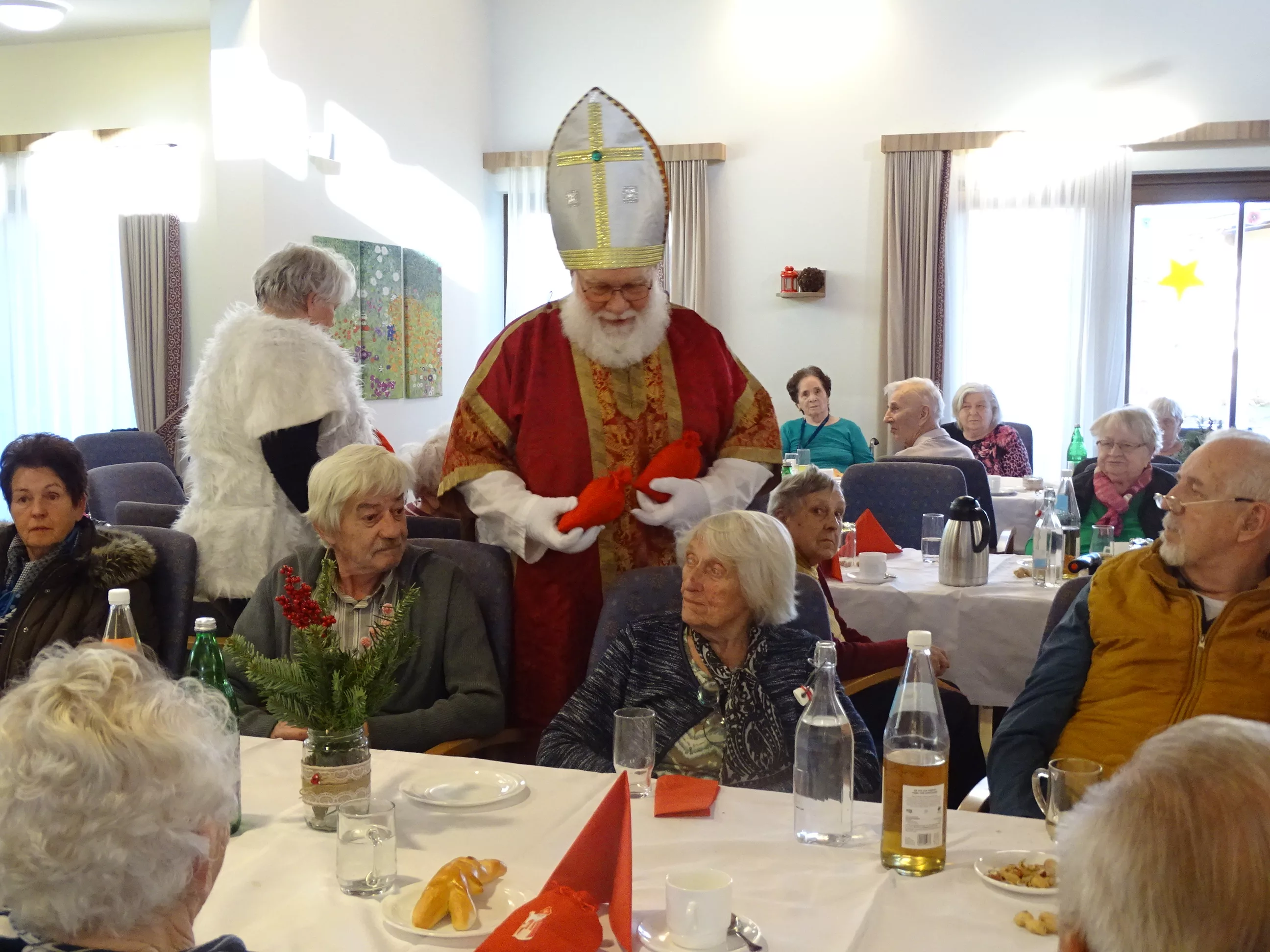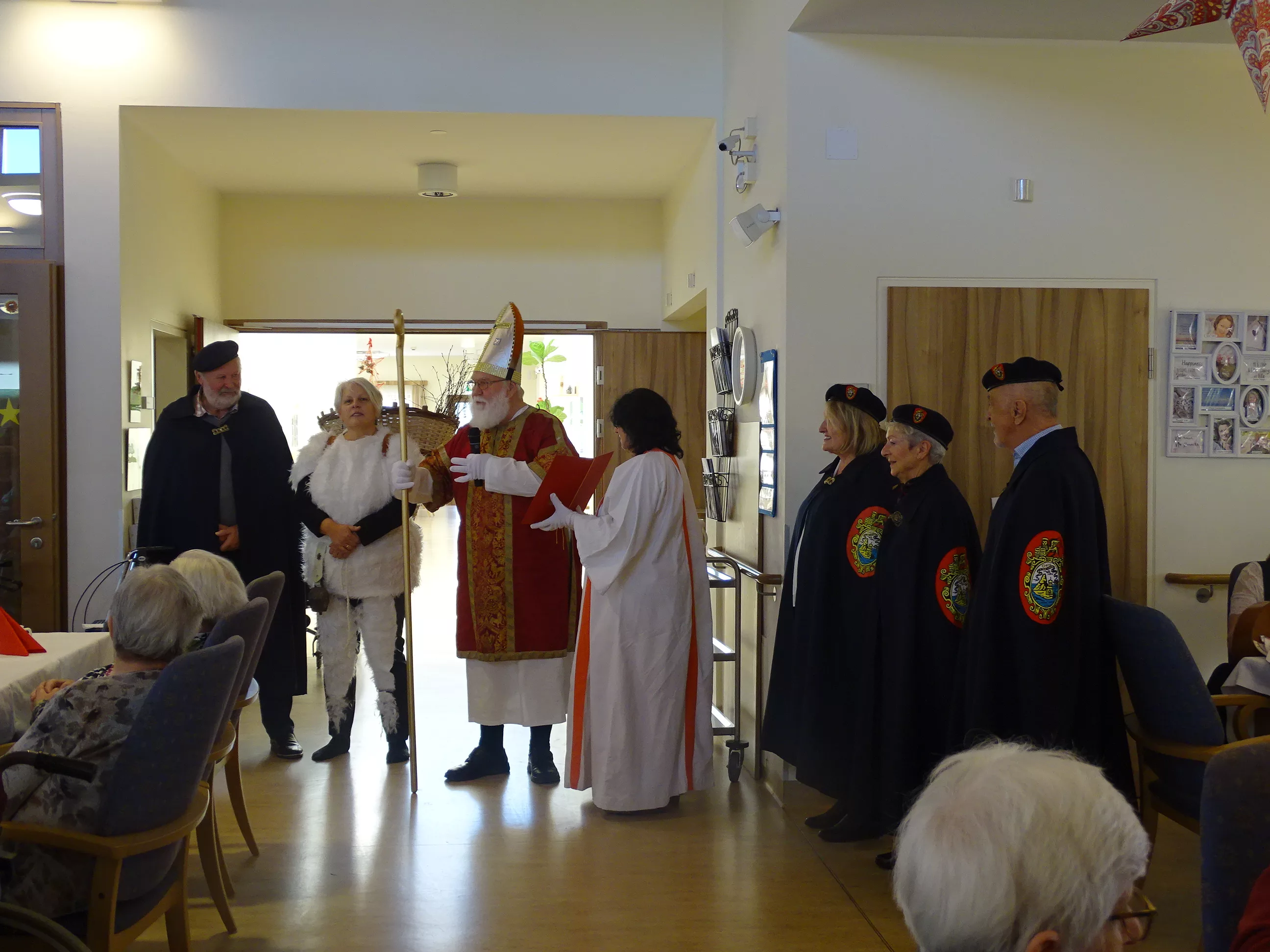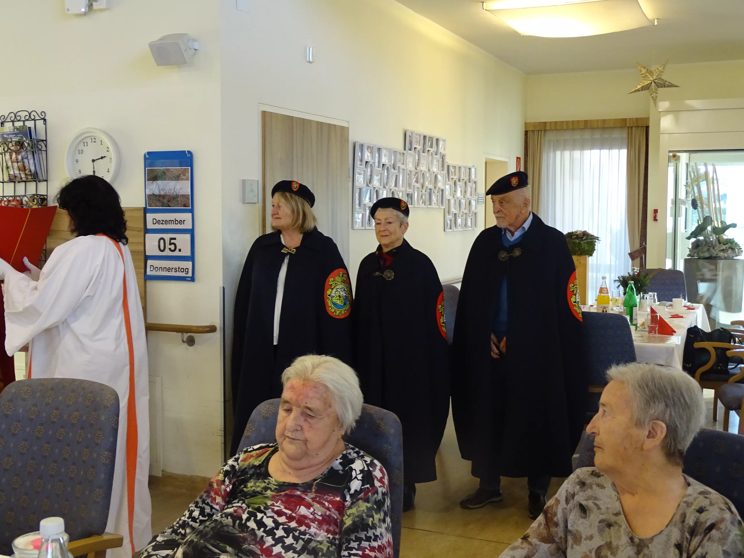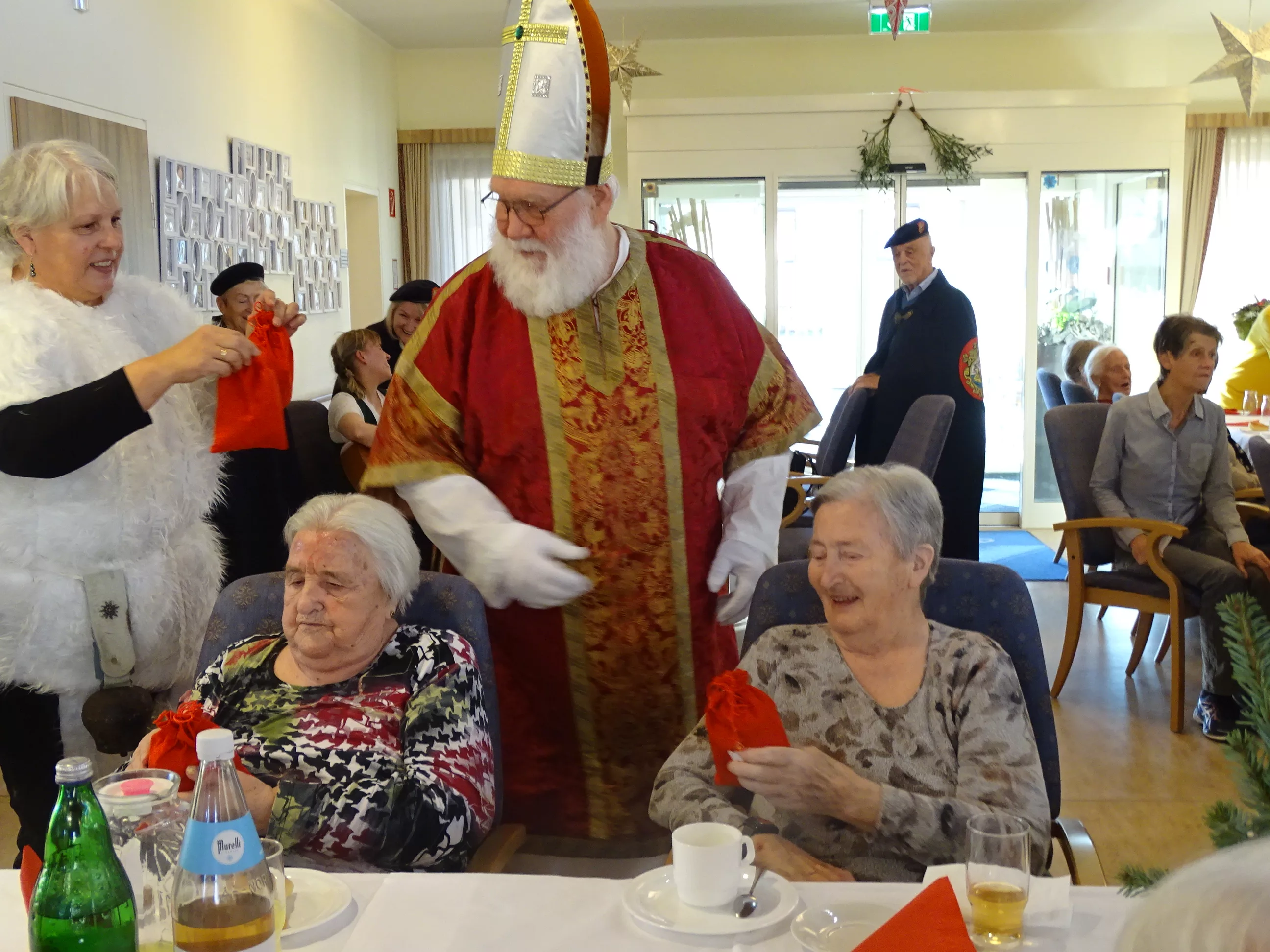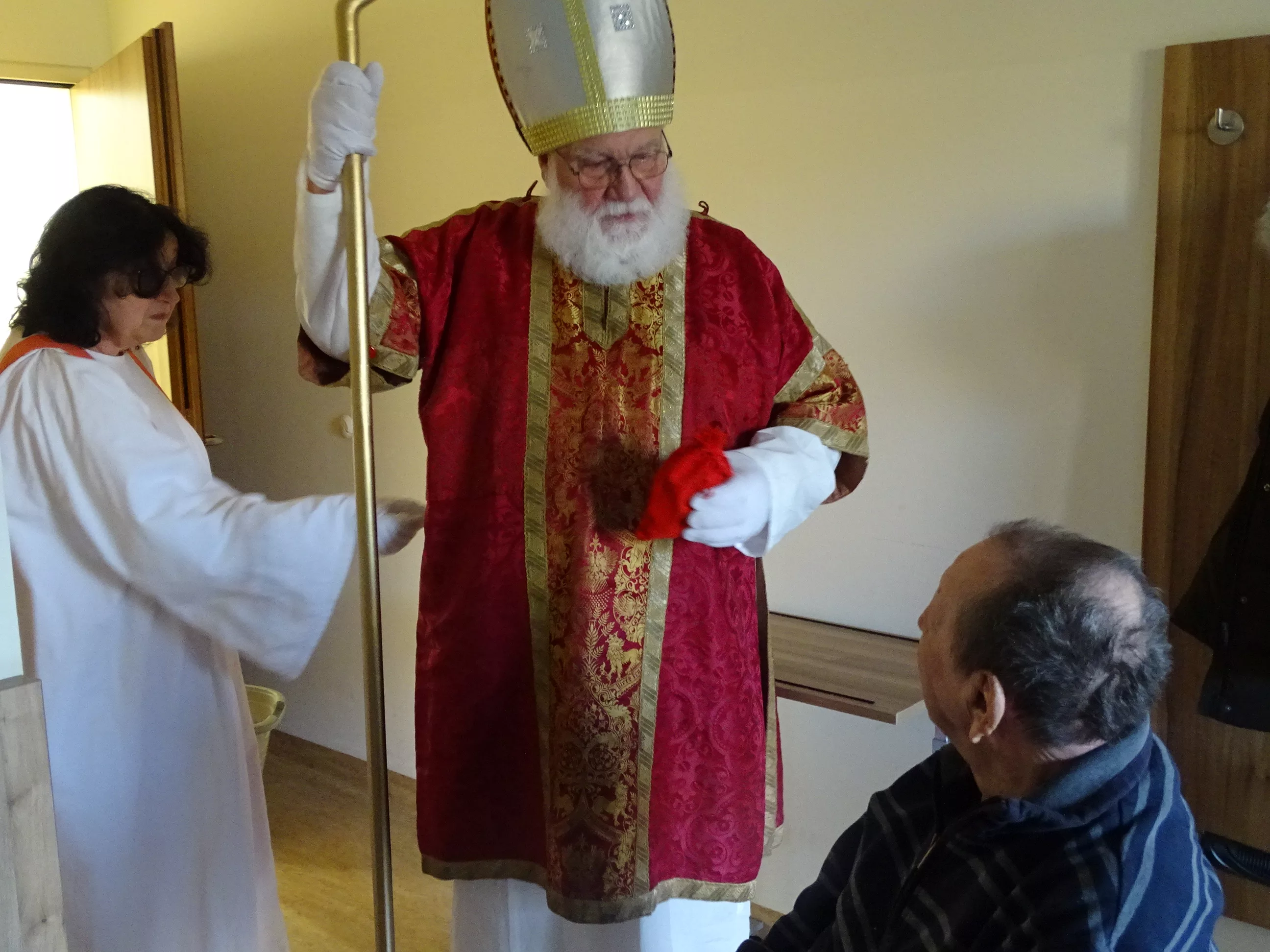 Pünktlich am 05. Dezember bekamen wir hohen Besuch vom Nikolaus mit seinem Engerl, seinem Krampus und den RITTERN VON DELO! Unsere Sabine begleitet mit Ihrer Gitarre den Einzug des Nikolaus, mit wunderschönen Nikolaus- und Weihnachtsliedern umrahmte sie unsere Nikolausfeier! Unsere BewohnerInnen bekamen eine Krampus zur Jause und ein Packerl vom Nikolaus. Den Punsch und den Glühwein ließen wir uns schmecken. Es war ein schöner Nachmittag und die Augen unserer Bewohner strahlten um die Wette!