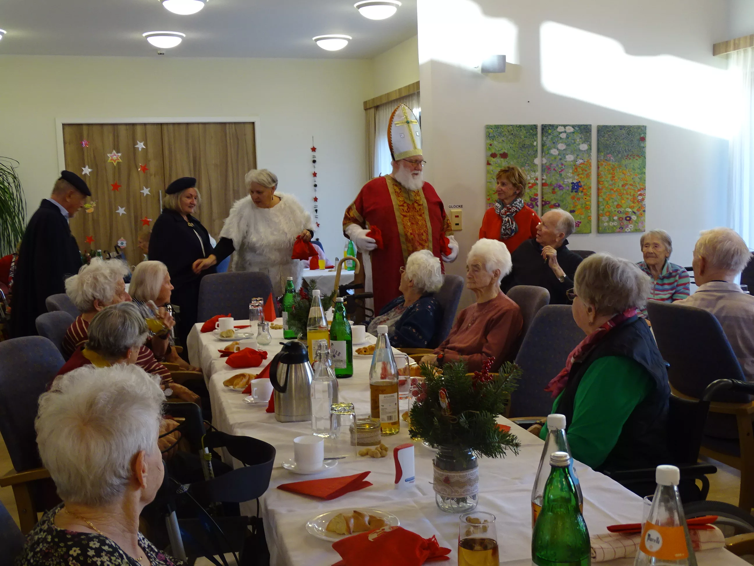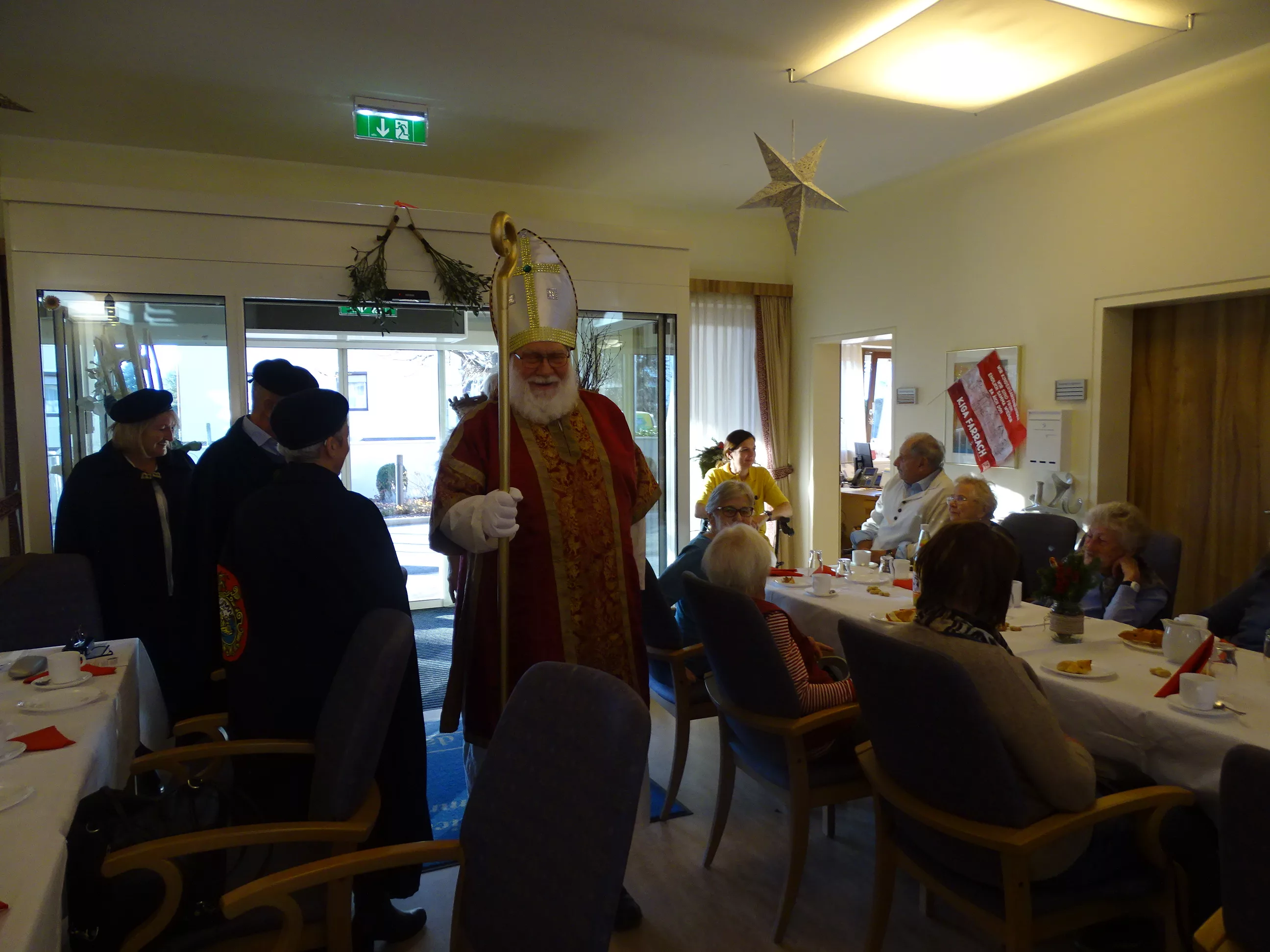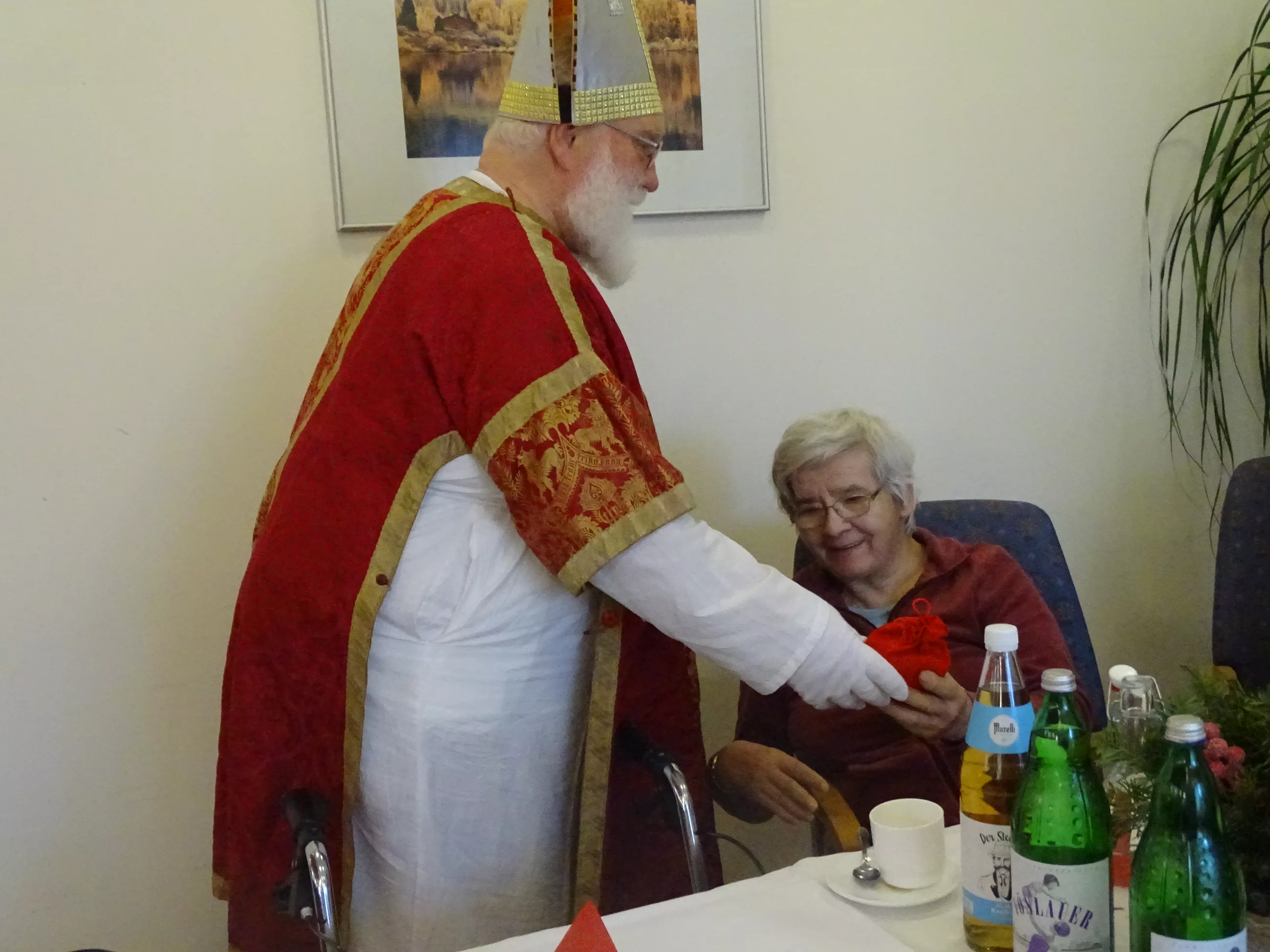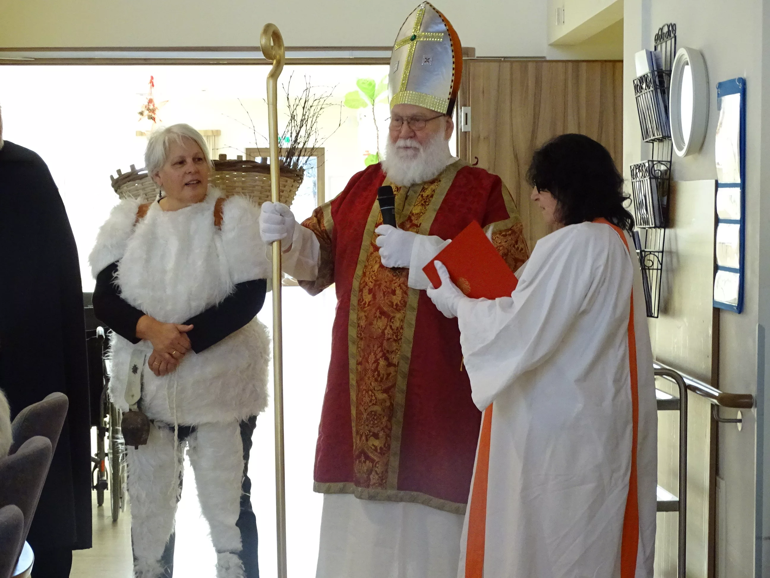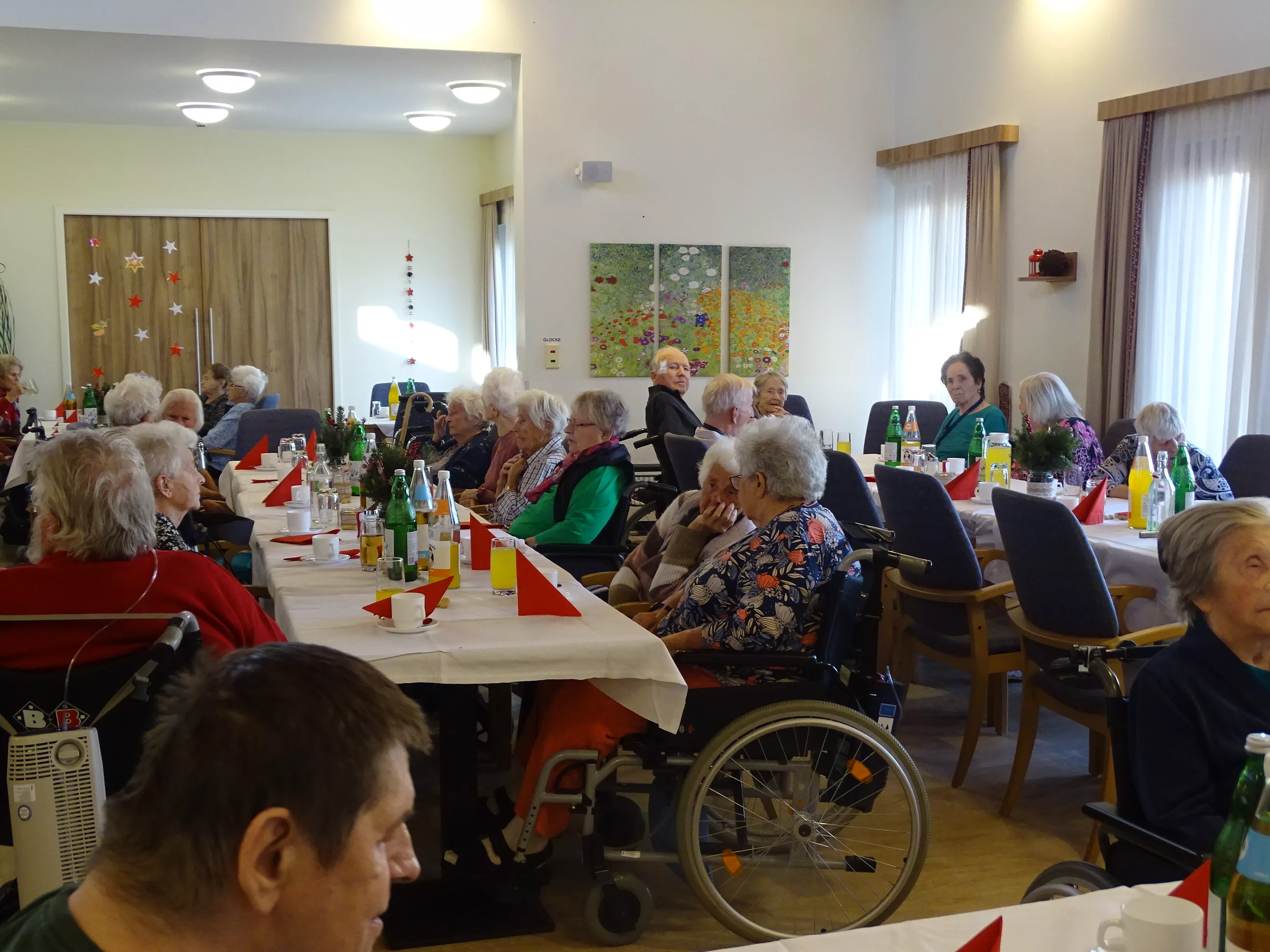 Pünktlich am 05. Dezember bekamen wir hohen Besuch vom Nikolaus mit seinem Engerl, seinem Krampus und den RITTERN VON DELO! Unsere Sabine begleitet mit Ihrer Gitarre den Einzug des Nikolaus, mit wunderschönen Nikolaus- und Weihnachtsliedern umrahmte sie unsere Nikolausfeier! Unsere BewohnerInnen bekamen eine Krampus zur Jause und ein Packerl vom Nikolaus. Den Punsch und den Glühwein ließen wir uns schmecken. Es war ein schöner Nachmittag und die Augen unserer Bewohner strahlten um die Wette!