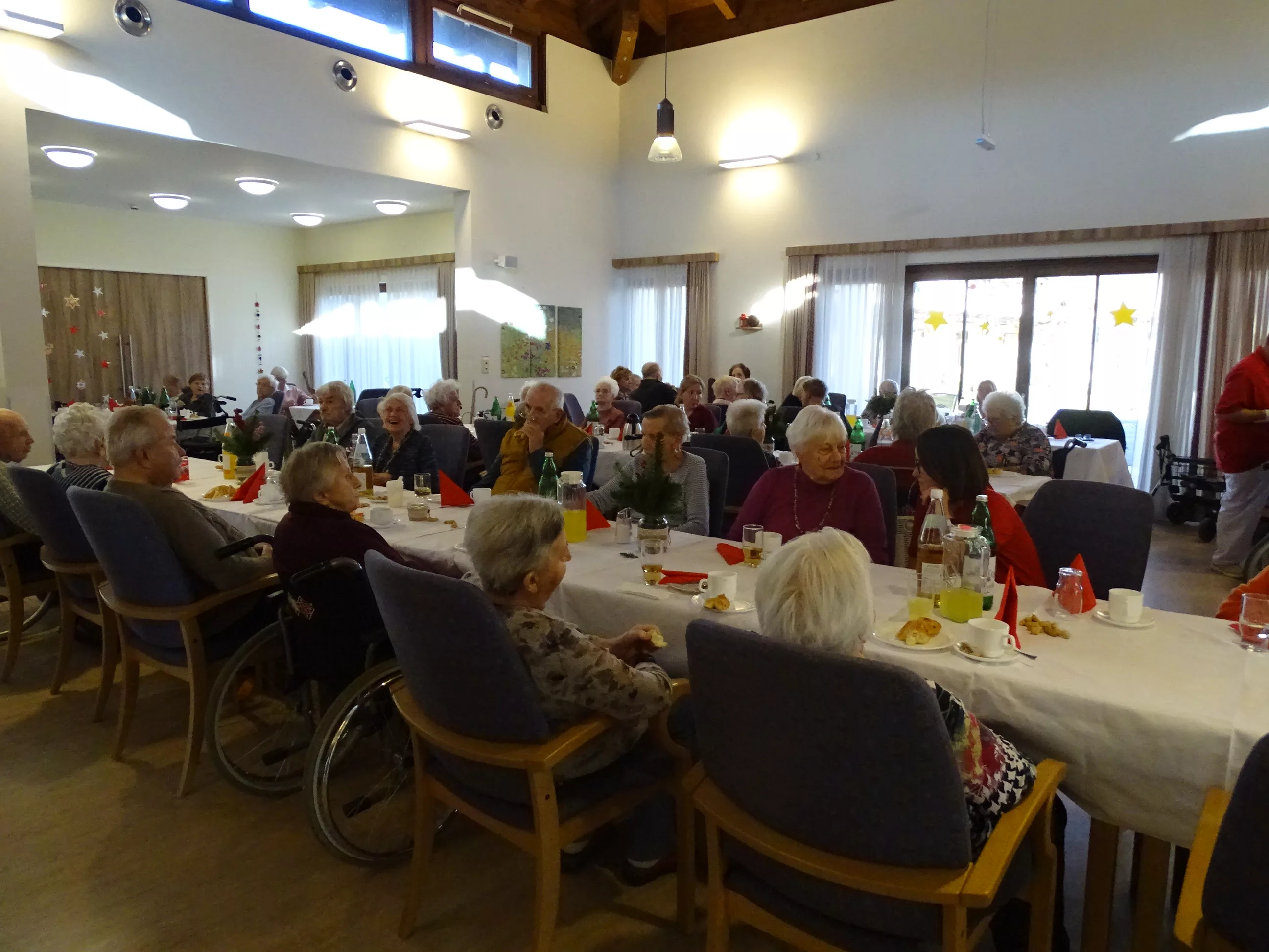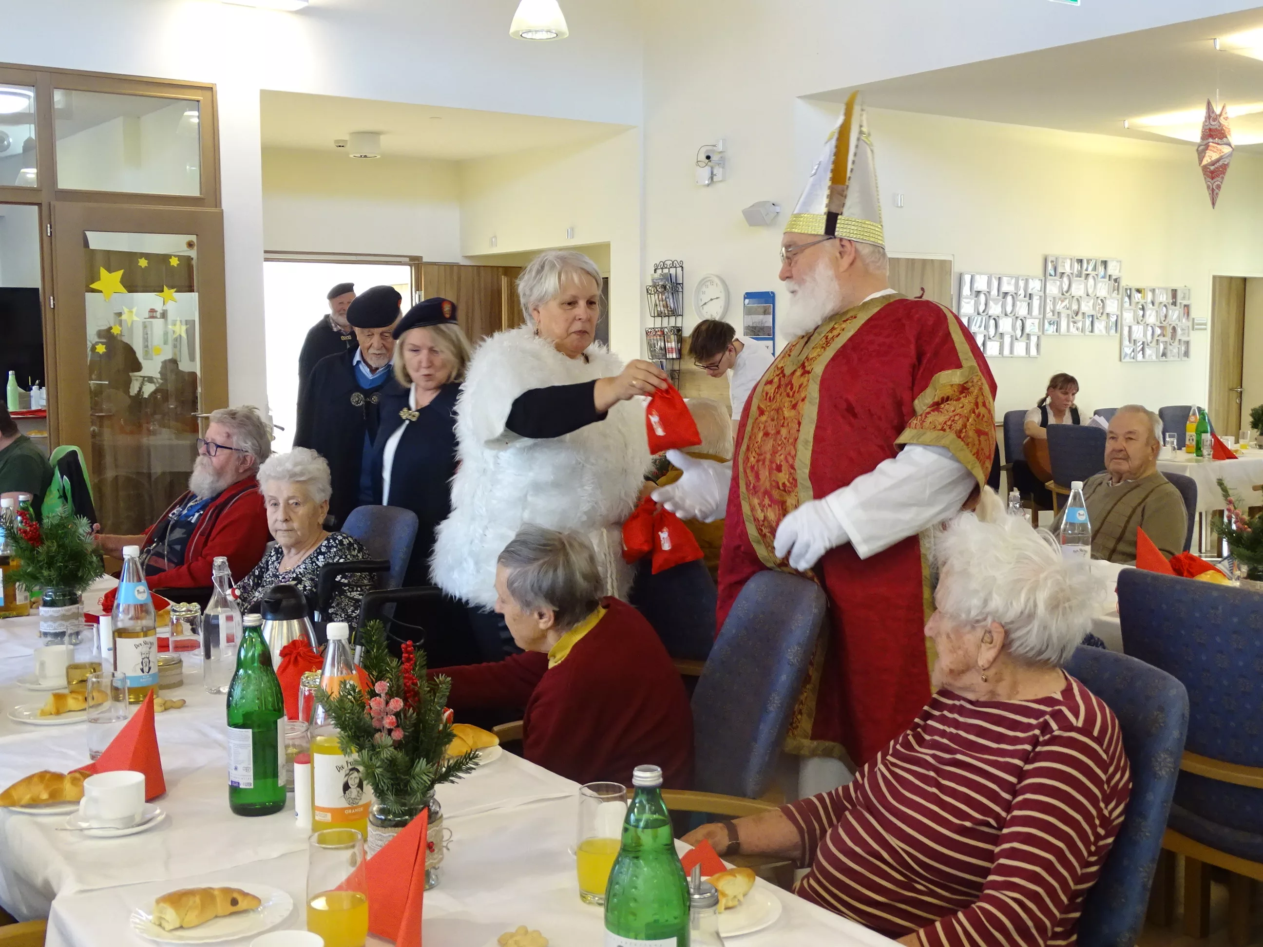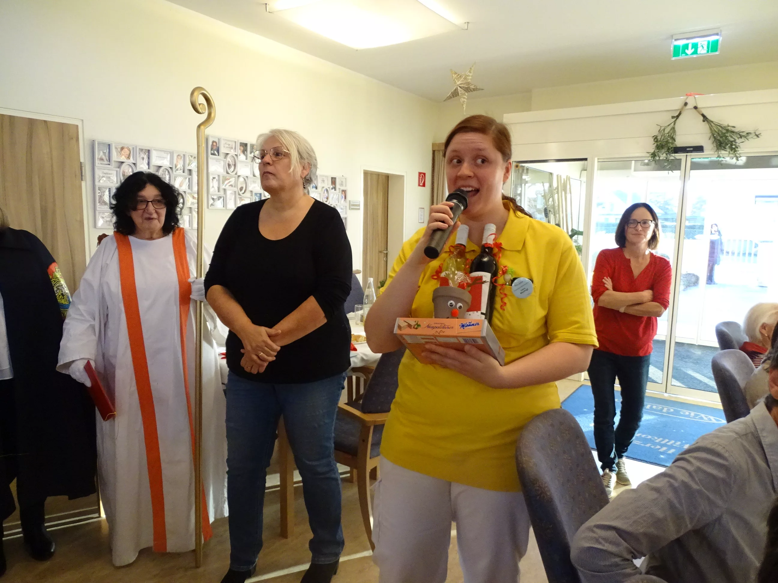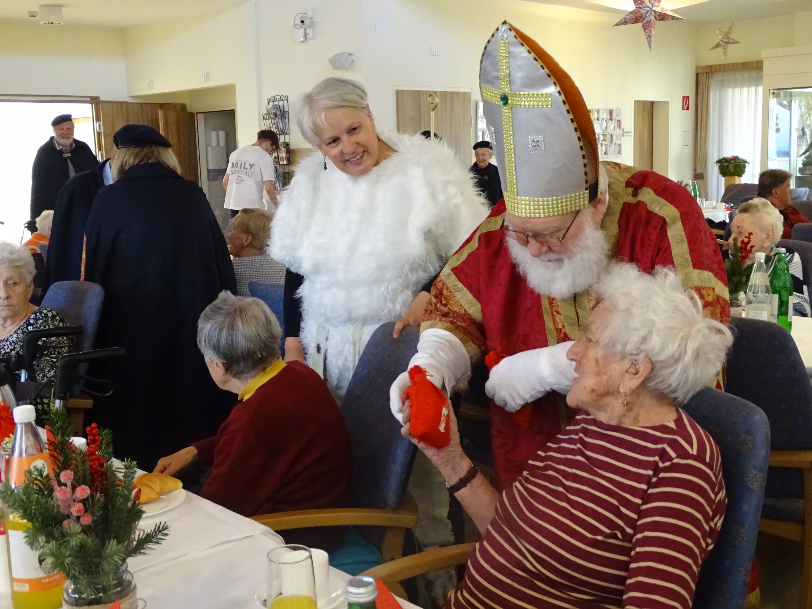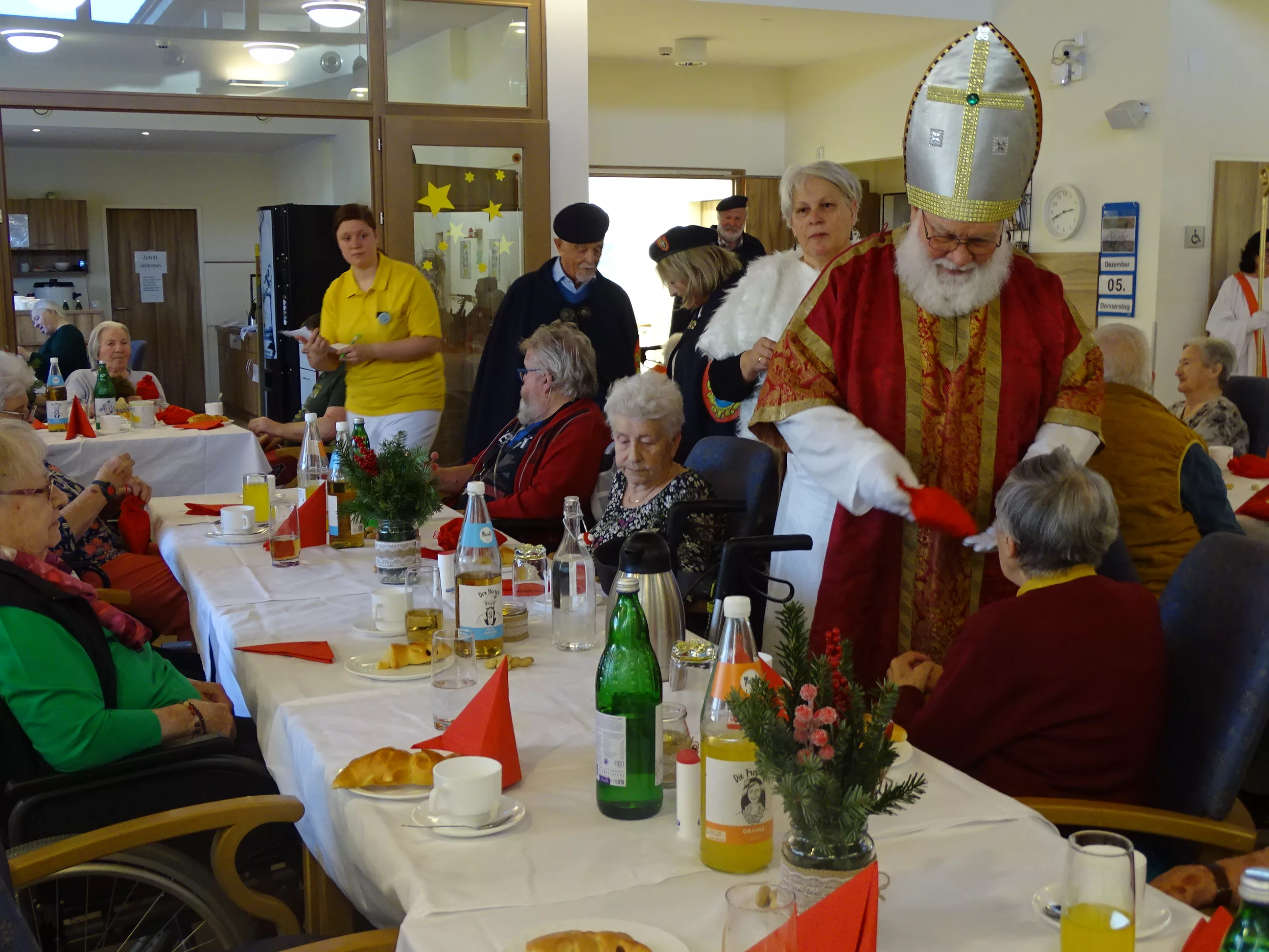 Pünktlich am 05. Dezember bekamen wir hohen Besuch vom Nikolaus mit seinem Engerl, seinem Krampus und den RITTERN VON DELO! Unsere Sabine begleitet mit Ihrer Gitarre den Einzug des Nikolaus, mit wunderschönen Nikolaus- und Weihnachtsliedern umrahmte sie unsere Nikolausfeier! Unsere BewohnerInnen bekamen eine Krampus zur Jause und ein Packerl vom Nikolaus. Den Punsch und den Glühwein ließen wir uns schmecken. Es war ein schöner Nachmittag und die Augen unserer Bewohner strahlten um die Wette!