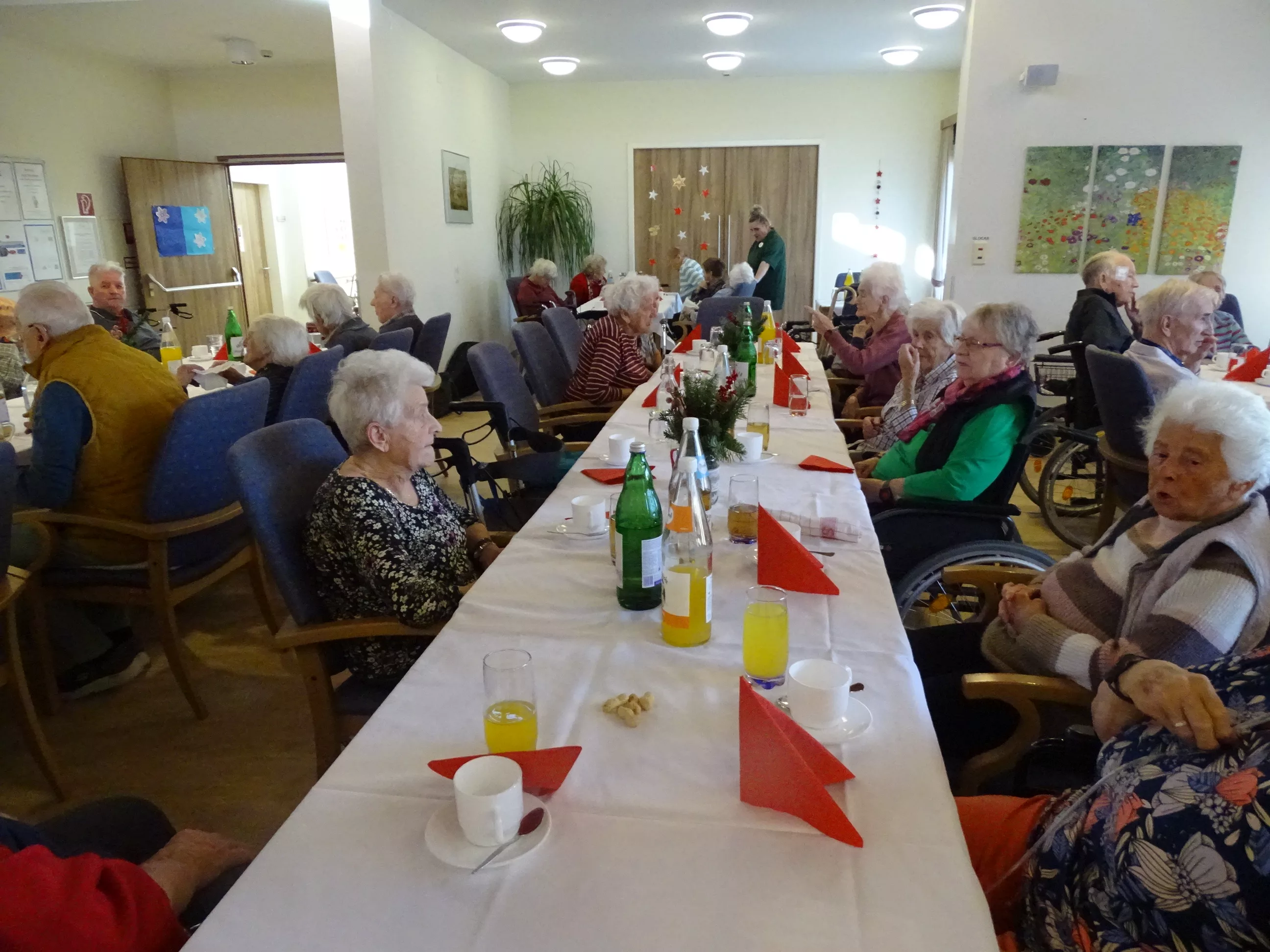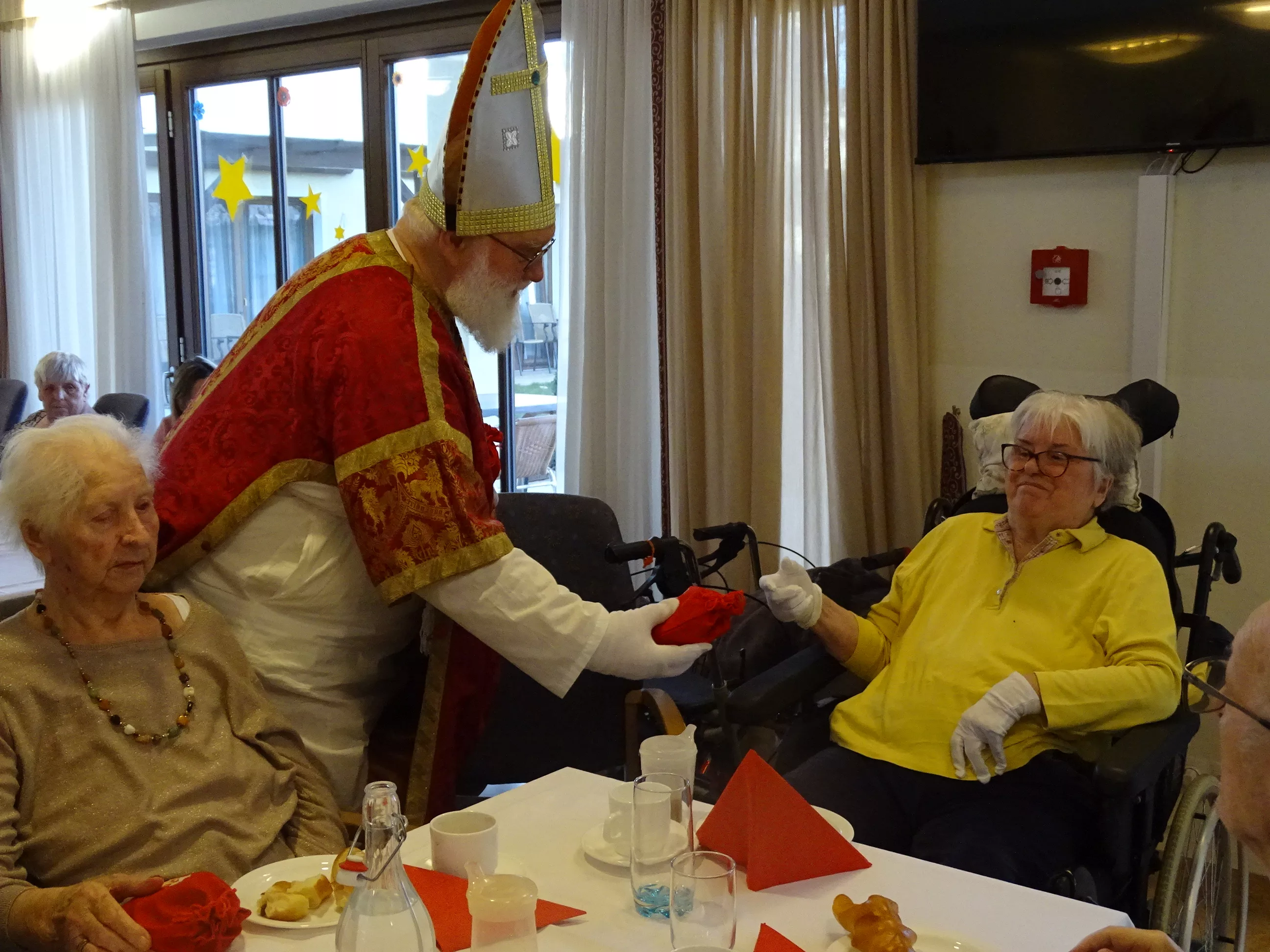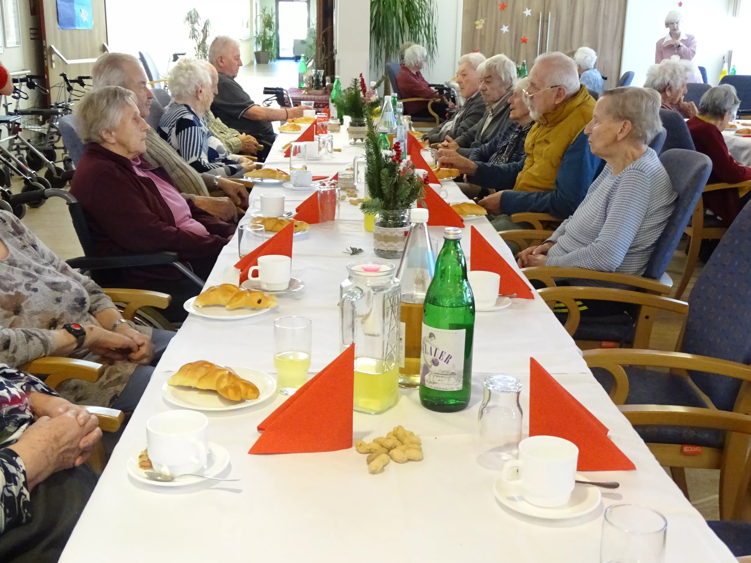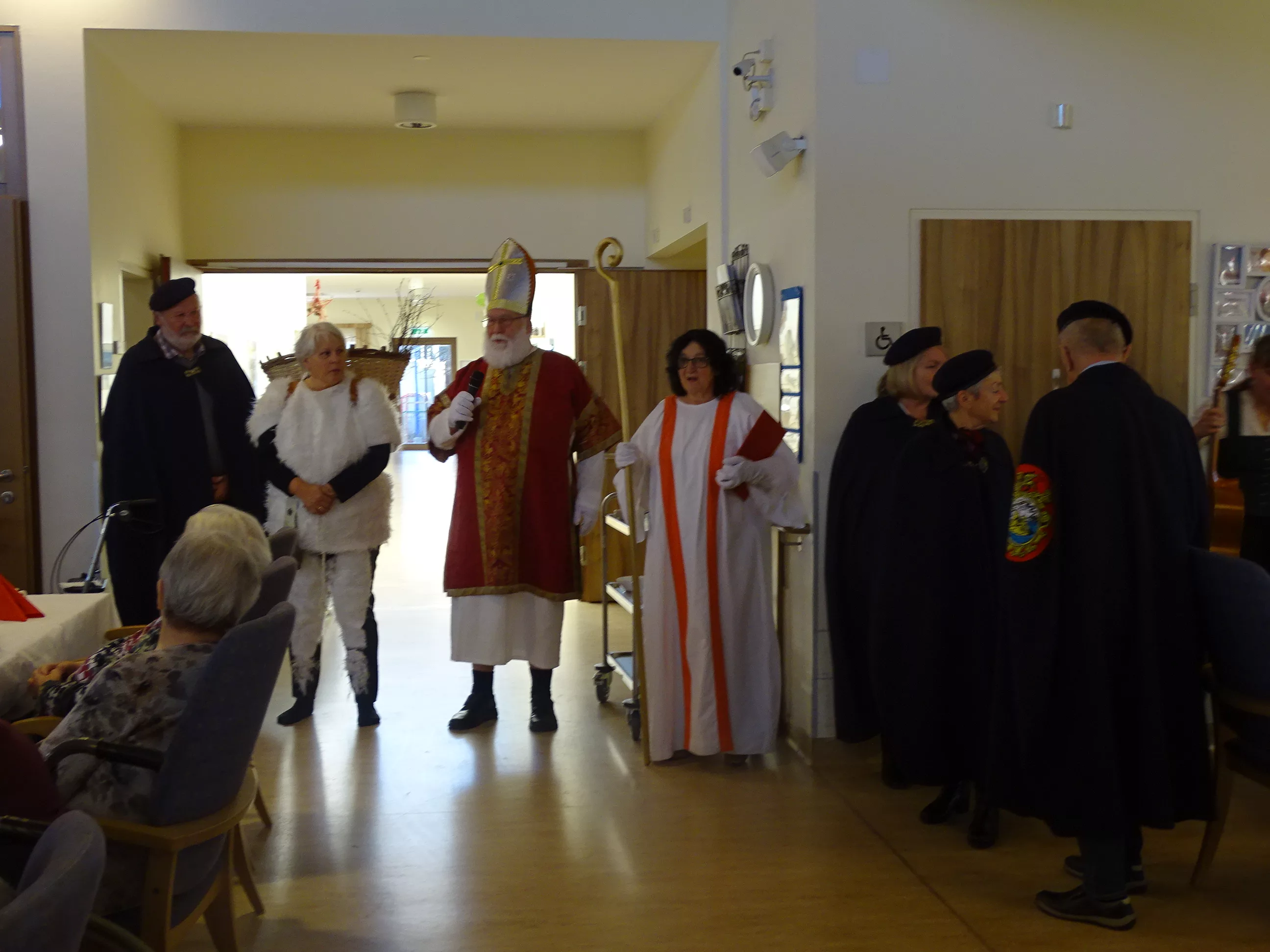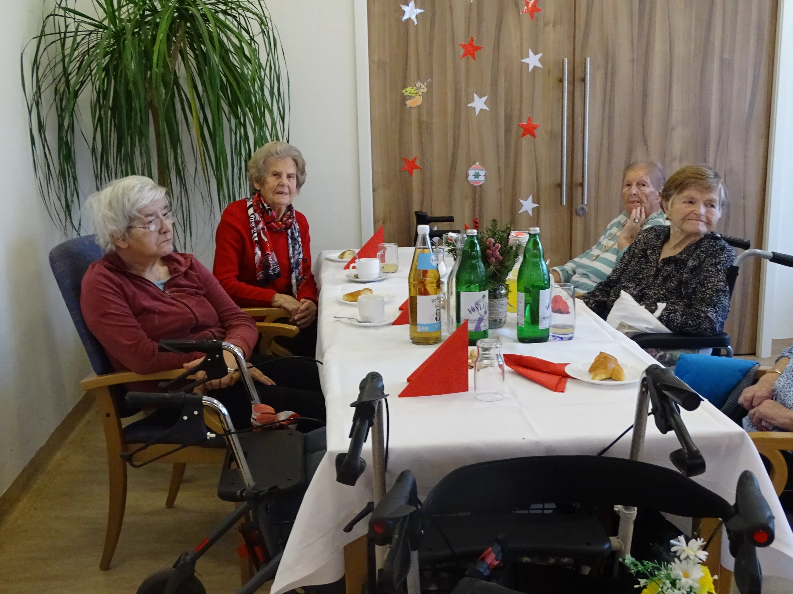 Pünktlich am 05. Dezember bekamen wir hohen Besuch vom Nikolaus mit seinem Engerl, seinem Krampus und den RITTERN VON DELO! Unsere Sabine begleitet mit Ihrer Gitarre den Einzug des Nikolaus, mit wunderschönen Nikolaus- und Weihnachtsliedern umrahmte sie unsere Nikolausfeier! Unsere BewohnerInnen bekamen eine Krampus zur Jause und ein Packerl vom Nikolaus. Den Punsch und den Glühwein ließen wir uns schmecken. Es war ein schöner Nachmittag und die Augen unserer Bewohner strahlten um die Wette!