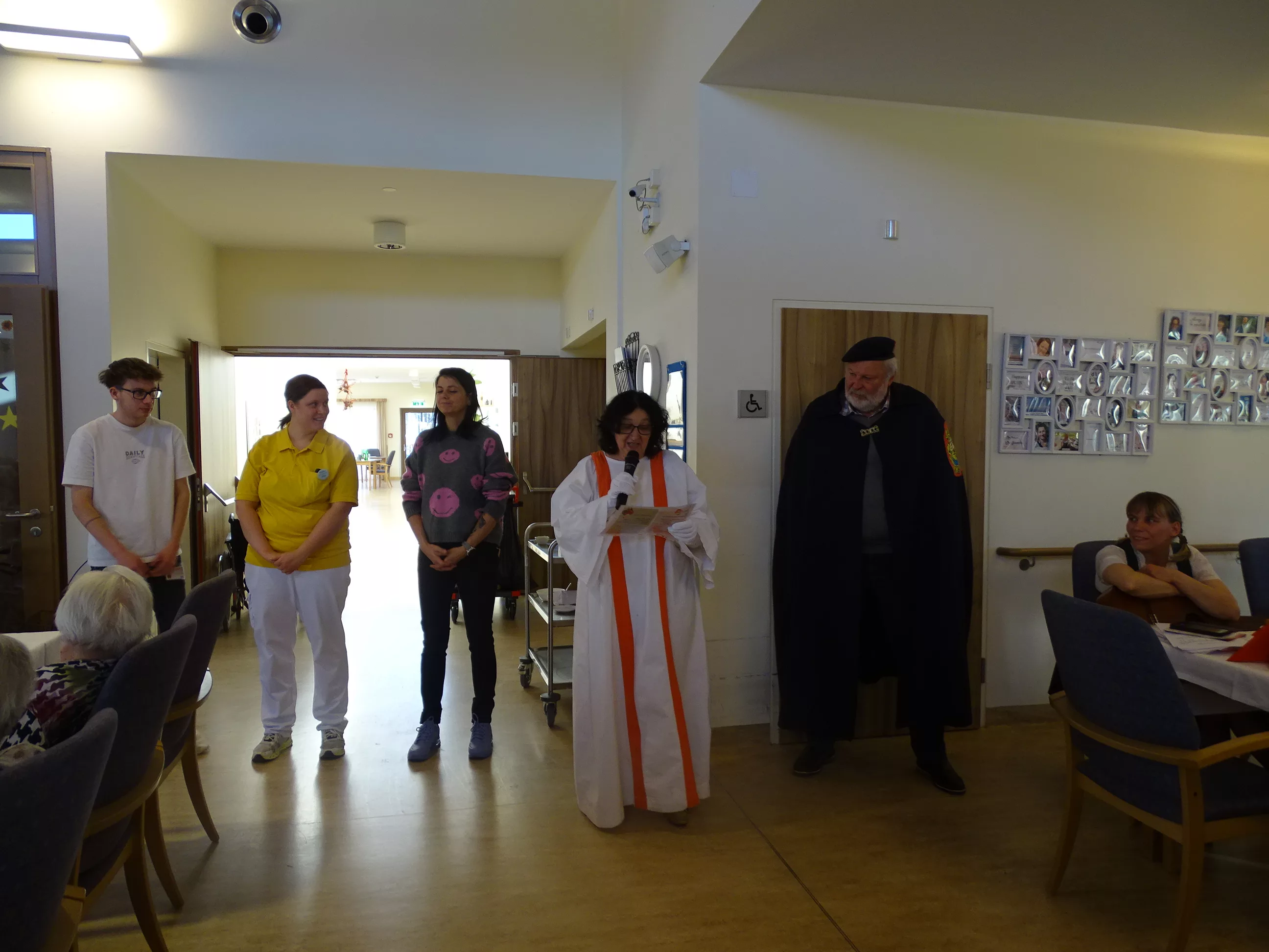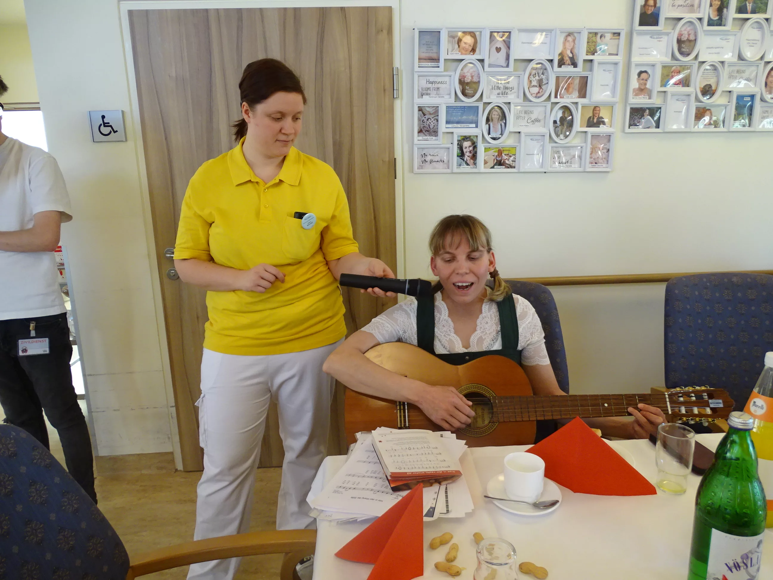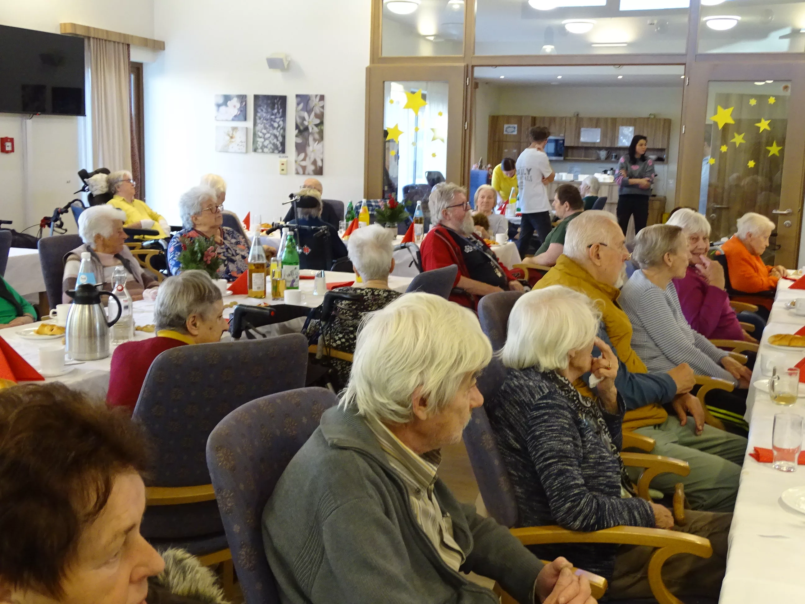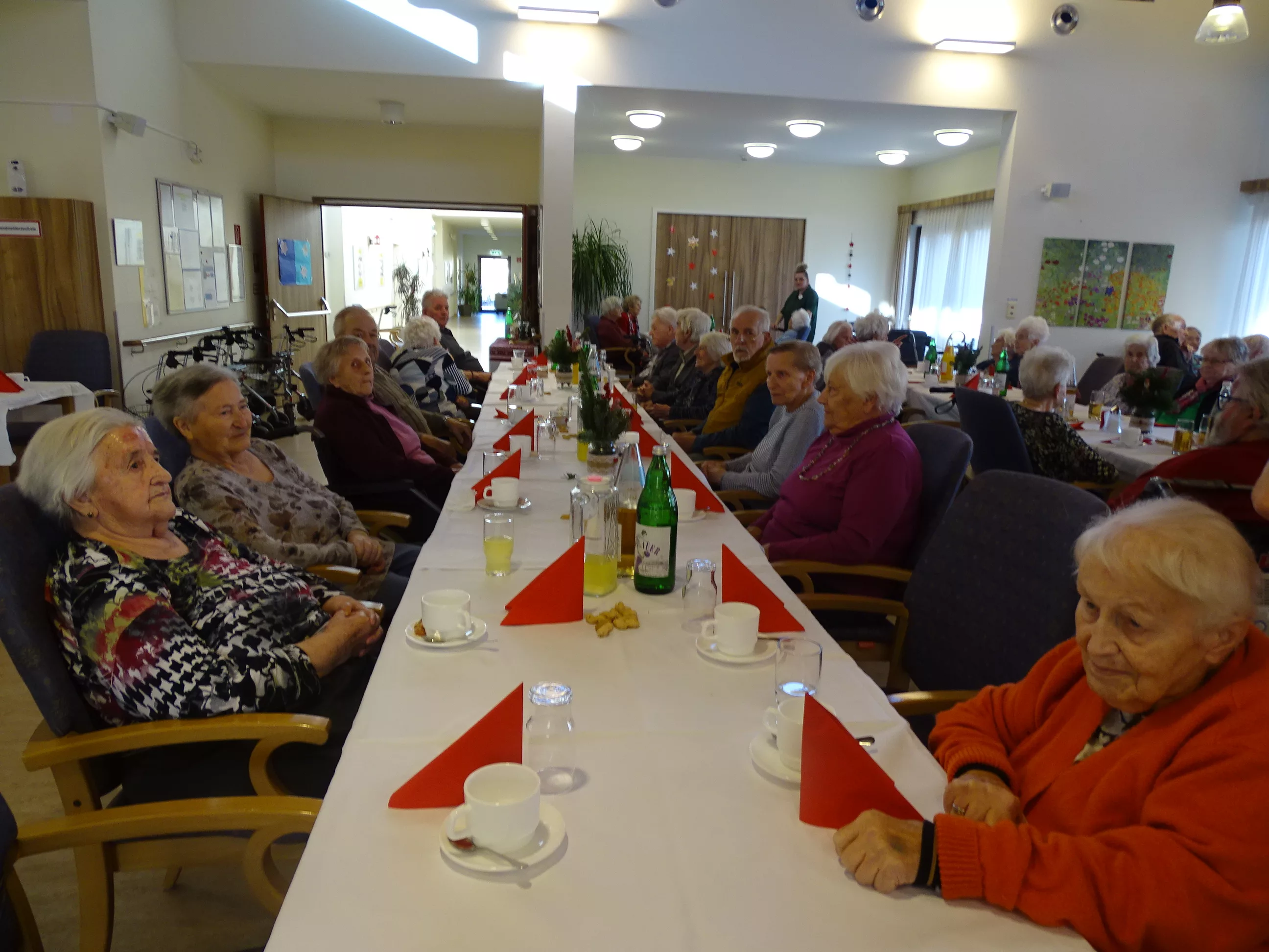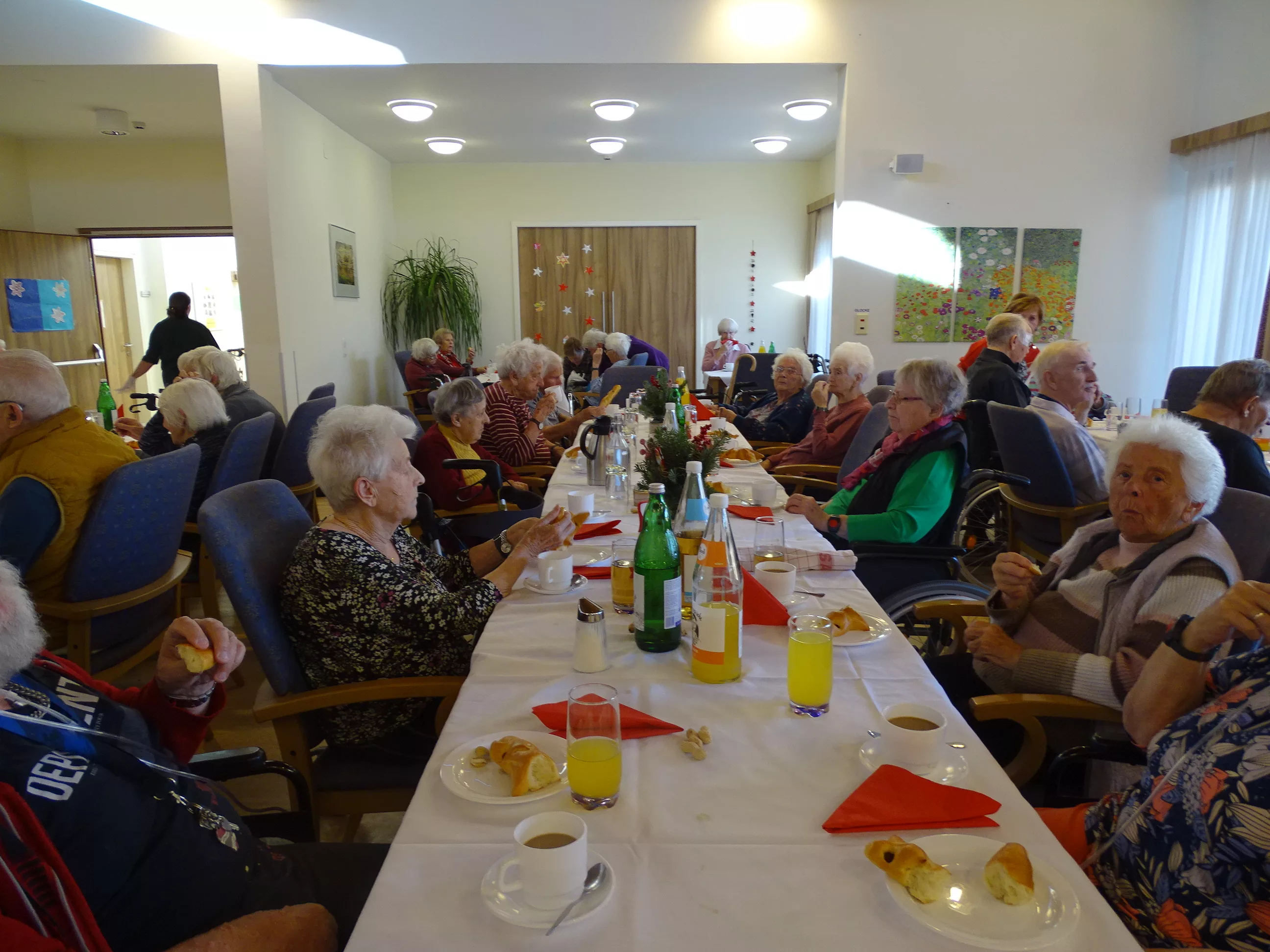 Pünktlich am 05. Dezember bekamen wir hohen Besuch vom Nikolaus mit seinem Engerl, seinem Krampus und den RITTERN VON DELO! Unsere Sabine begleitet mit Ihrer Gitarre den Einzug des Nikolaus, mit wunderschönen Nikolaus- und Weihnachtsliedern umrahmte sie unsere Nikolausfeier! Unsere BewohnerInnen bekamen eine Krampus zur Jause und ein Packerl vom Nikolaus. Den Punsch und den Glühwein ließen wir uns schmecken. Es war ein schöner Nachmittag und die Augen unserer Bewohner strahlten um die Wette!