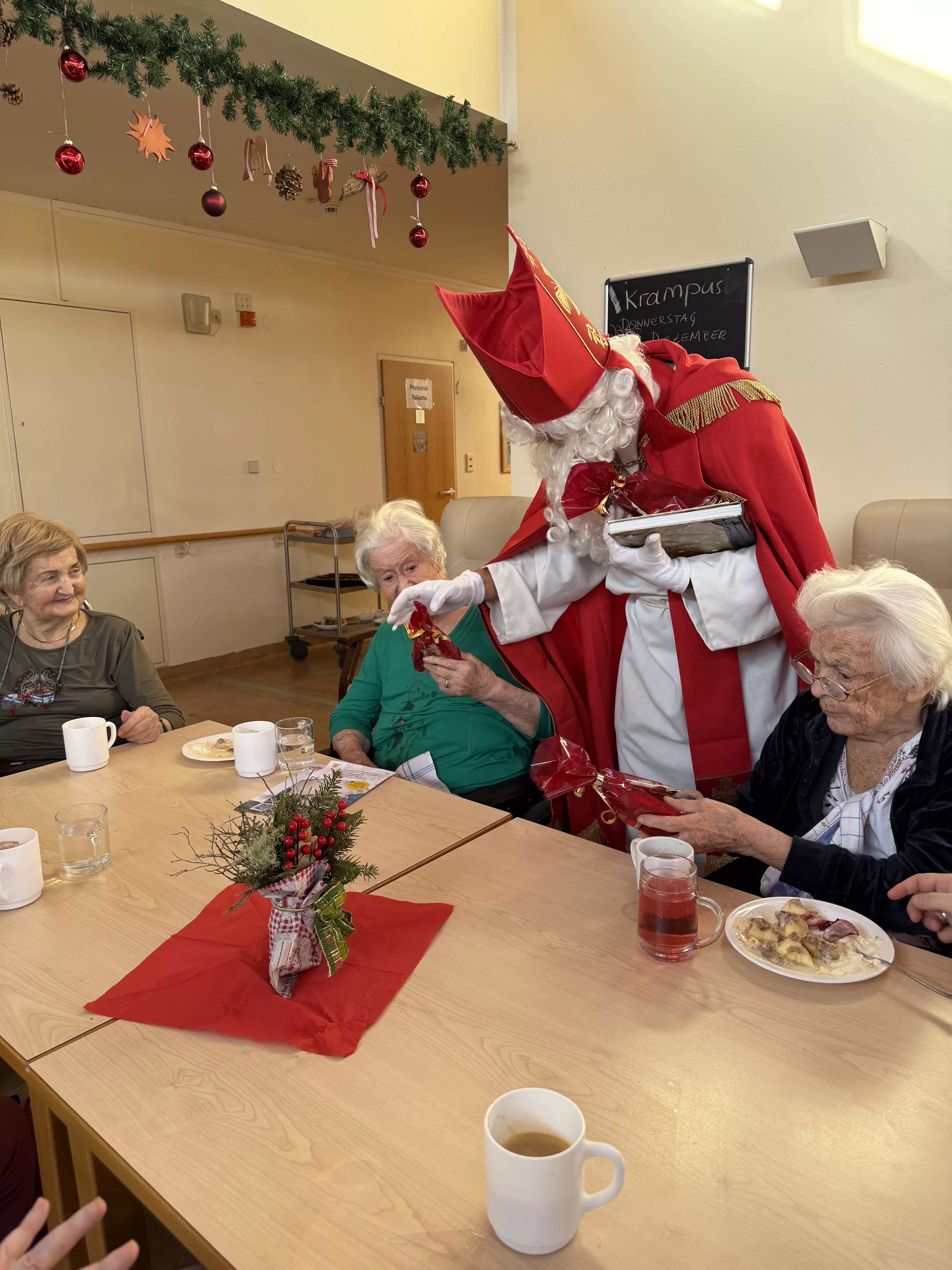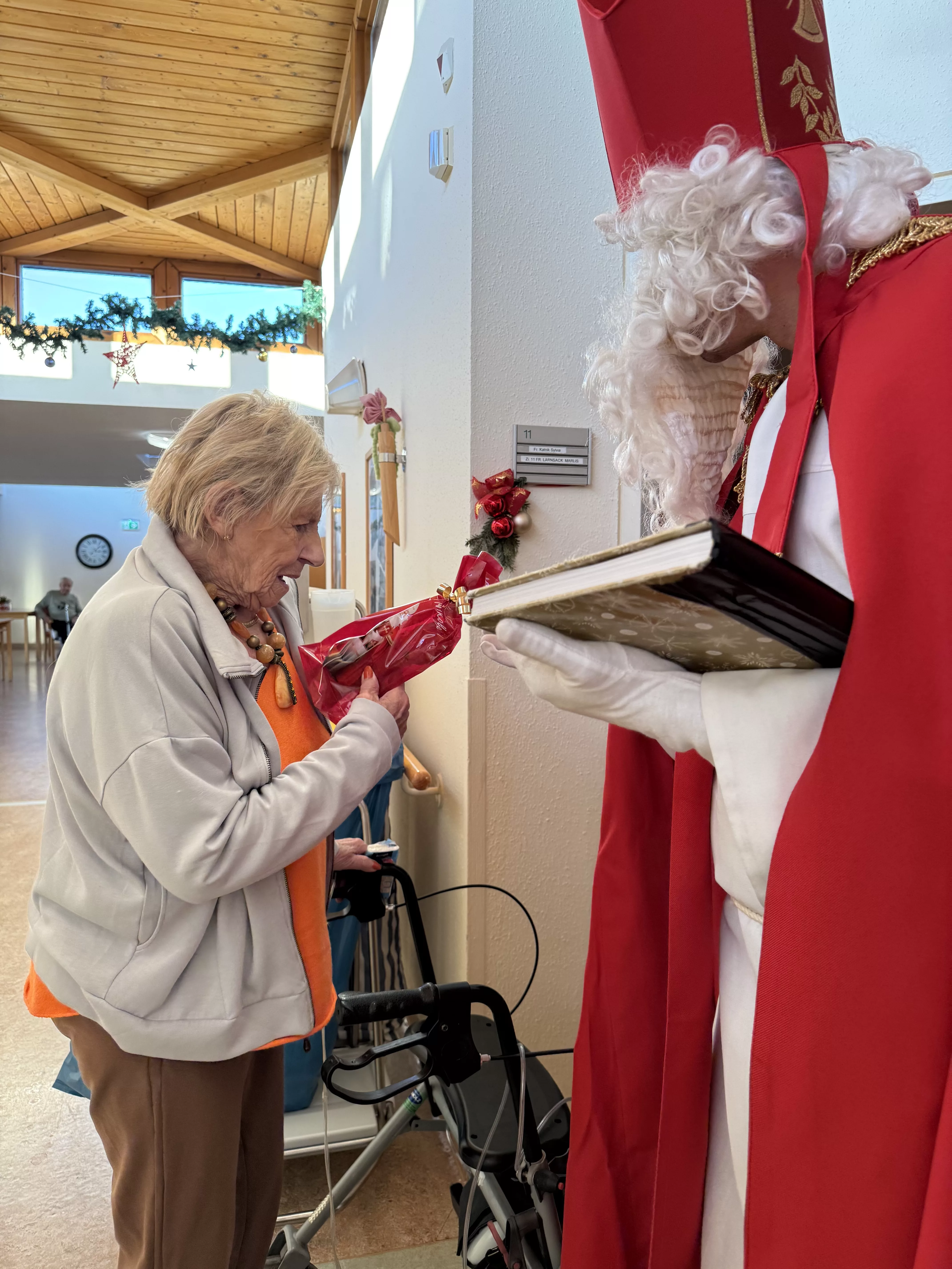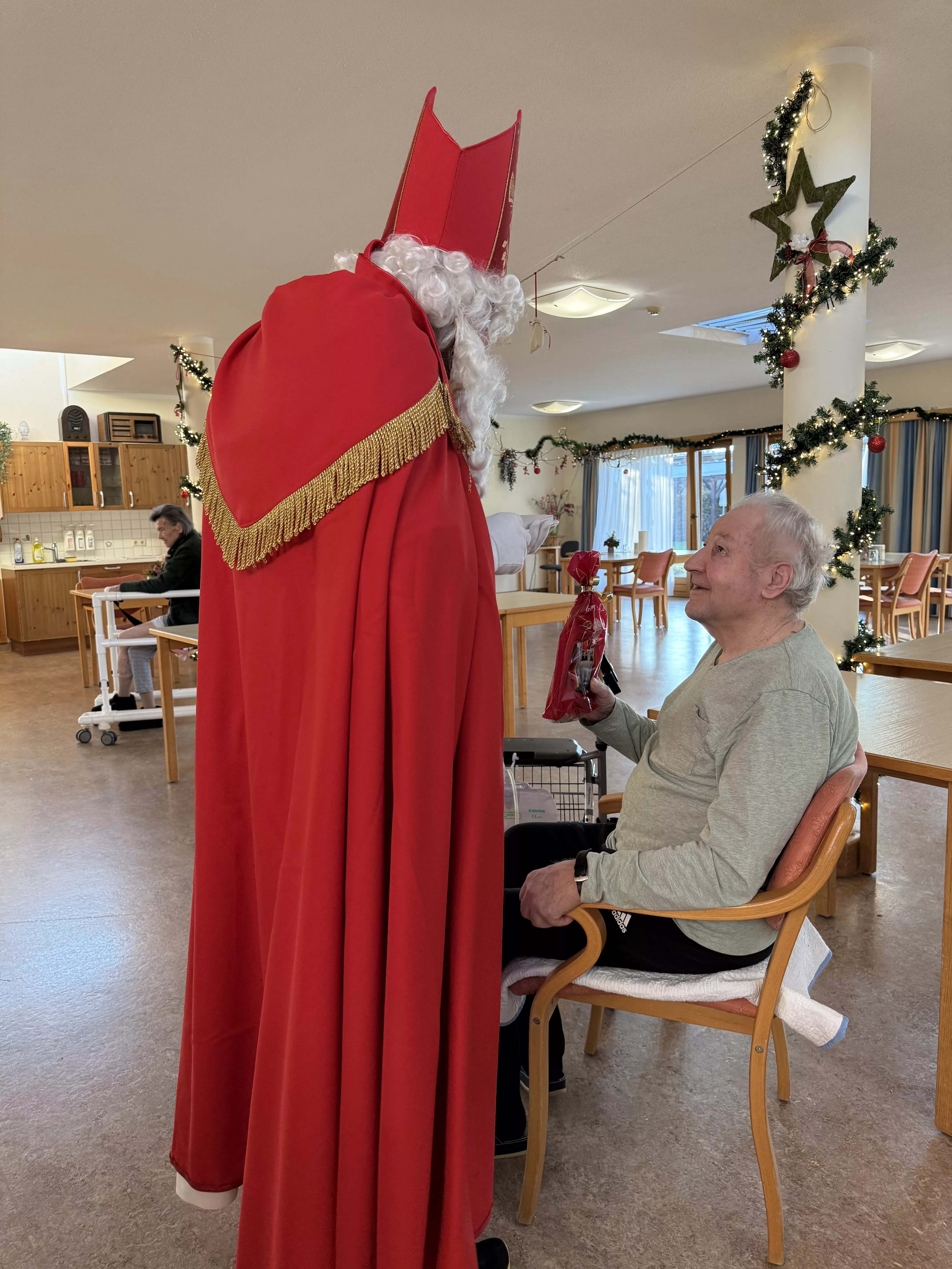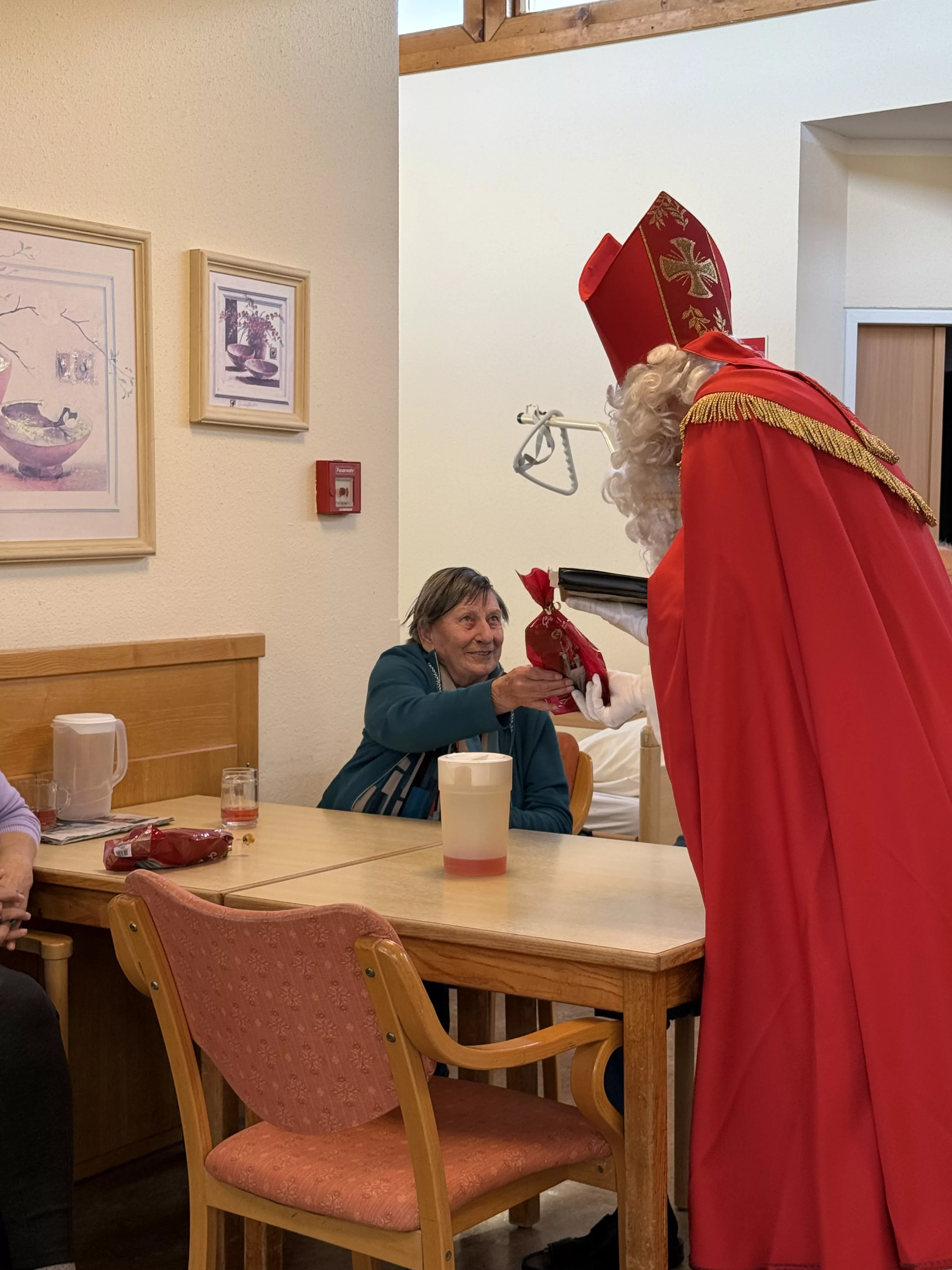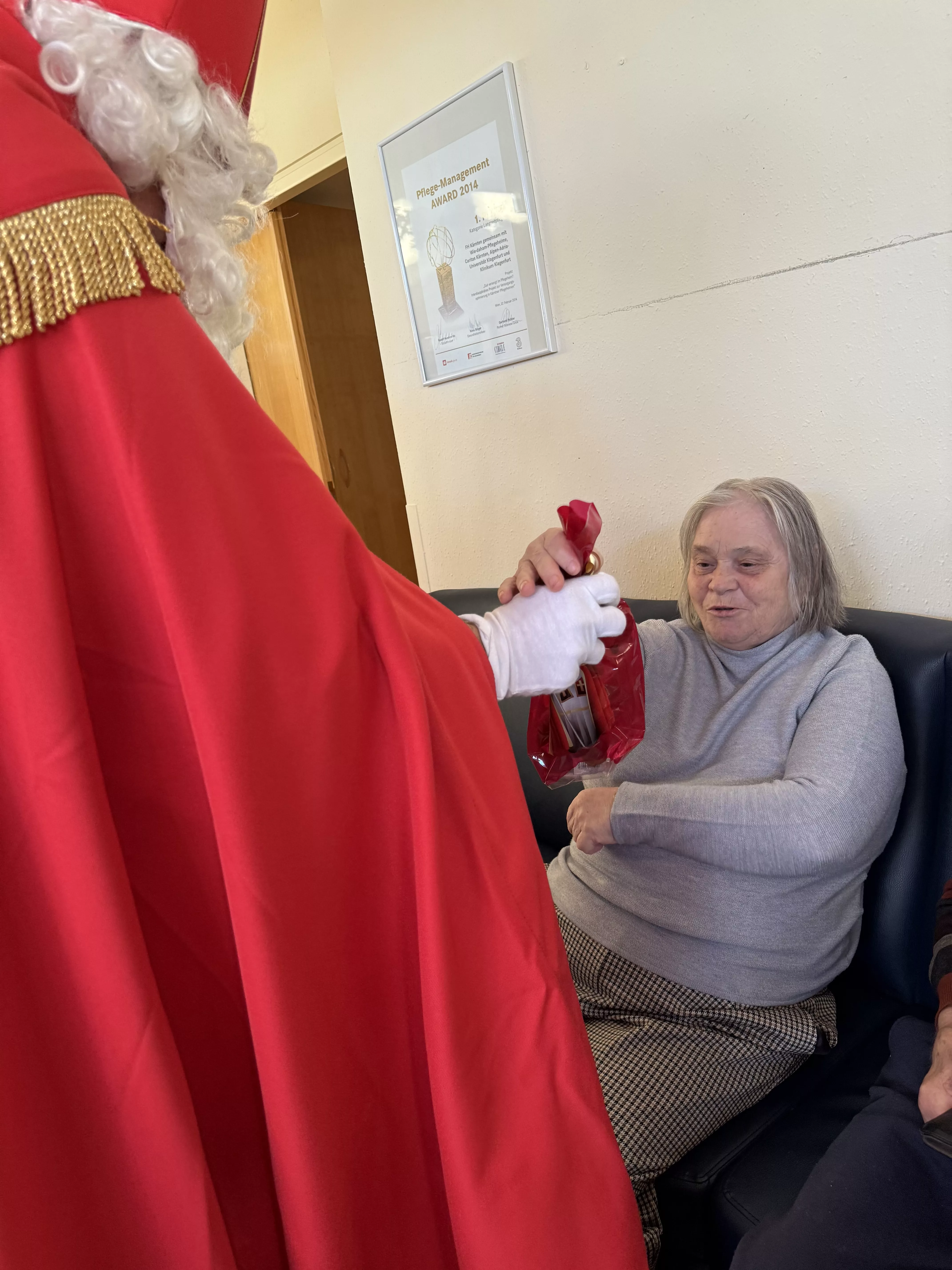 Der Nikolaus (unser lieber Hausmeister, Herr Zussner) brachte all unseren BewohnerInnen ein kleines Geschenk und sprach dazu auch ein paar nette Worte.