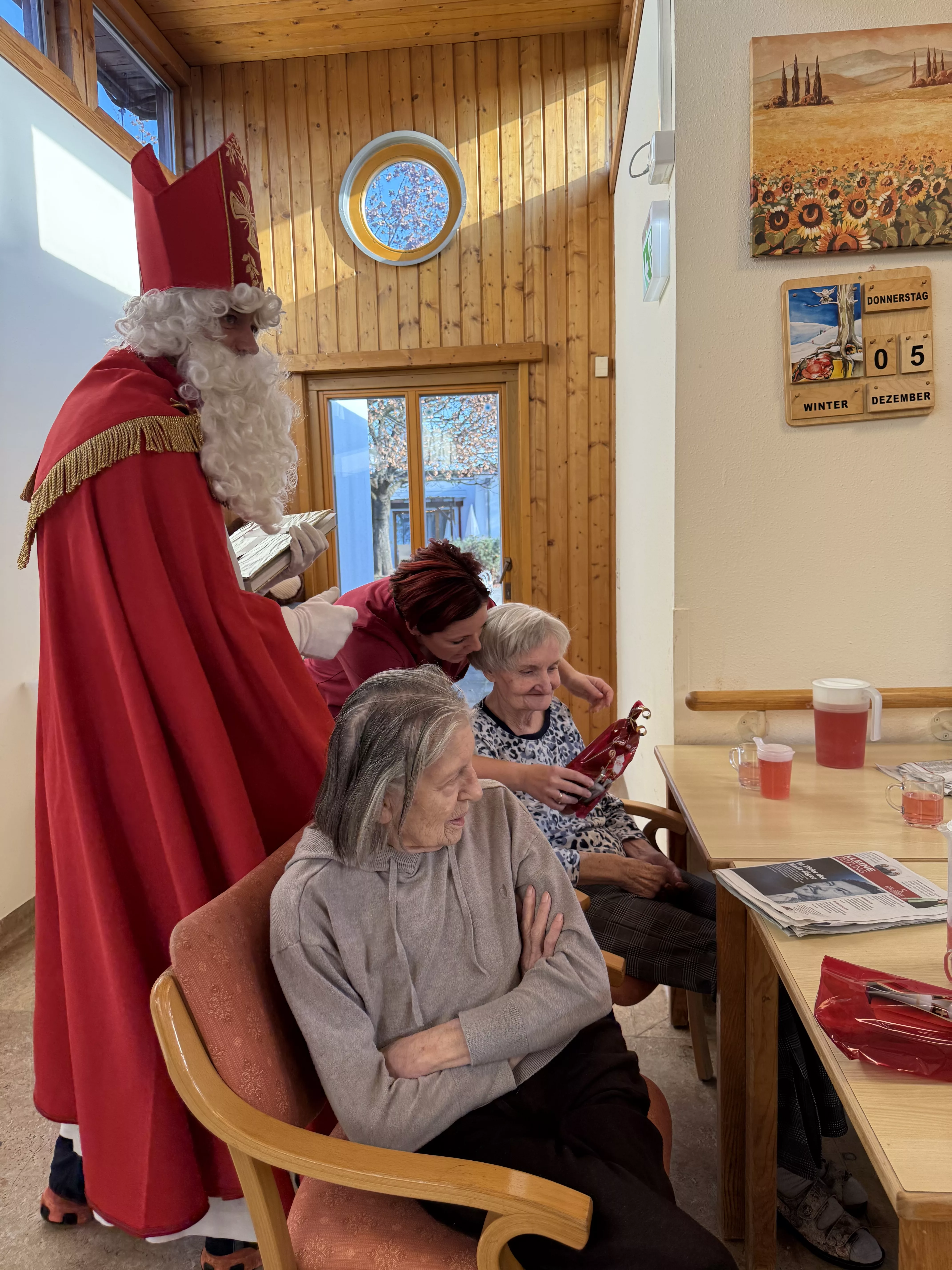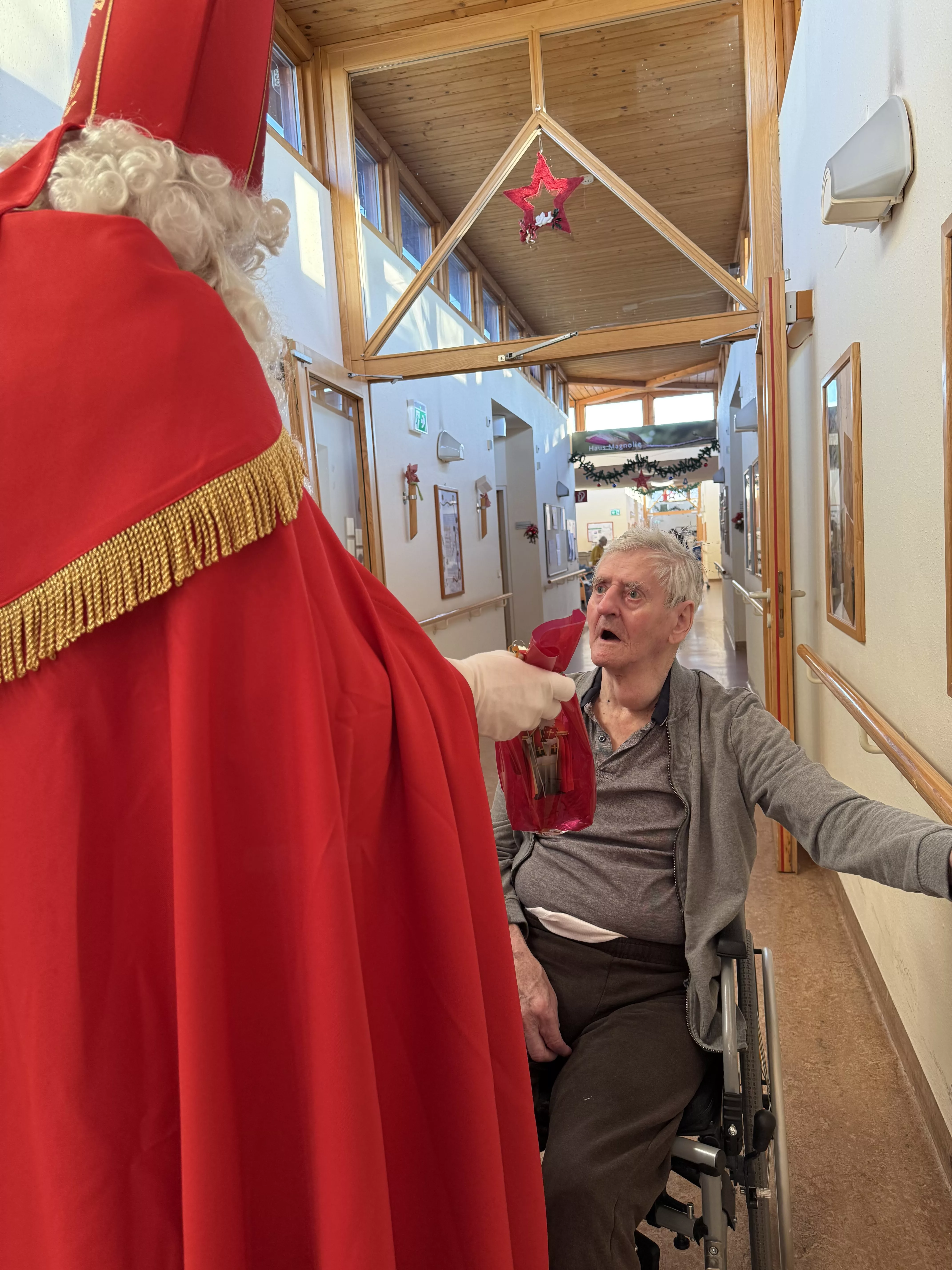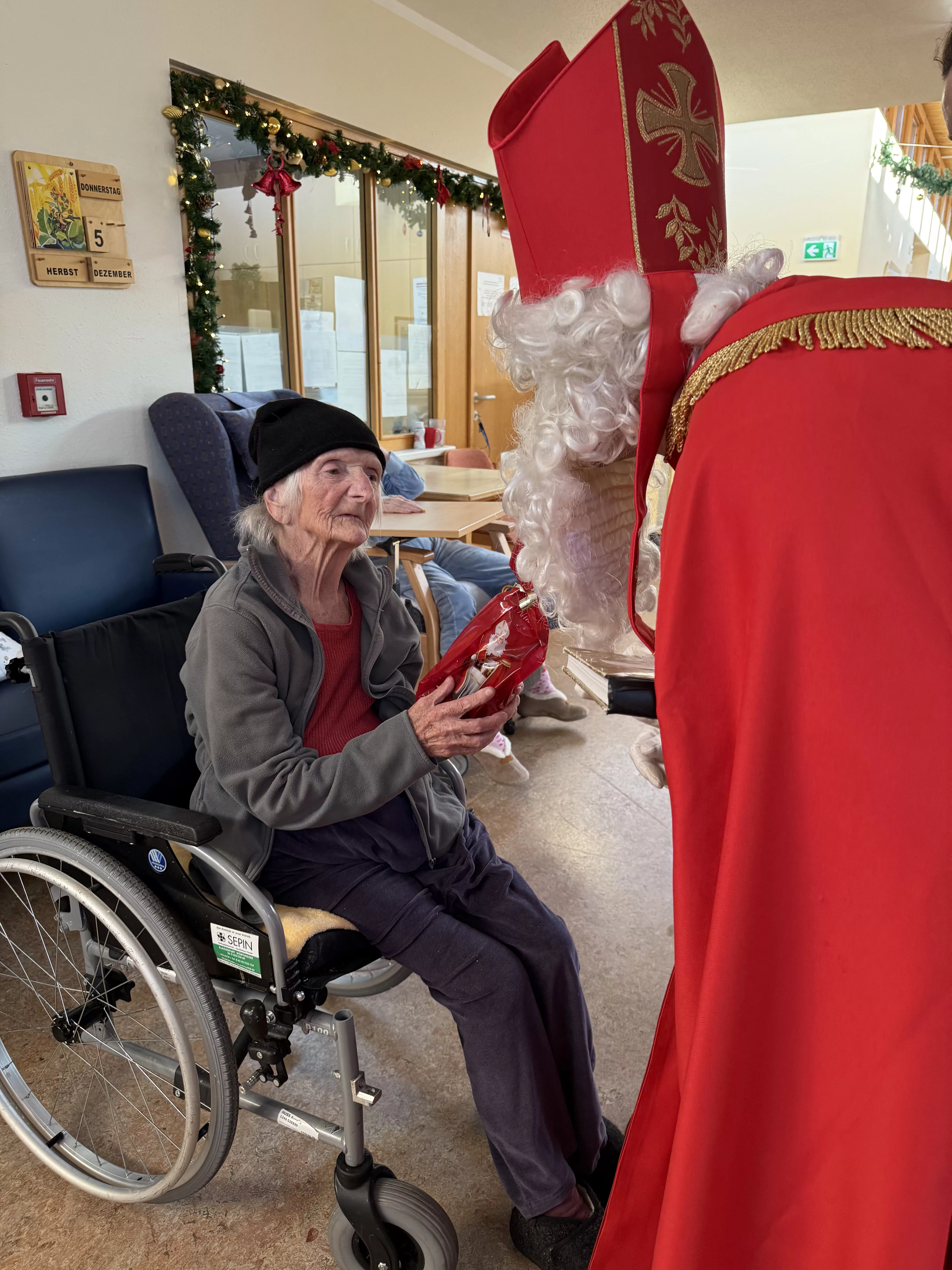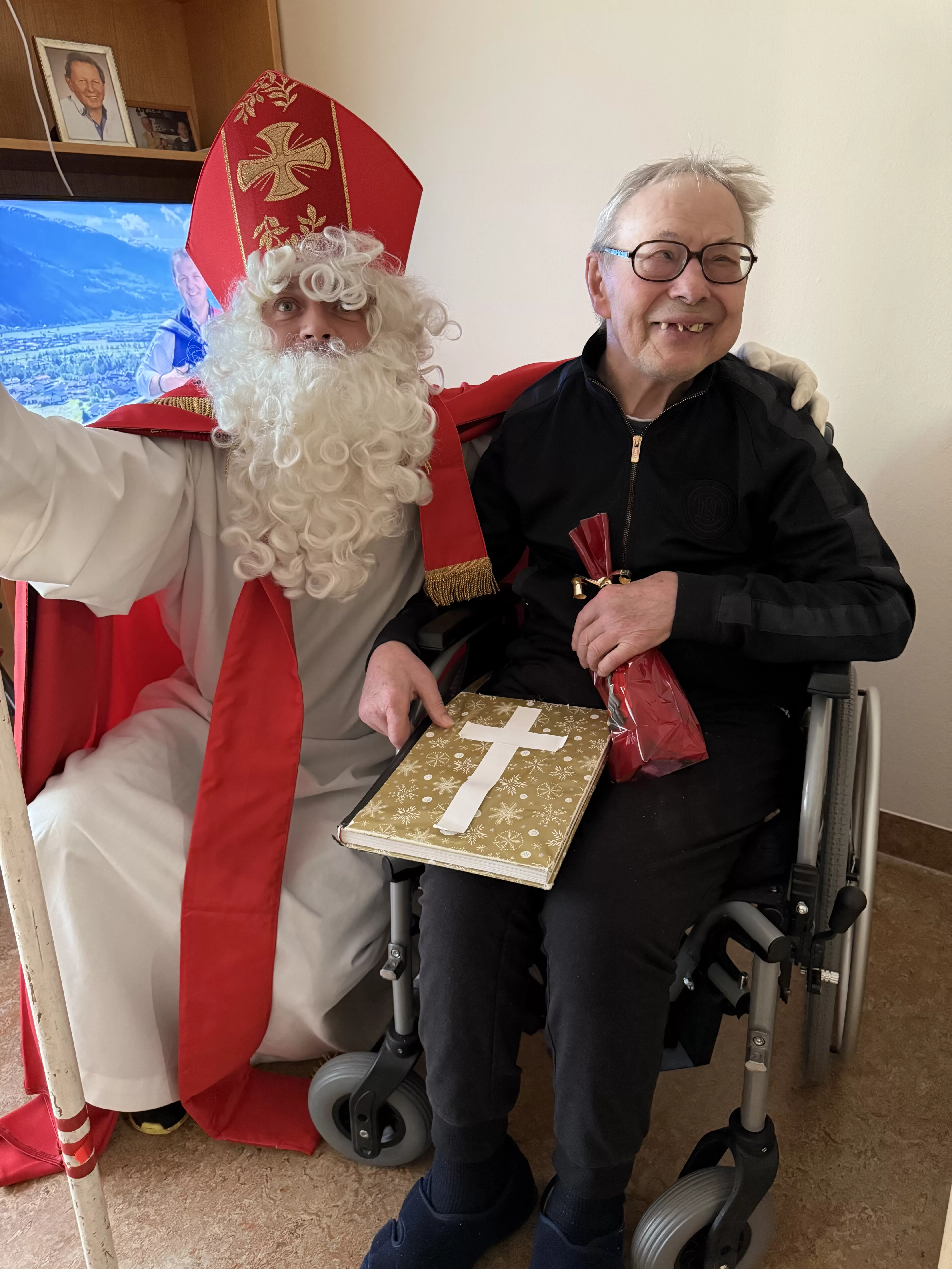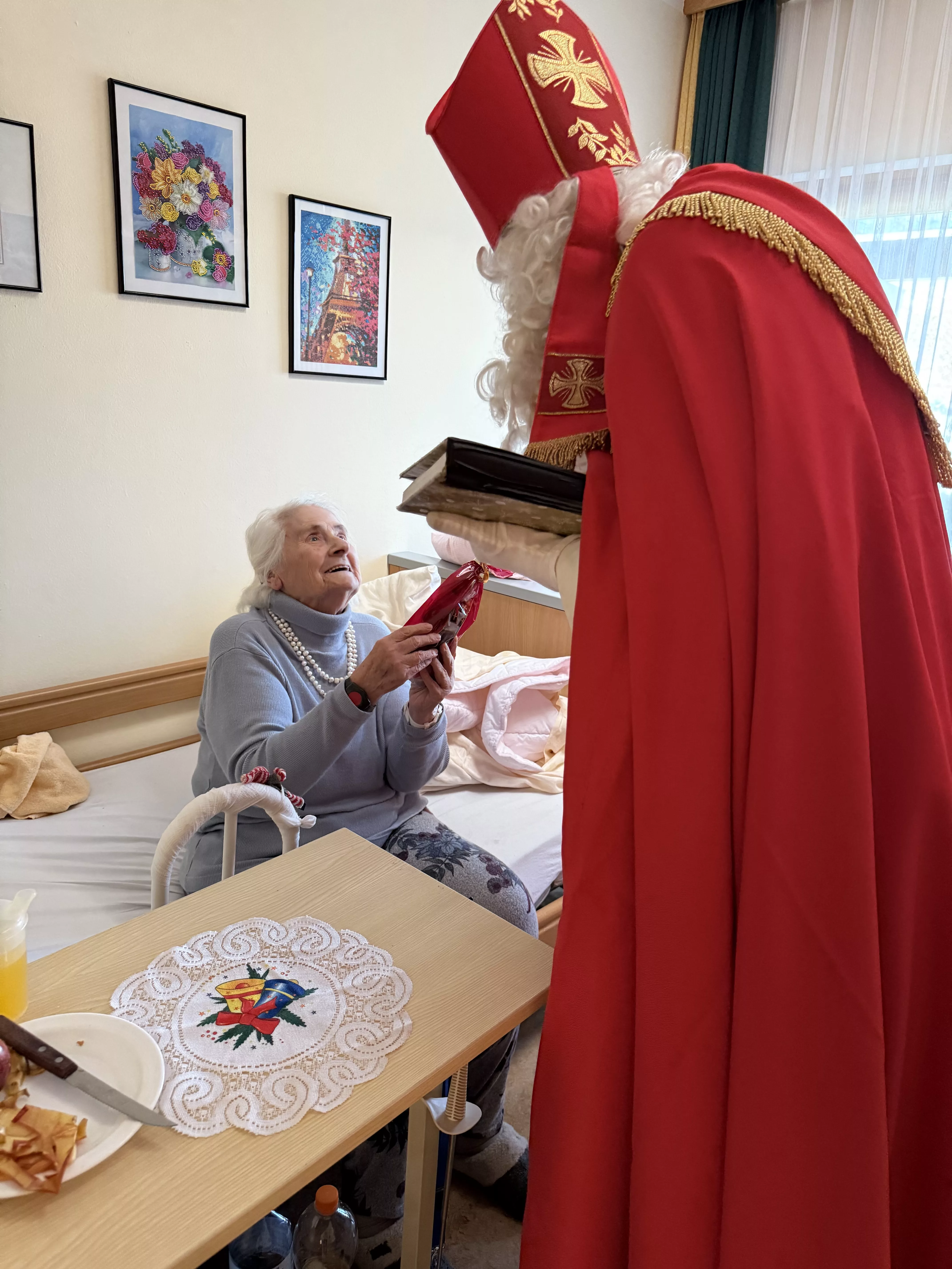 Der Nikolaus (unser lieber Hausmeister, Herr Zussner) brachte all unseren BewohnerInnen ein kleines Geschenk und sprach dazu auch ein paar nette Worte.