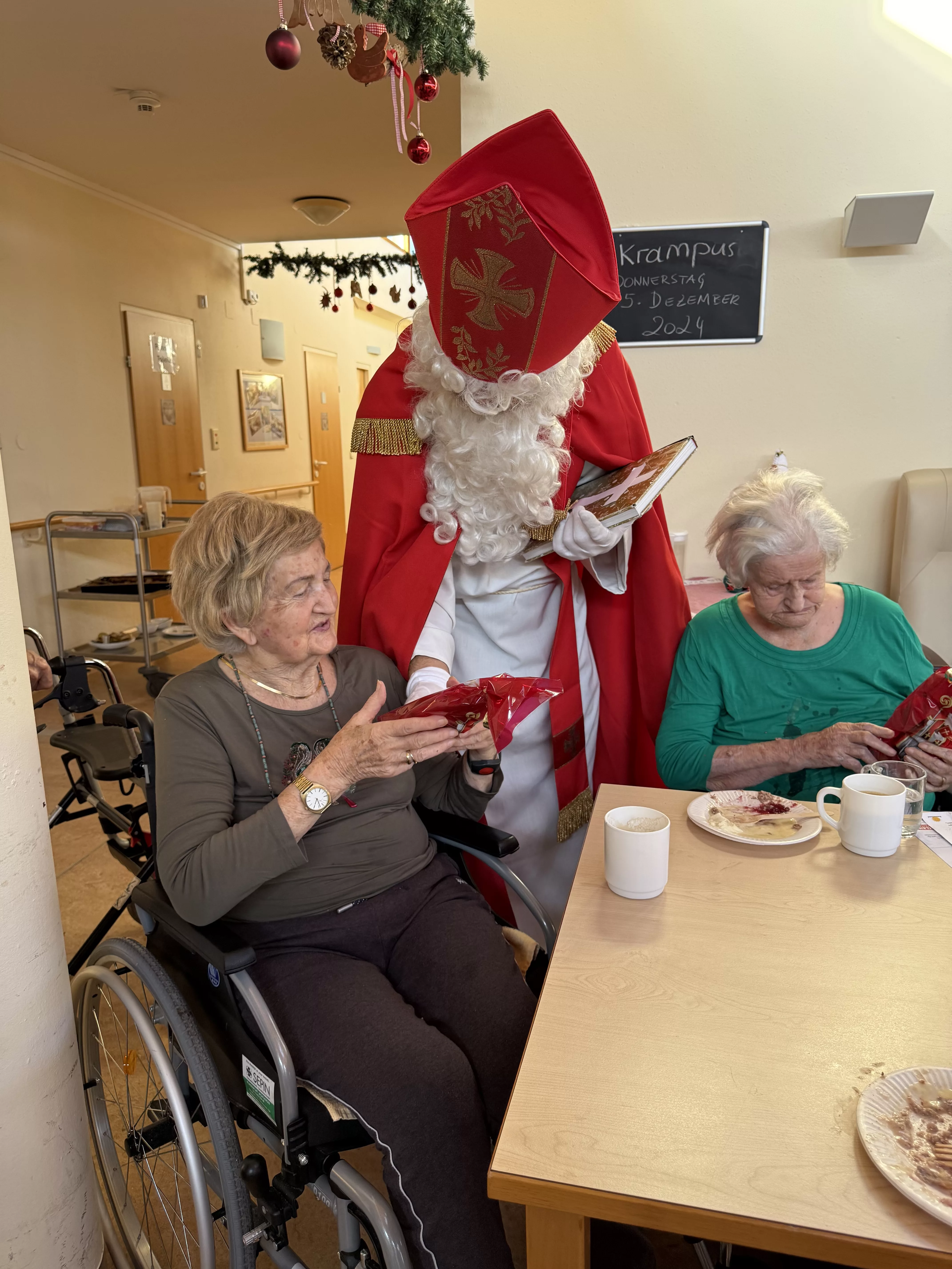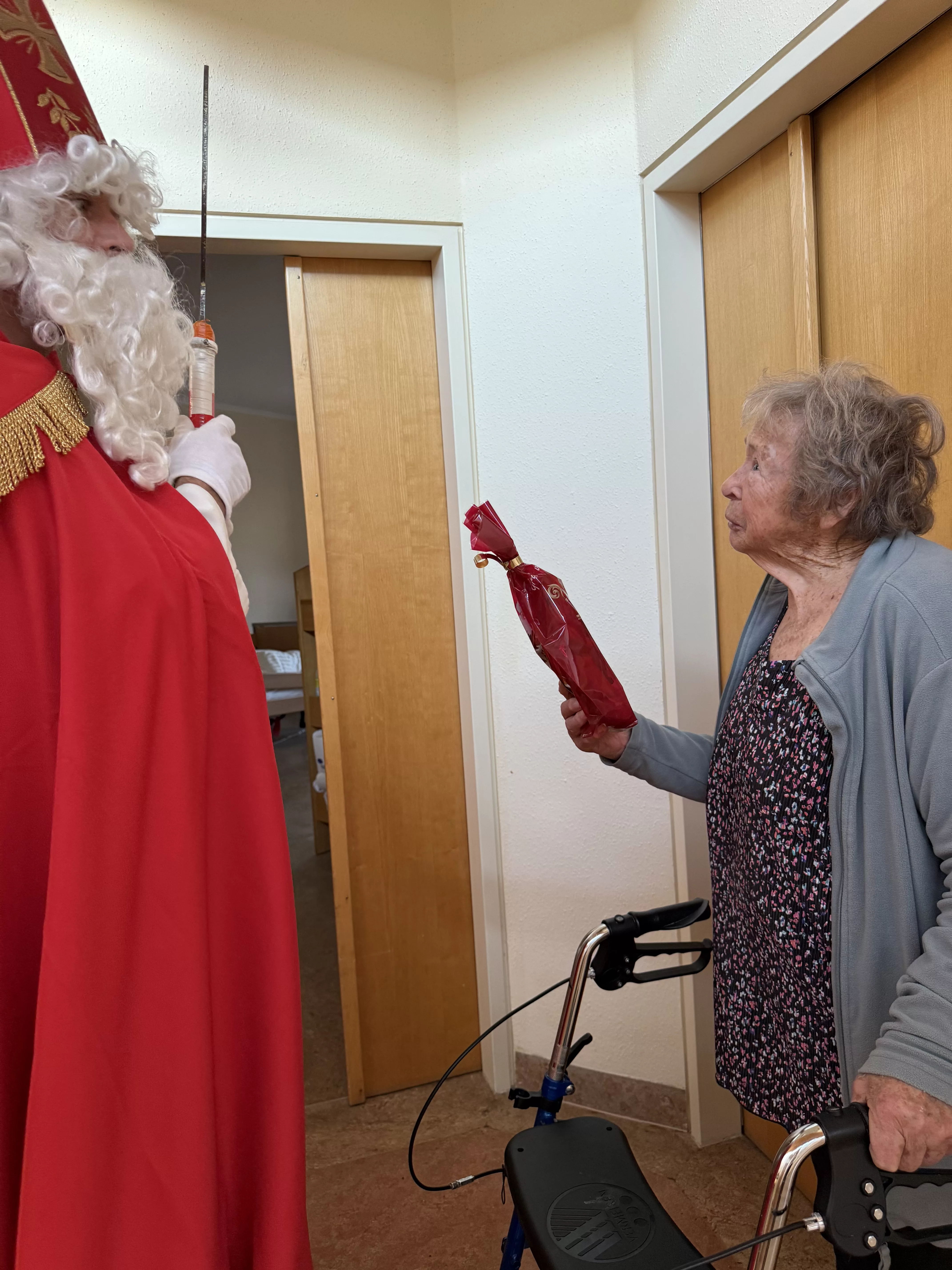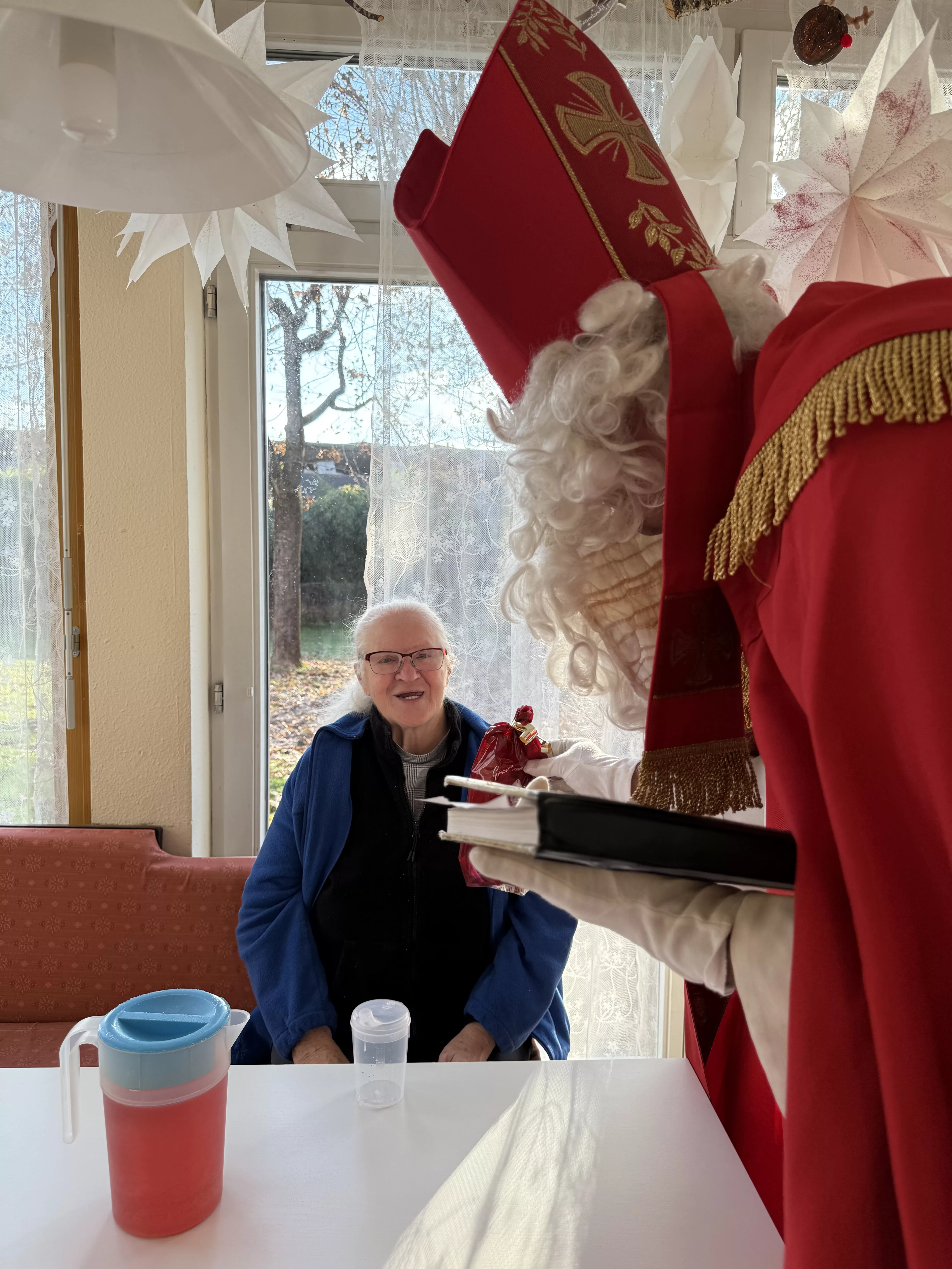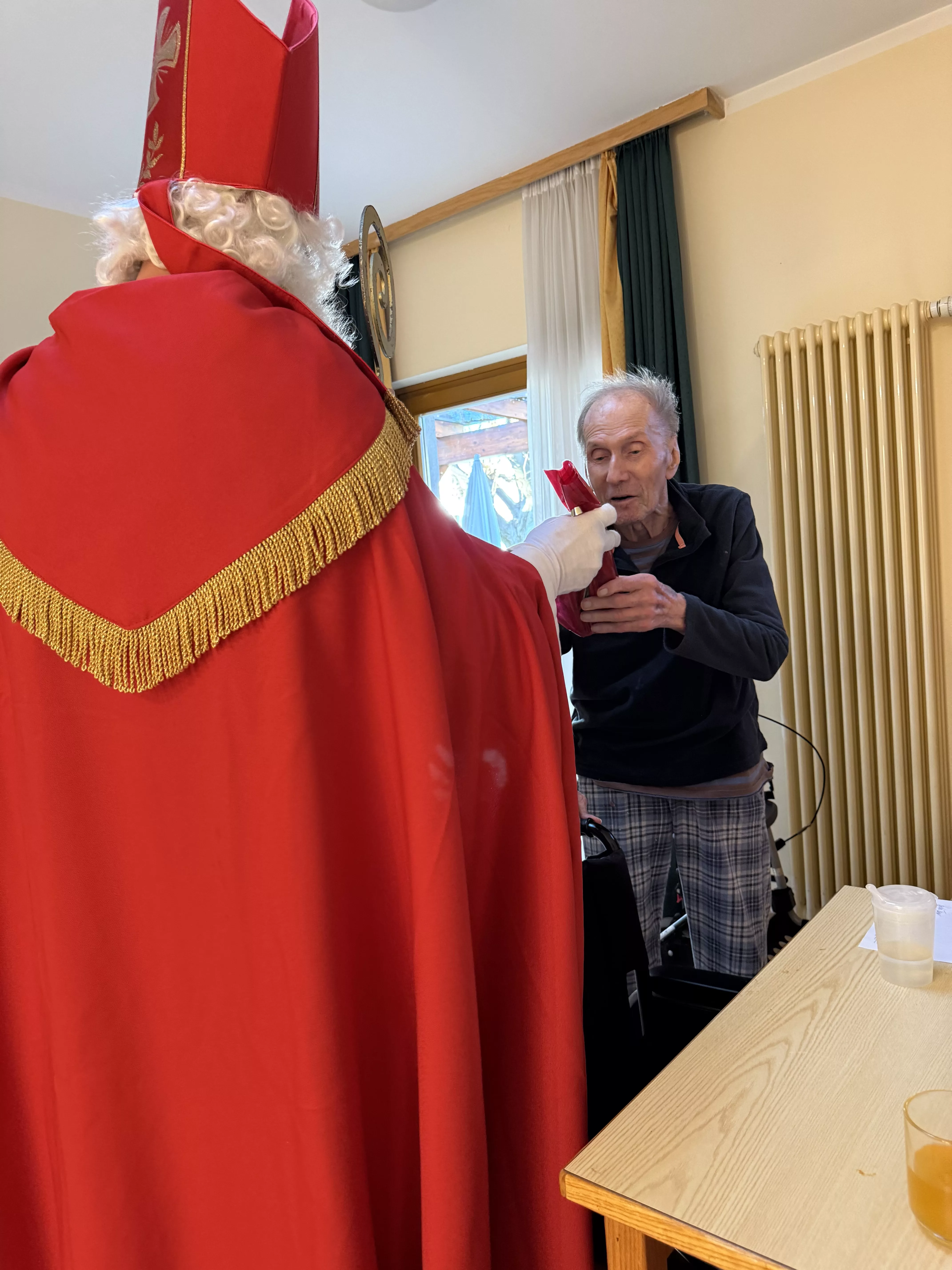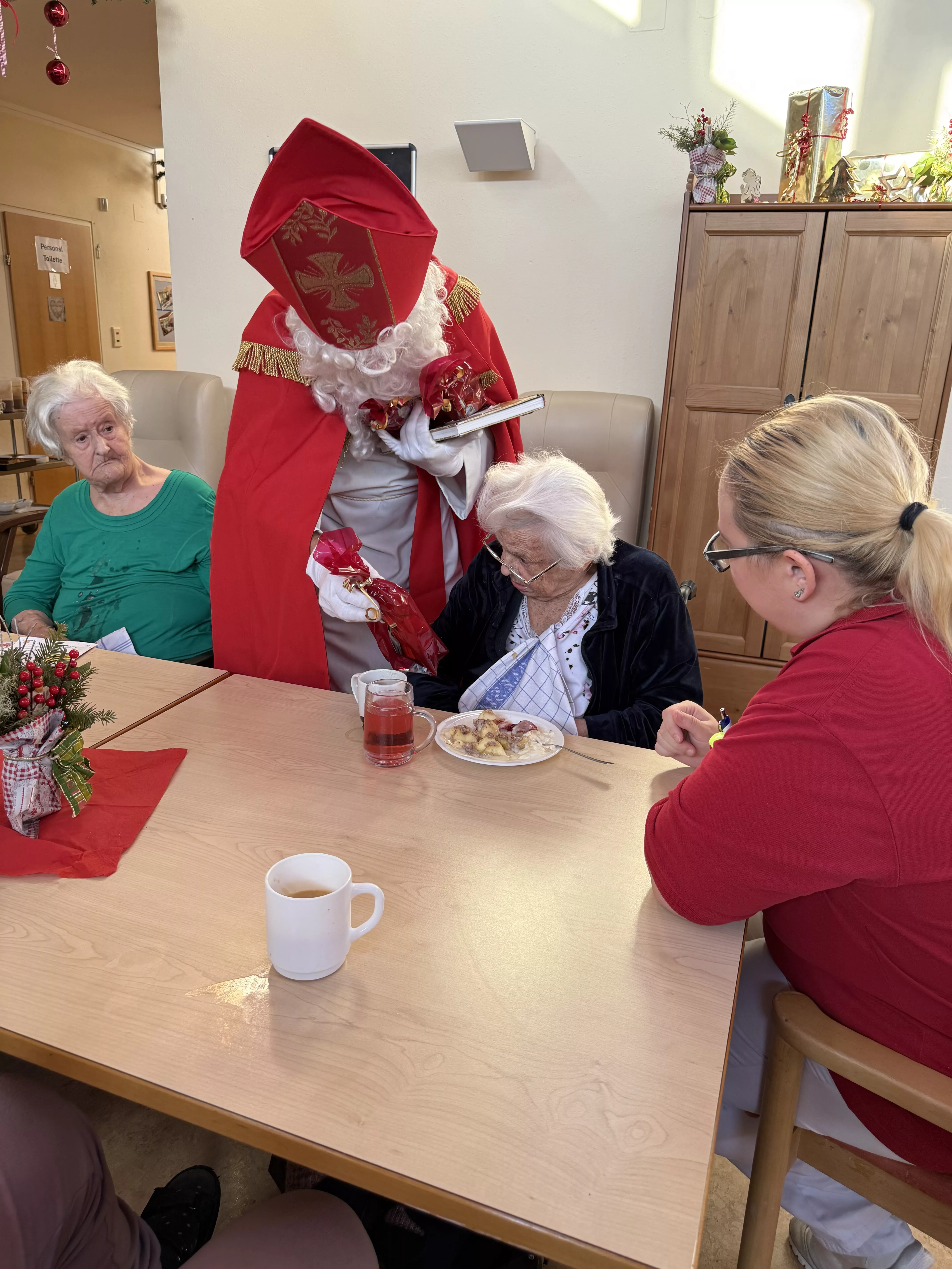 Der Nikolaus (unser lieber Hausmeister, Herr Zussner) brachte all unseren BewohnerInnen ein kleines Geschenk und sprach dazu auch ein paar nette Worte.