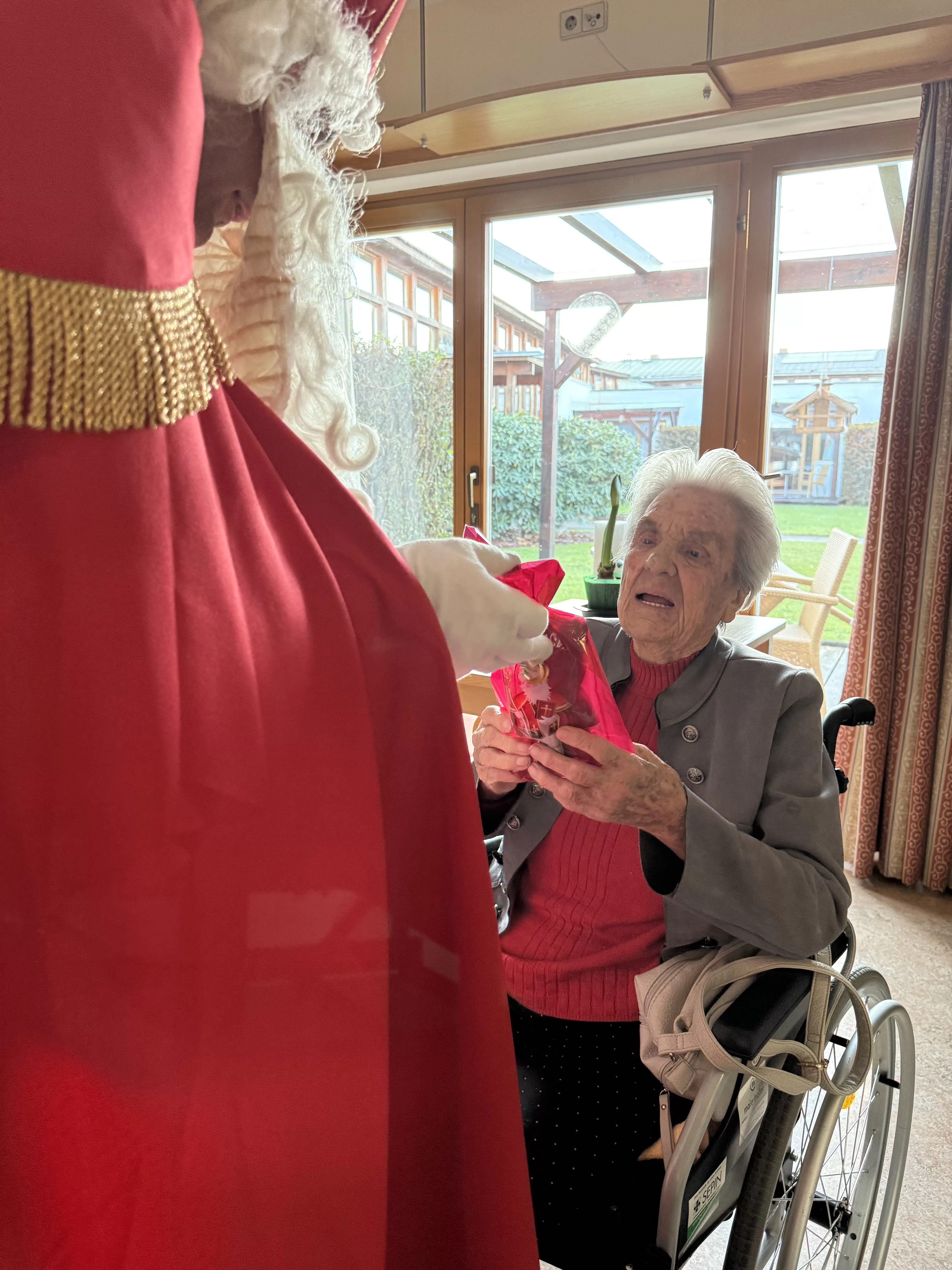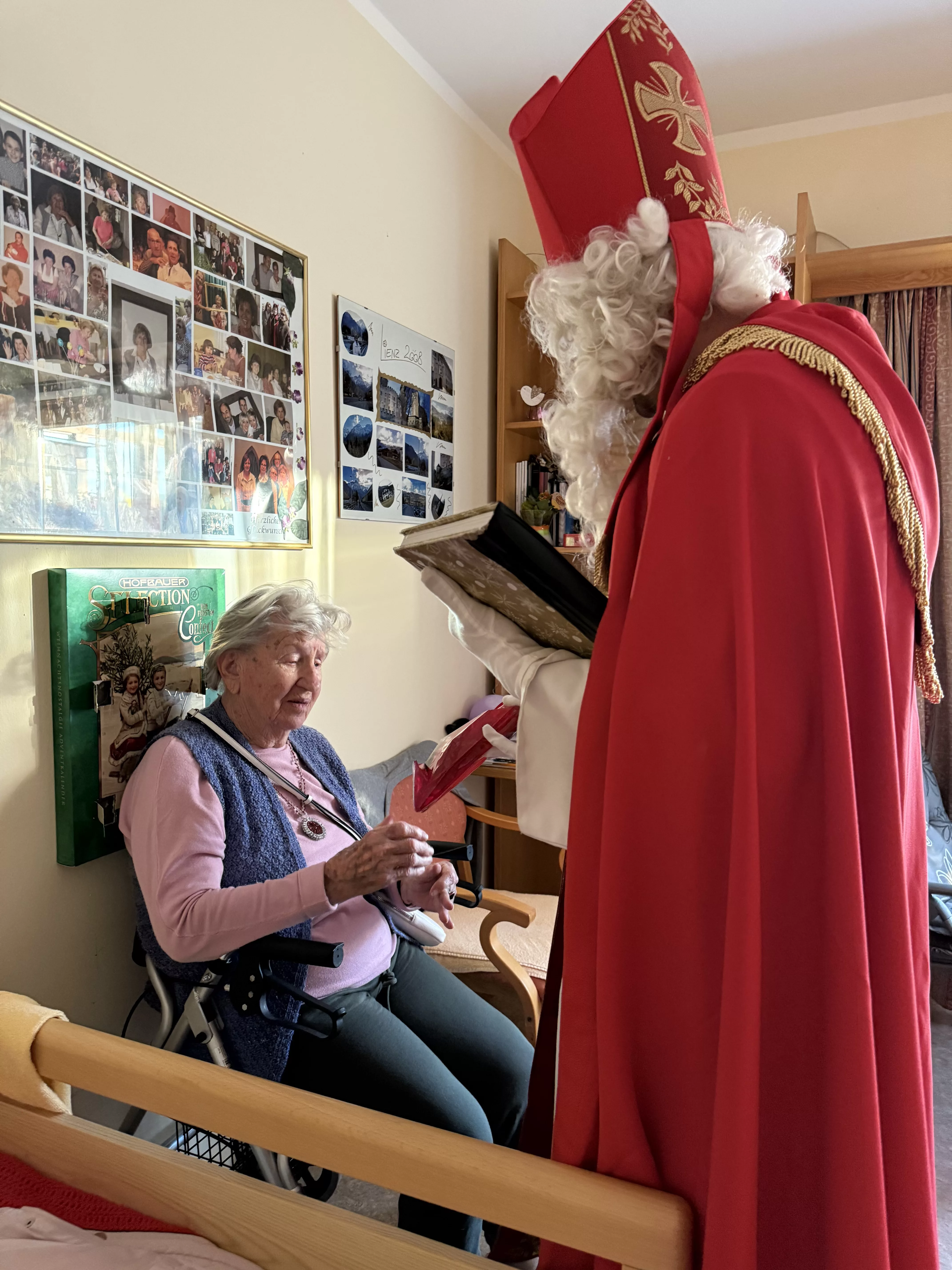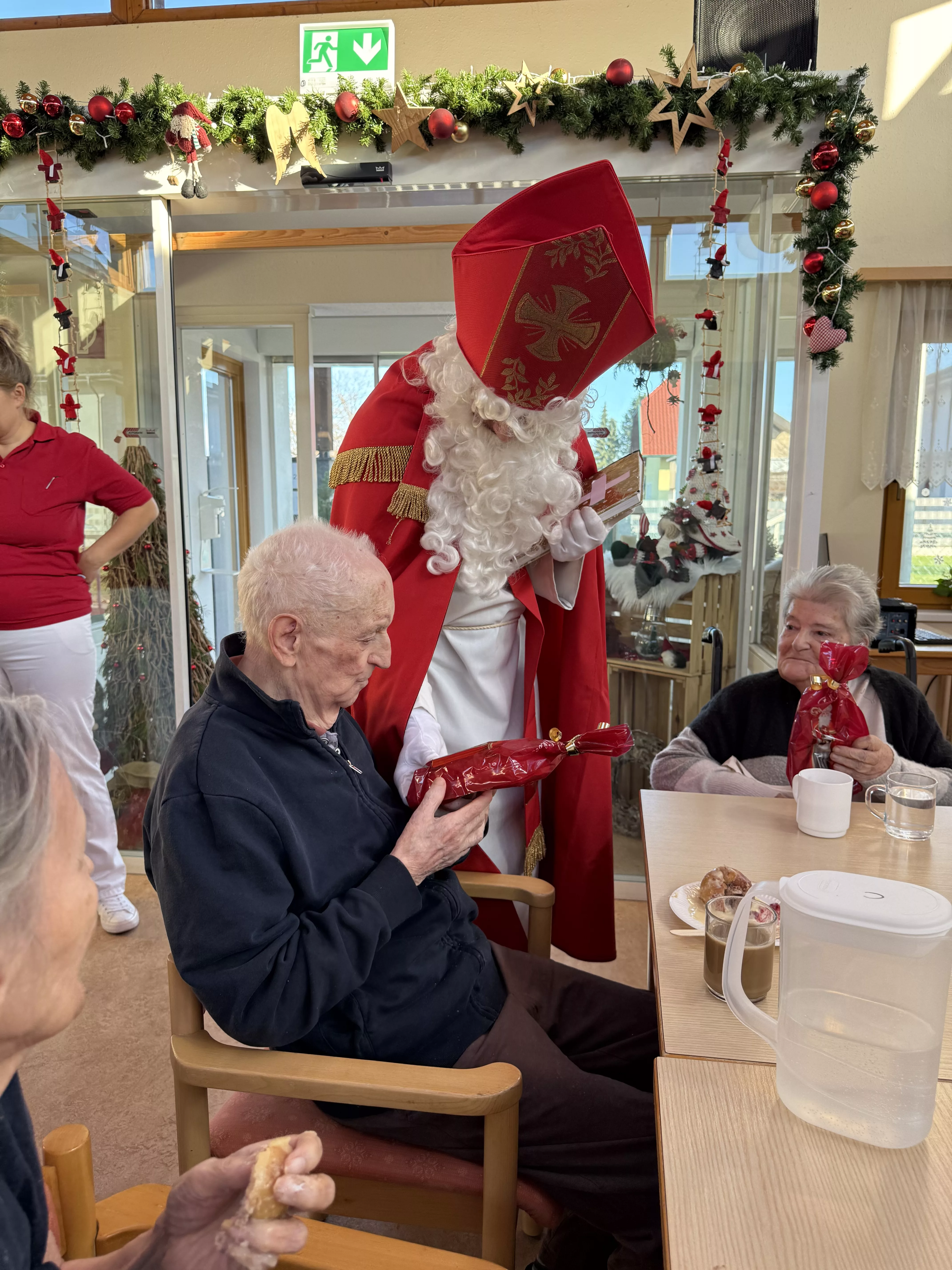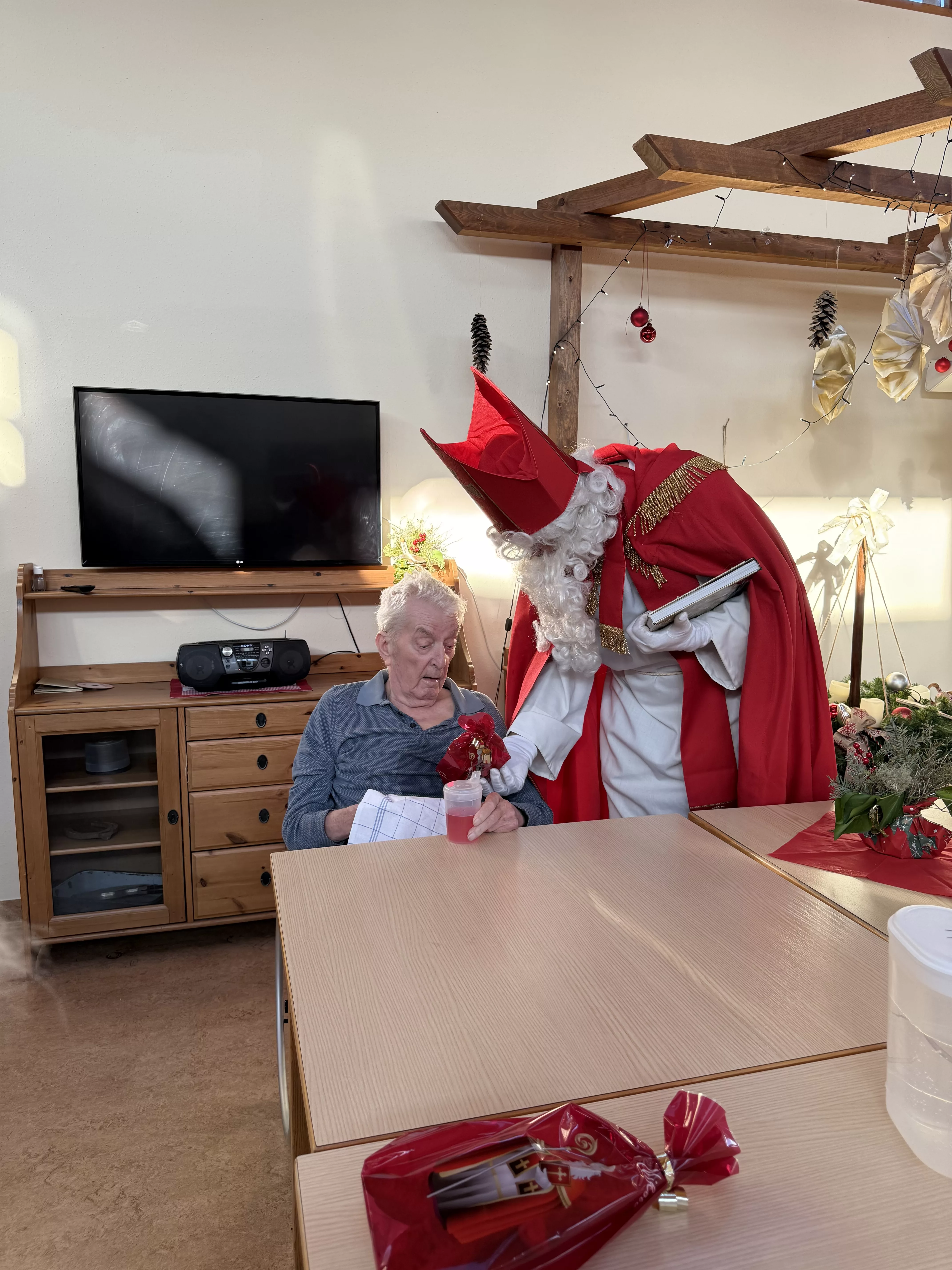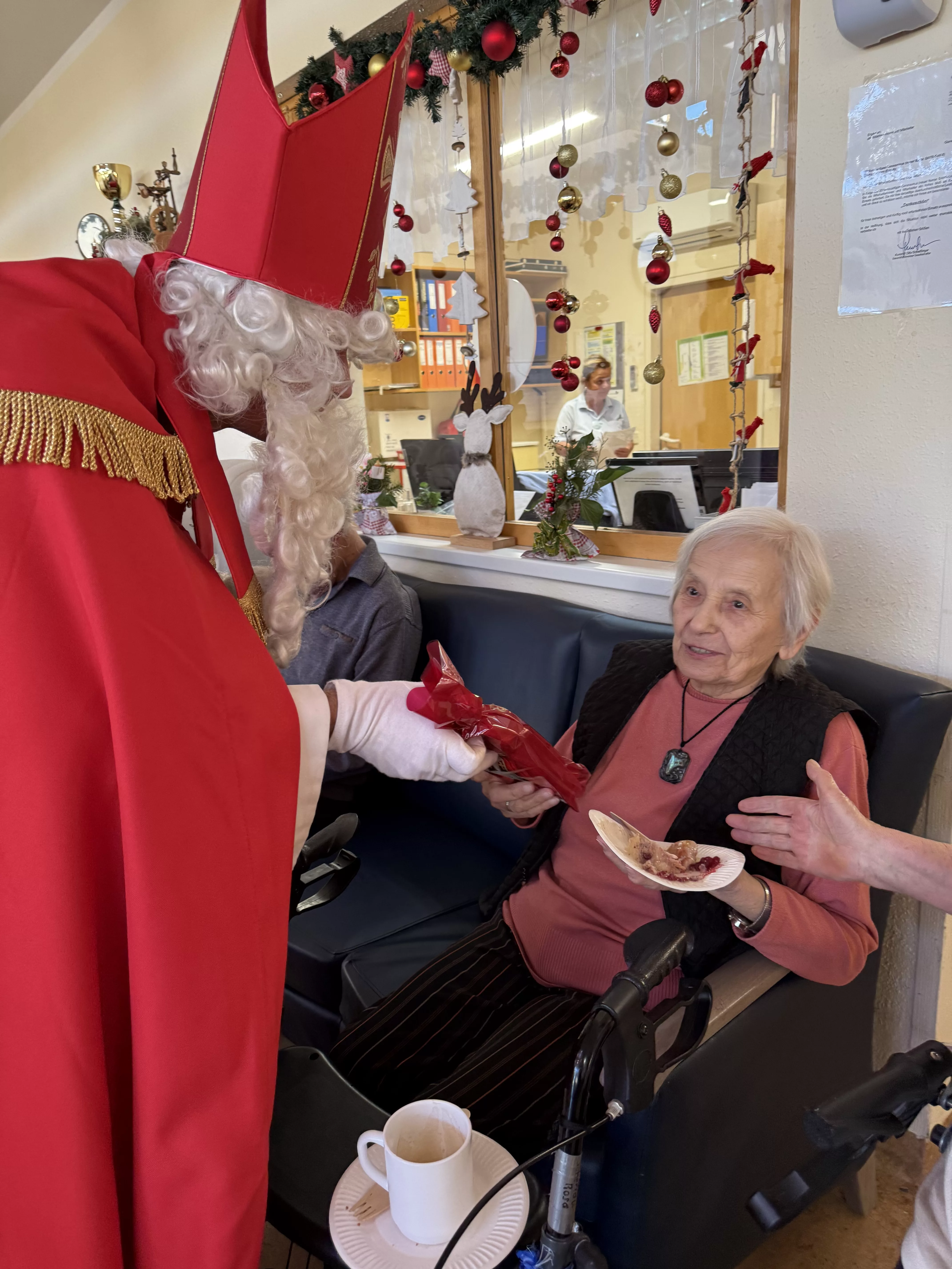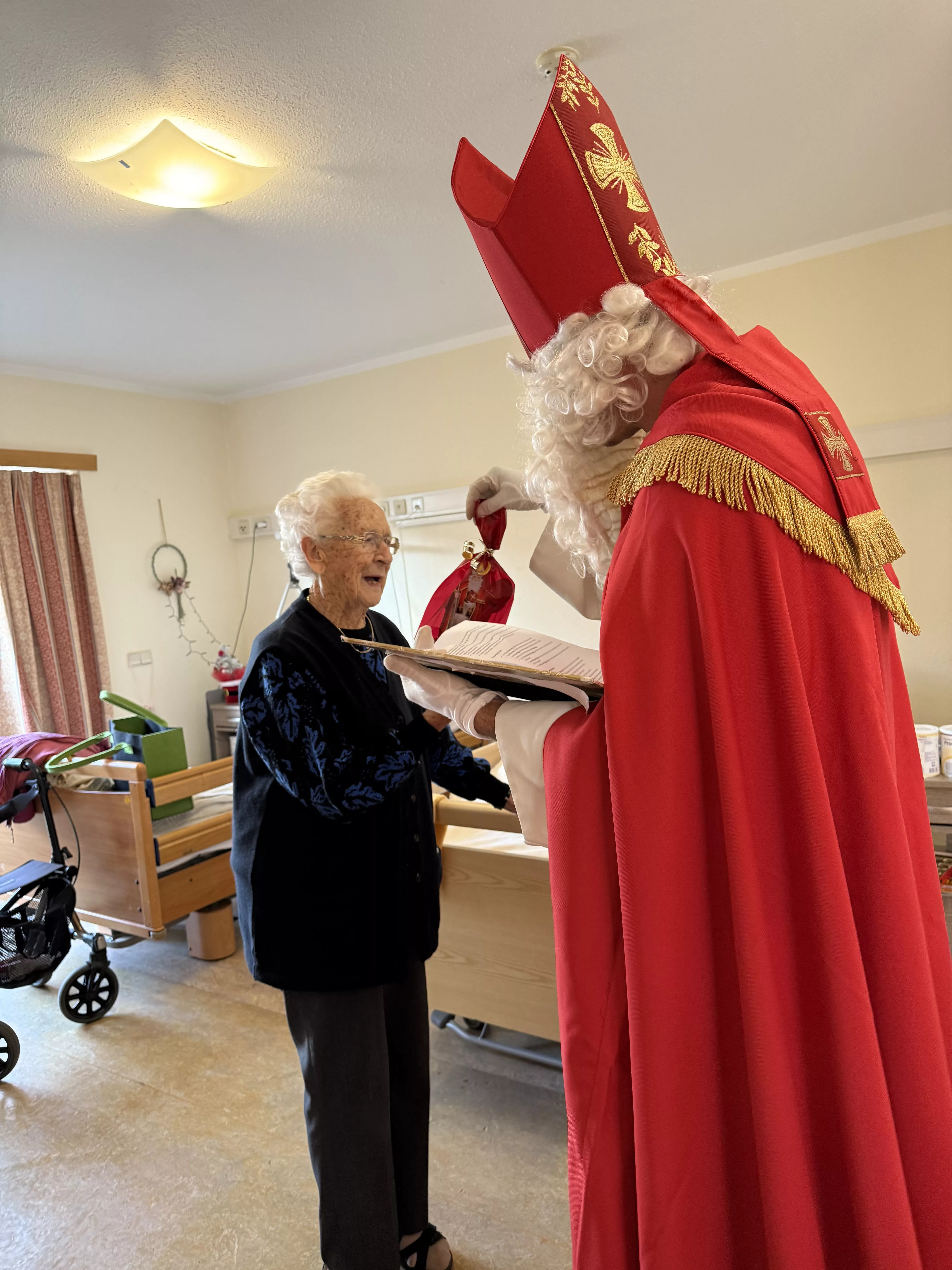 Der Nikolaus (unser lieber Hausmeister, Herr Zussner) brachte all unseren BewohnerInnen ein kleines Geschenk und sprach dazu auch ein paar nette Worte.