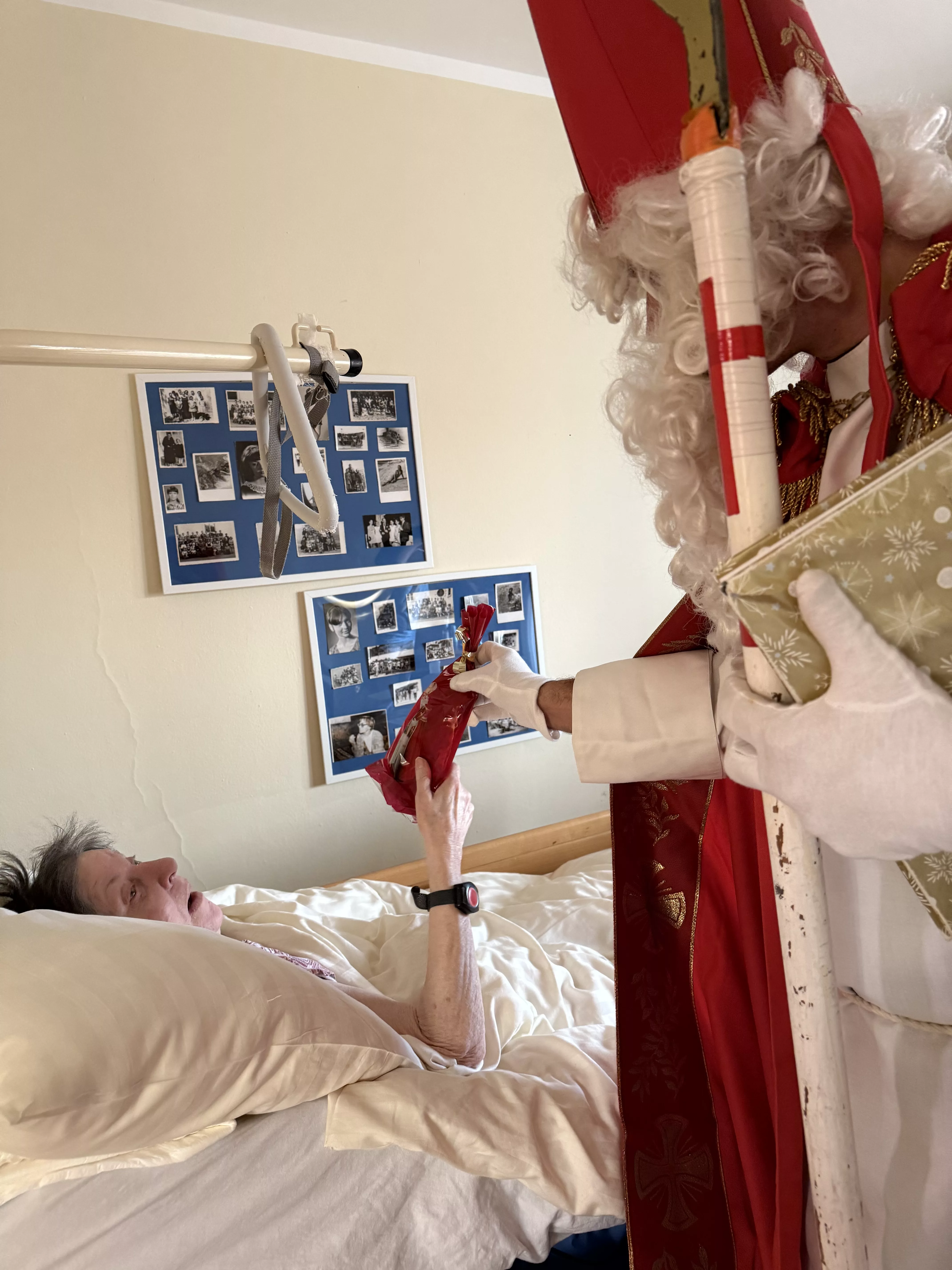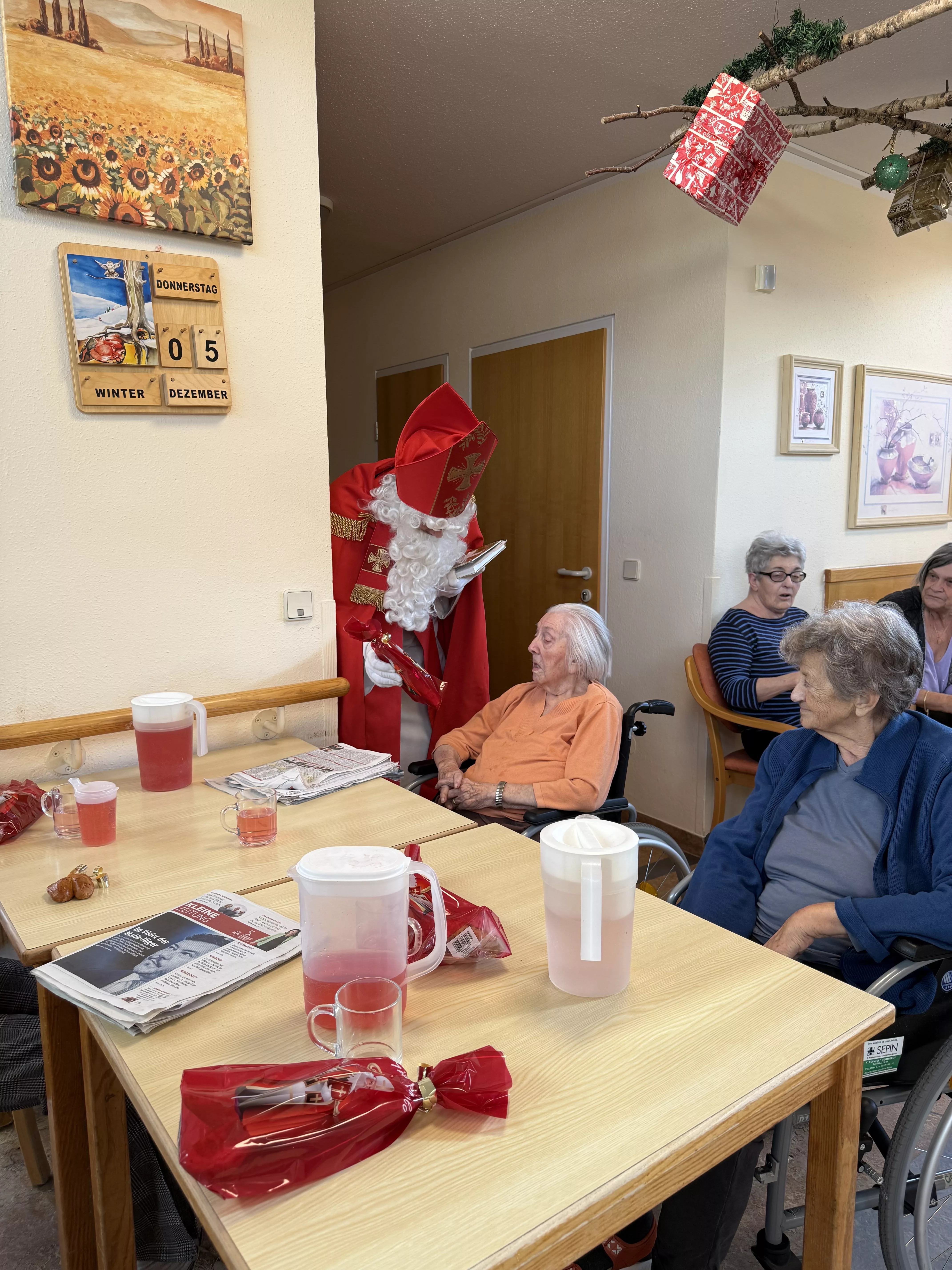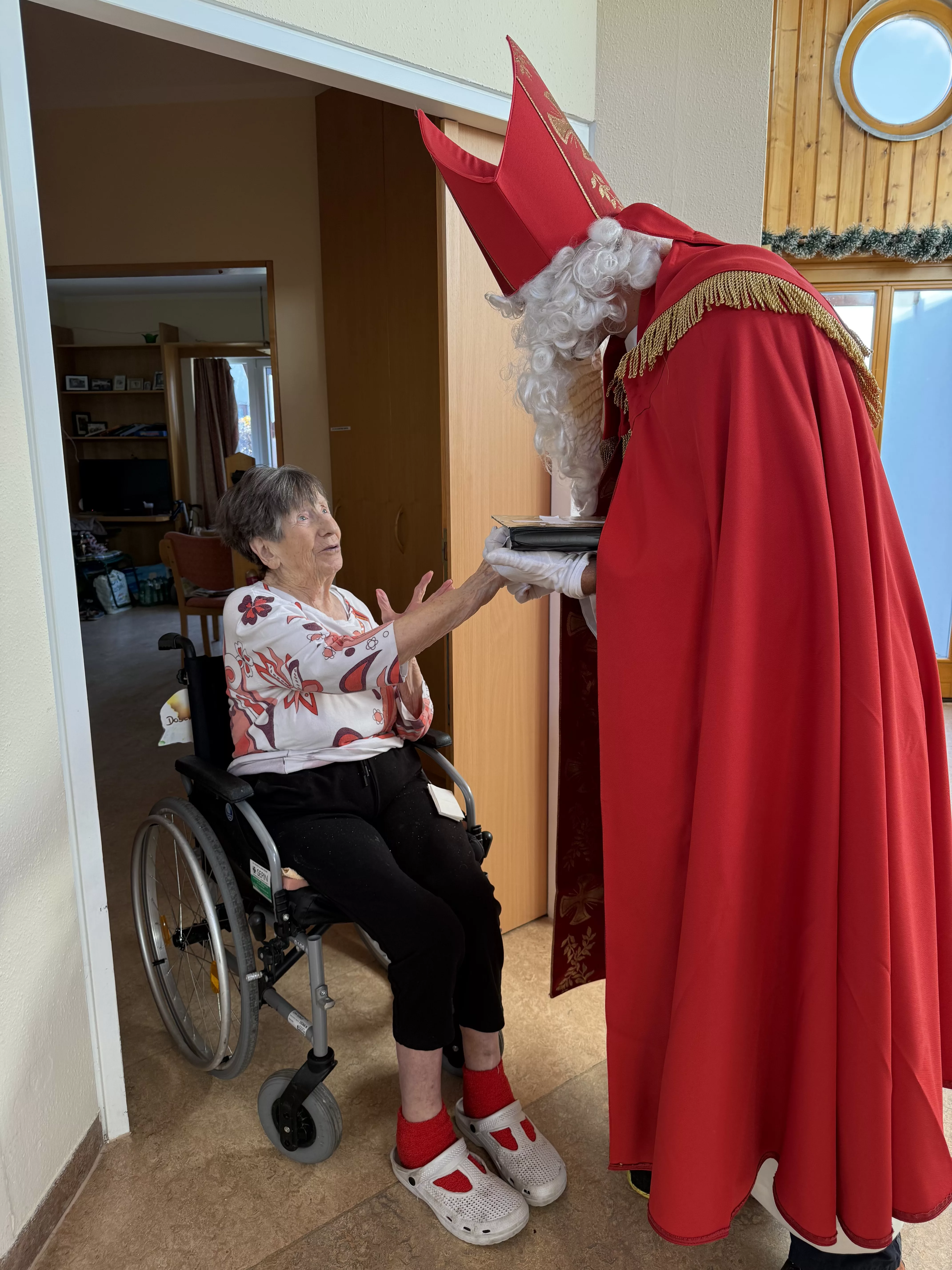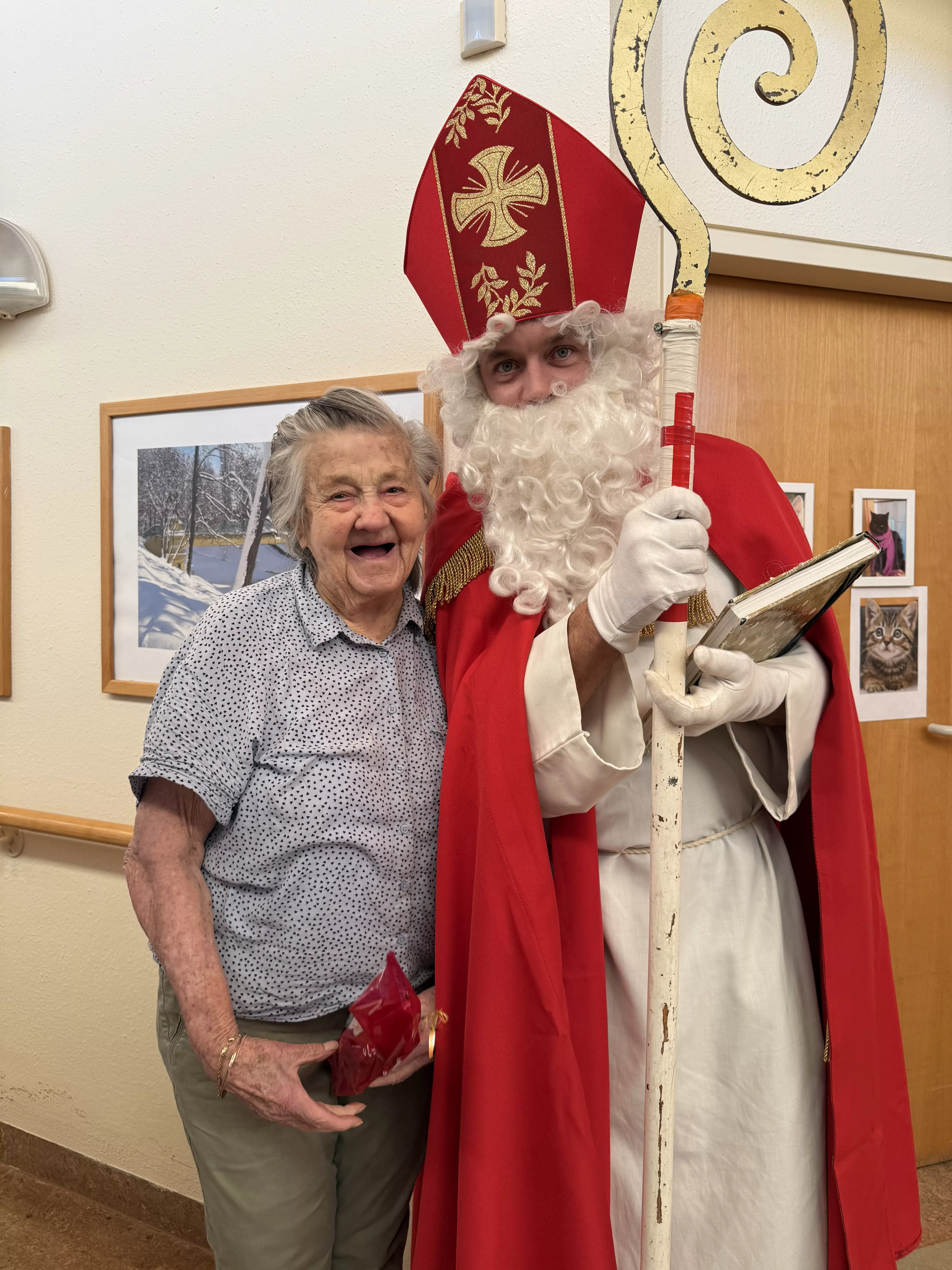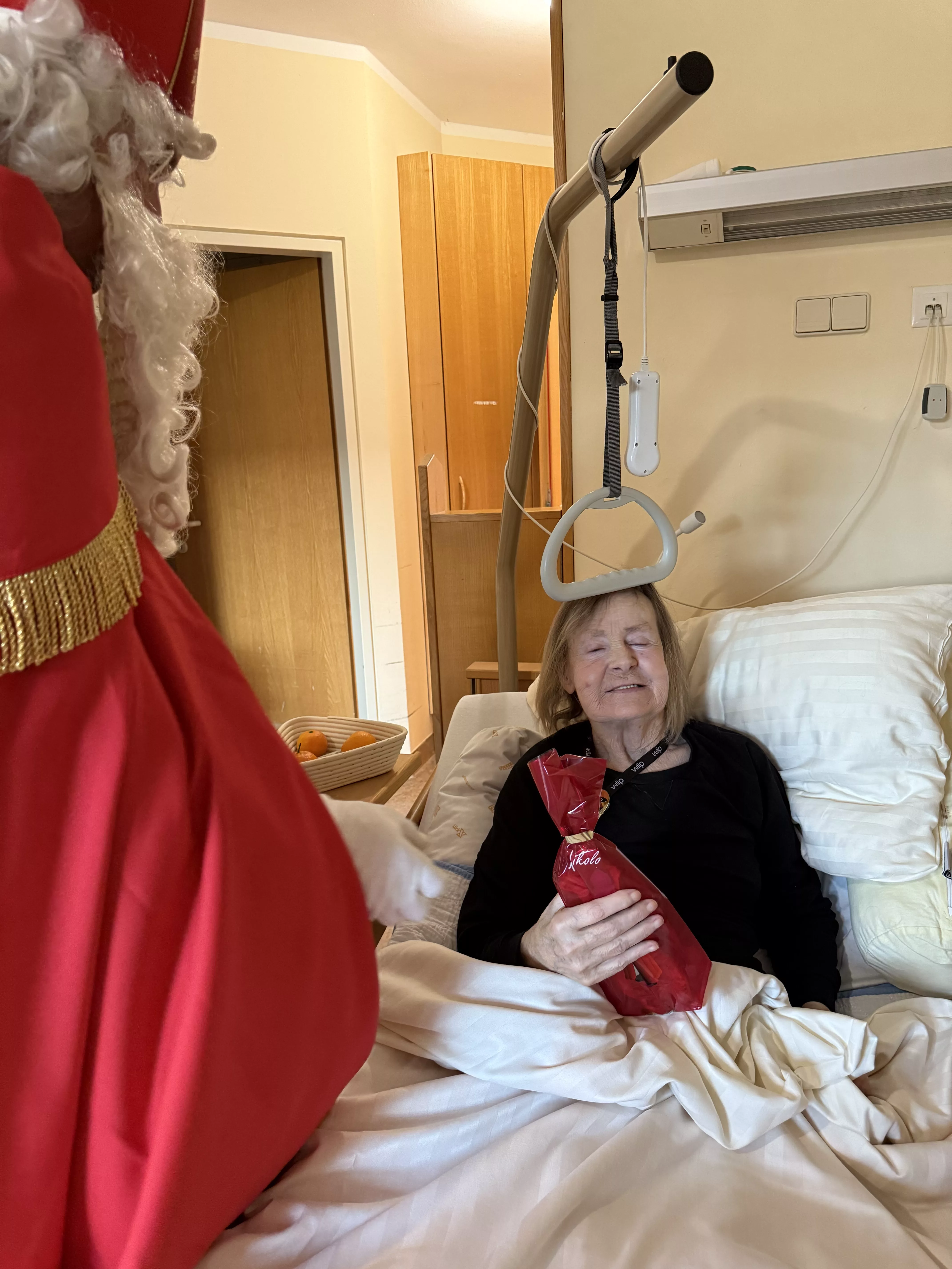Der Nikolaus (unser lieber Hausmeister, Herr Zussner) brachte all unseren BewohnerInnen ein kleines Geschenk und sprach dazu auch ein paar nette Worte.