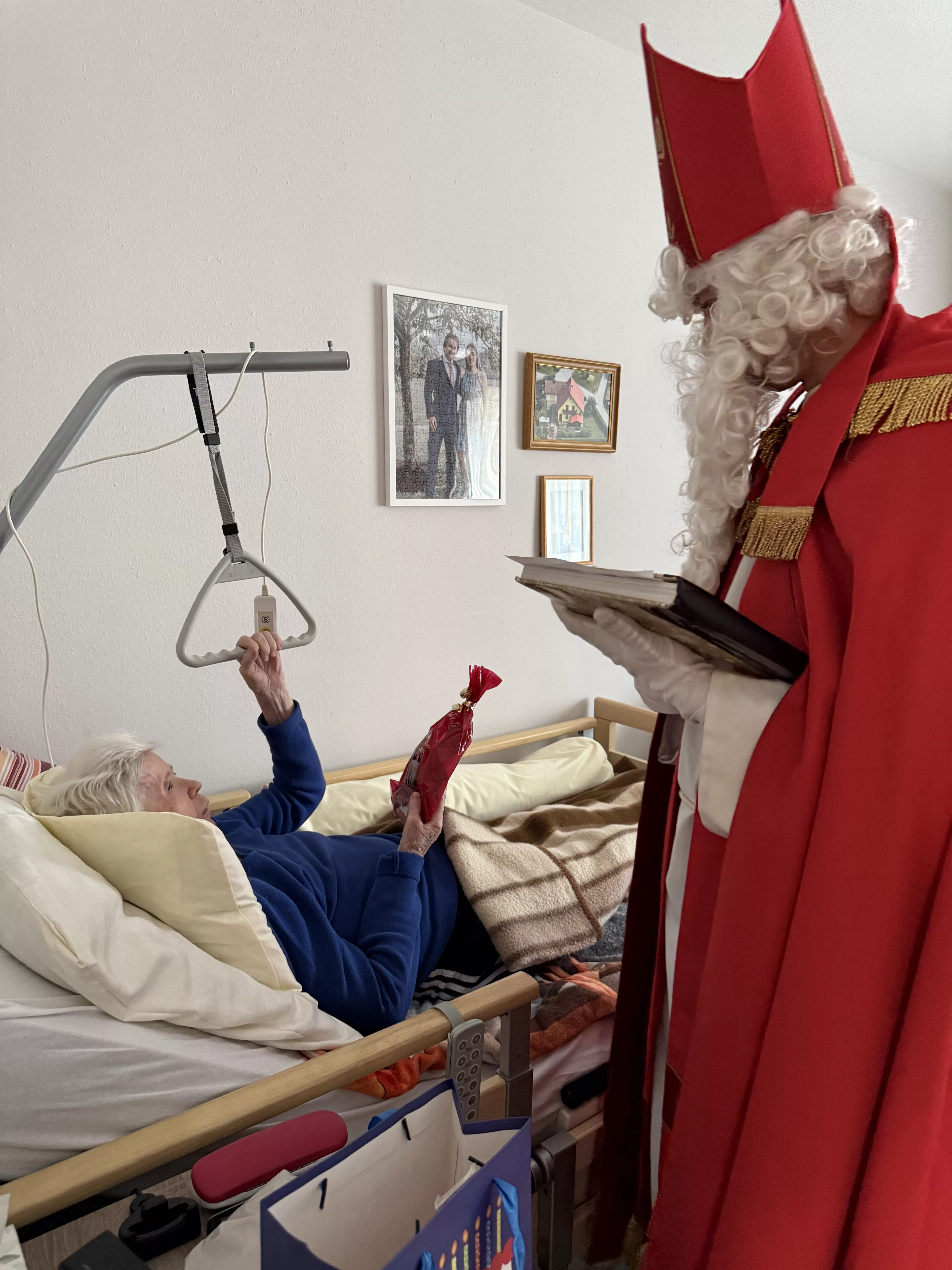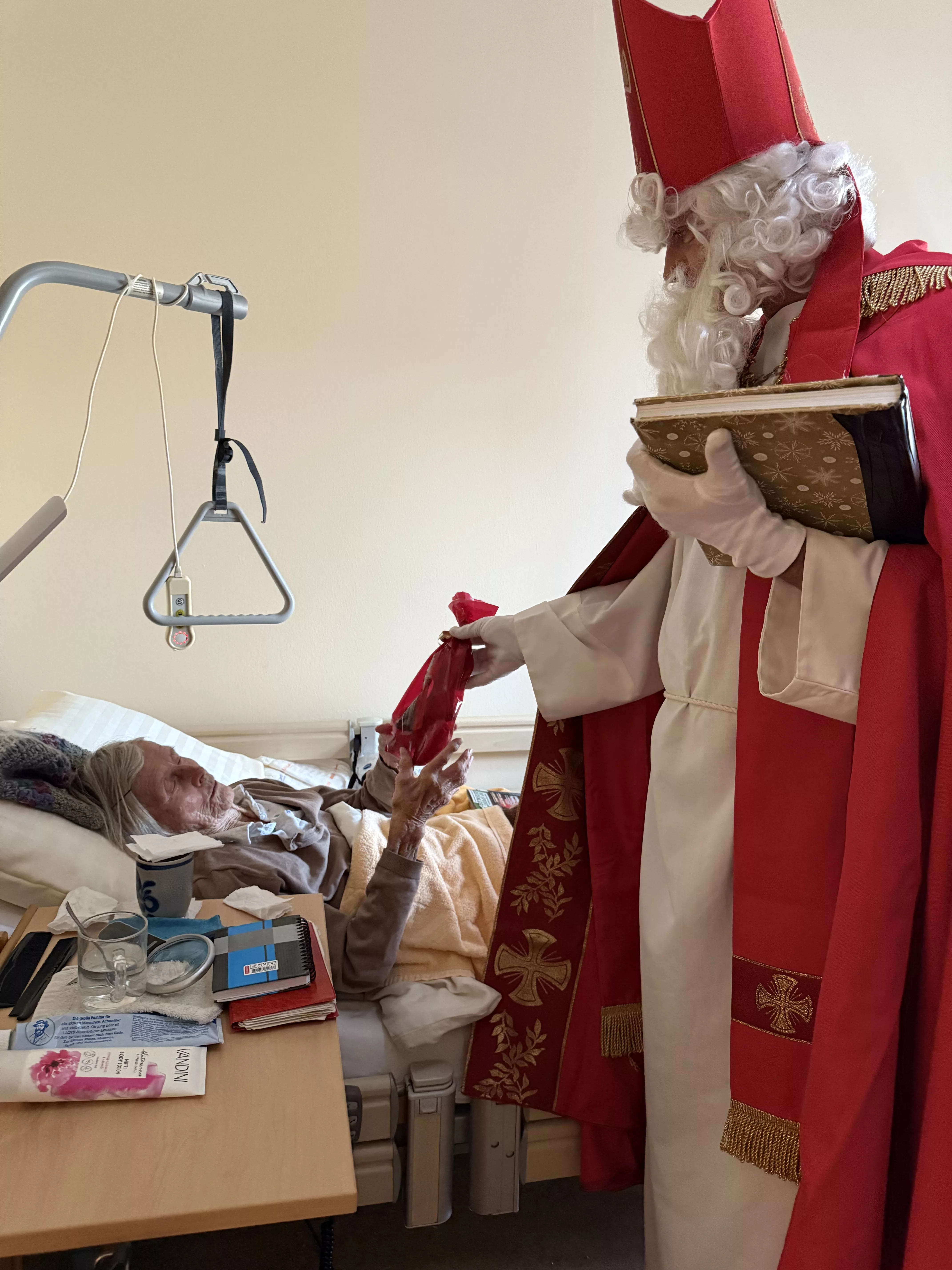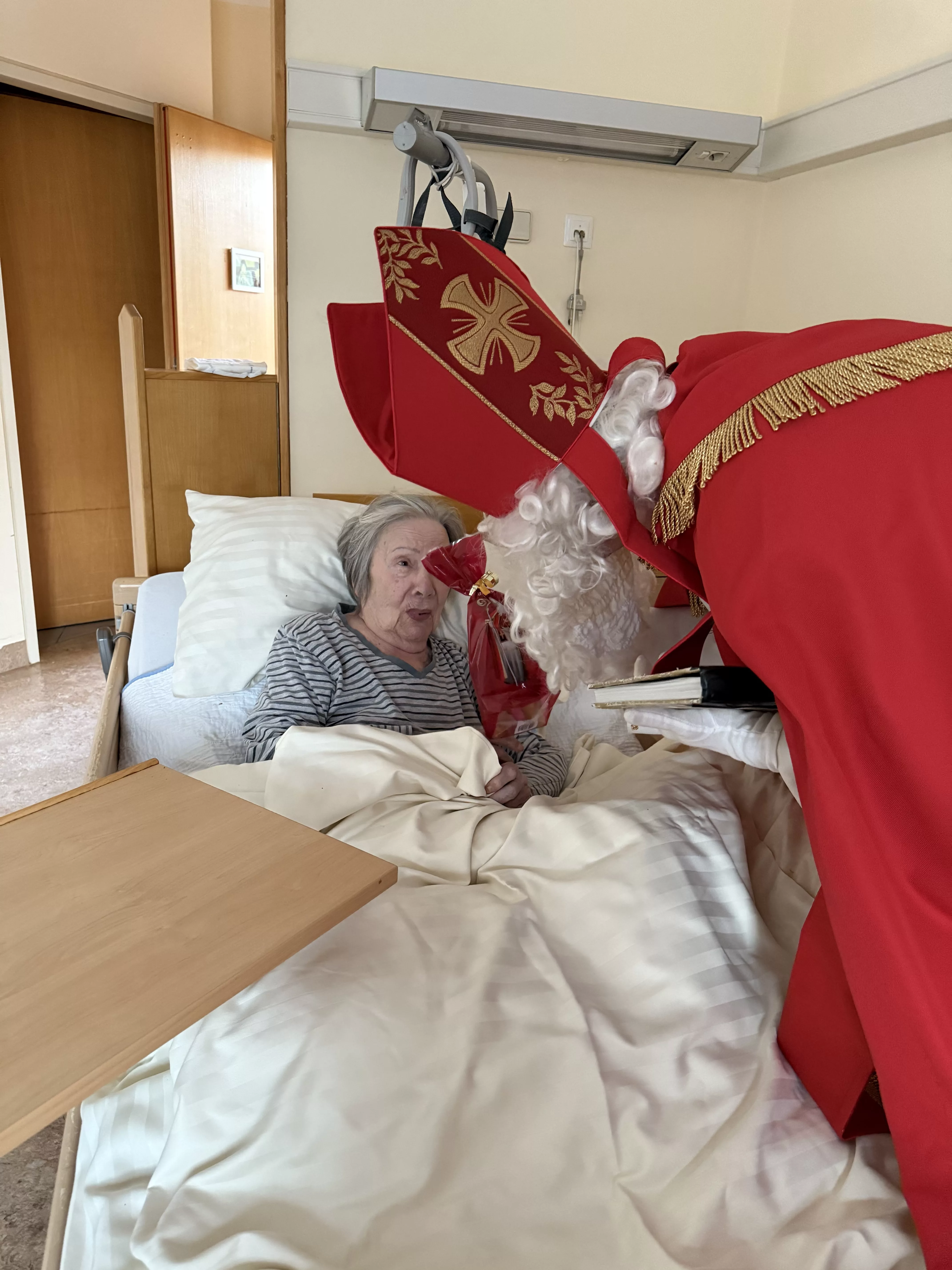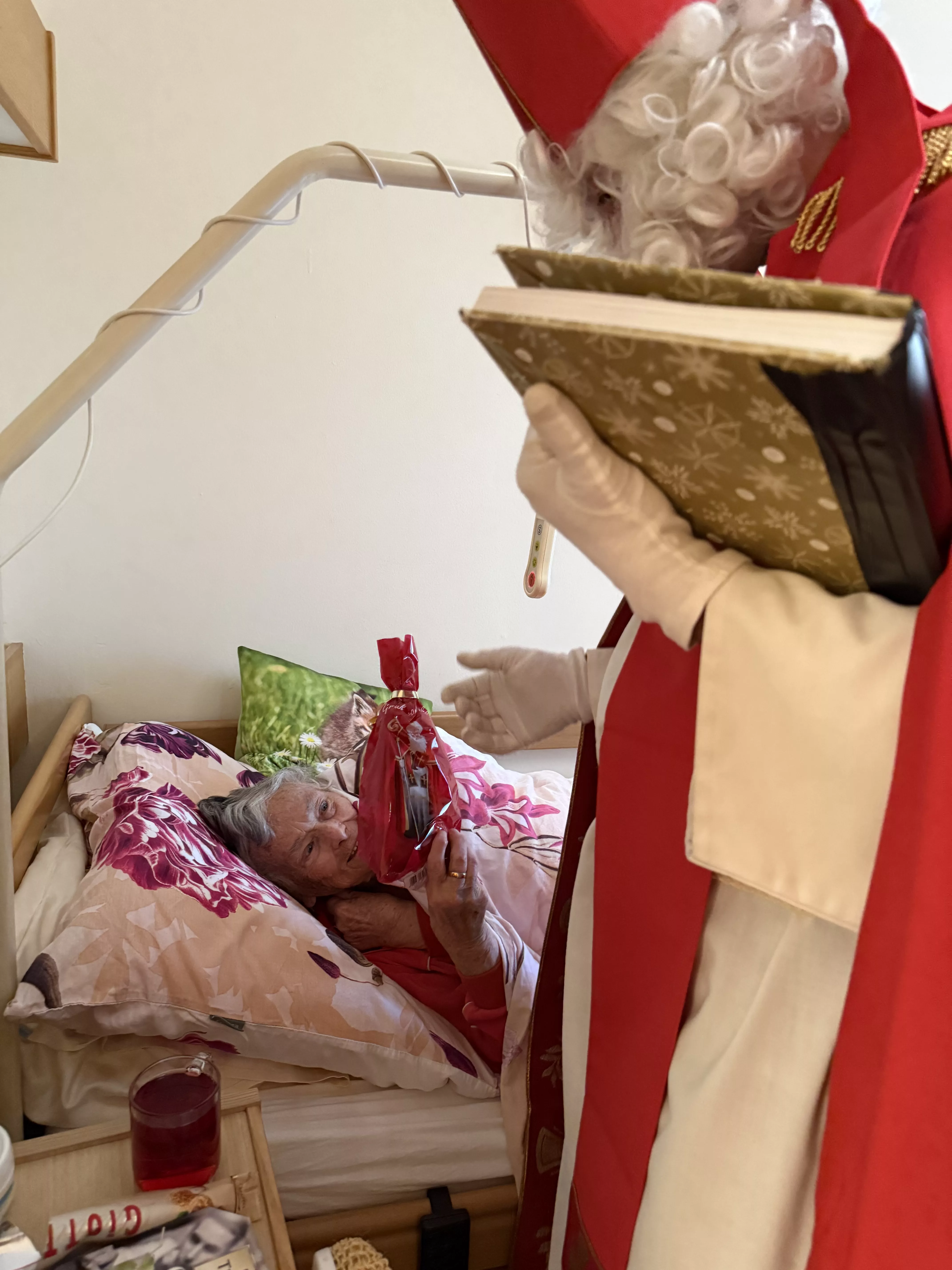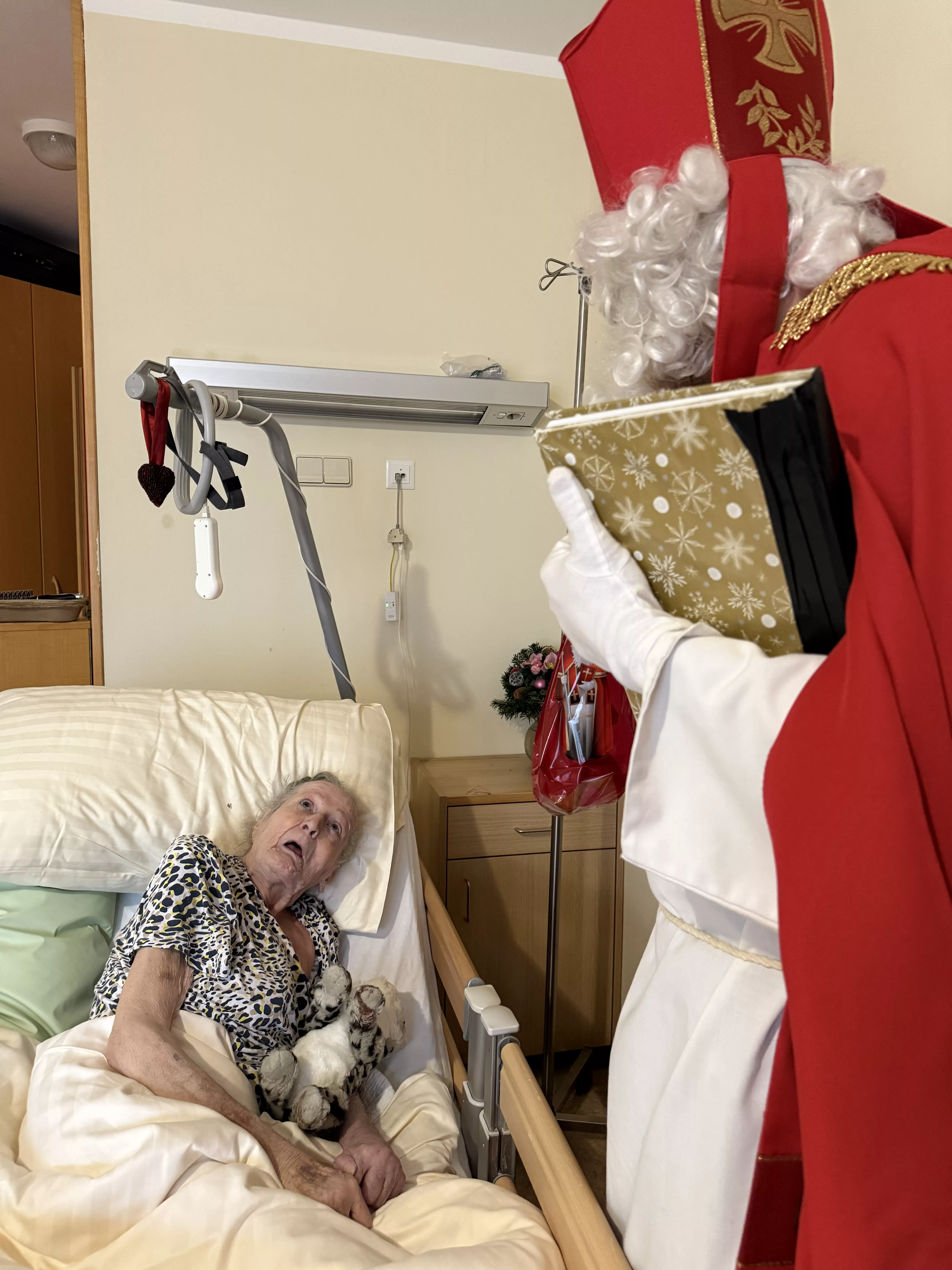 Der Nikolaus (unser lieber Hausmeister, Herr Zussner) brachte all unseren BewohnerInnen ein kleines Geschenk und sprach dazu auch ein paar nette Worte.