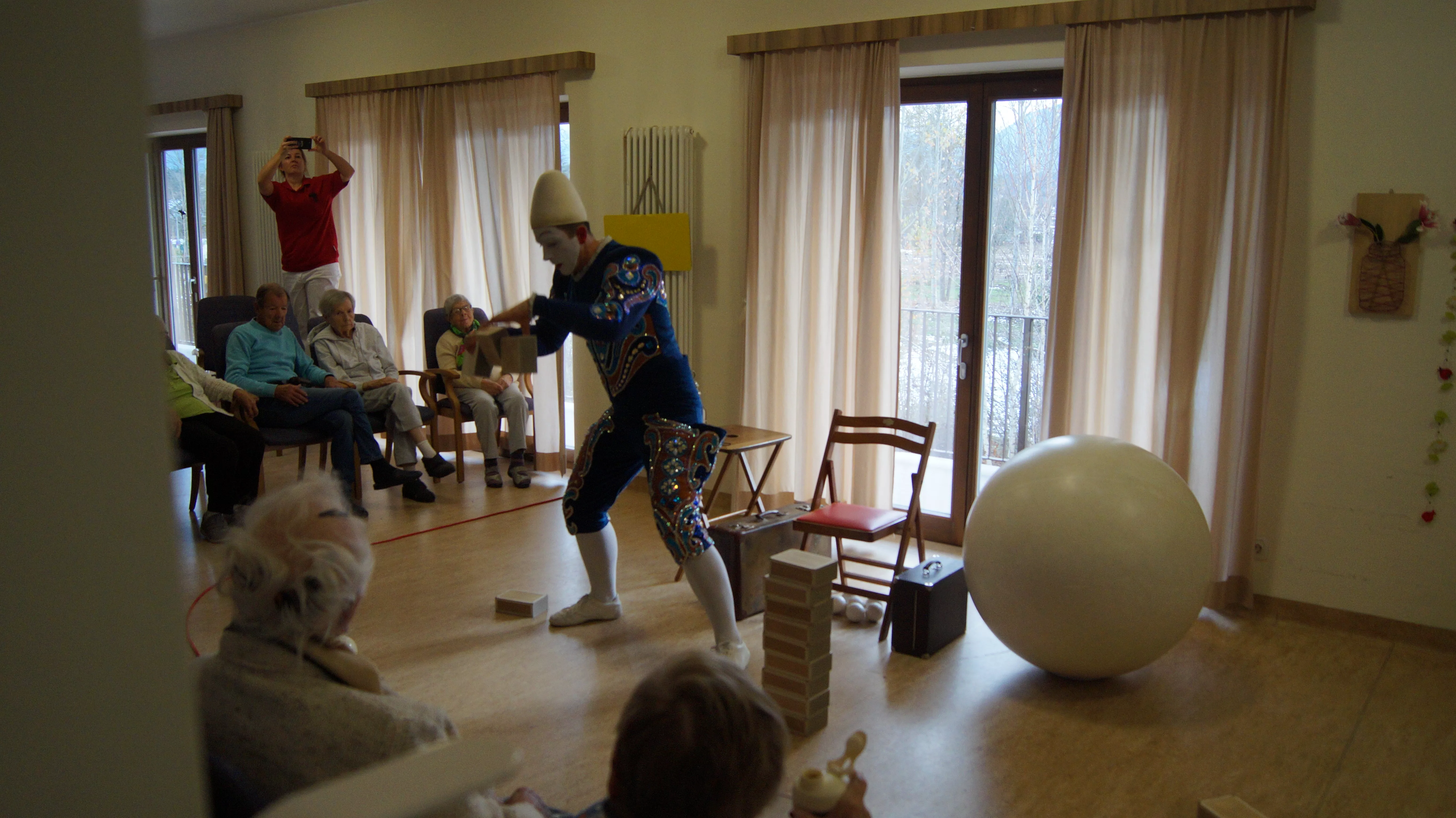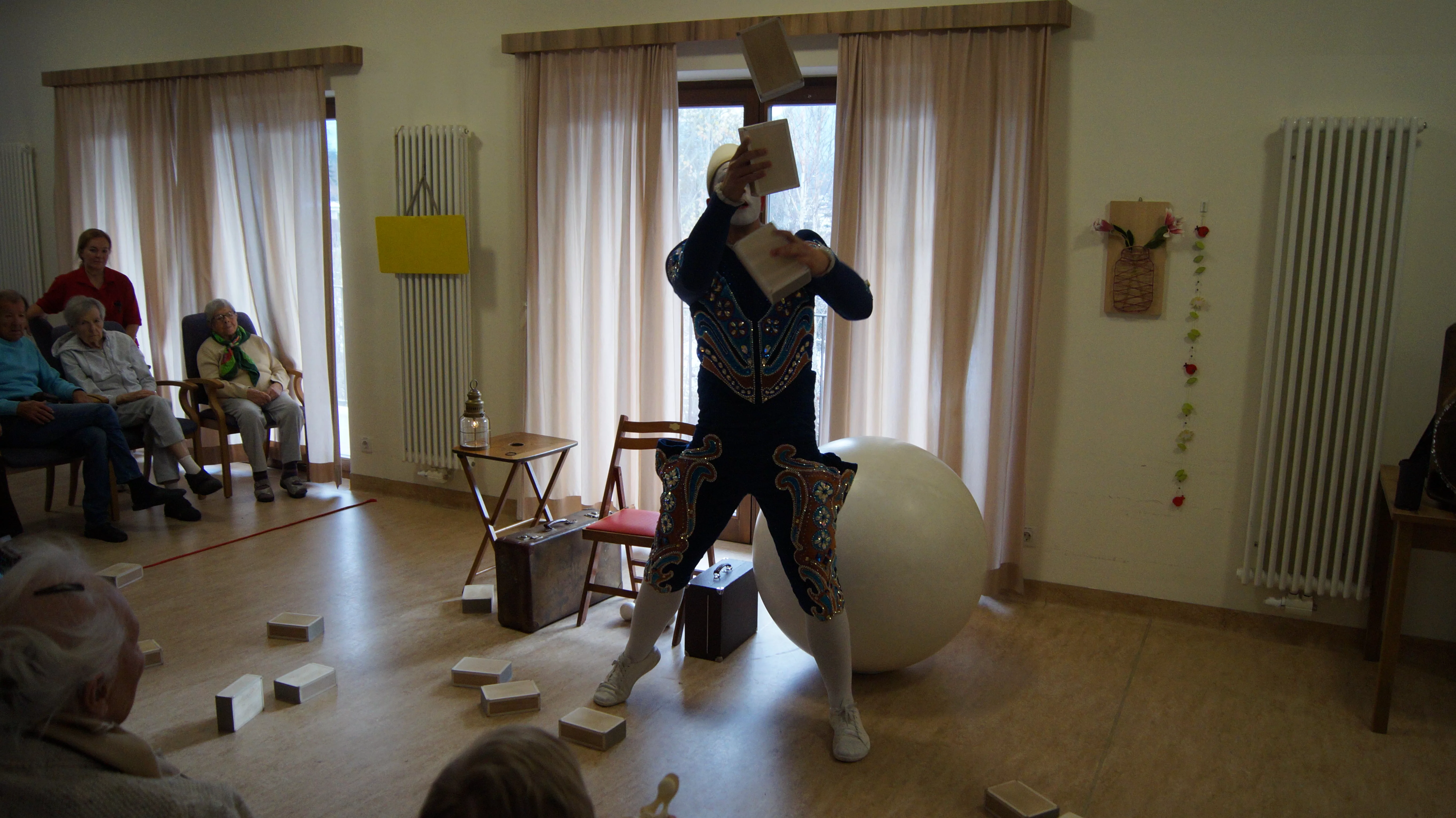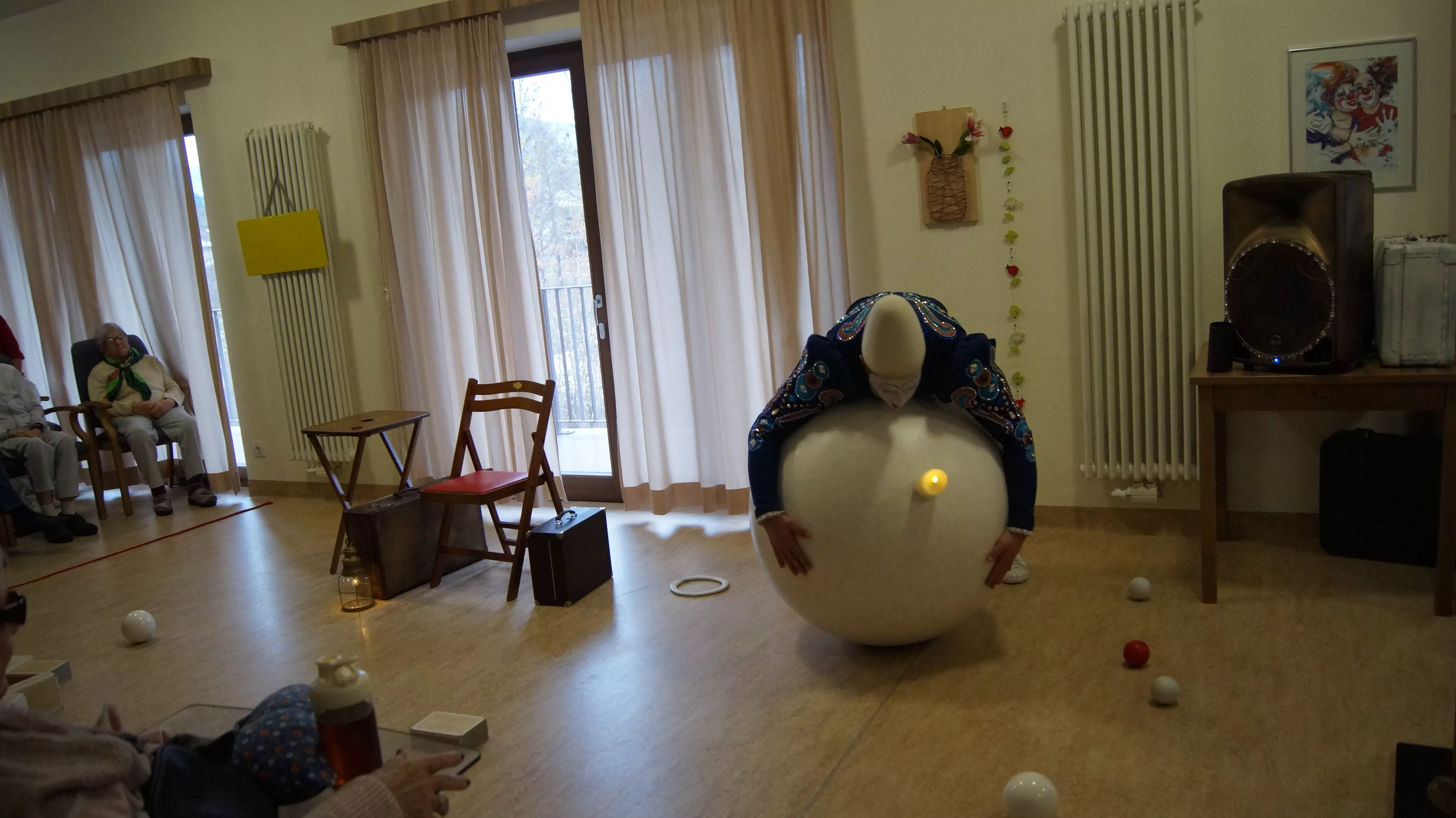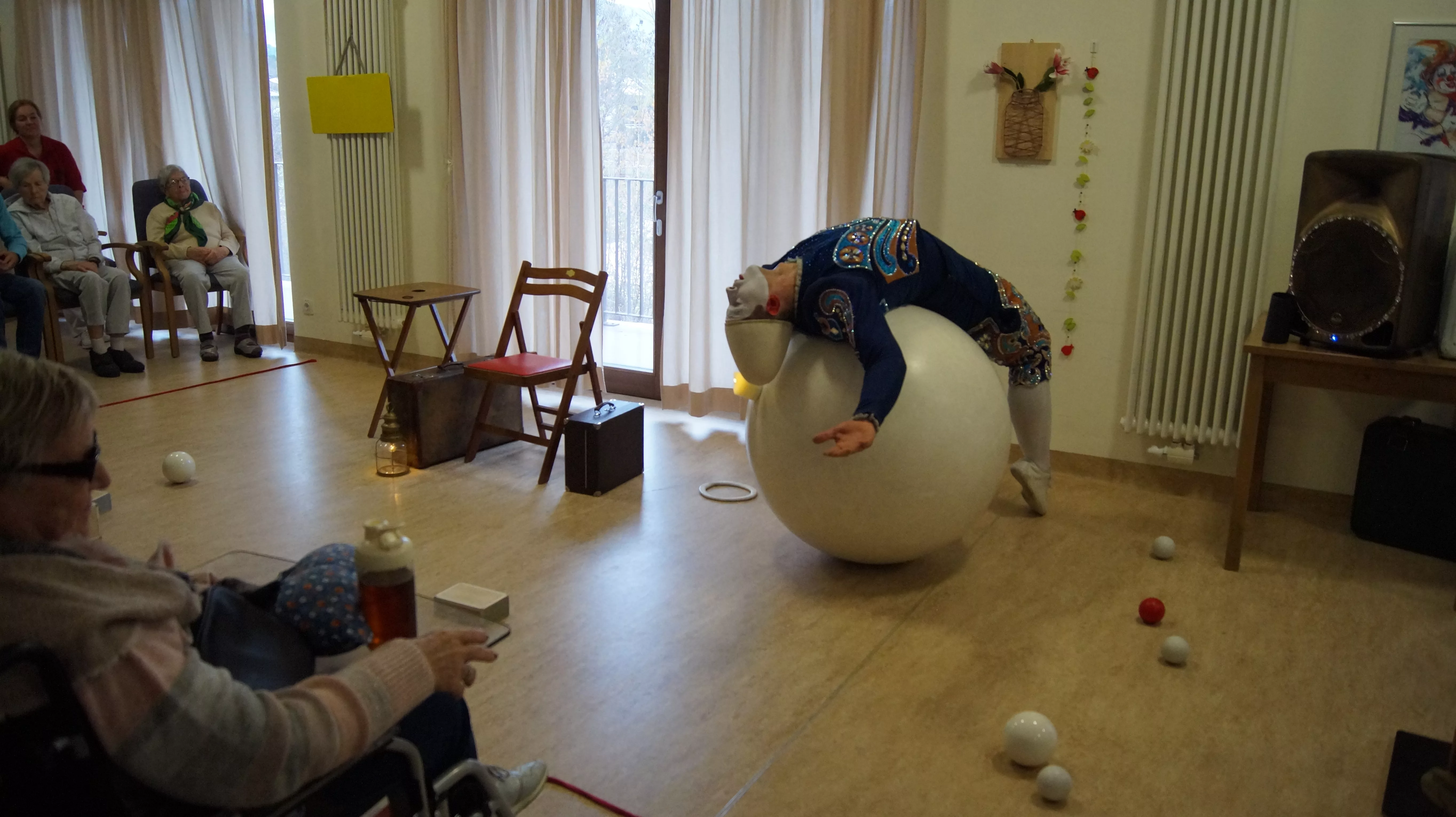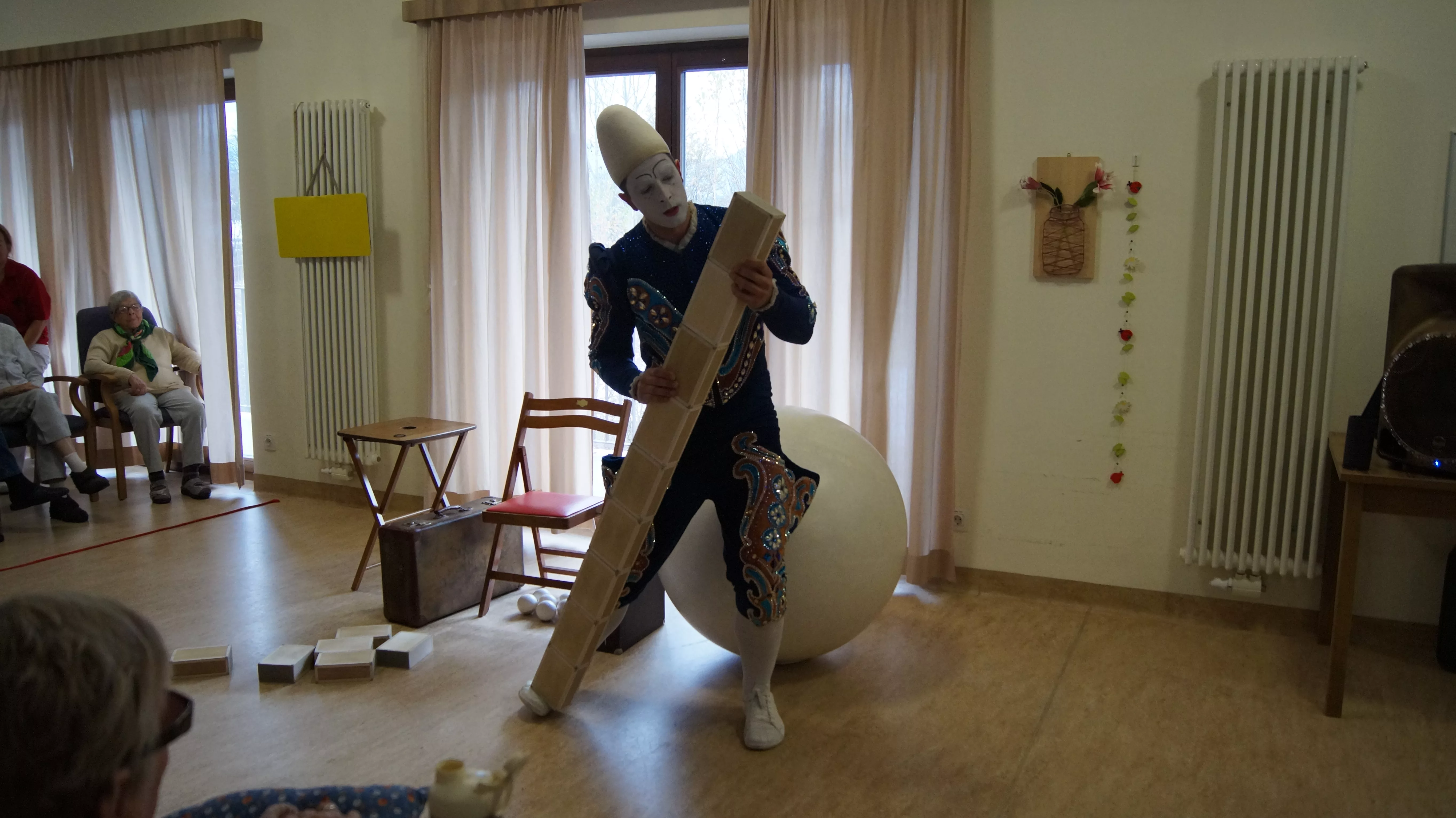 Es war eine faszinierende Darbietung, die Kombinationen aus Jonglage und Objektmanipulation sowie die charakteristischen Bewegungen eines Weißclowns vereinte.