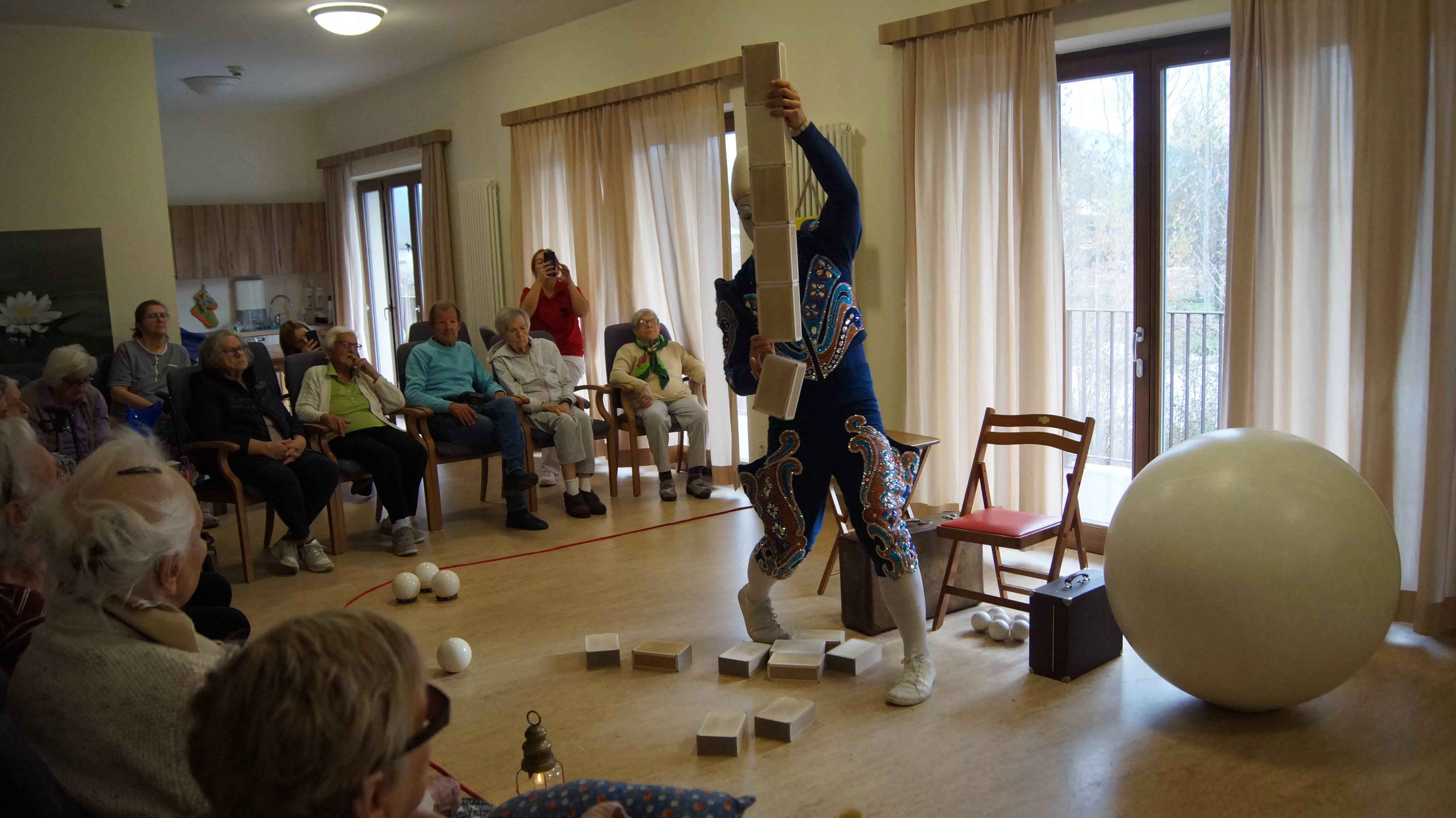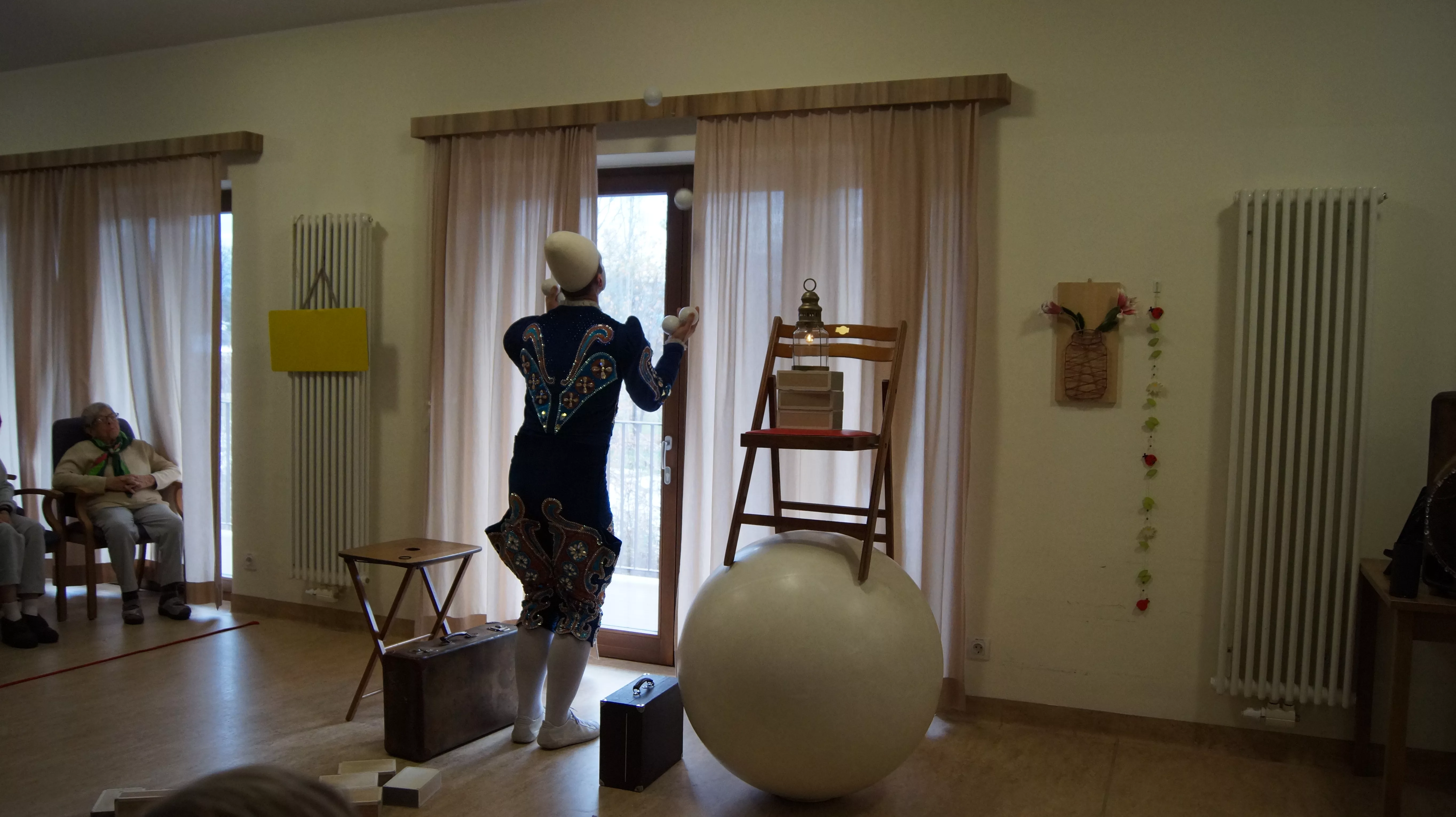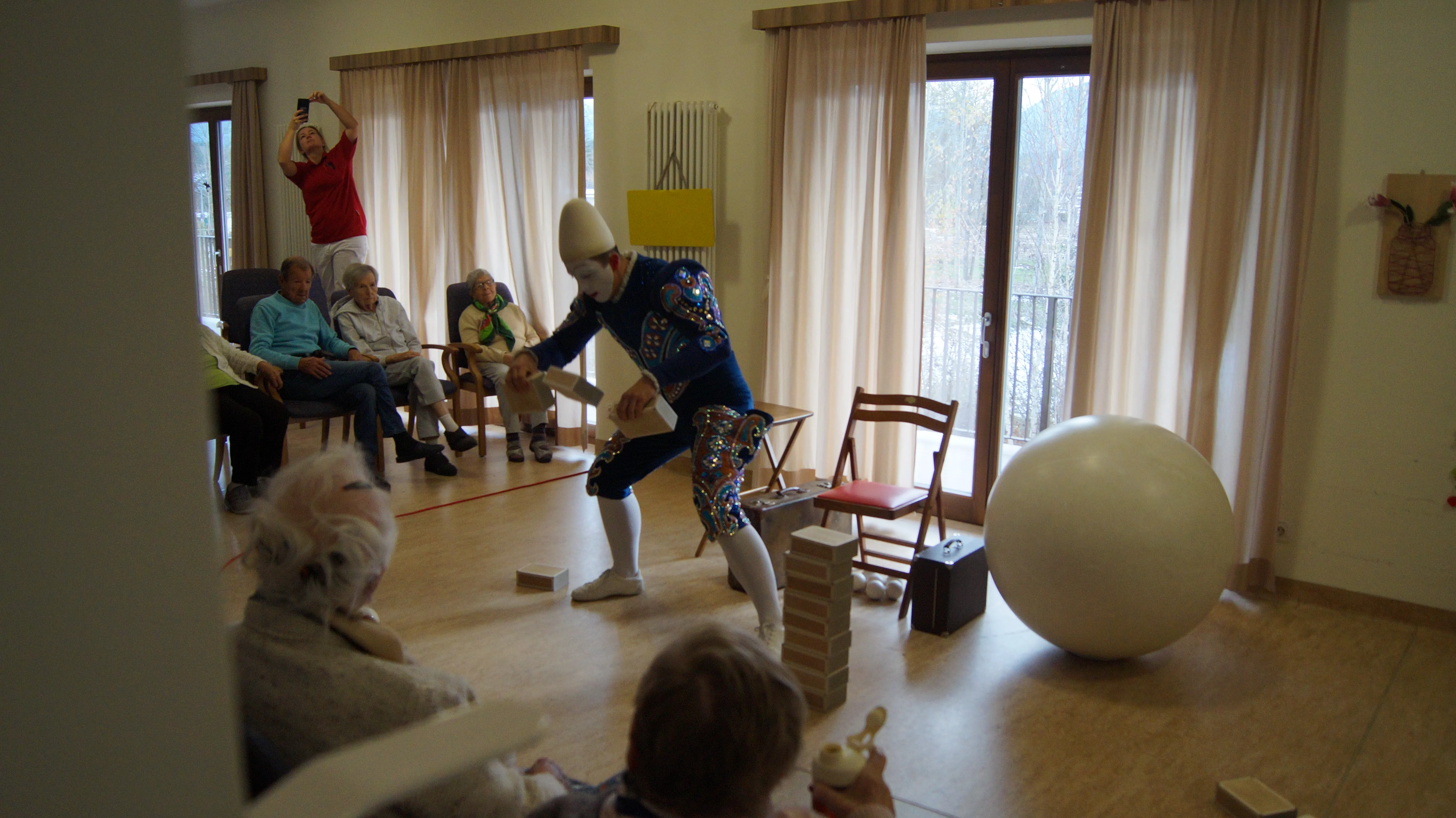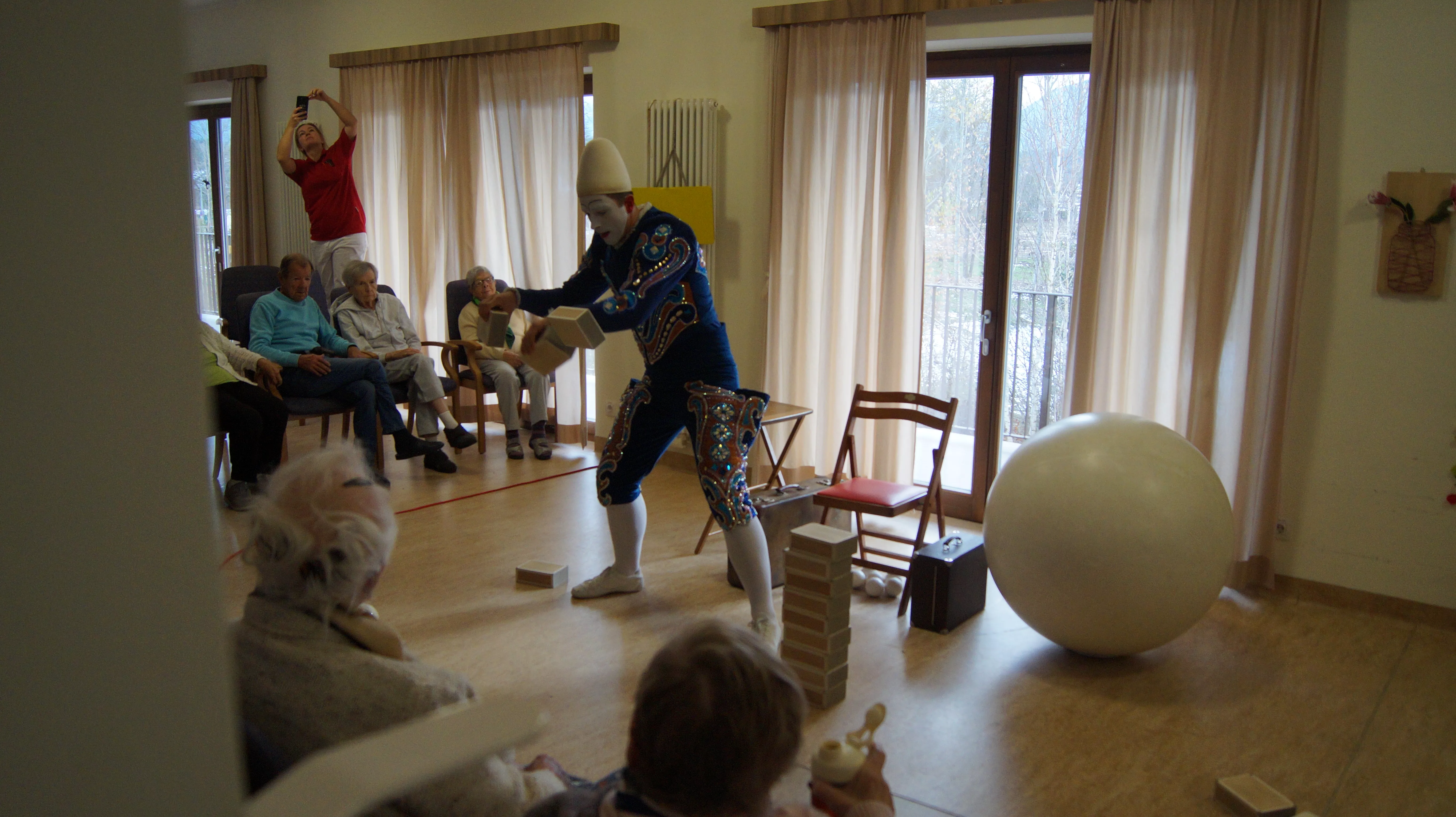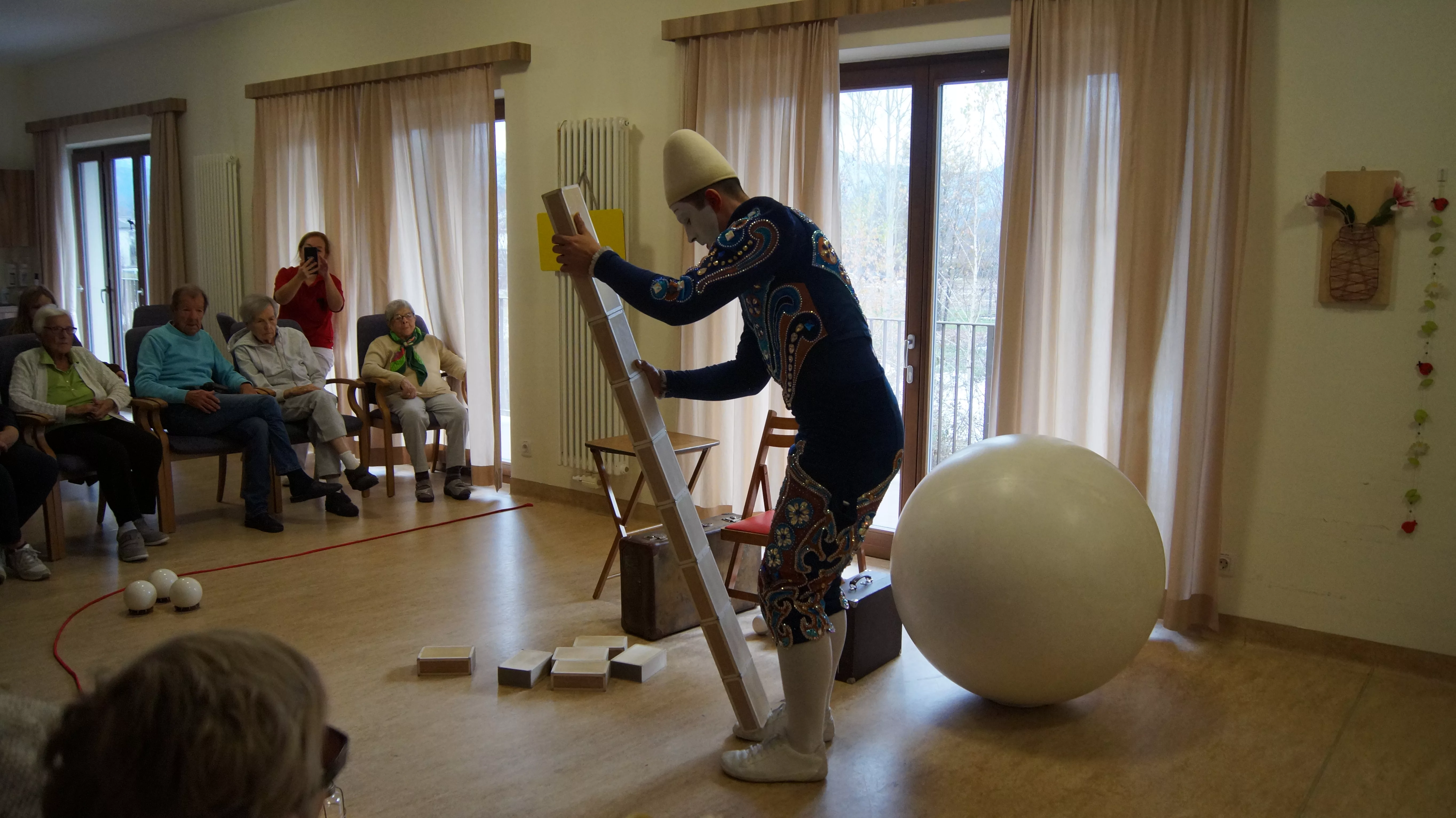 Es war eine faszinierende Darbietung, die Kombinationen aus Jonglage und Objektmanipulation sowie die charakteristischen Bewegungen eines Weißclowns vereinte.