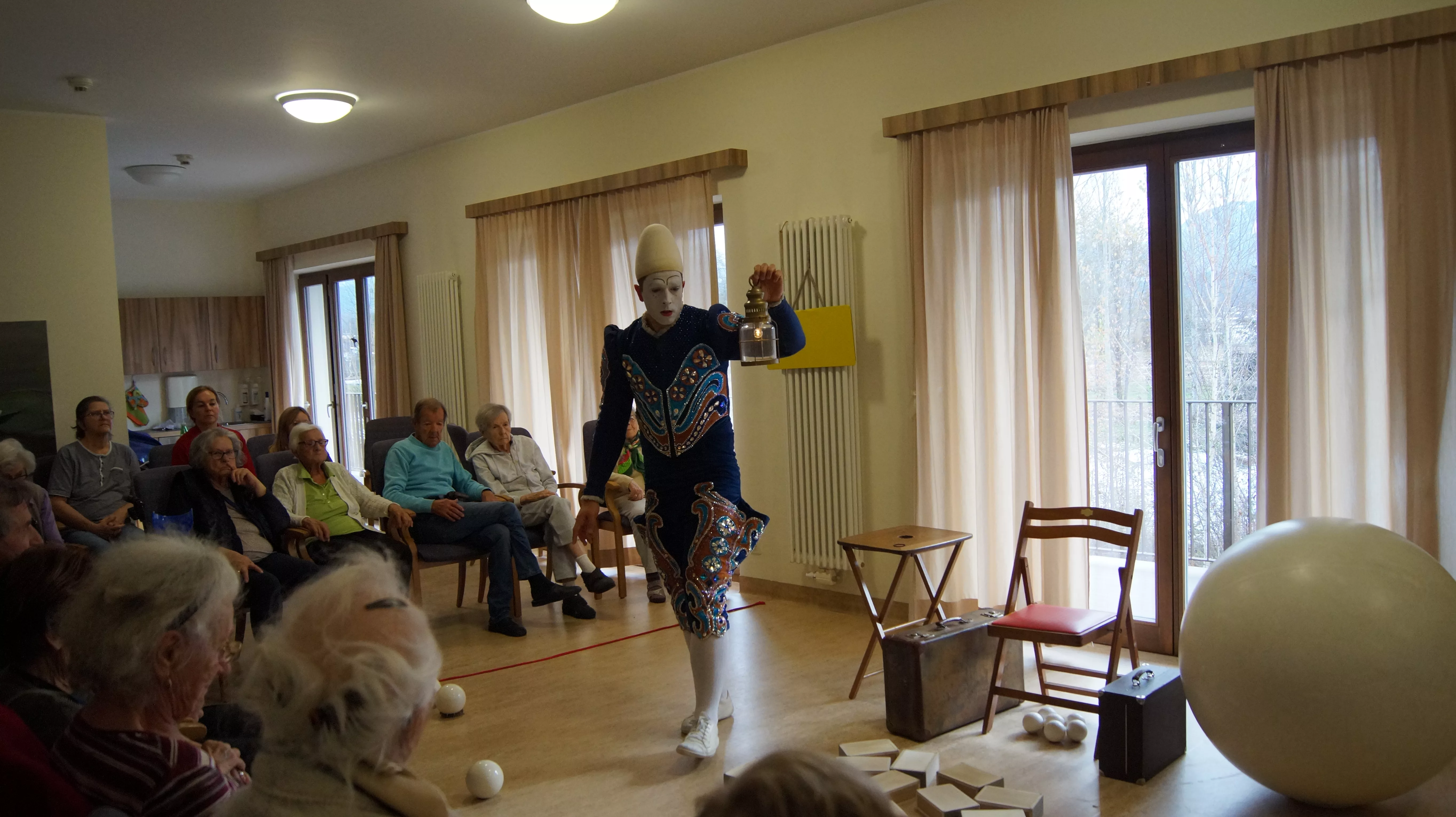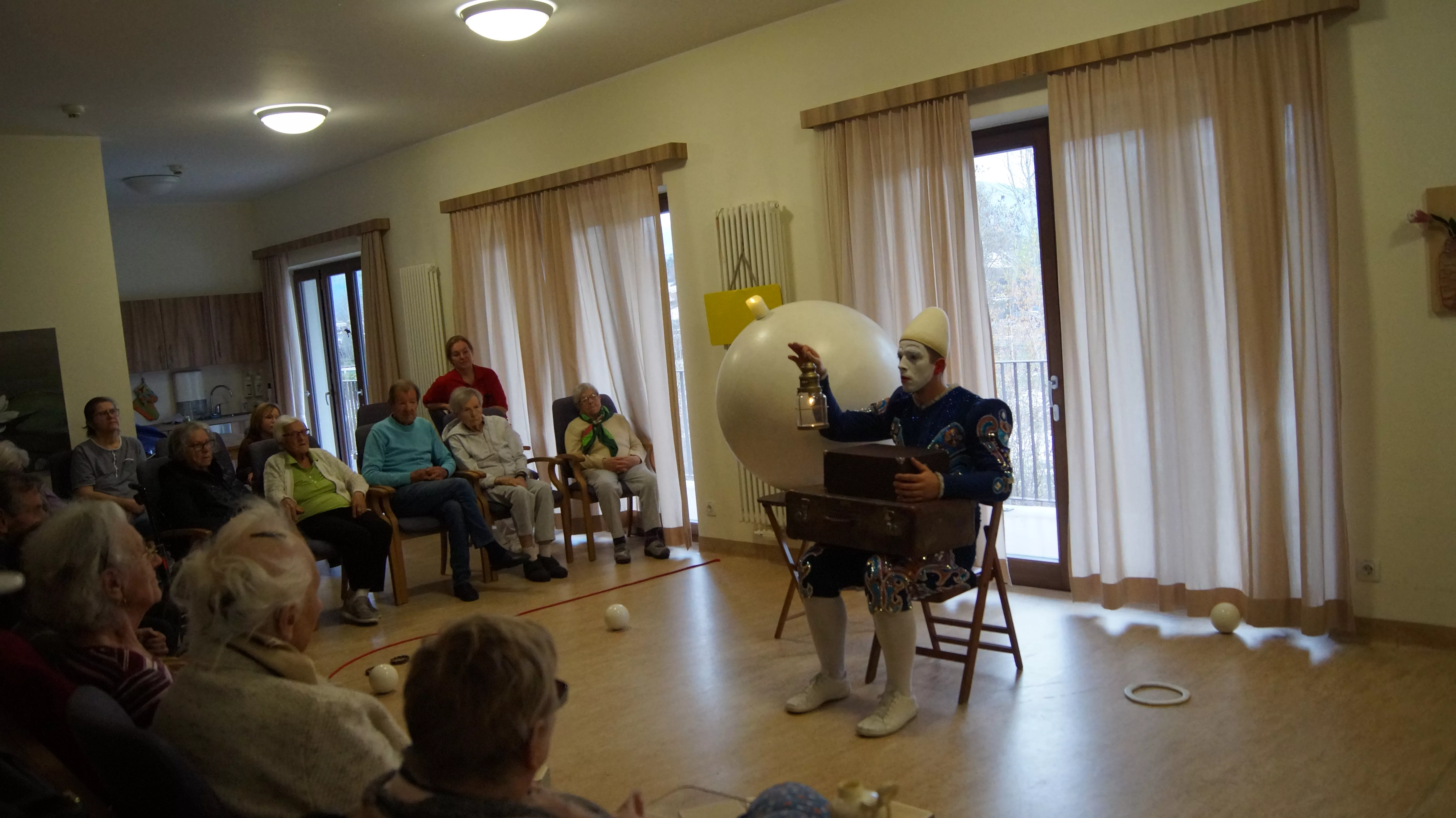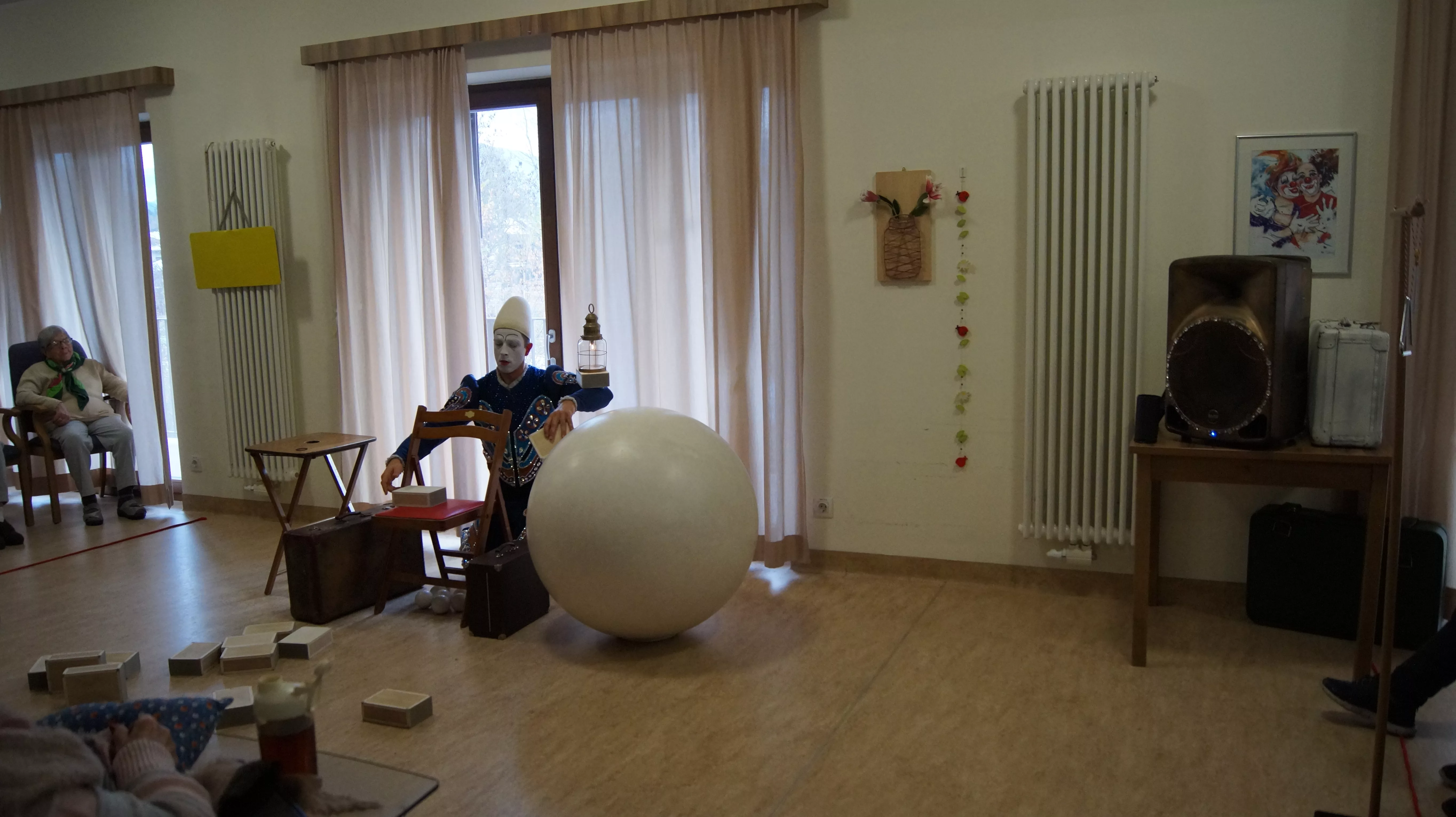 Das Ziel des Künstlers war es, für die Bewohner und Bewohnerinnen ein besonderes Erlebnis zu schaffen, bei dem sie gemeinsam mit dem Weißclown von einst auf eine Reise gehen.