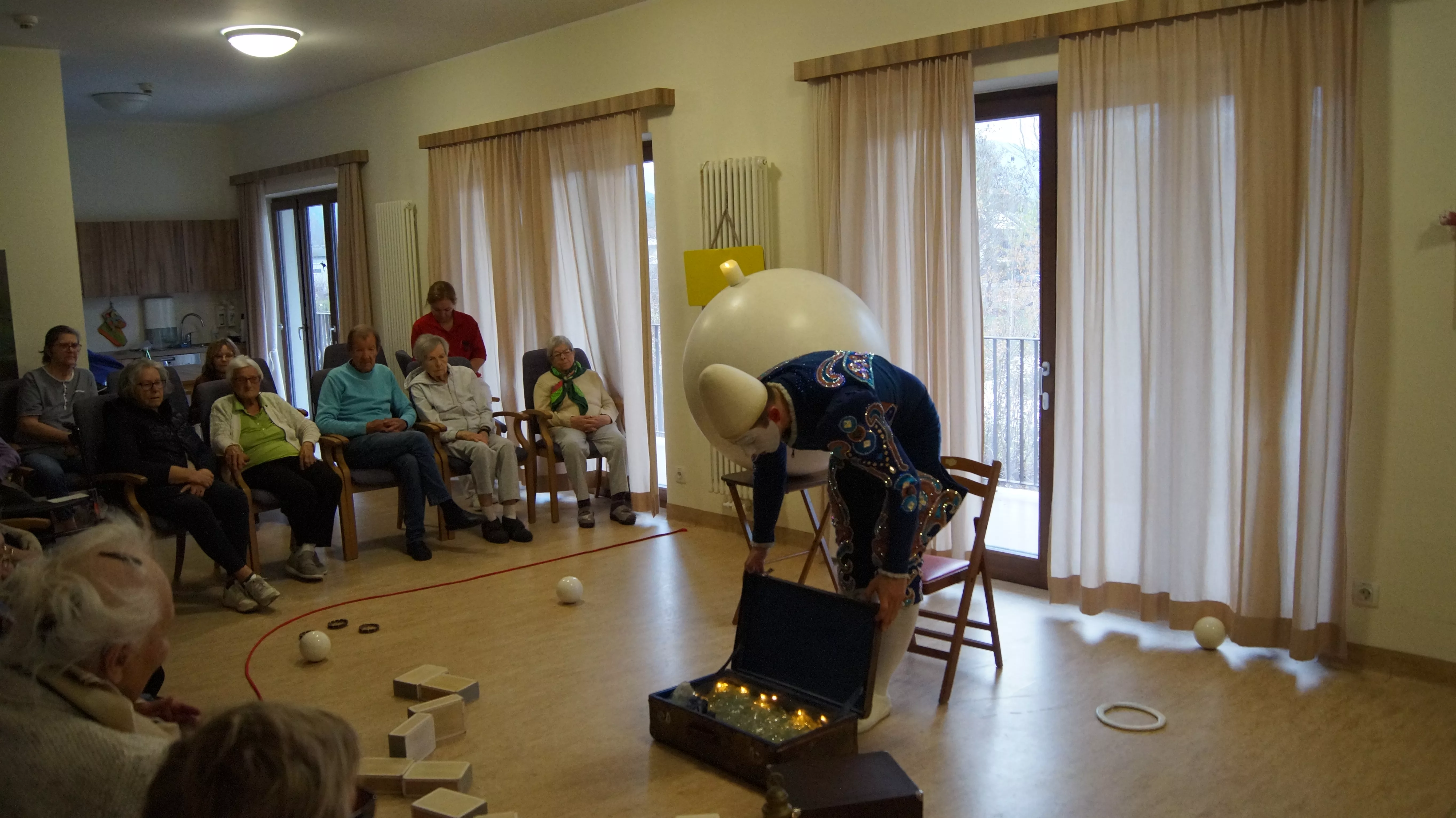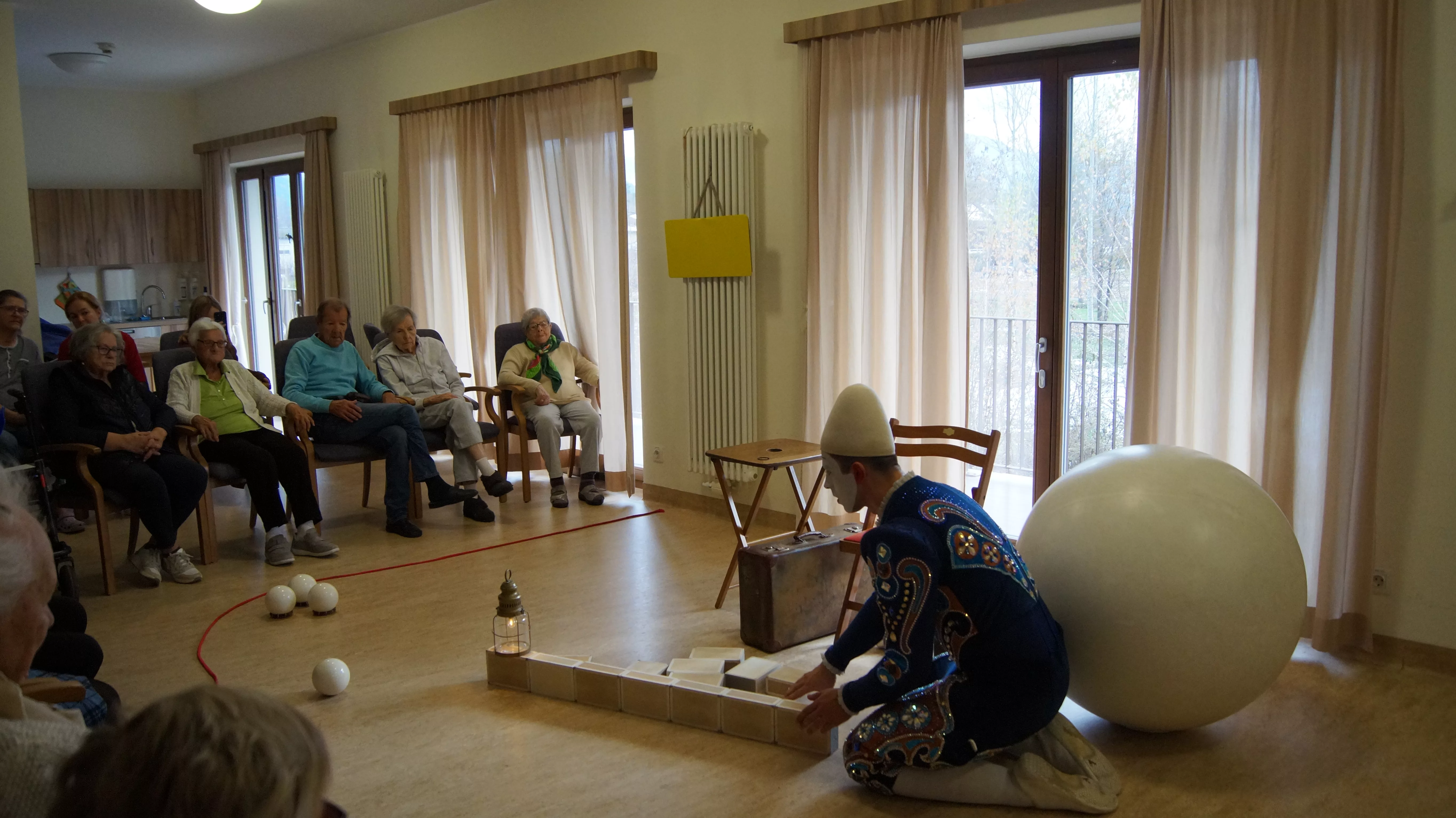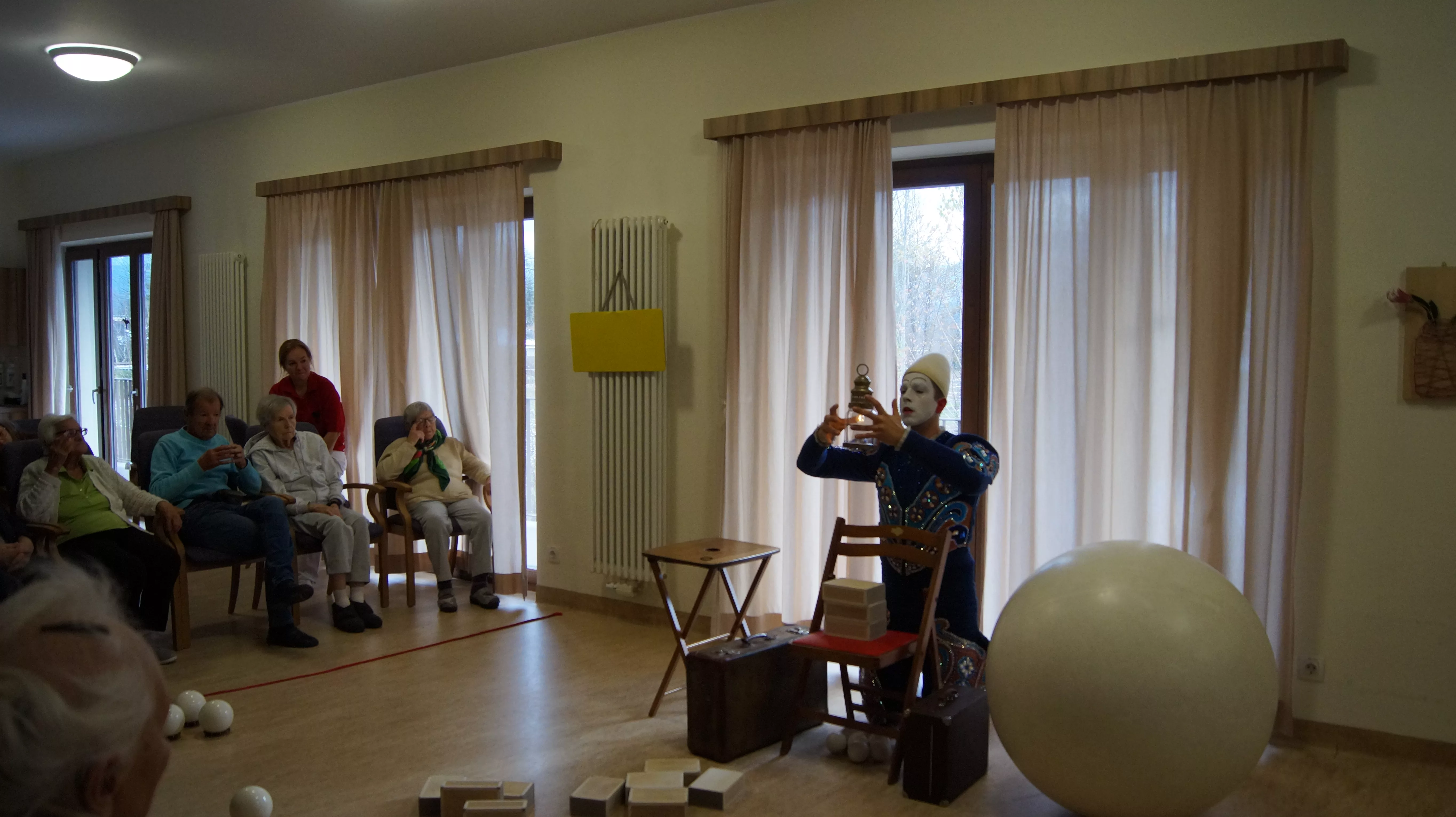 Das Ziel des Künstlers war es, für die Bewohner und Bewohnerinnen ein besonderes Erlebnis zu schaffen, bei dem sie gemeinsam mit dem Weißclown von einst auf eine Reise gehen.