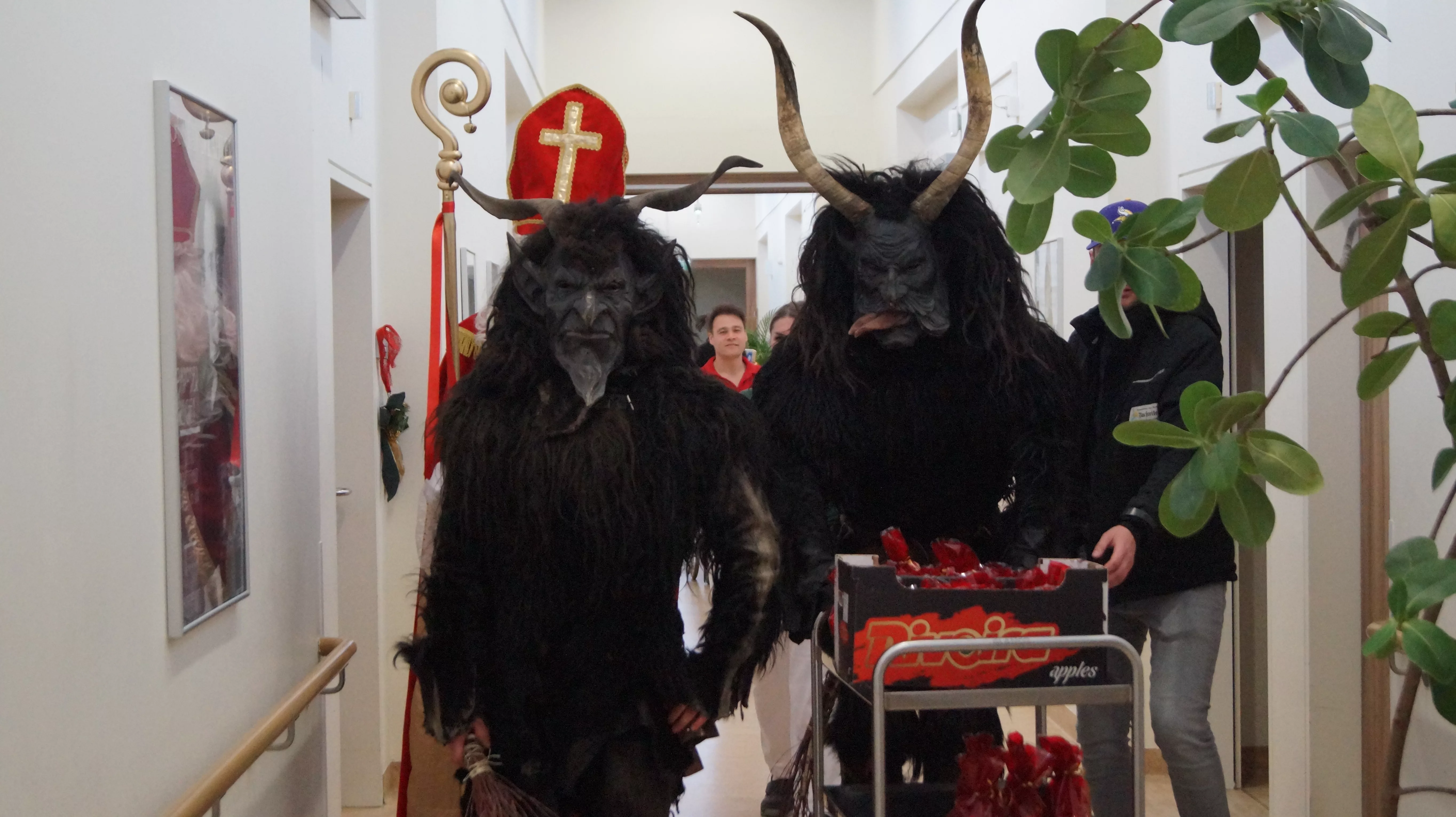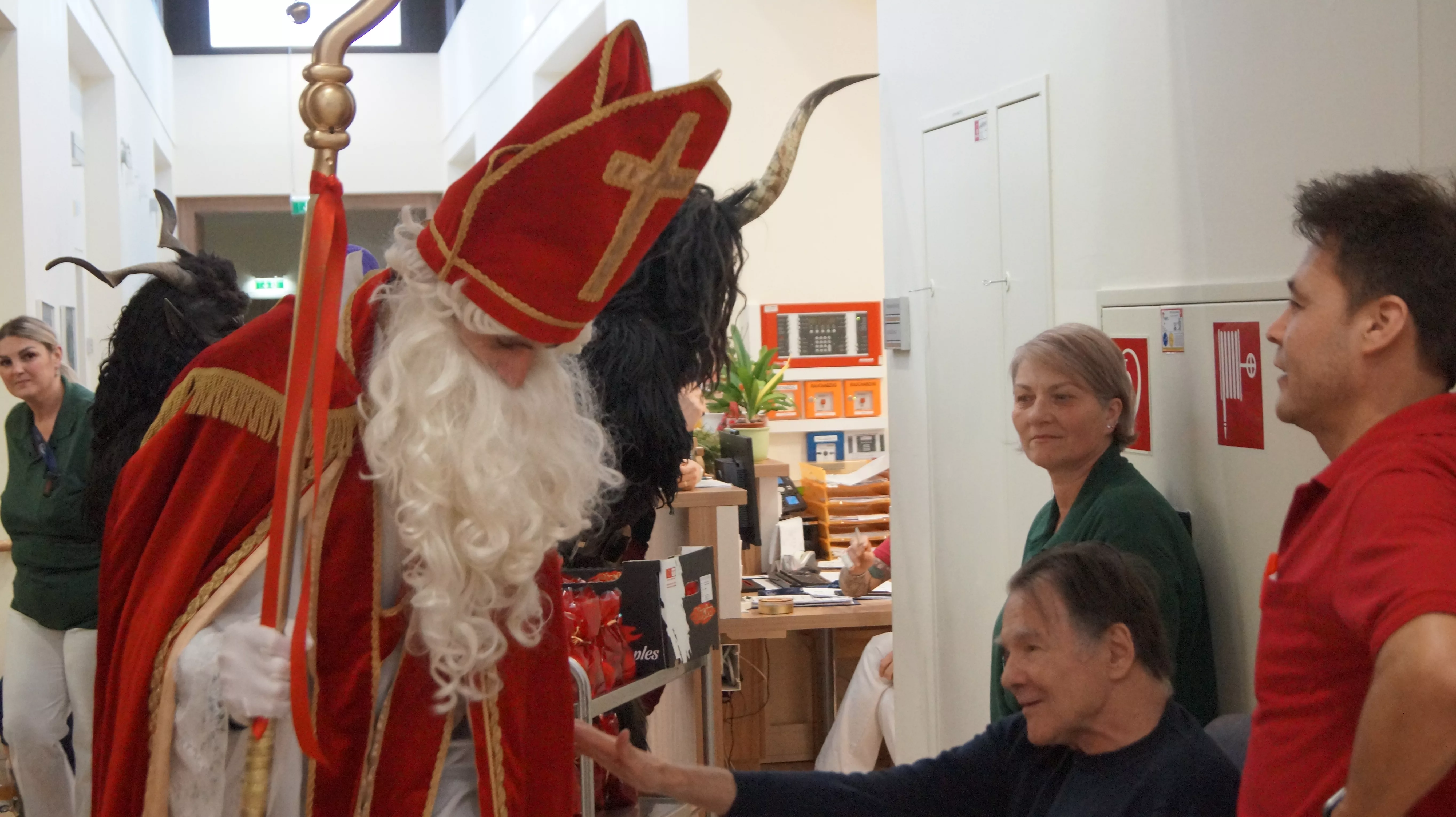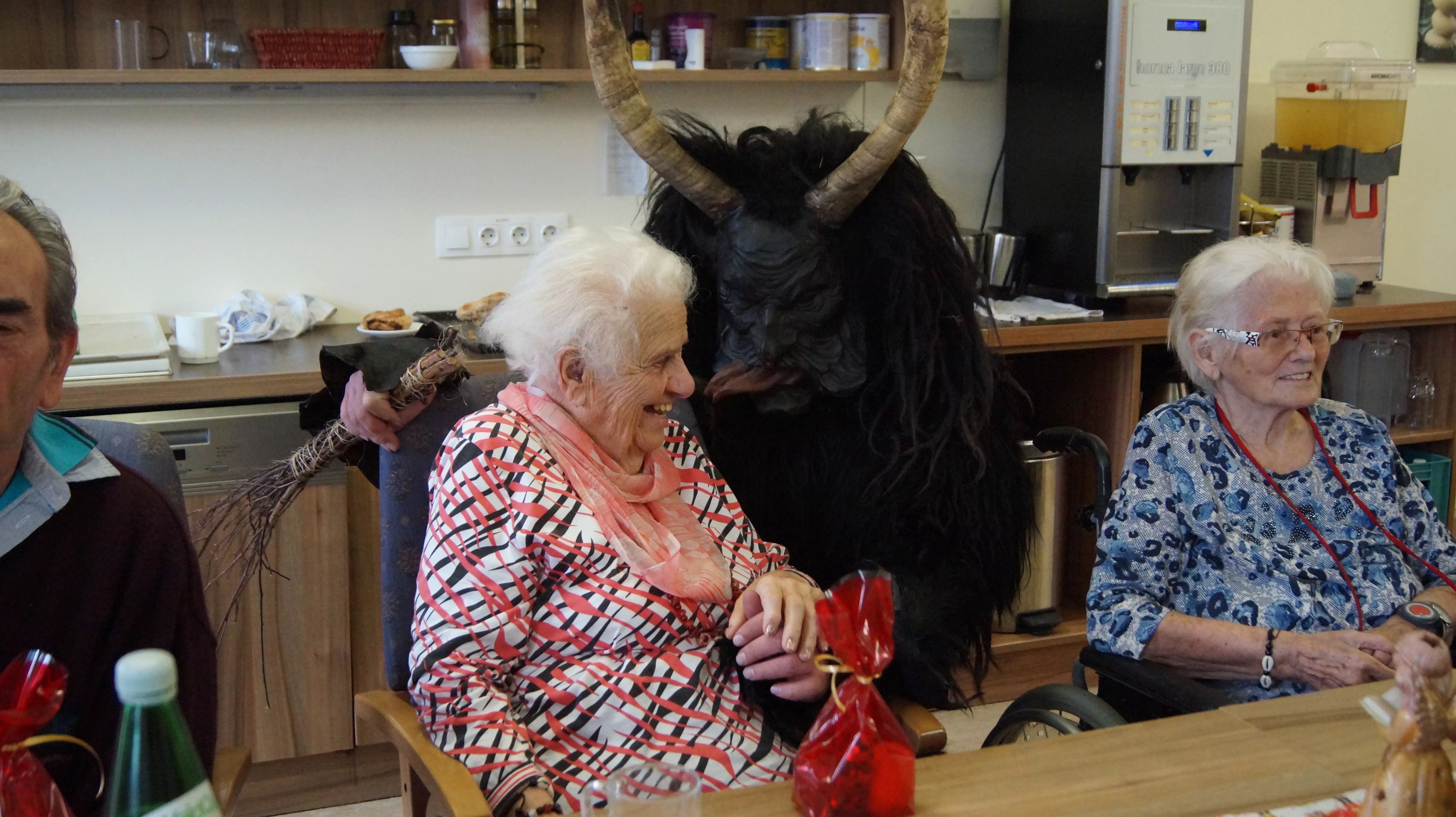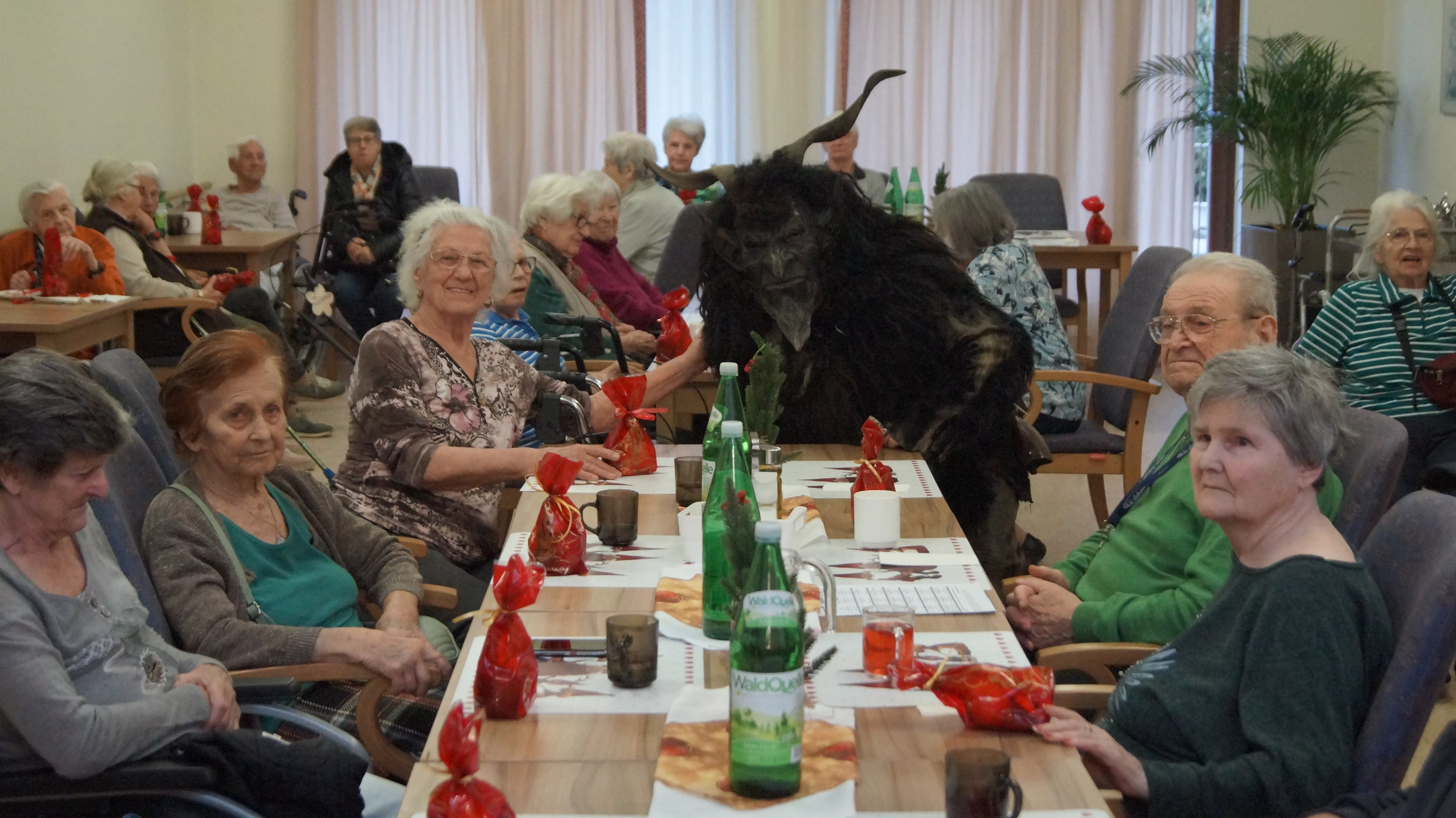 Alle Jahre wieder besuchen uns der heilige Nikolaus und der Krampus im Generationenpark Waidmannsdorf. Schon lange im Voraus freuen sich alle Bewohnerinnen und Bewohner auf dieses besondere Ereignis, welches die festliche Jahreszeit einläutet. In diesem Jahr war es wieder so weit: Der Nikolaus, mit seinem weißen Bart und dem goldenen Buch und der Krampus verzauberten die Bewohner.