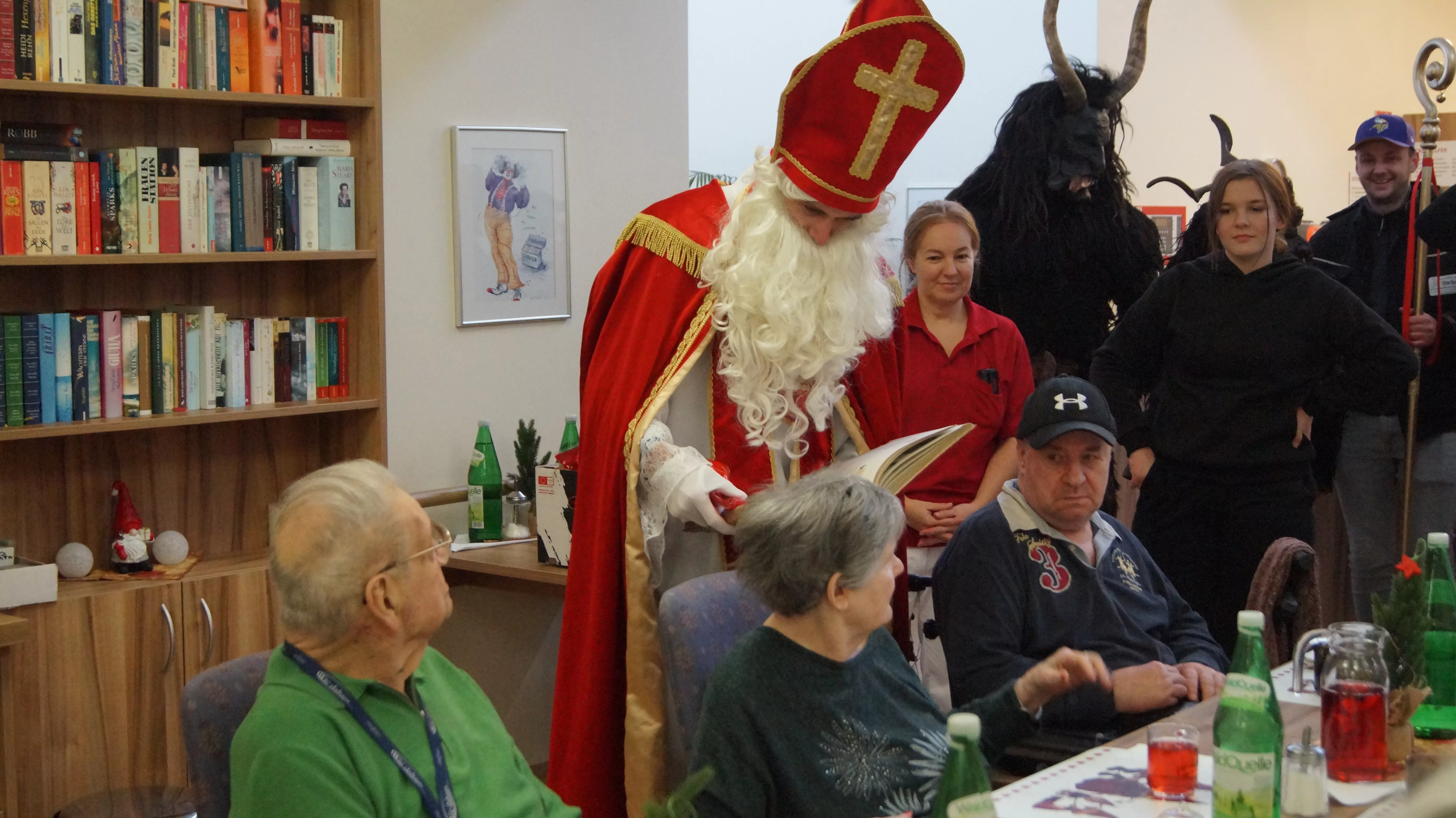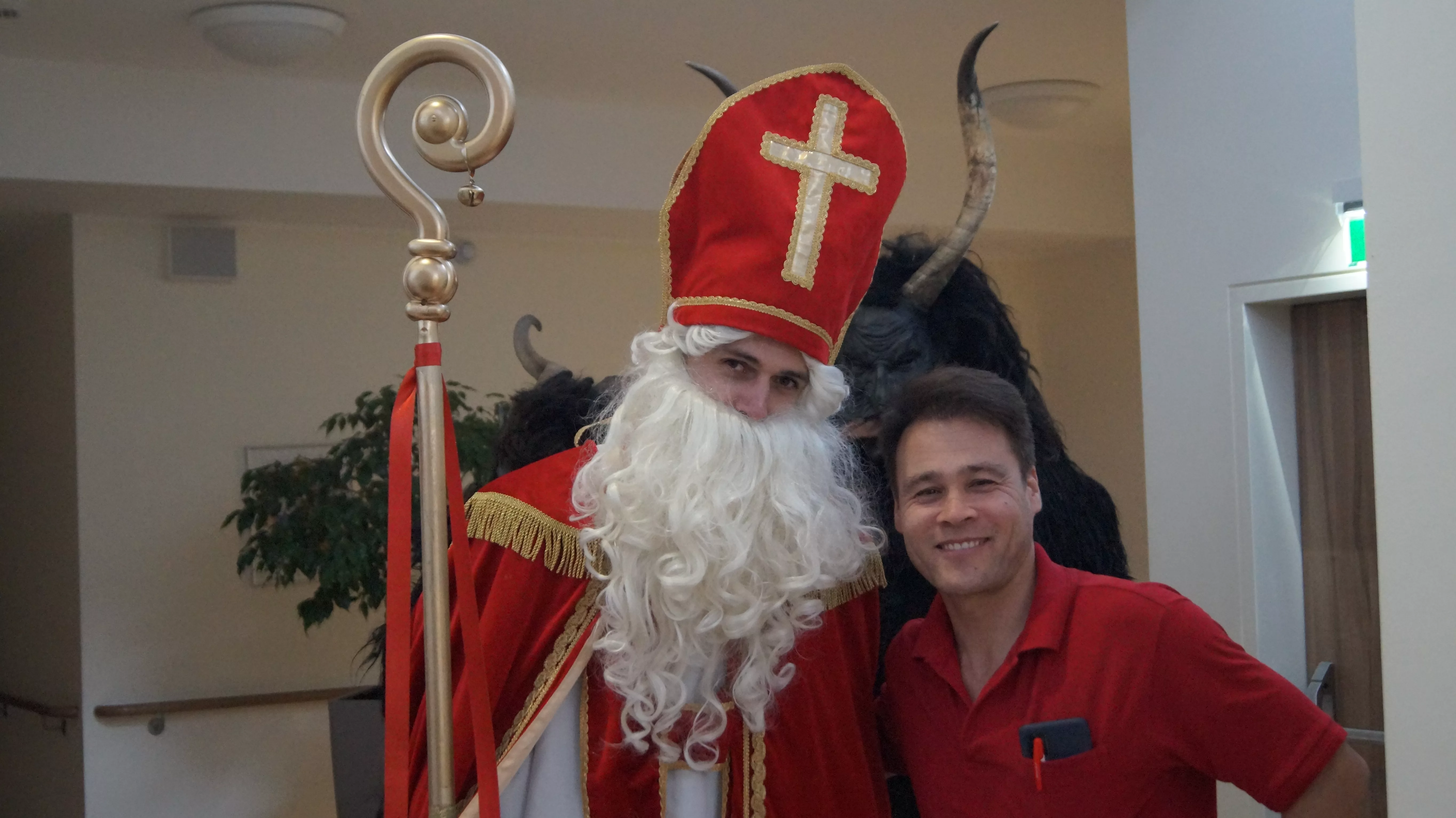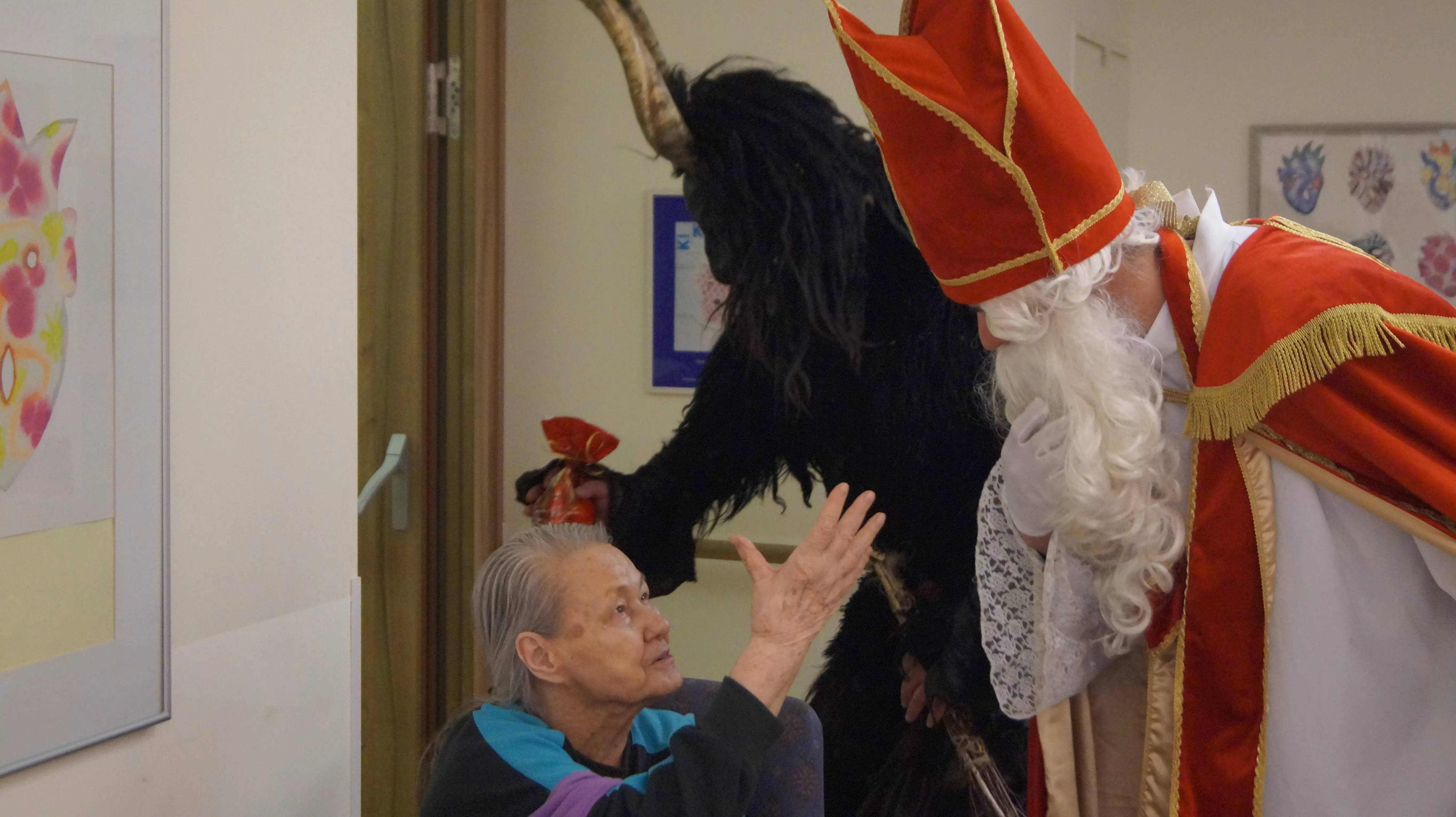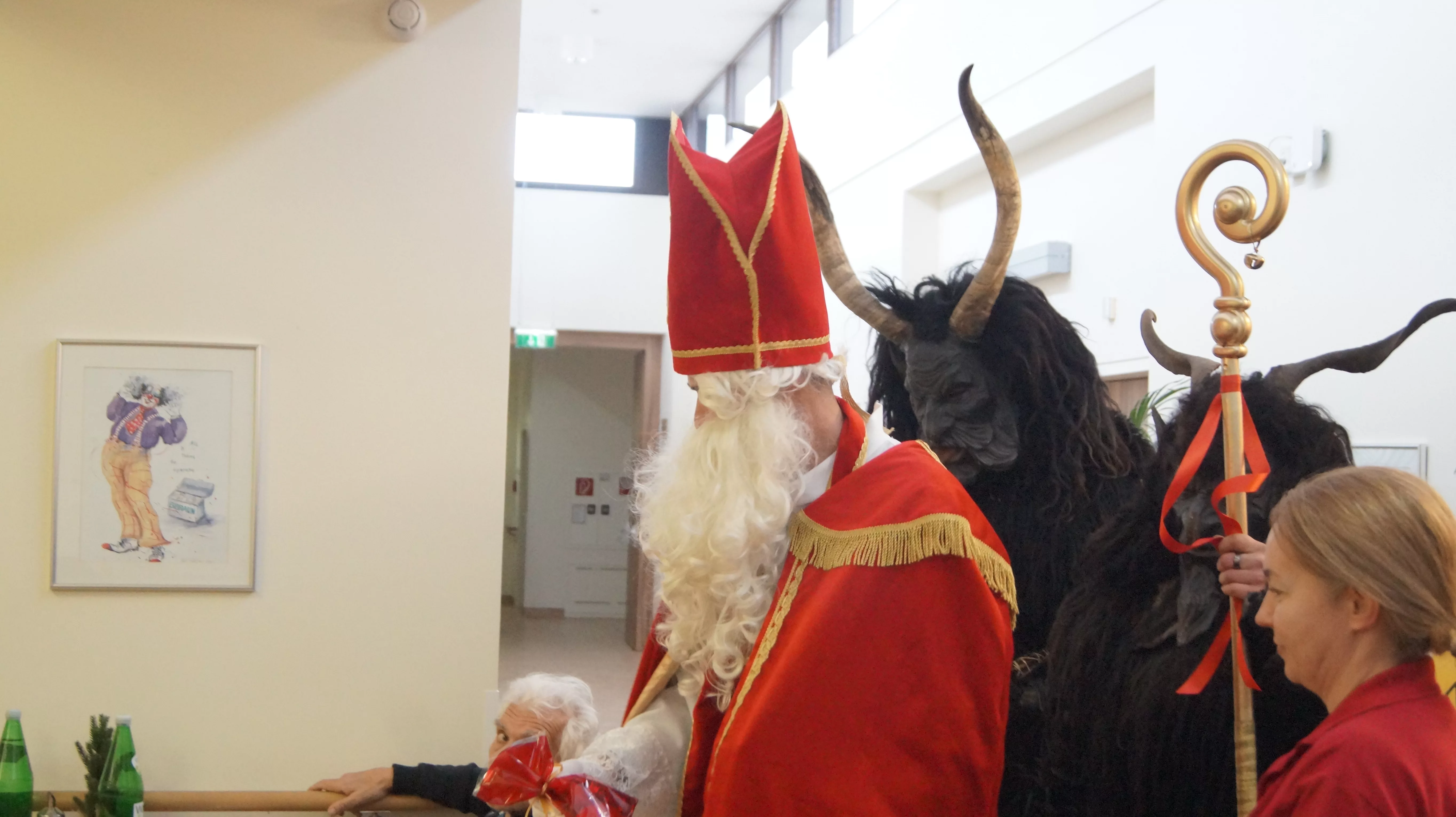 Alle Jahre wieder besuchen uns der heilige Nikolaus und der Krampus im Generationenpark Waidmannsdorf. Schon lange im Voraus freuen sich alle Bewohnerinnen und Bewohner auf dieses besondere Ereignis, welches die festliche Jahreszeit einläutet. In diesem Jahr war es wieder so weit: Der Nikolaus, mit seinem weißen Bart und dem goldenen Buch und der Krampus verzauberten die Bewohner.