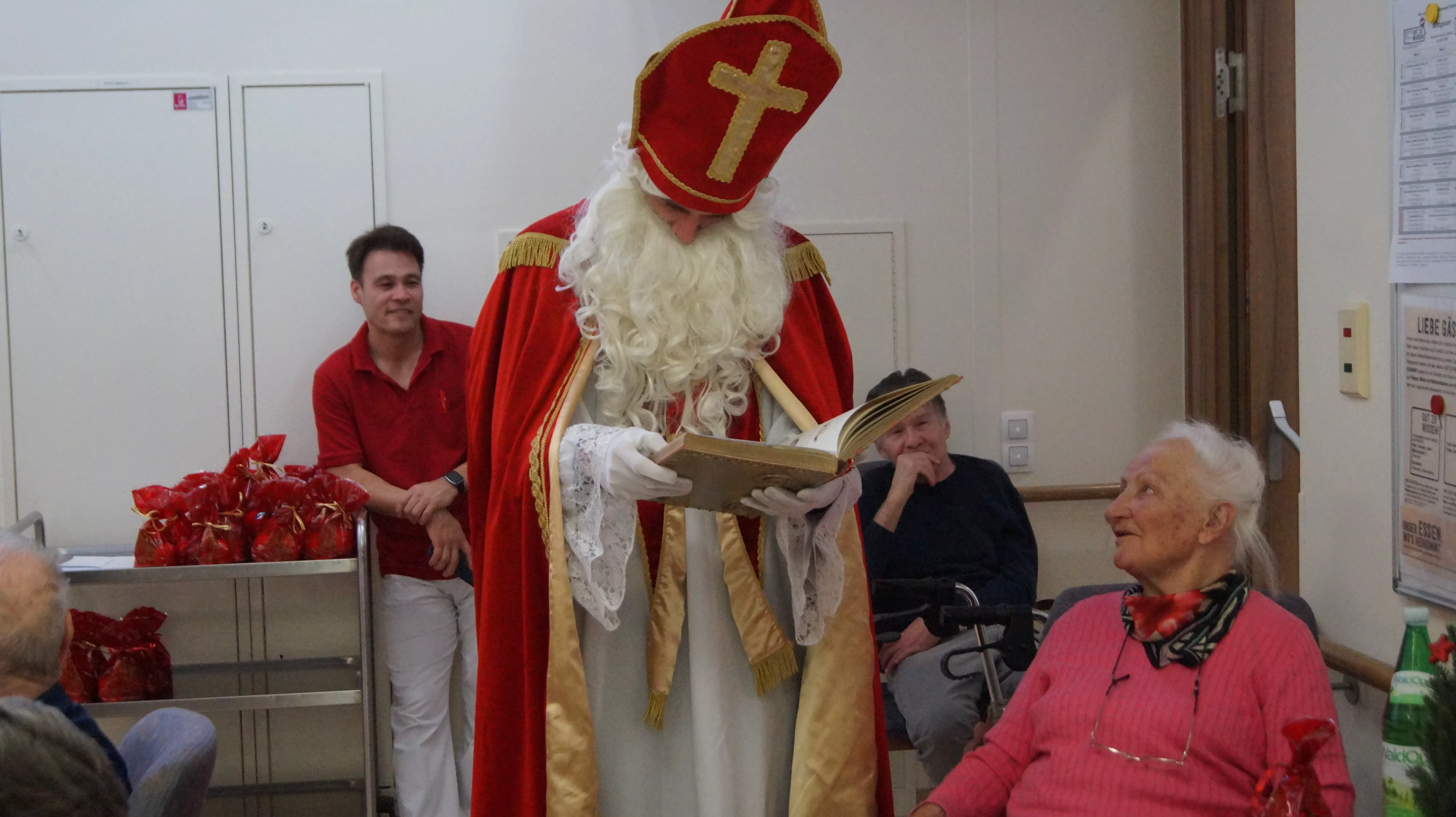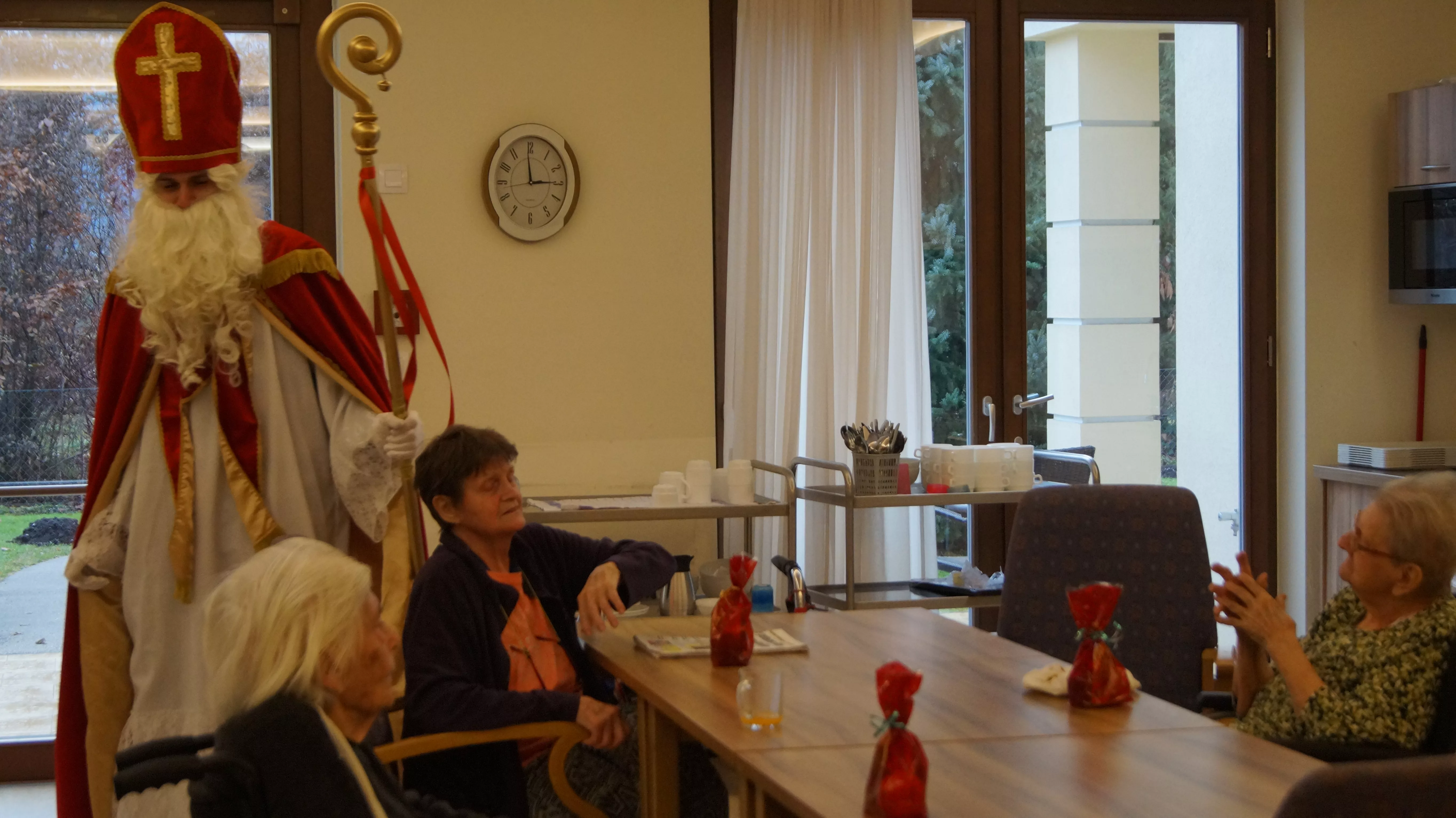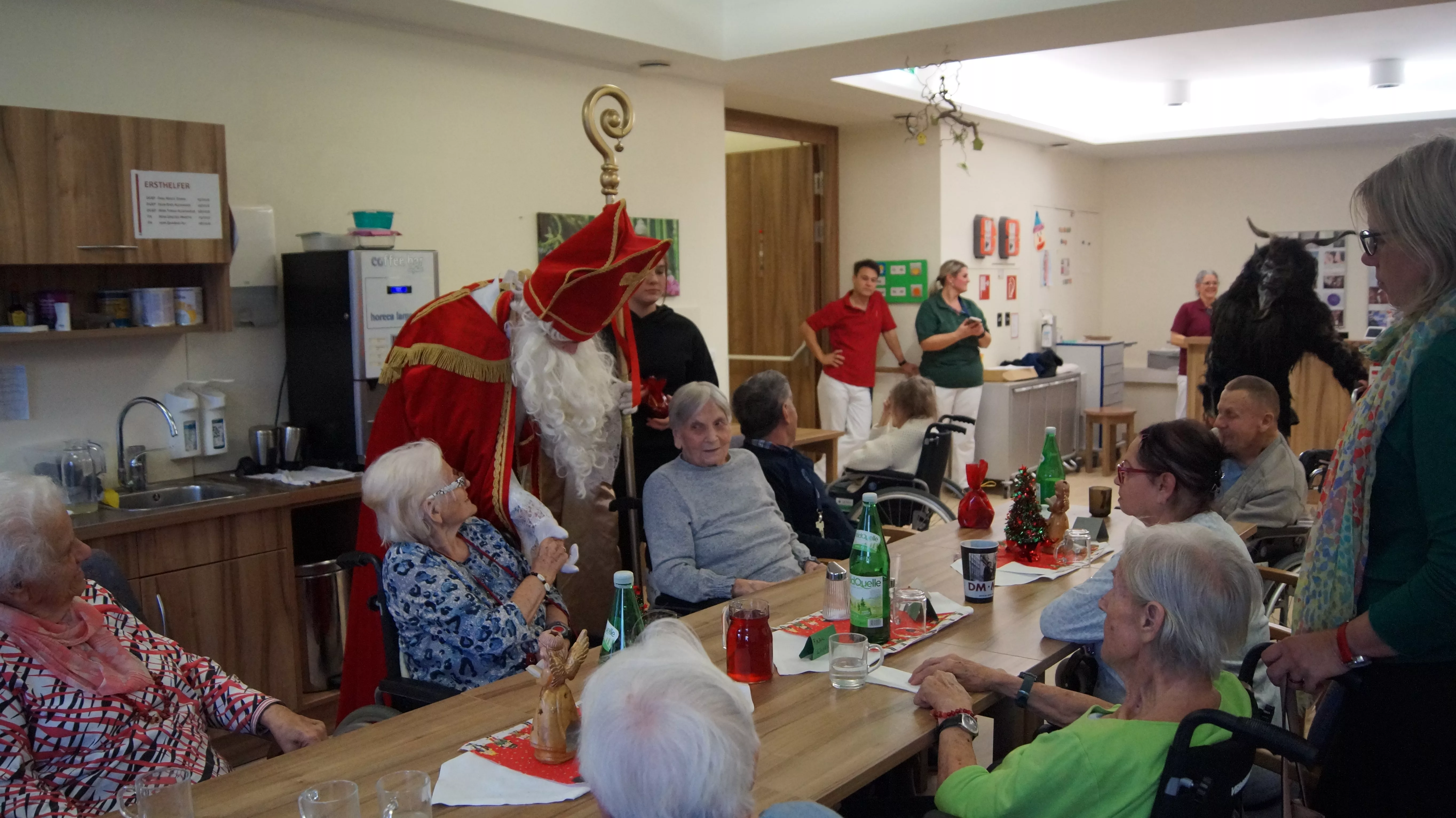 Es war eine wahre Freude für alle Bewohnerinnen und Bewohner. Mit einem herzlichen Lächeln las der Nikolaus aus seinem goldenen Buch die von unseren Mitarbeiterinnen und Mitarbeitern erstellten persönlichen Botschaften für die Bewohner. Sie zogen von Zimmer zu Zimmer und jeder bekam ein kleines Nikolaussäckchen, das mit Leckereien und kleinen Überraschungen gefüllt war, die den Tag noch schöner machten.