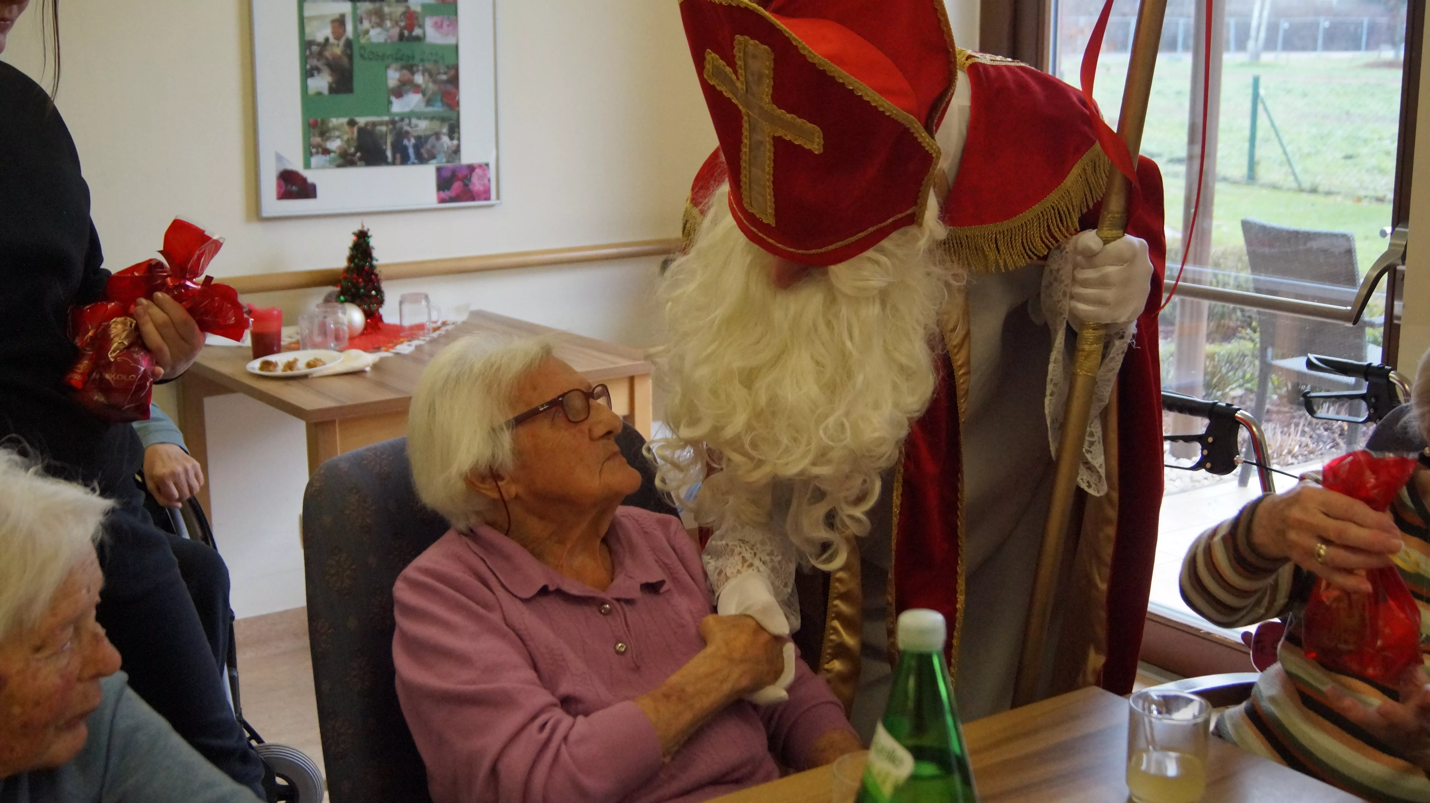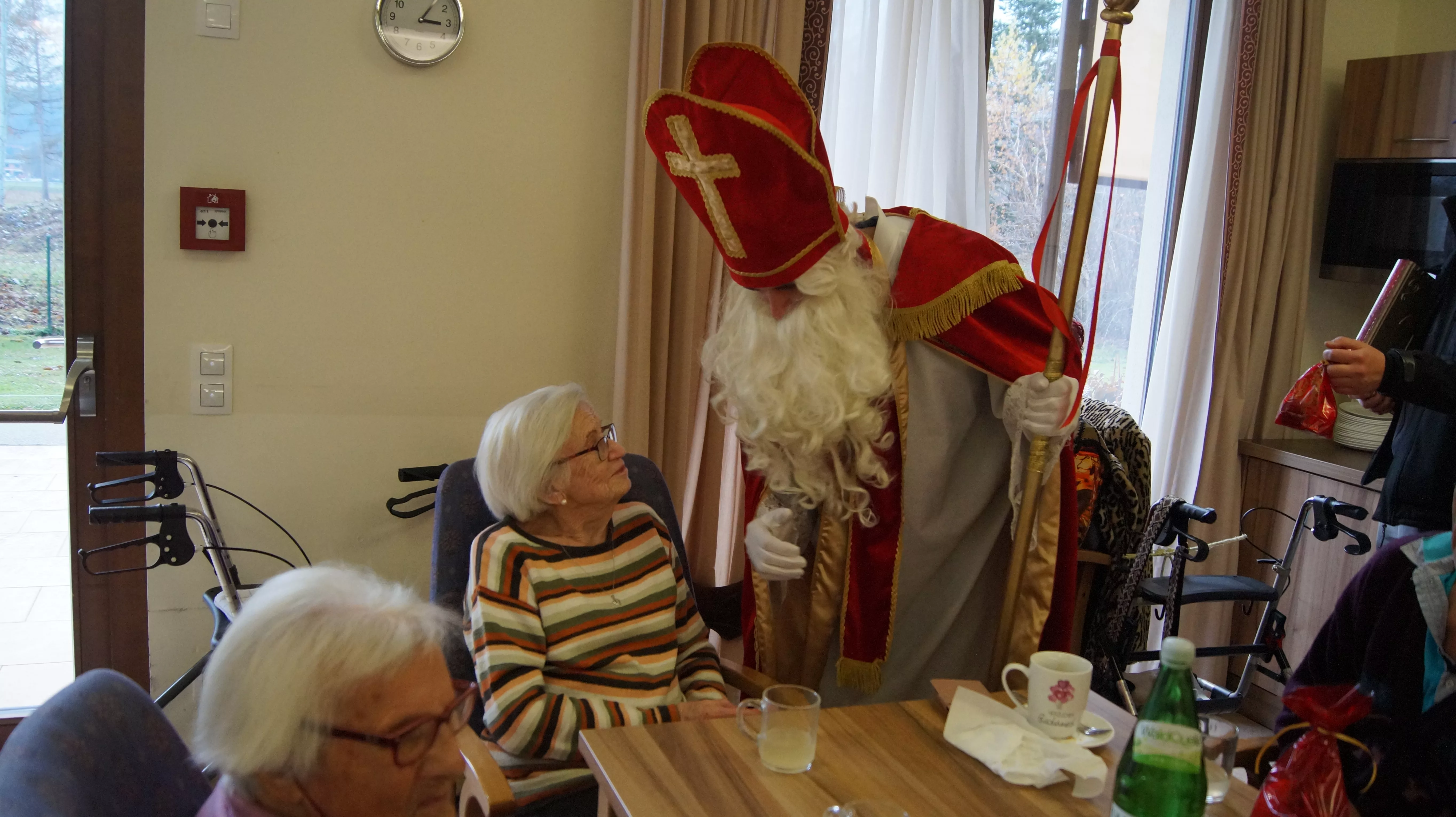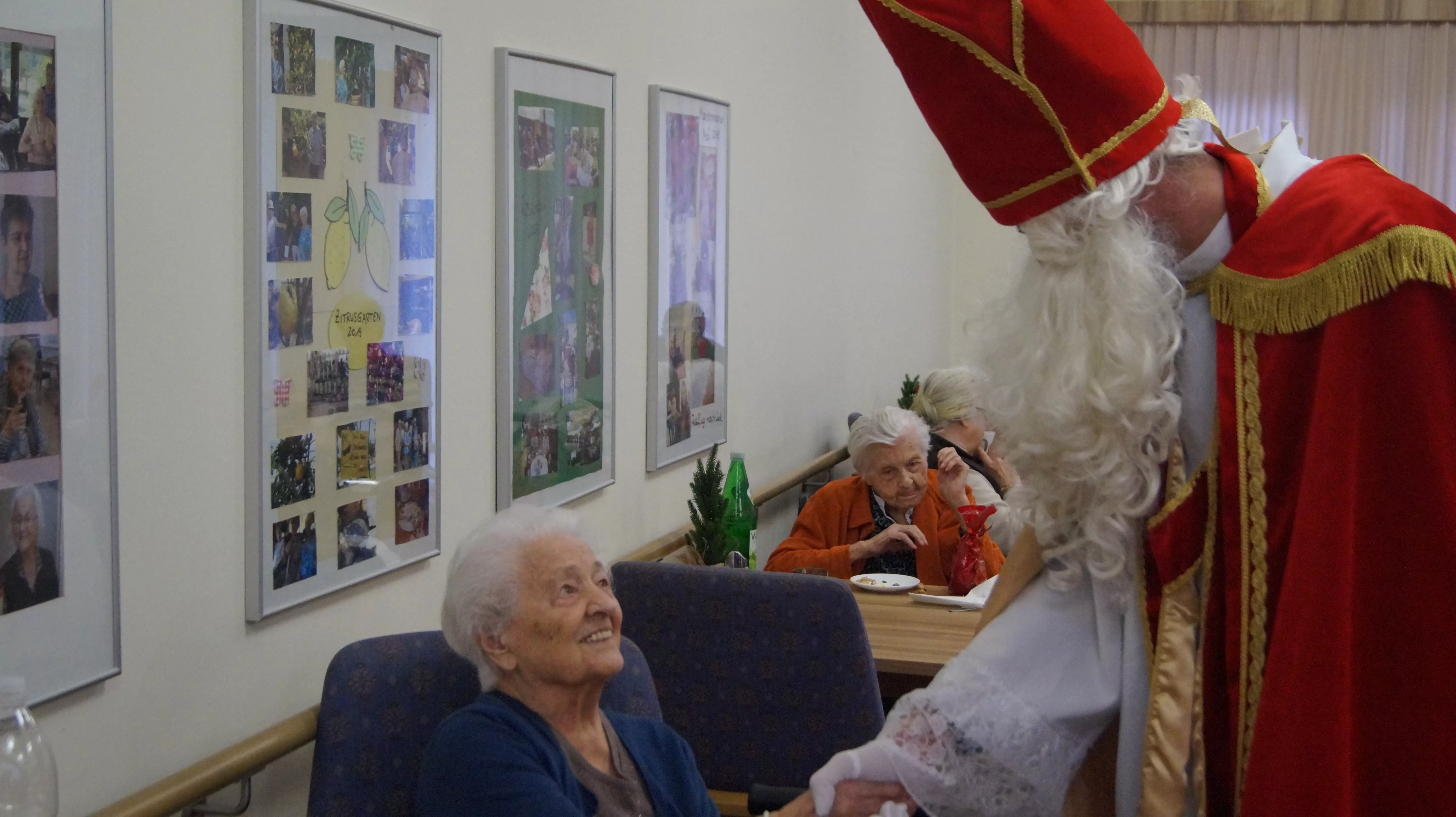 Es war eine wahre Freude für alle Bewohnerinnen und Bewohner. Mit einem herzlichen Lächeln las der Nikolaus aus seinem goldenen Buch die von unseren Mitarbeiterinnen und Mitarbeitern erstellten persönlichen Botschaften für die Bewohner. Sie zogen von Zimmer zu Zimmer und jeder bekam ein kleines Nikolaussäckchen, das mit Leckereien und kleinen Überraschungen gefüllt war, die den Tag noch schöner machten.