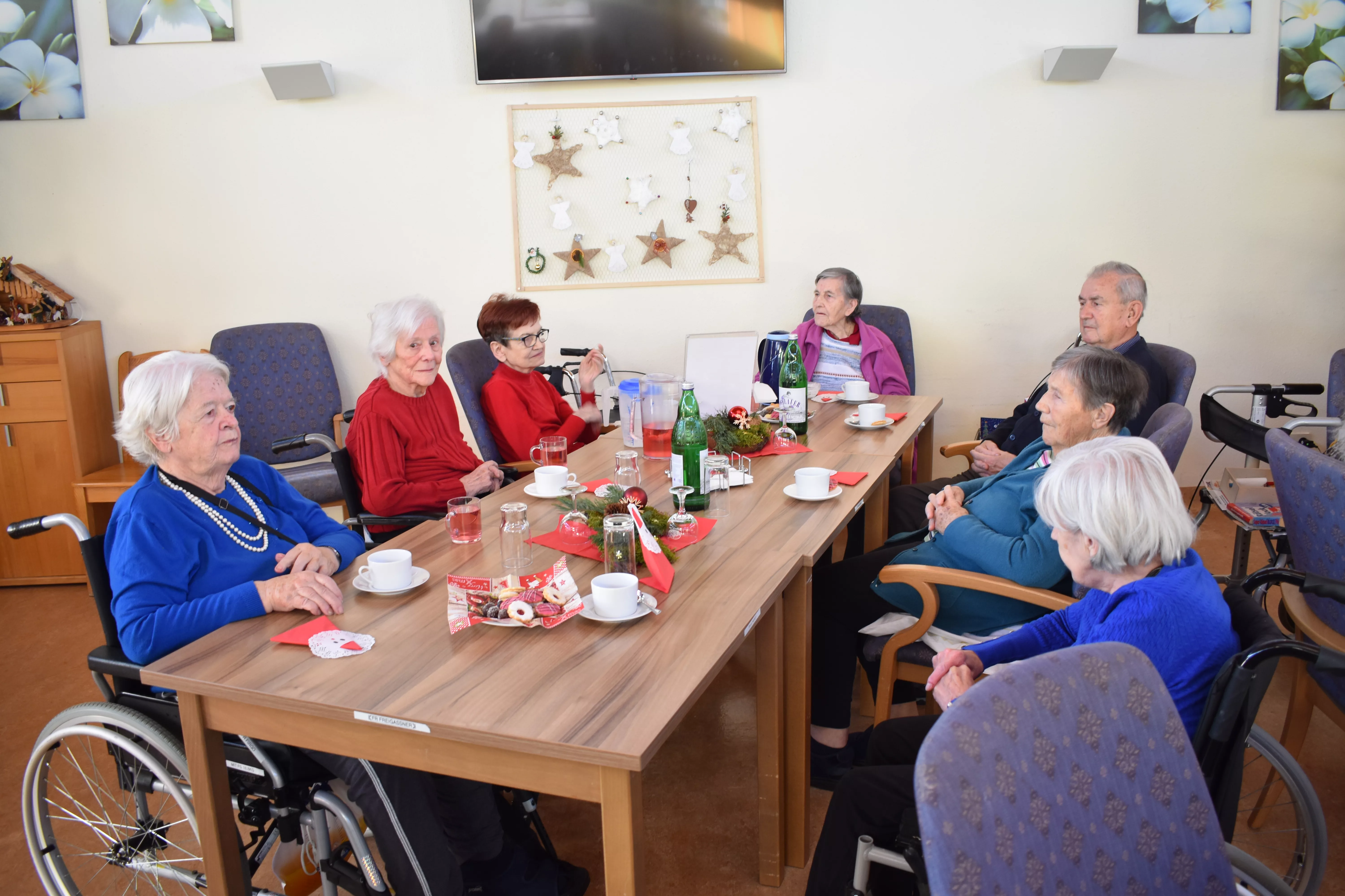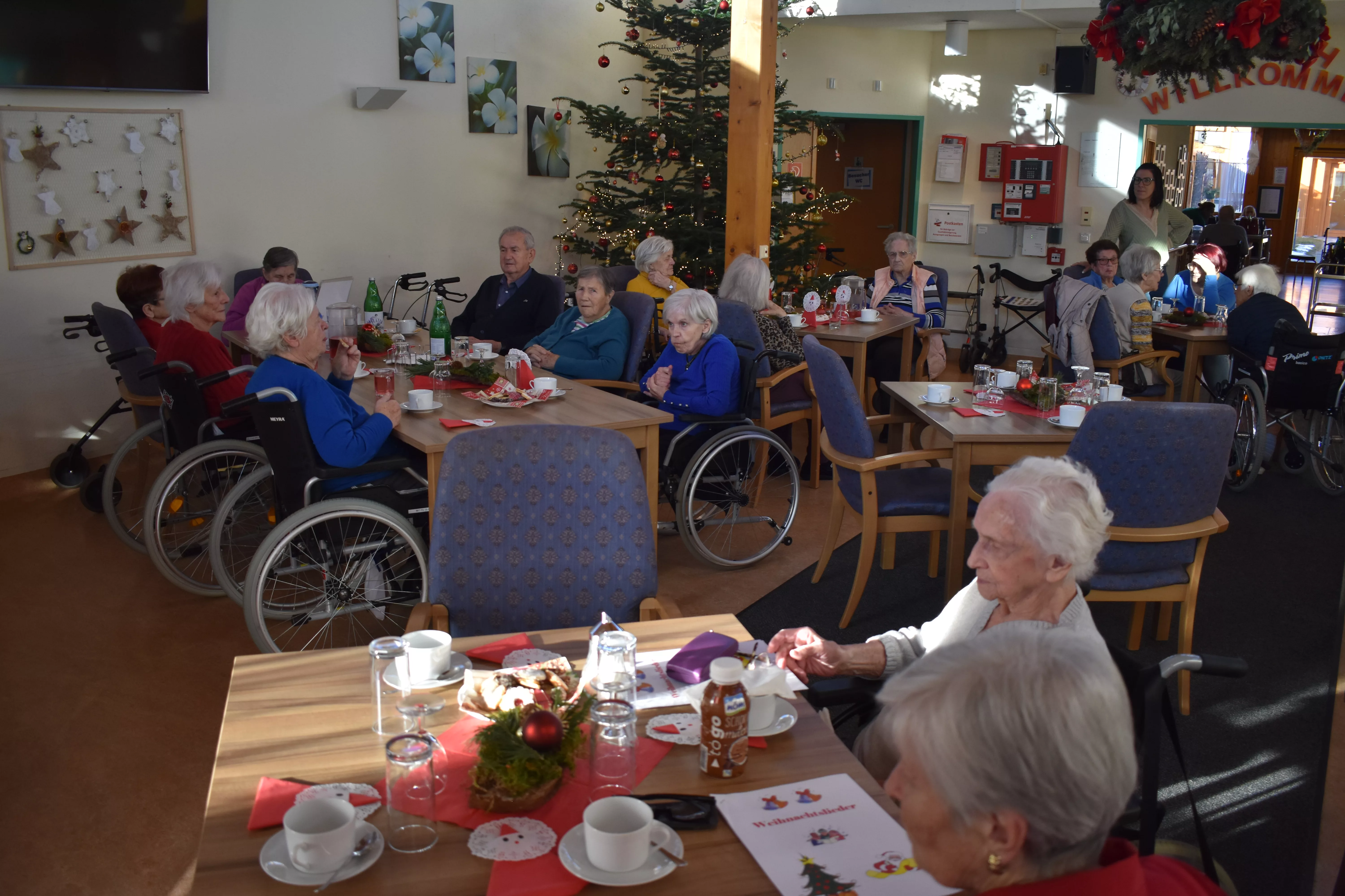Eine kleine, aber sehr feine Adventfeier gab es am Donnerstag, den 12. Dezember 2024 bei uns im Wie daham… Pflegezentrum Murdorf. Mit hausgemachtem Punsch, köstlichen Keksen und am Abend mit Schinkenrolle und Gebäck haben wir viele BewohnerInnen und Angehörige begrüßen dürfen. Unsere mittlerweile traditionelle jährliche Adventfeier wurde von Frau Mostögl Elisabeth musikalisch umrahmt. Bei solchen Veranstaltungen spürt man, dass eines der wichtigsten Geschenke ist, „mit Jemandem Zeit zu verbringen“. Stimmungsvolle Lieder, stimmten die BewohnerInnen und alle Gäste auf die kommenden Weihnachtstage ein, forderten aber auch dazu auf, in dieser oft hektischen Zeit Ruhe einkehren zu lassen