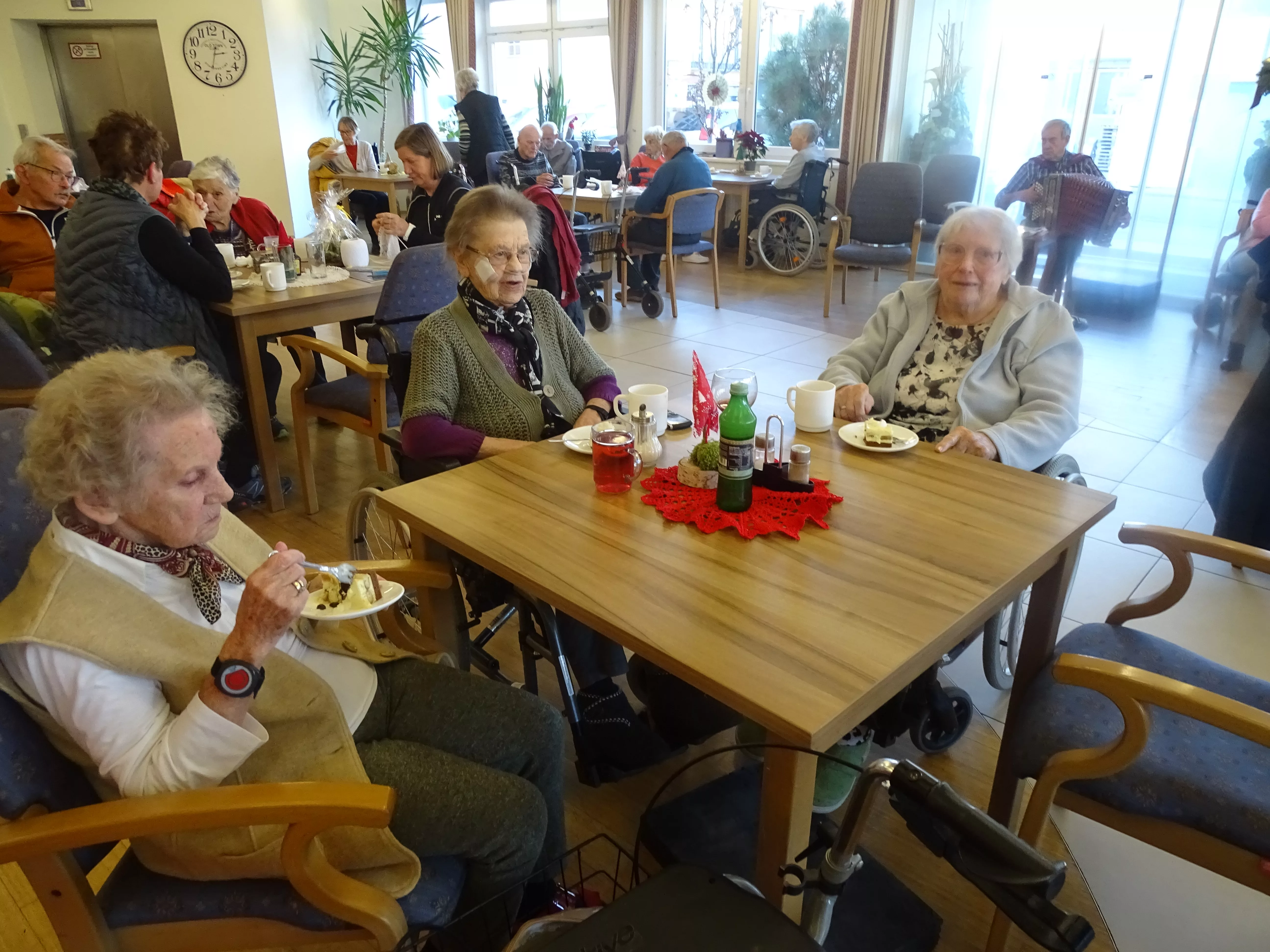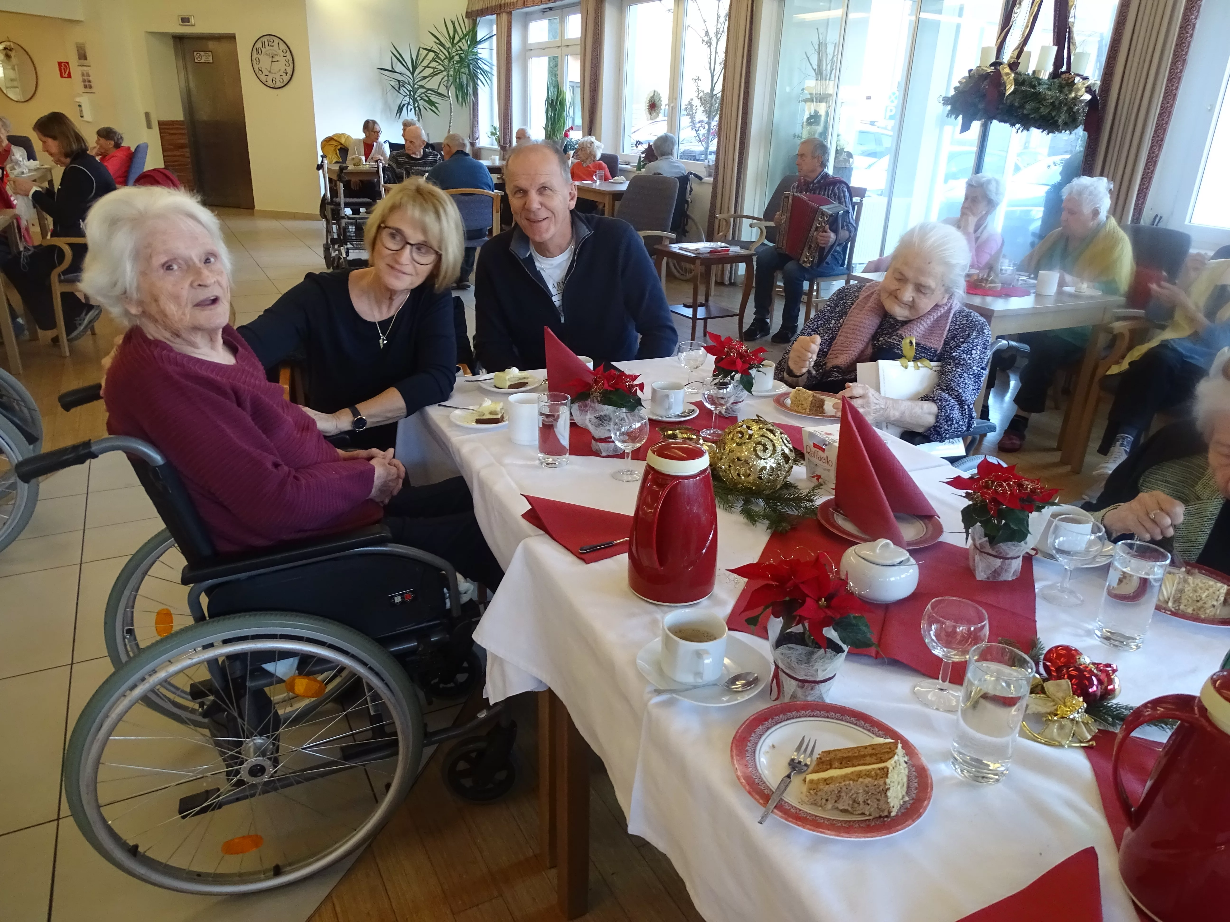 Im „Wie daham…“ Senioren-Stadthaus Judenburg wurden die Geburtstagskinder des Monats Dezember hochgepriesen und gefeiert. Mit köstlichen Kuchenkreationen, Sekt und Kaffee sowie fröhlichen Melodien, die zum Tanzen und Schunkeln animierten, ließ man die im Dezember Geborenen hochleben.
