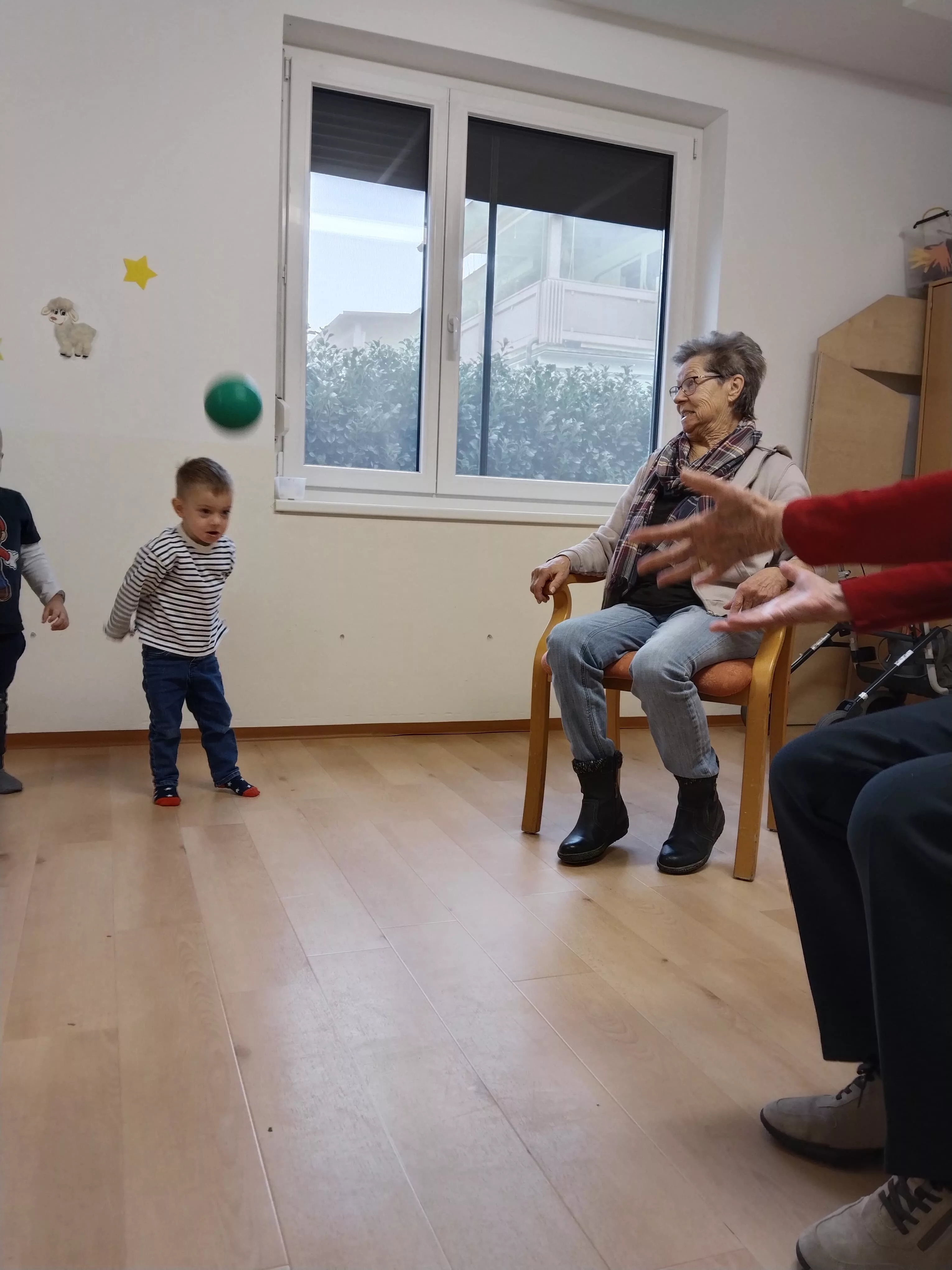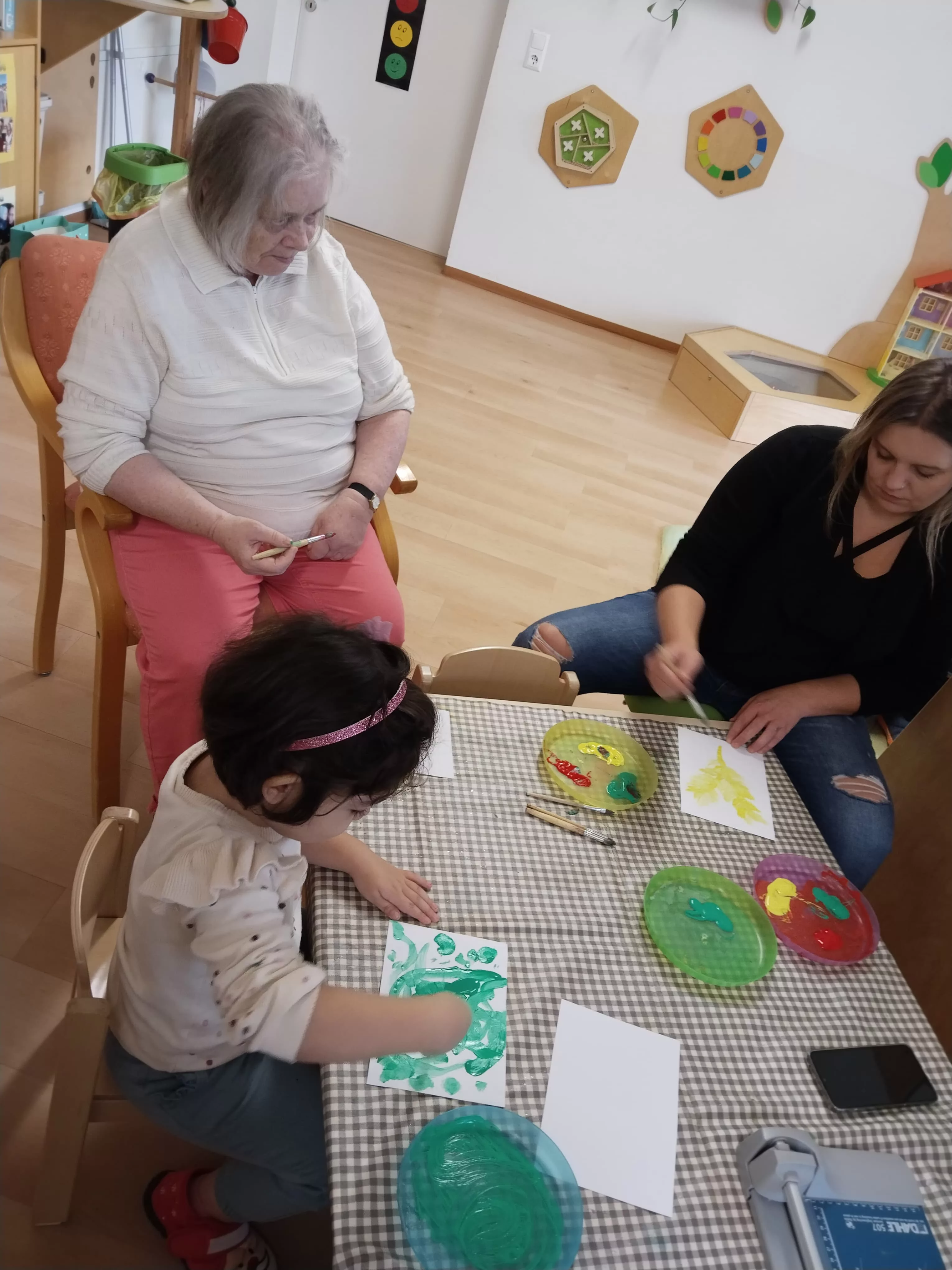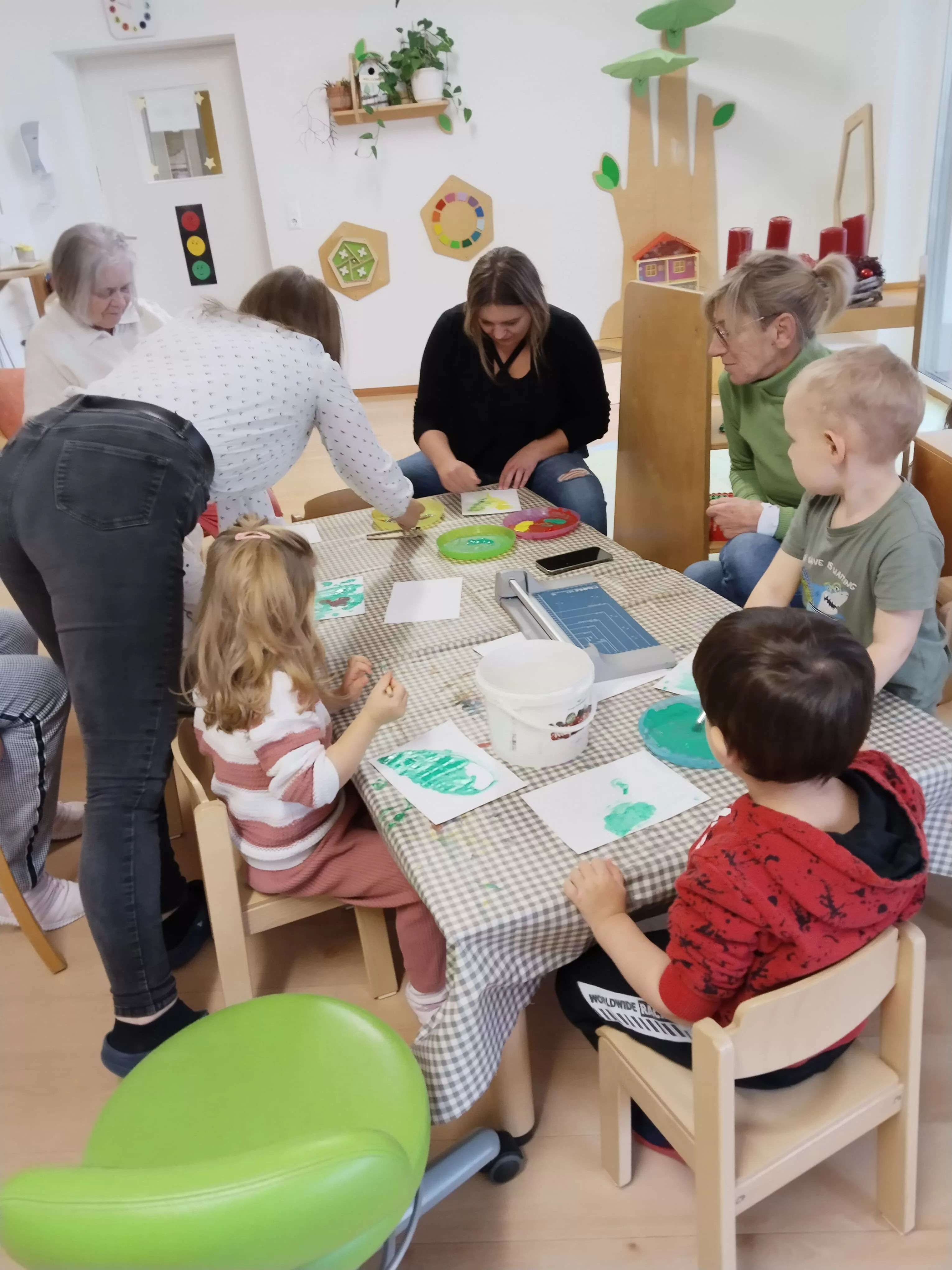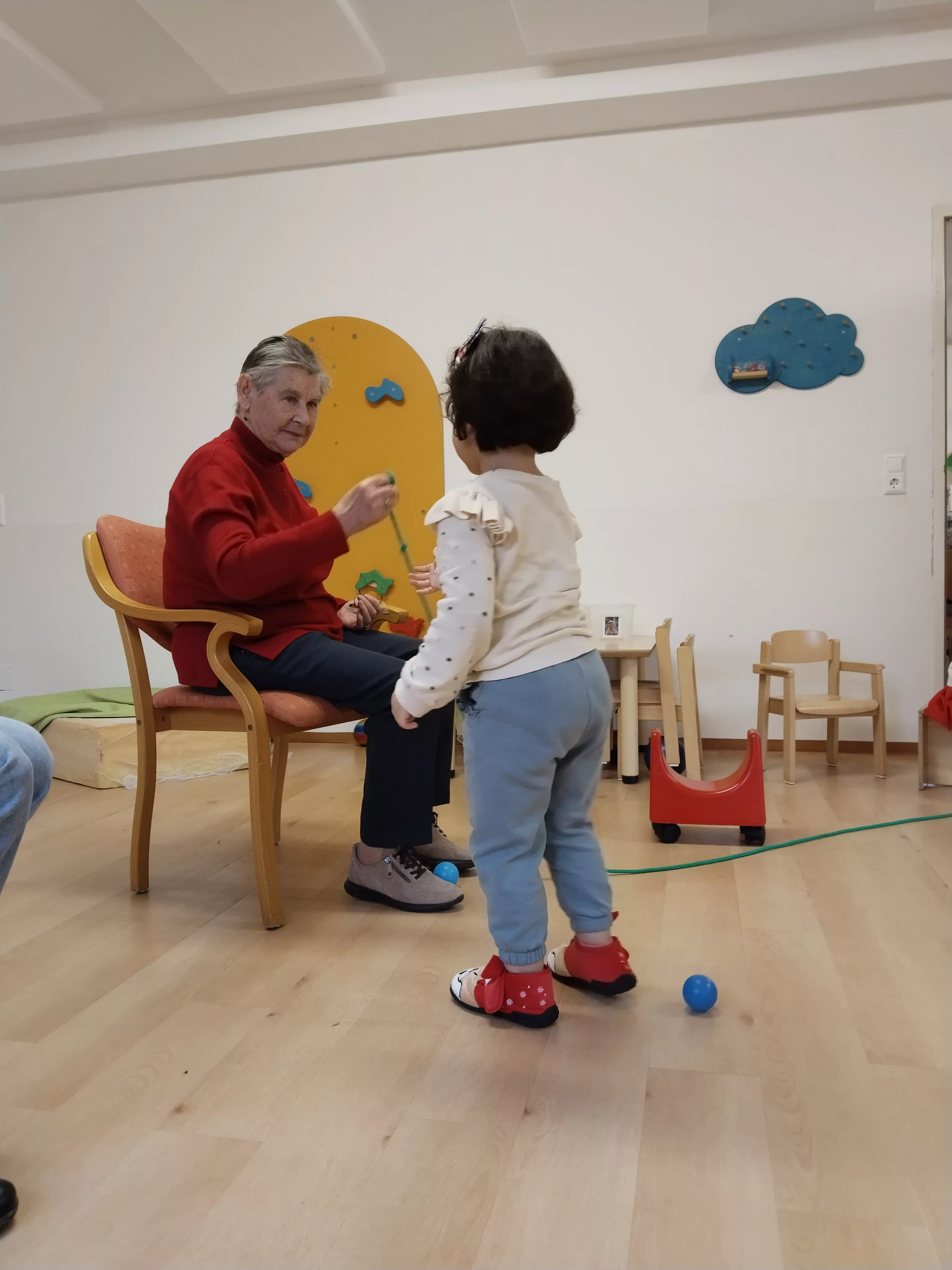 Die Kinder der Kindertagesstätte Abracadabra und die Bewohner und Bewohnerinnen des „Wie daham…“ Generationenparks Welzenegg verbrachten heute einen lustigen Vormittag in der Kita.