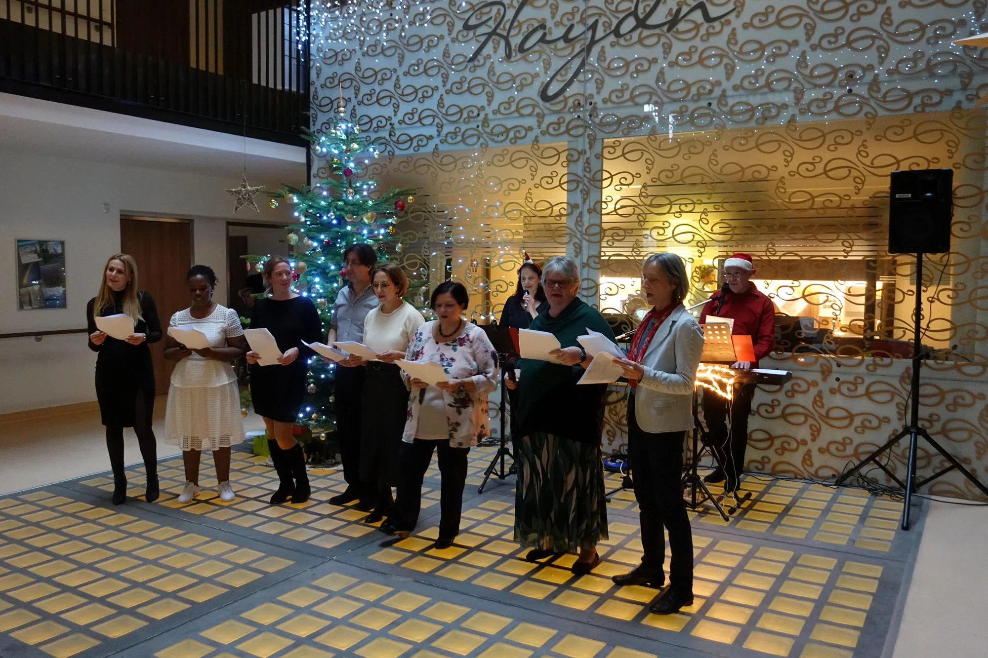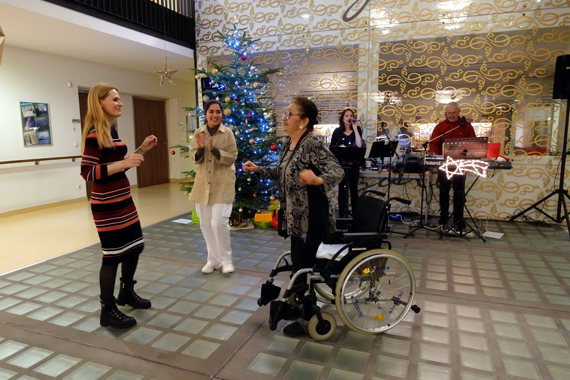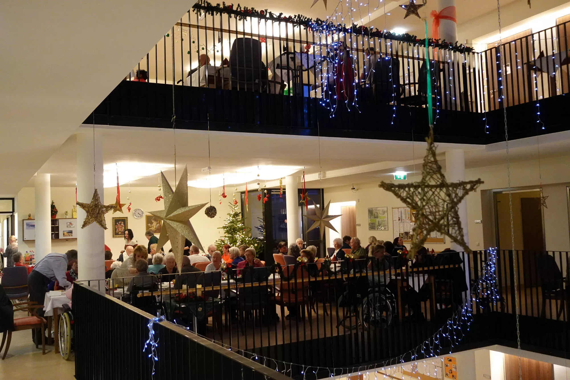 Traditioneller Weise laden wir am letzten Donnerstag vor Weihnachten zur gemeinsamen Weihnachtsfeier ein. Die Senioren verbrachten mit zahlreich erschienenen Angehörigen einen ausgesprochen besinnlichen Nachmittag. Gemeinsam mit dem Animationsteam wurden traditionelle Weihnachtslieder gesungen. Das professionelle musikalische Rahmenprogramm bildete einmal mehr die Band mit Herz, welches zusätzlich mit einem Überraschungsgast bereichert wurde. Frau Kammersängerin Nika Milliard begeisterte die Anwesenden mit ausgebildeter Sopranstimme und Showeinlagen. Anschließend wurde zum Buffet geladen.