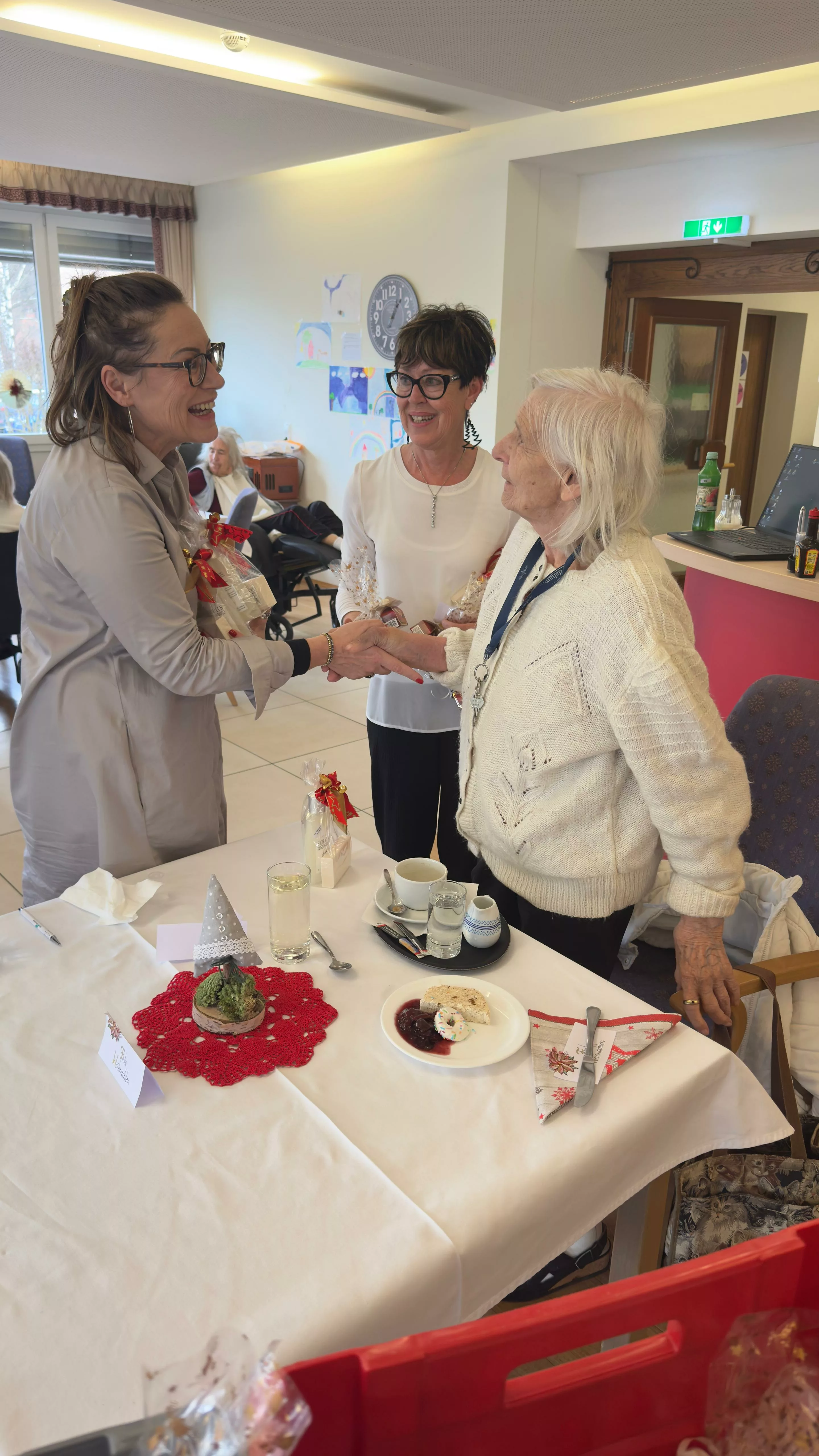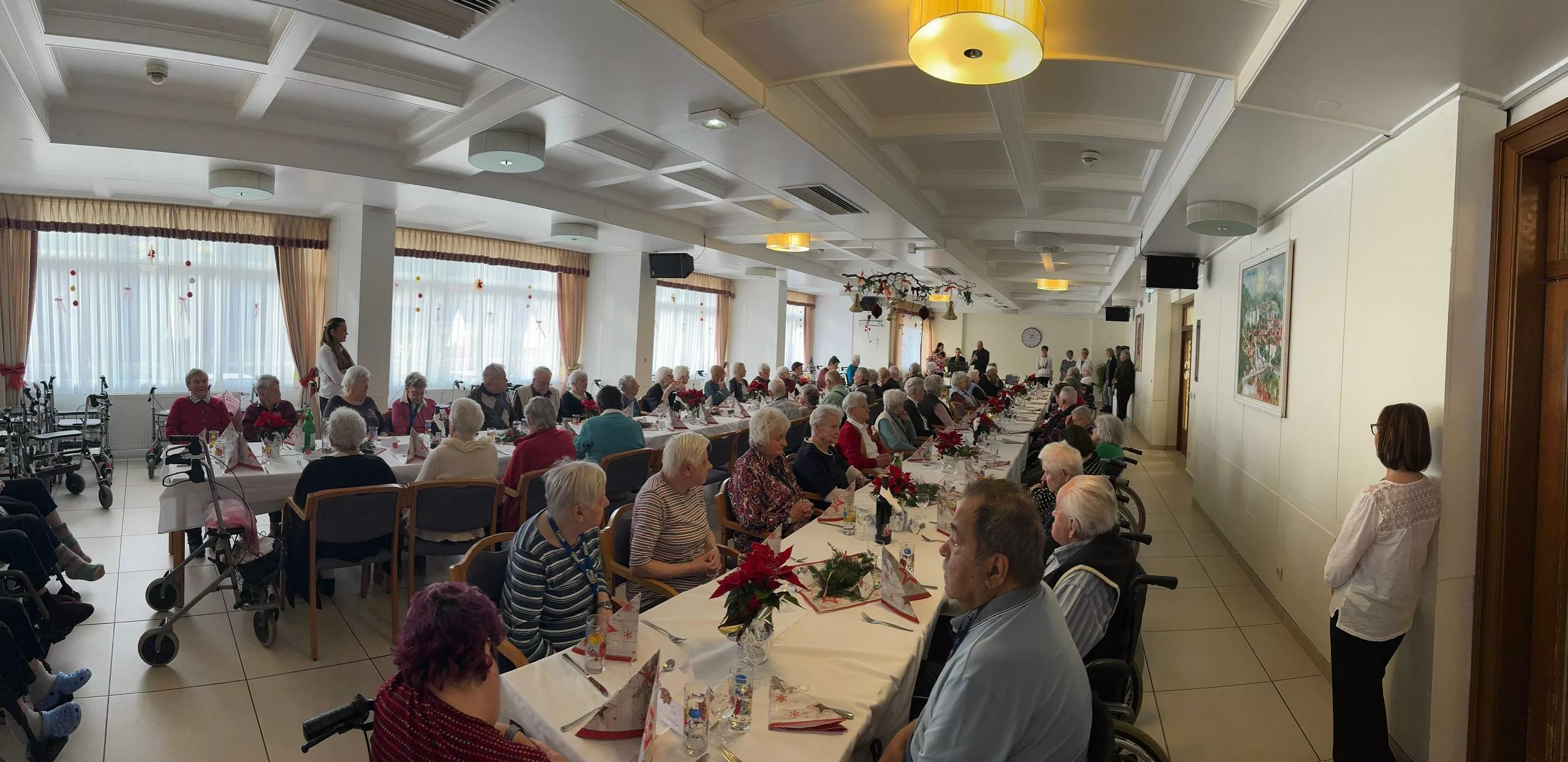 Das alljährliche Weihnachtsfest mit den „Wie daham…“ BewohnerInnen war ein zauberhafter Nachmittag mit köstlichem Essen, weihachtlichem Gebäck, einzigartigen Keksen und besinnlichen Weihnachtsklängen. Frau GR Susanne Lew und Bürgermeisterin Mag. Elke Florian verteilten Geschenke an die „Wie daham…“-BewohnerInnen und erfreuten sich der fröhlichen Stimmung des „Wie daham…“-Festes.