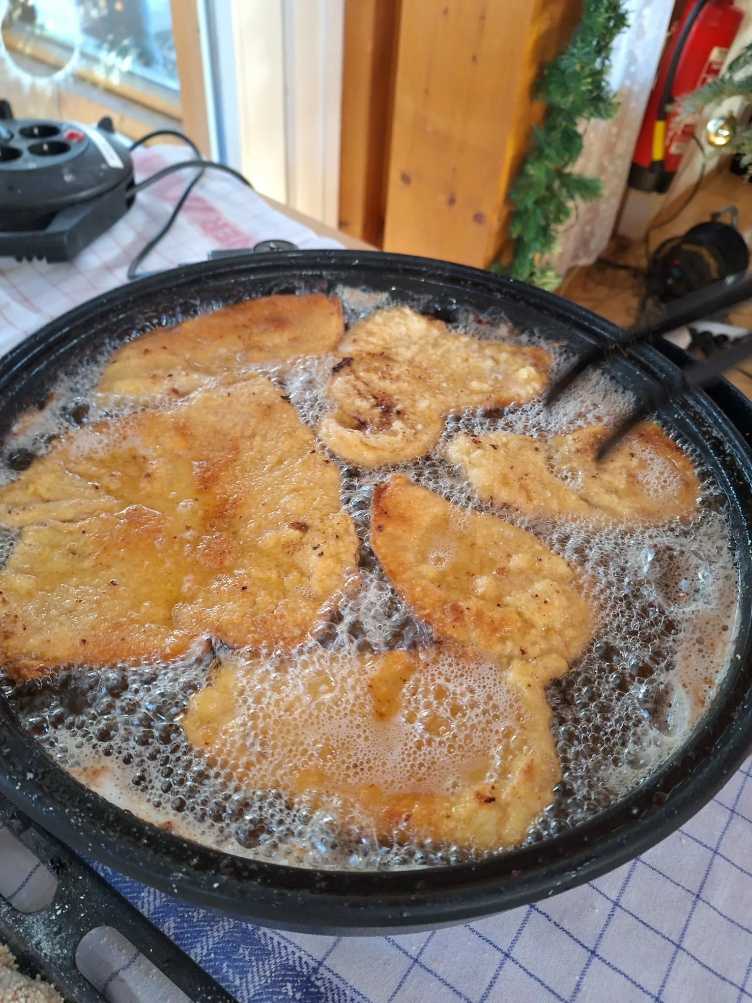 Bei unserer heutigen Geburtstagsfeier der Dezemberkinder gab es eine Sellerie-Apfel-Suppe und Wiener Schnitzel mit Kartoffelsalat. Als Nachspeise gab es eine Topfentorte.