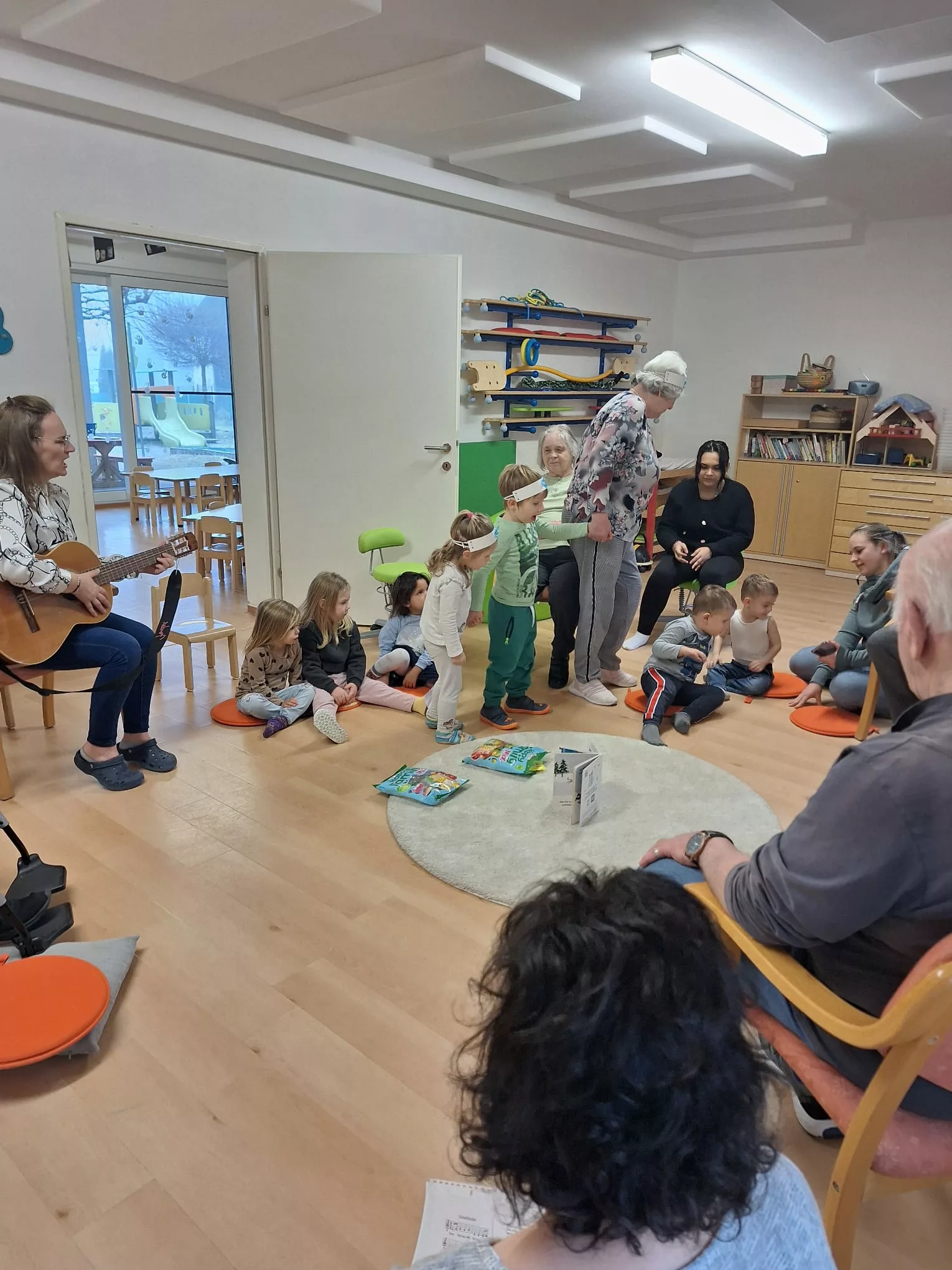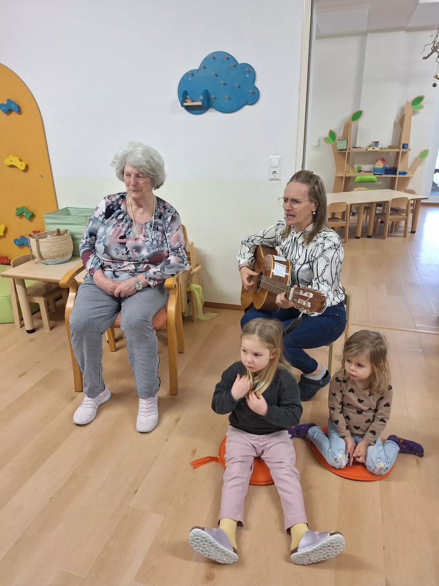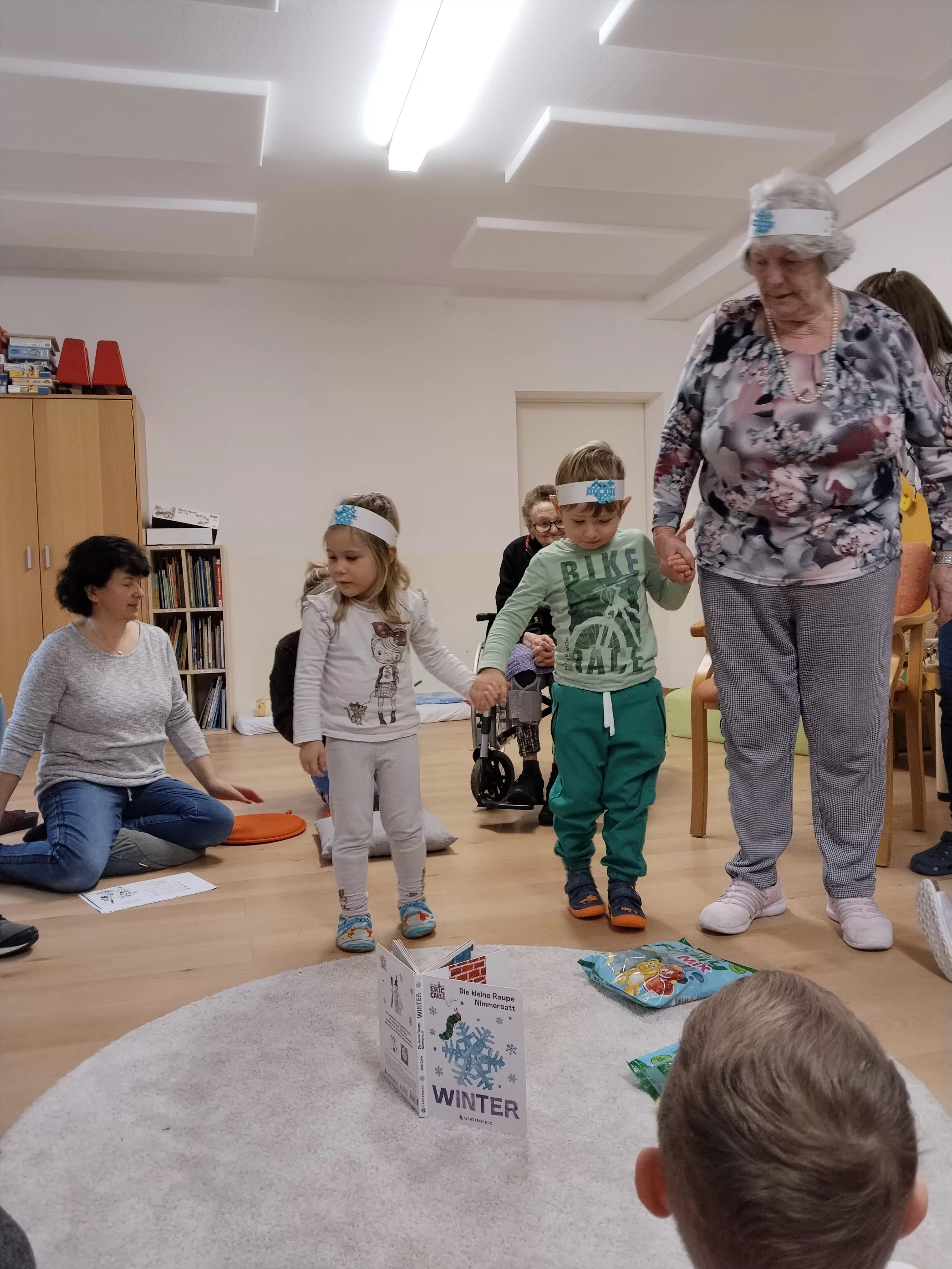 Die Kinder der Kindertagesstätte Abracadabra und die Bewohner und Bewohnerinnen des „Wie daham…“ Generationenparks Welzenegg verbrachten heute einen lustigen Vormittag in der Kita.