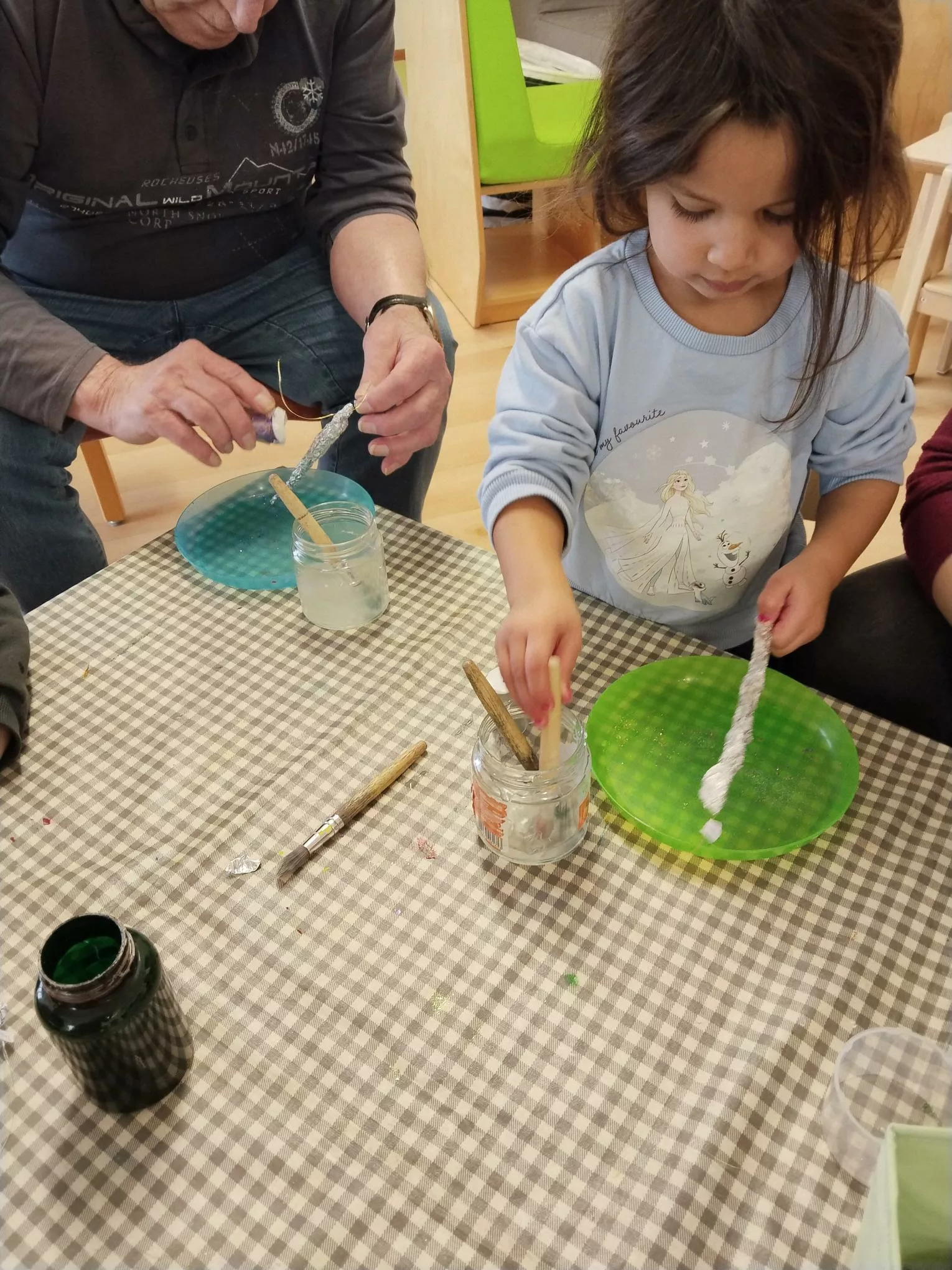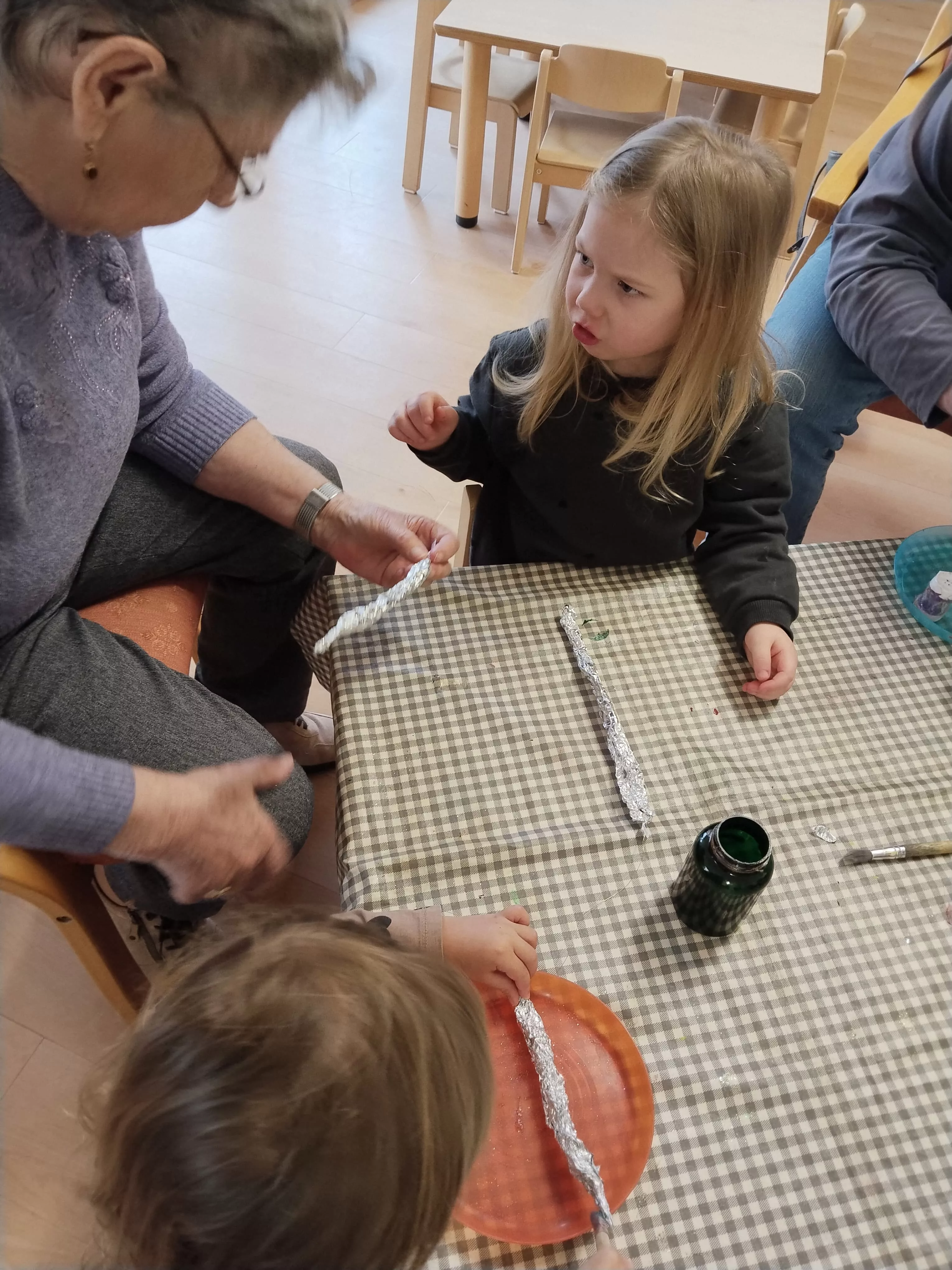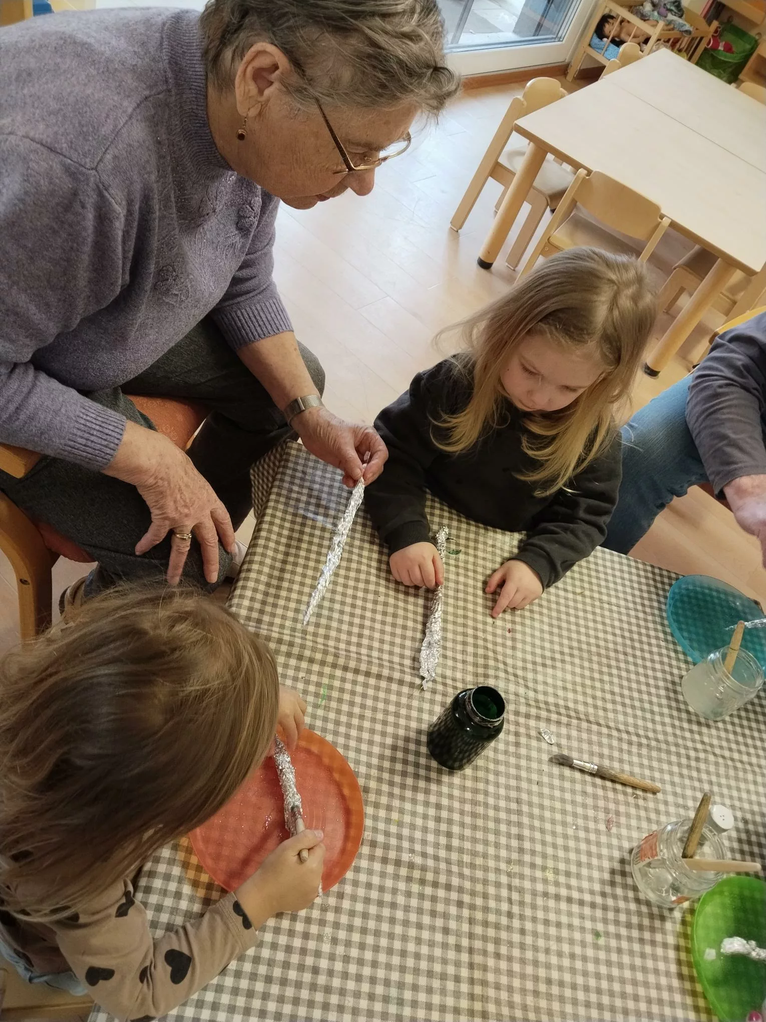 Heute wurde uns die Geschichte von der Raupe Nimmersatt im Winter erzählt. Die kleinen Schneeflocken haben fröhlich für uns im Kreis getanzt. Danach ging es auf zum basteln. Es wurden wunderschöne glitzernde Eiszapfen gestaltet. Geglitzert haben danach nicht nur die Eiszapfen. 😊