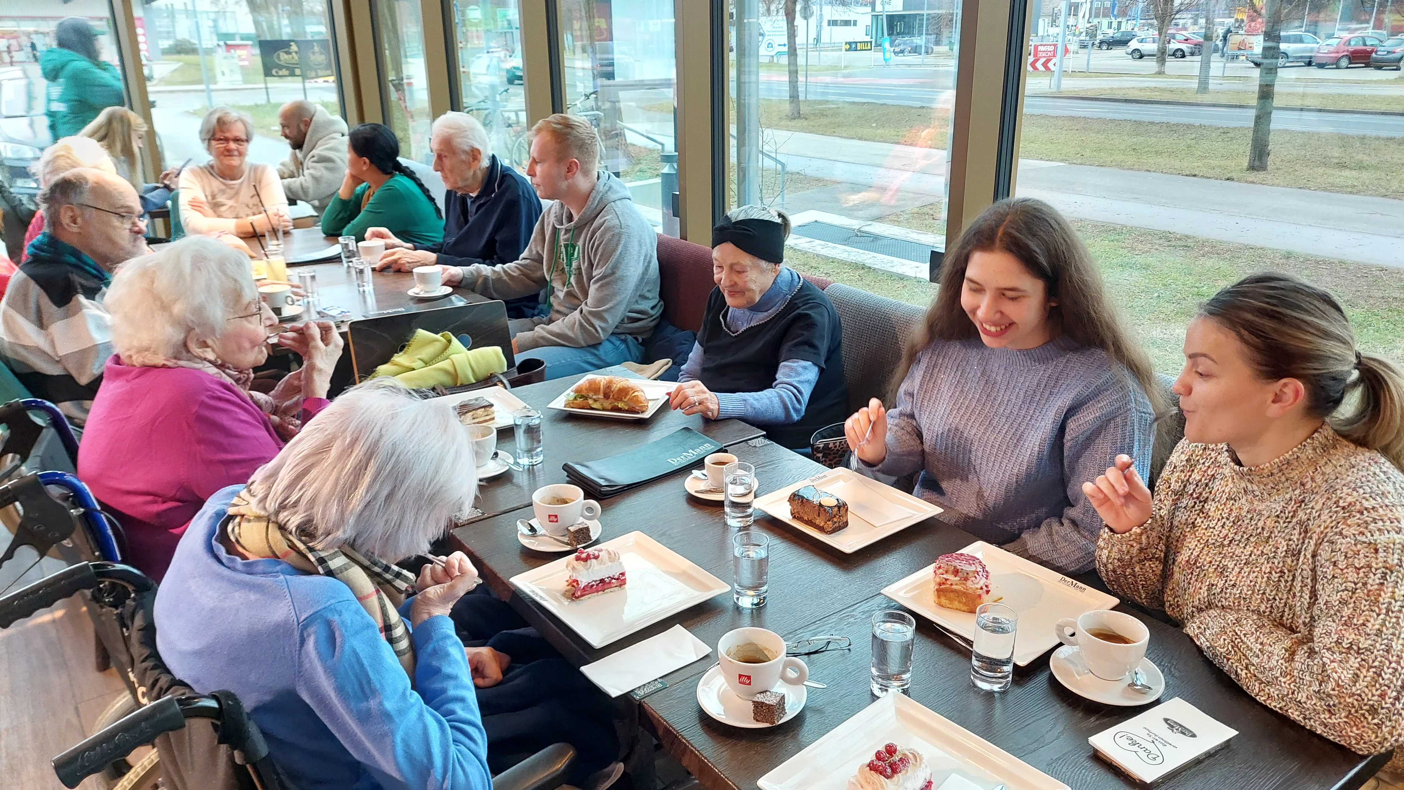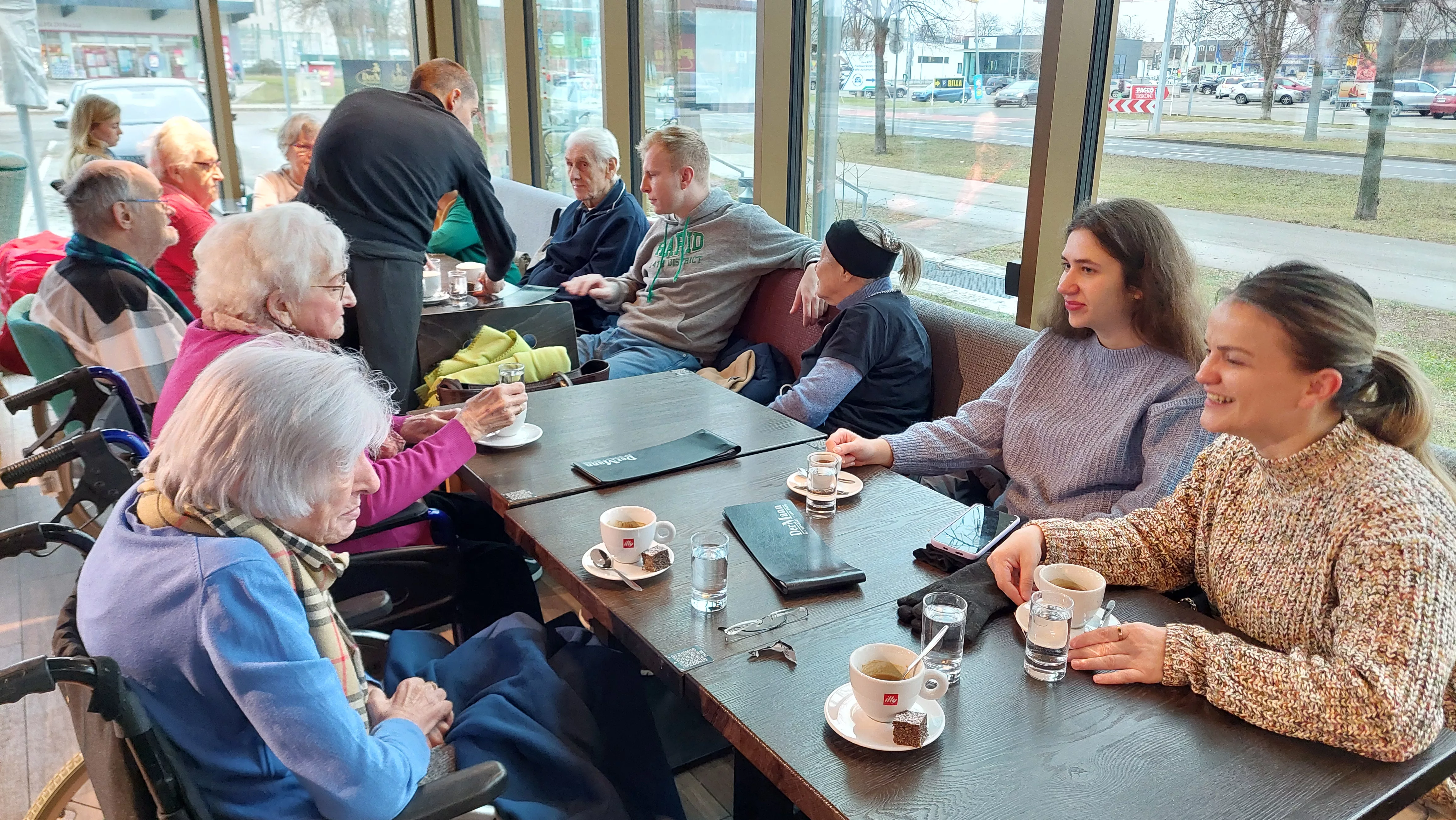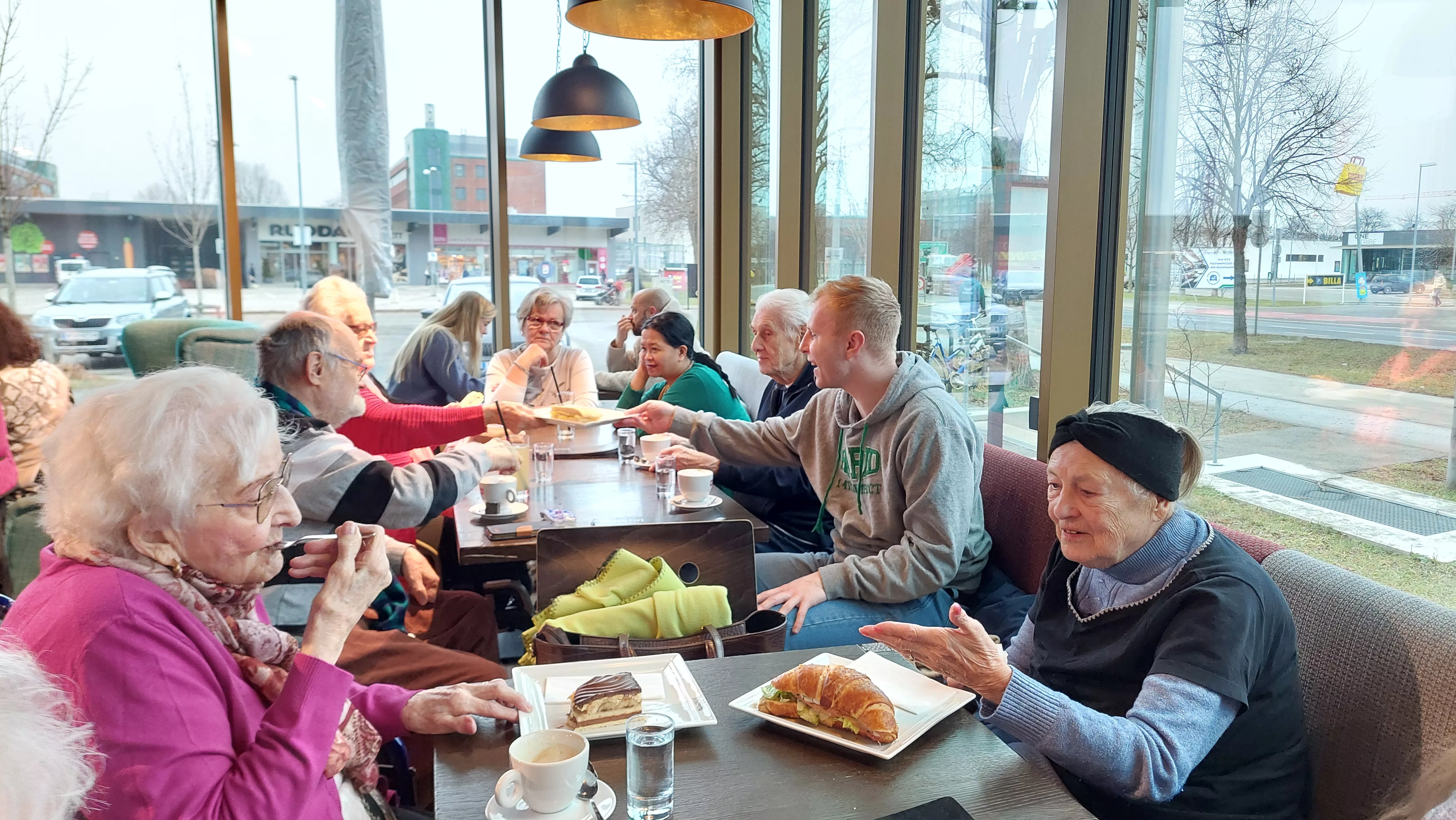 Am Mittwoch, den 22.01.2025 fand im Generationendorf ein ganz besonderes Kaffeekränzchen statt – ein ehemaliger Zivildiener startete mit Kolleginnen und Kollegen ein Herzensprojekt und begleitete unsere Bewohnerinnen und Bewohner zum Nachmittagskaffee. Eine gelungene Abwechslung, die allen viel Freude bereitet hat.
