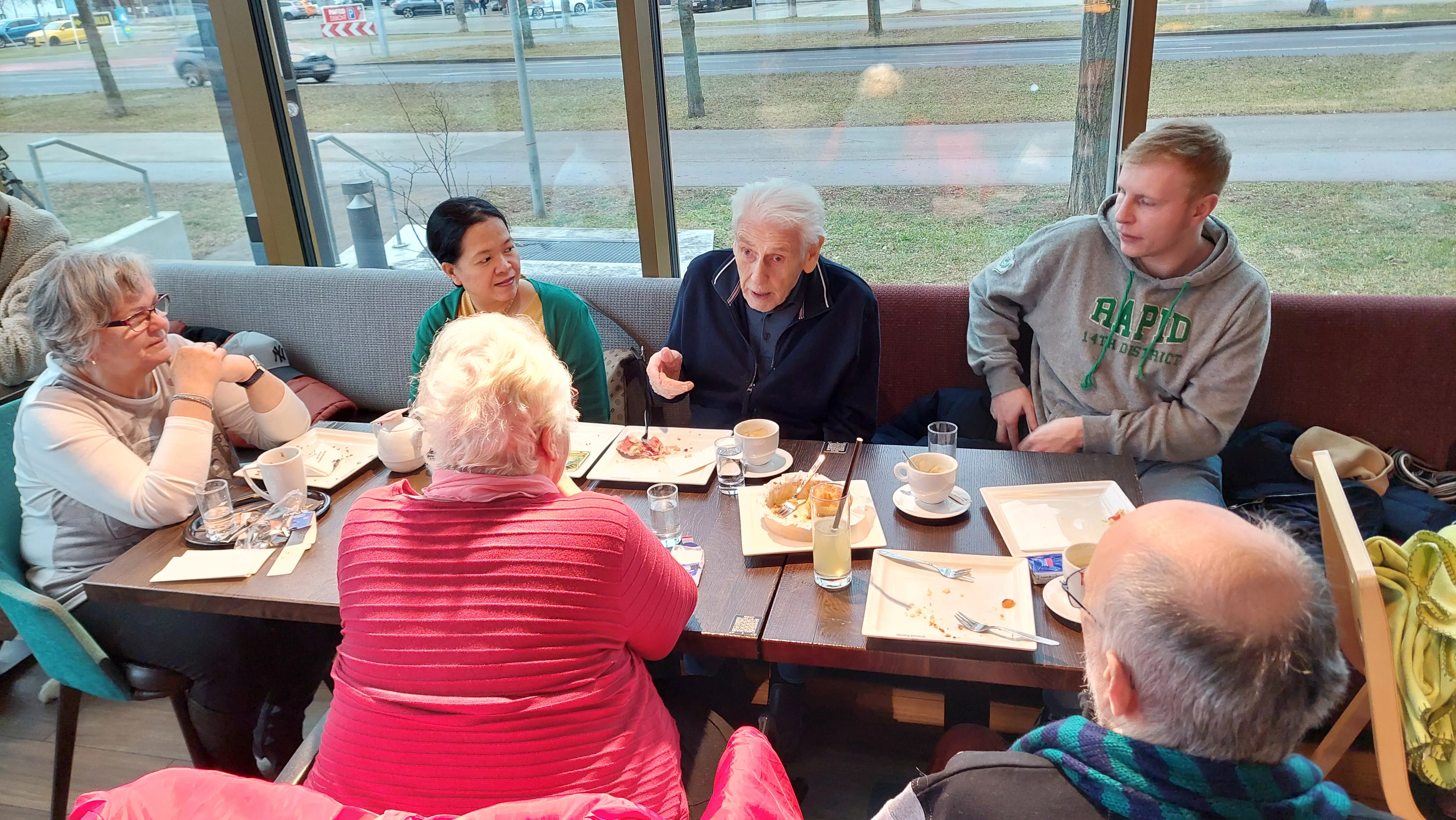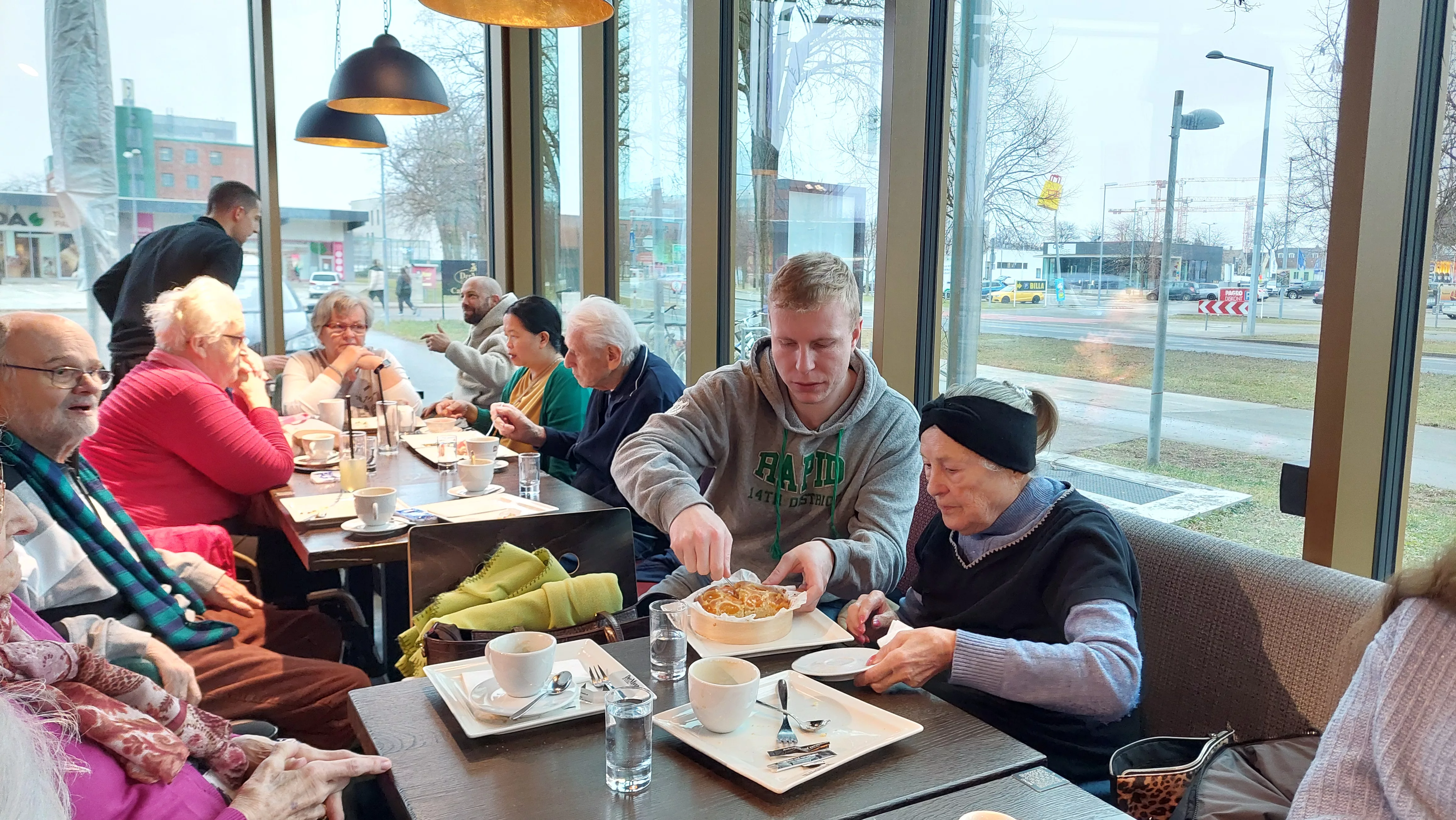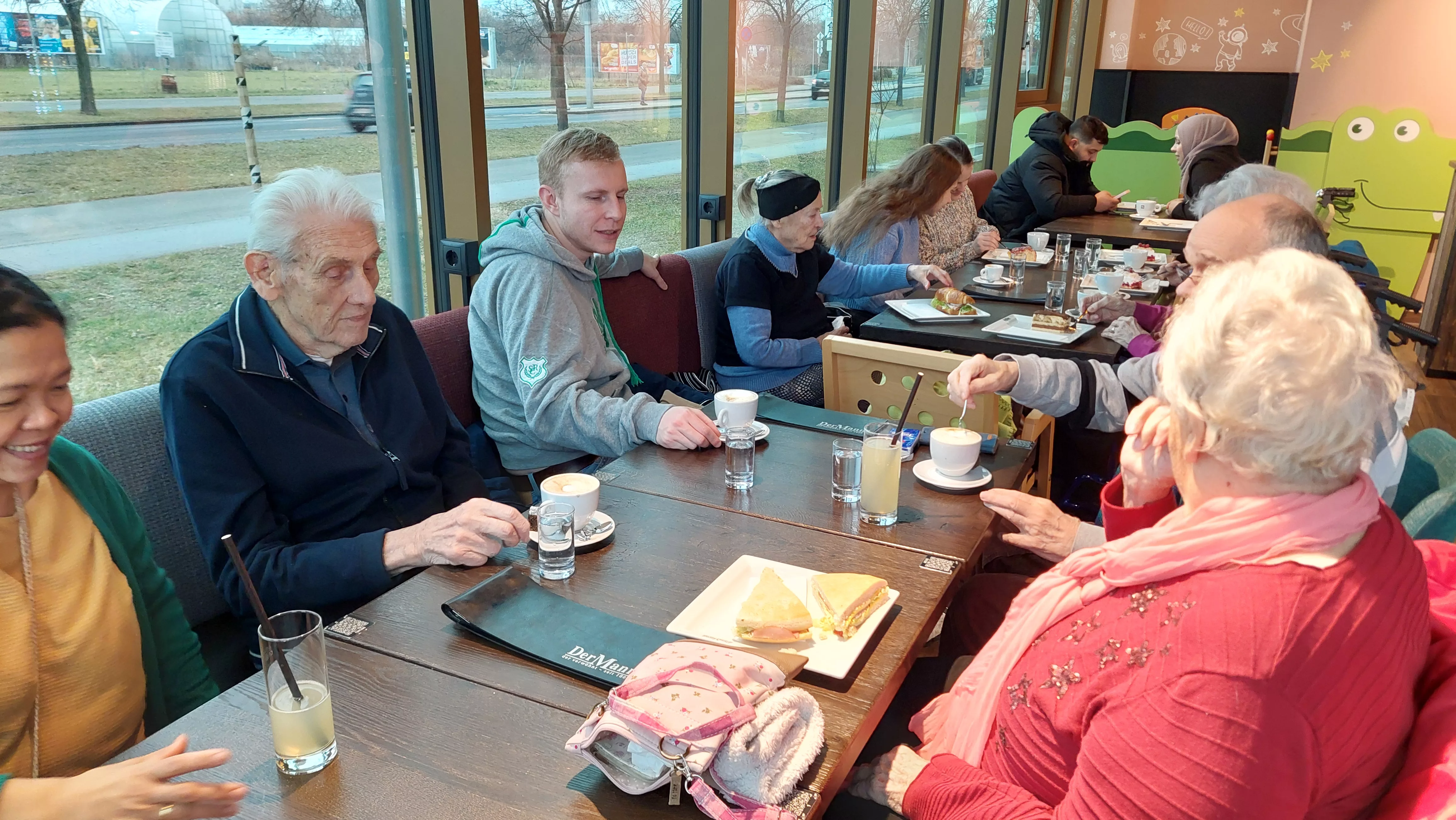 Am Mittwoch, den 22.01.2025 fand im Generationendorf ein ganz besonderes Kaffeekränzchen statt – ein ehemaliger Zivildiener startete mit Kolleginnen und Kollegen ein Herzensprojekt und begleitete unsere Bewohnerinnen und Bewohner zum Nachmittagskaffee. Eine gelungene Abwechslung, die allen viel Freude bereitet hat.