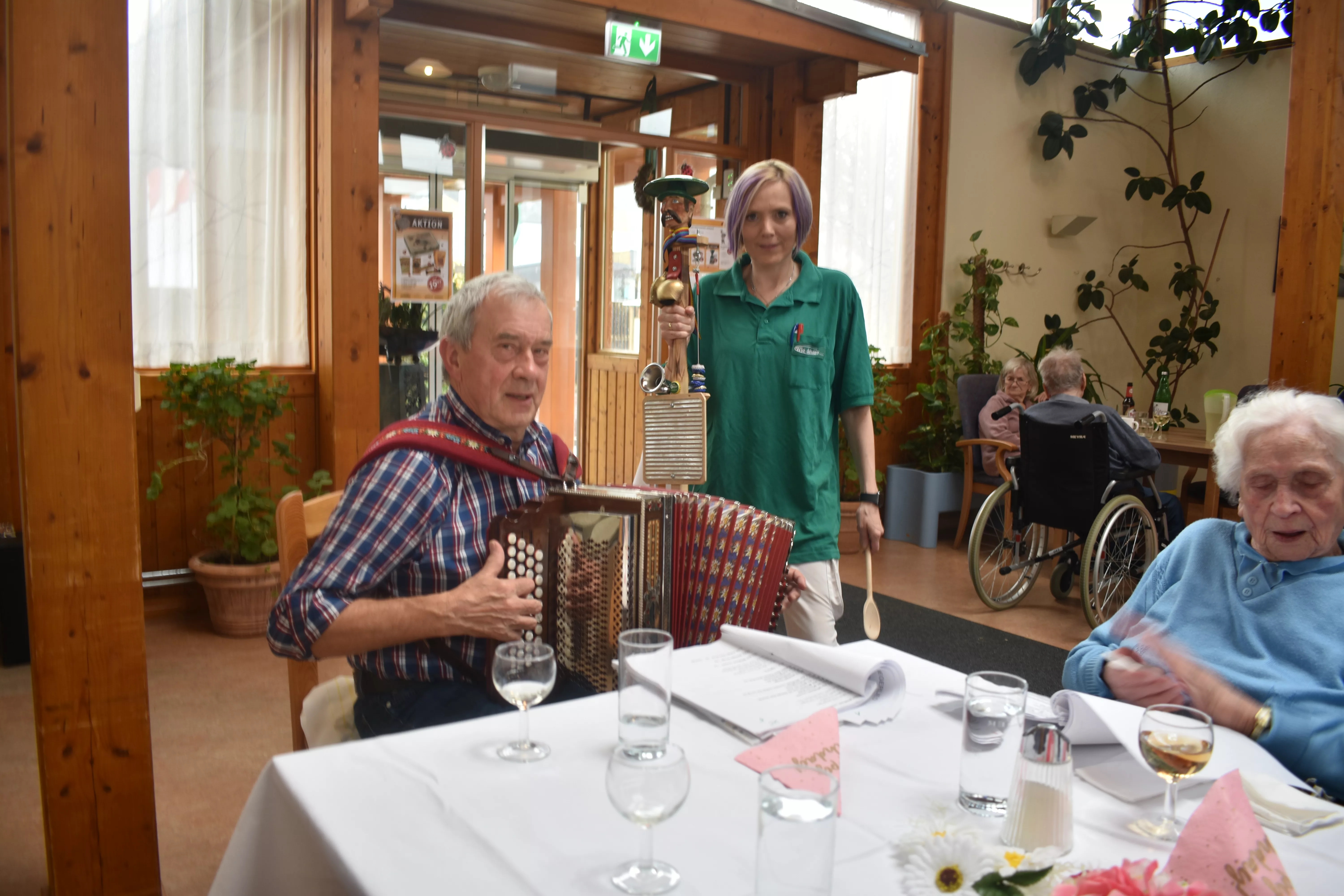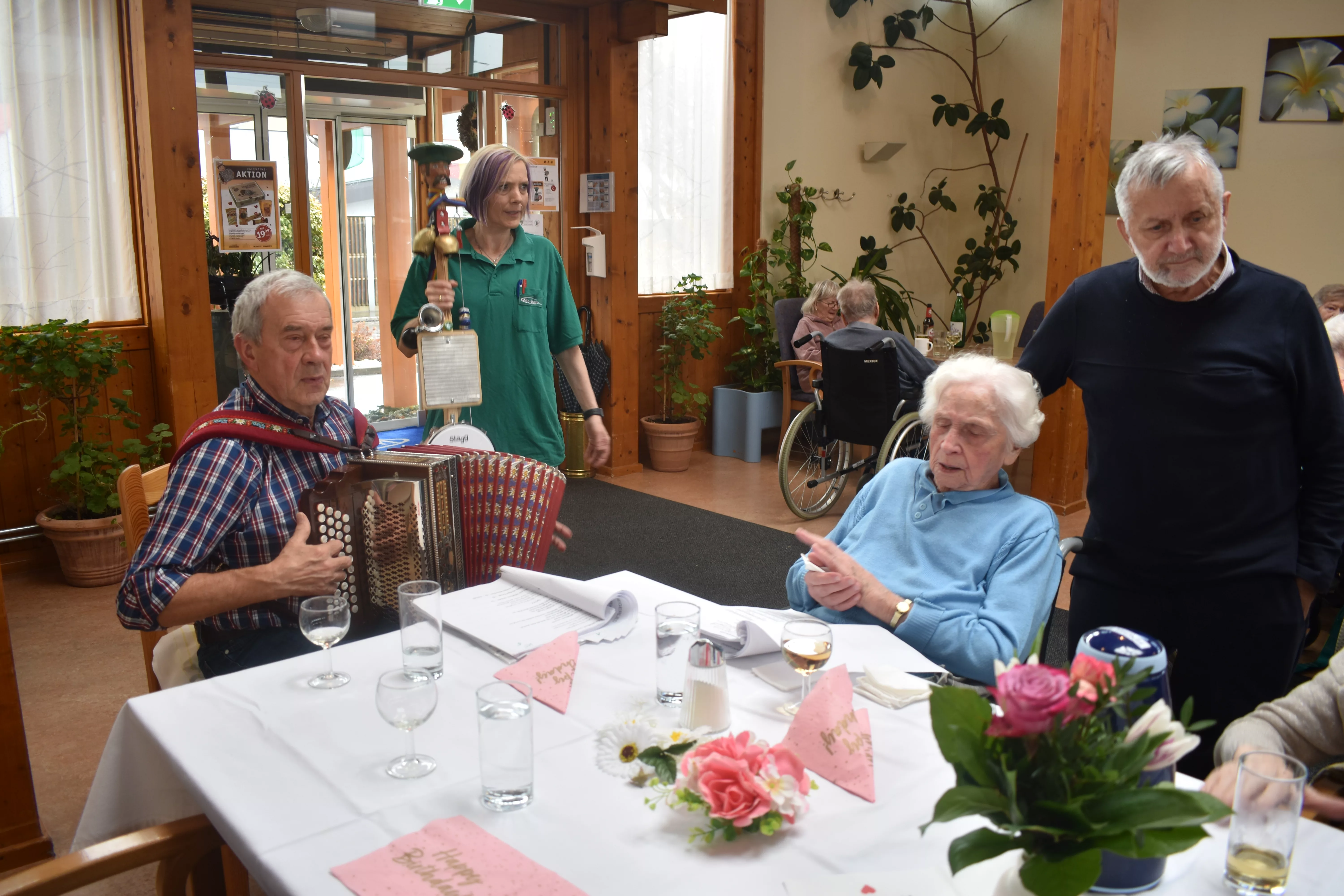 Am 28. Jänner 2025 starteten wir in unsere 1. Monatsgeburtstagsfeier im neuen Jahr. Unsere Mitarbeiterin Melanie packte die Teufelsgeige aus und brachte sofort Schwung in unsere gemütliche Geburtstagsfeier. Herr Sunitsch stimmte sofort mit seiner Harmonika mit ein und so begannen alle zu singen und zu schunkeln. Die Torten von unserer Claudia ließen sich alle mit einer Tasse Kaffee besonders schmecken!