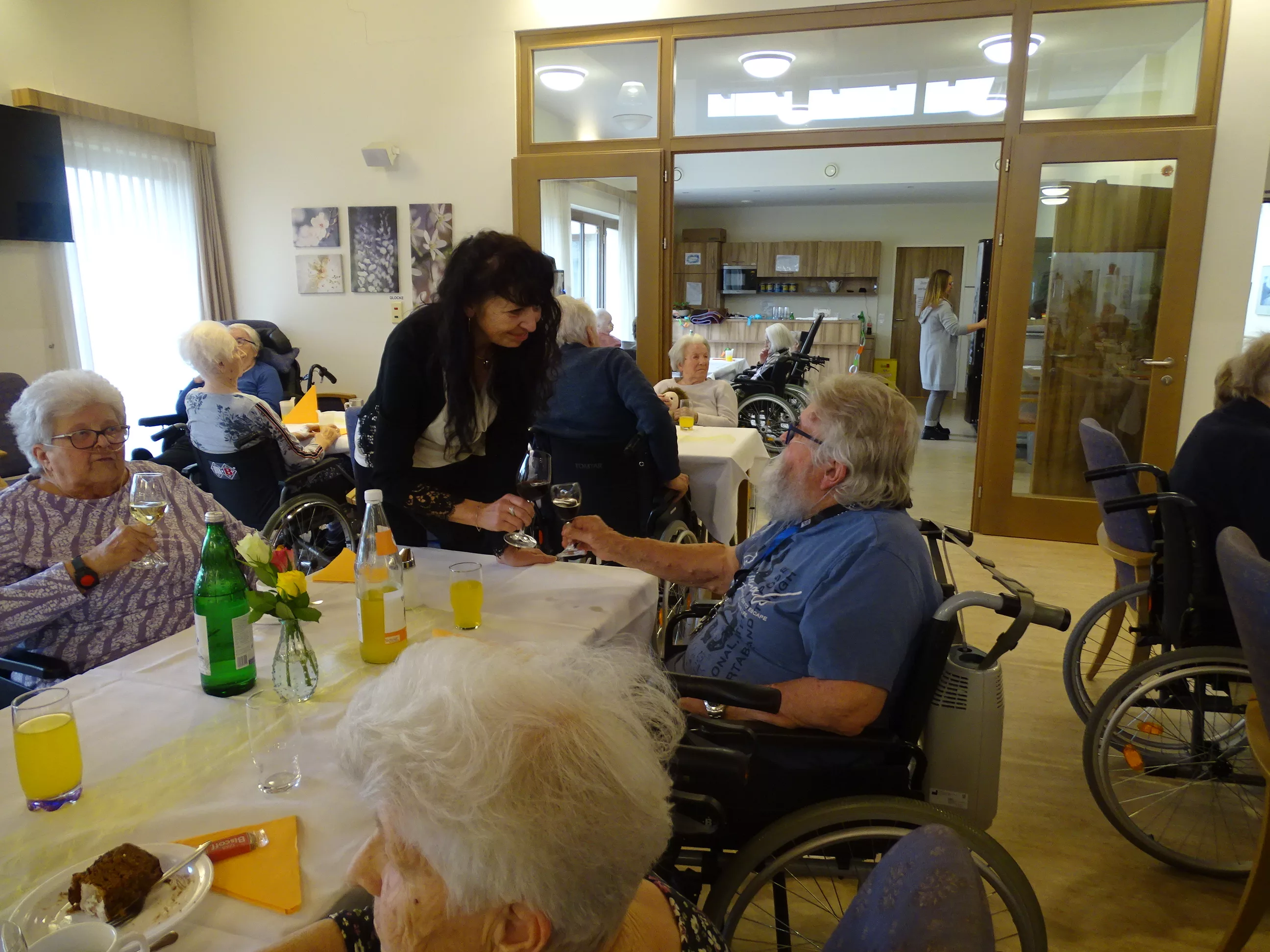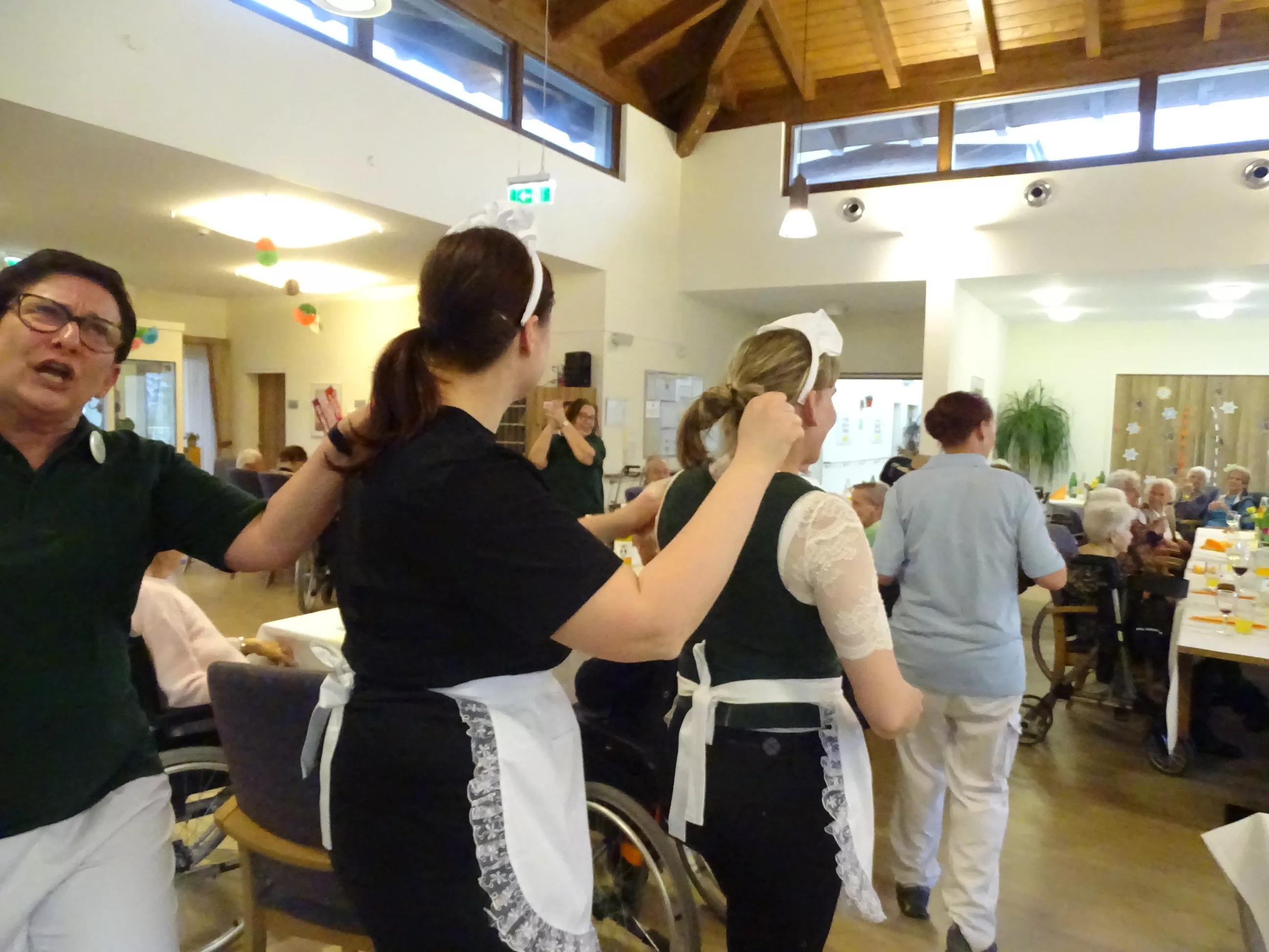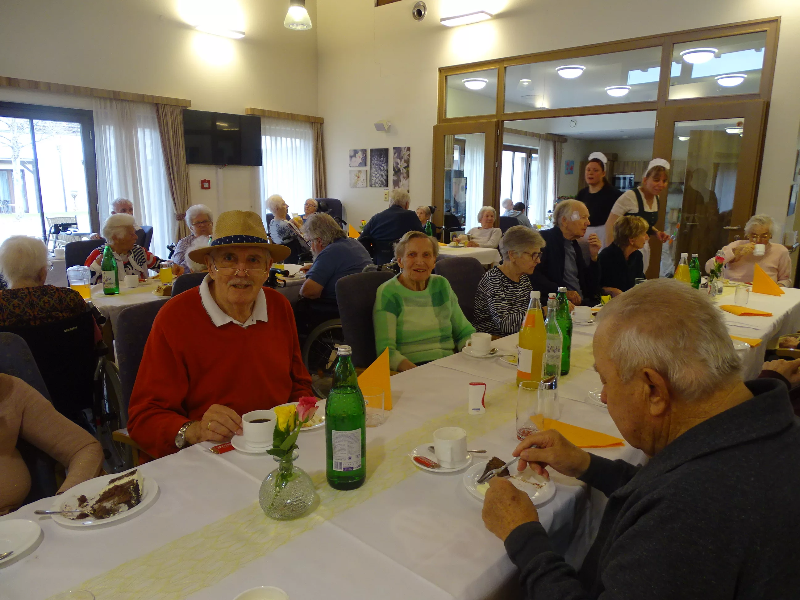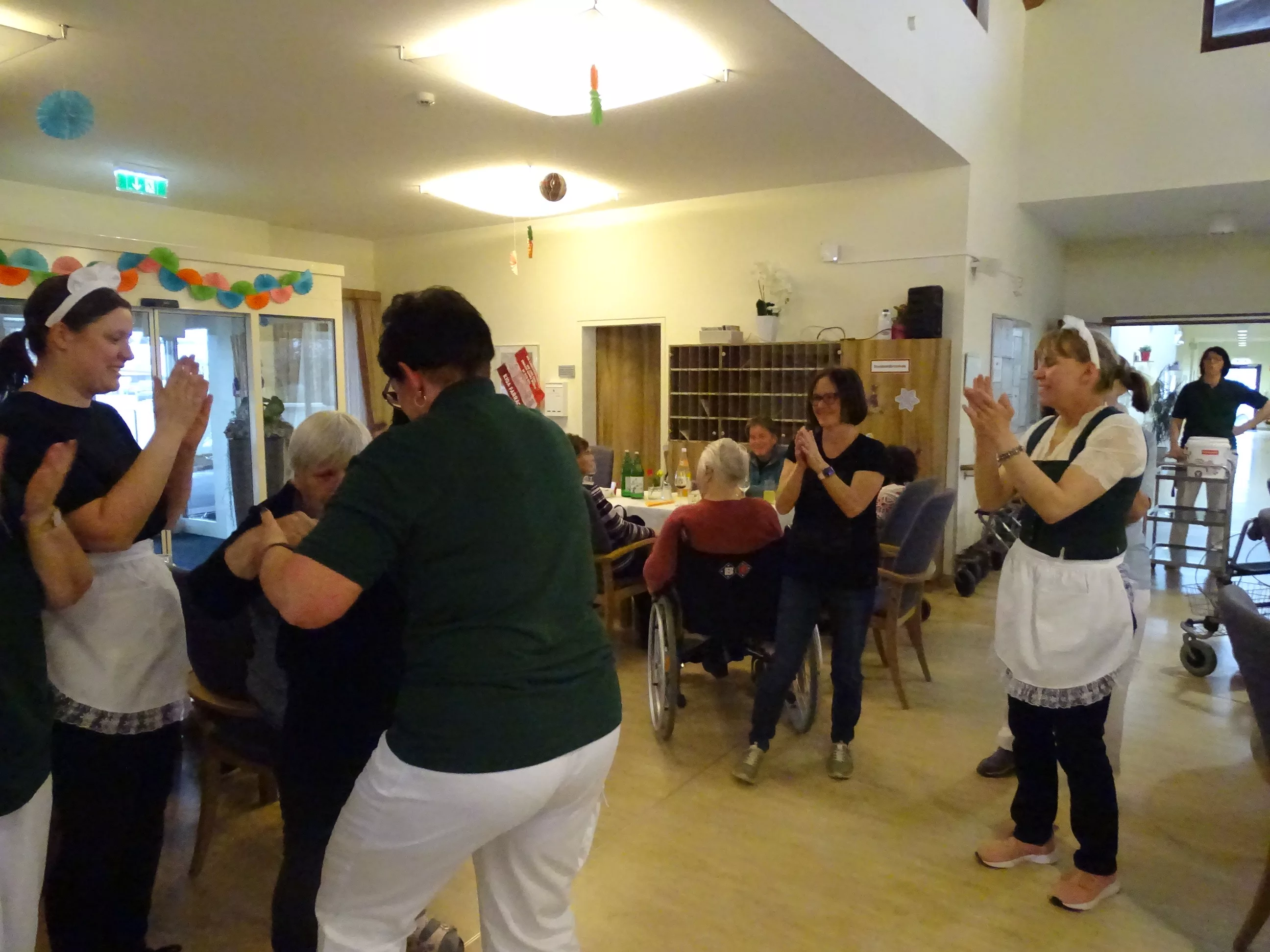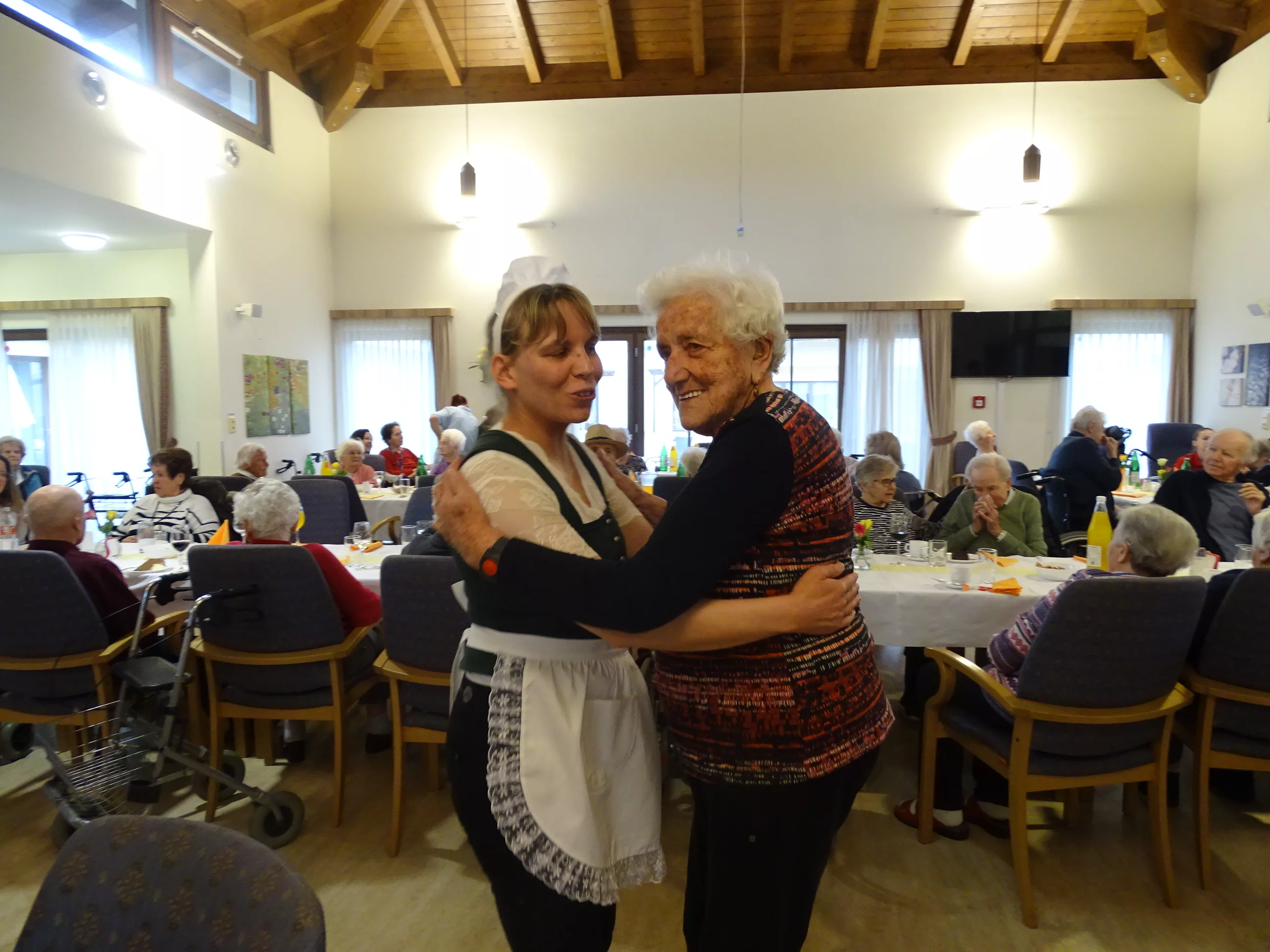 Unser „Wiener Cafehaus“ am 11.02.2025 war ein tolles Zusammenkommen von unseren BewohnerInnen. Unsere DJ Sabine brachte mit Ihrem Wurlitzer beste Stimmungunser Haus! Unsere BewohnerInnen wünschten sich die verschiedensten Lieder. Es wurde getanzt, gesungen miteinander ein Achterl Wein getrunken und geschunkelt. Der Höhepunkt war das Service von unseren „Servierpersonal“ Sabine und Sabine, die die leckeren Torten unserer Claudia im perfekten Servier „Look“ unseren BewohnerInnen brachten. Die Polonaise war ein weiterer Höhepunkt unserer kleinen aber feinen Feier!
