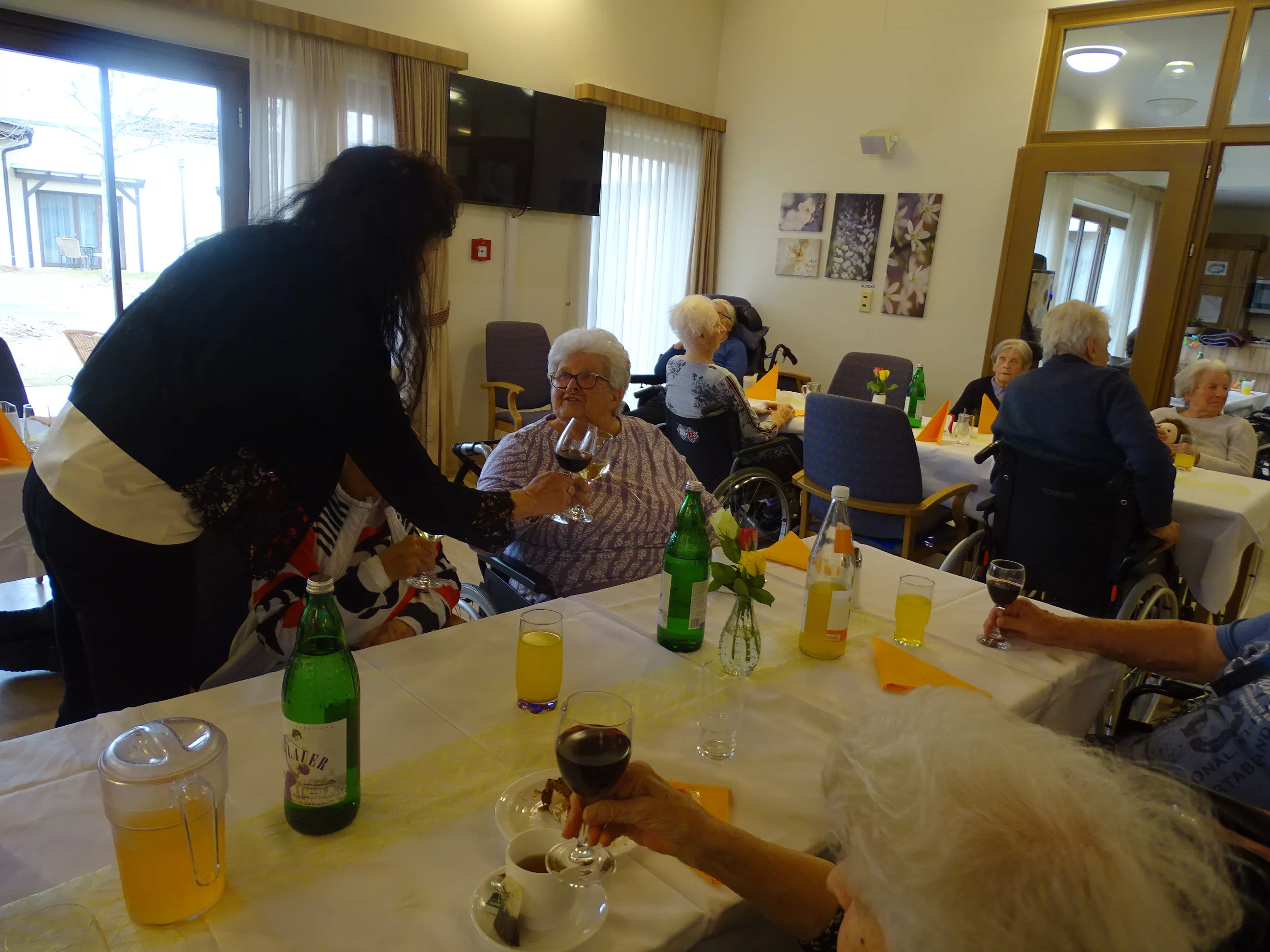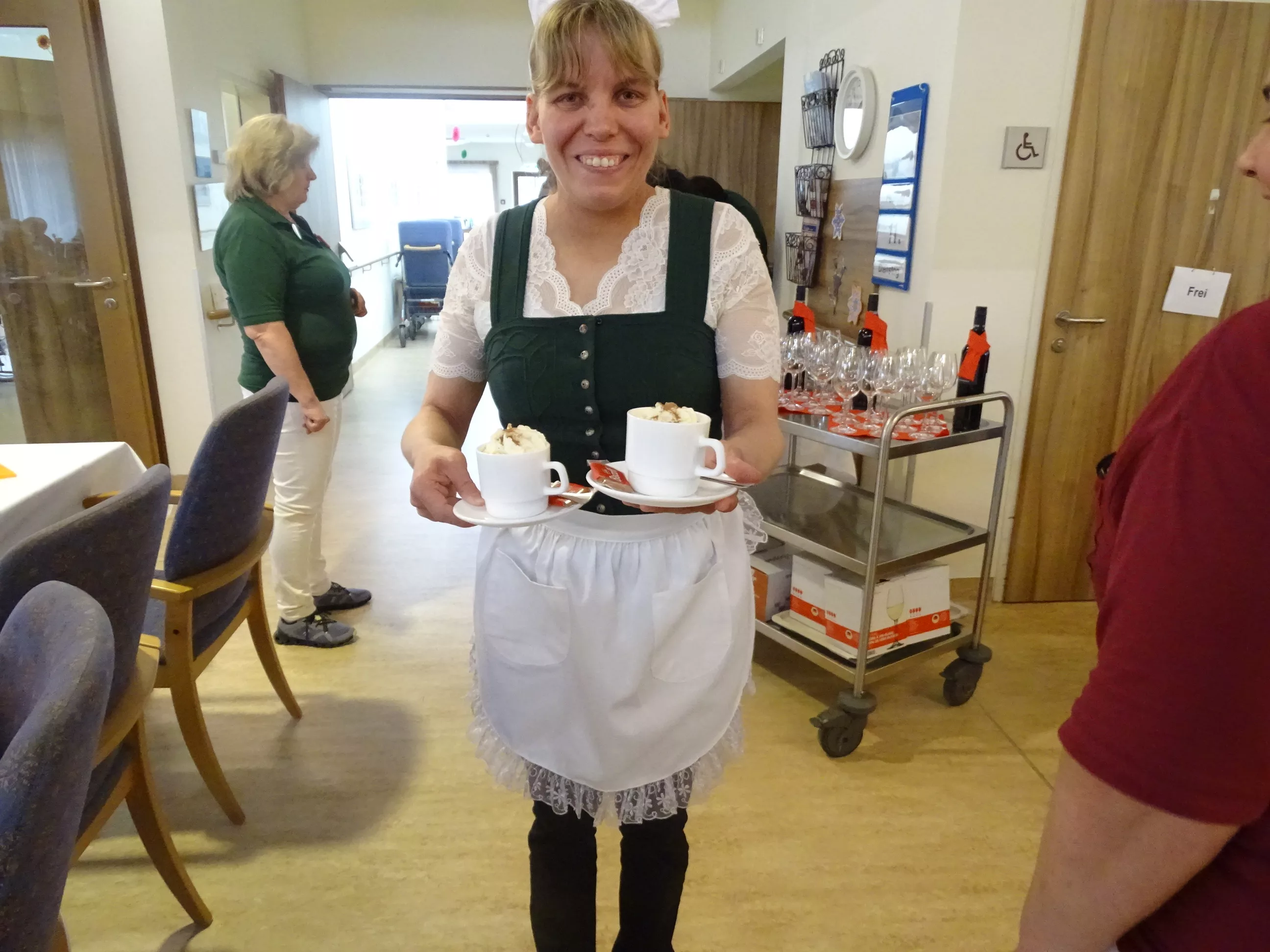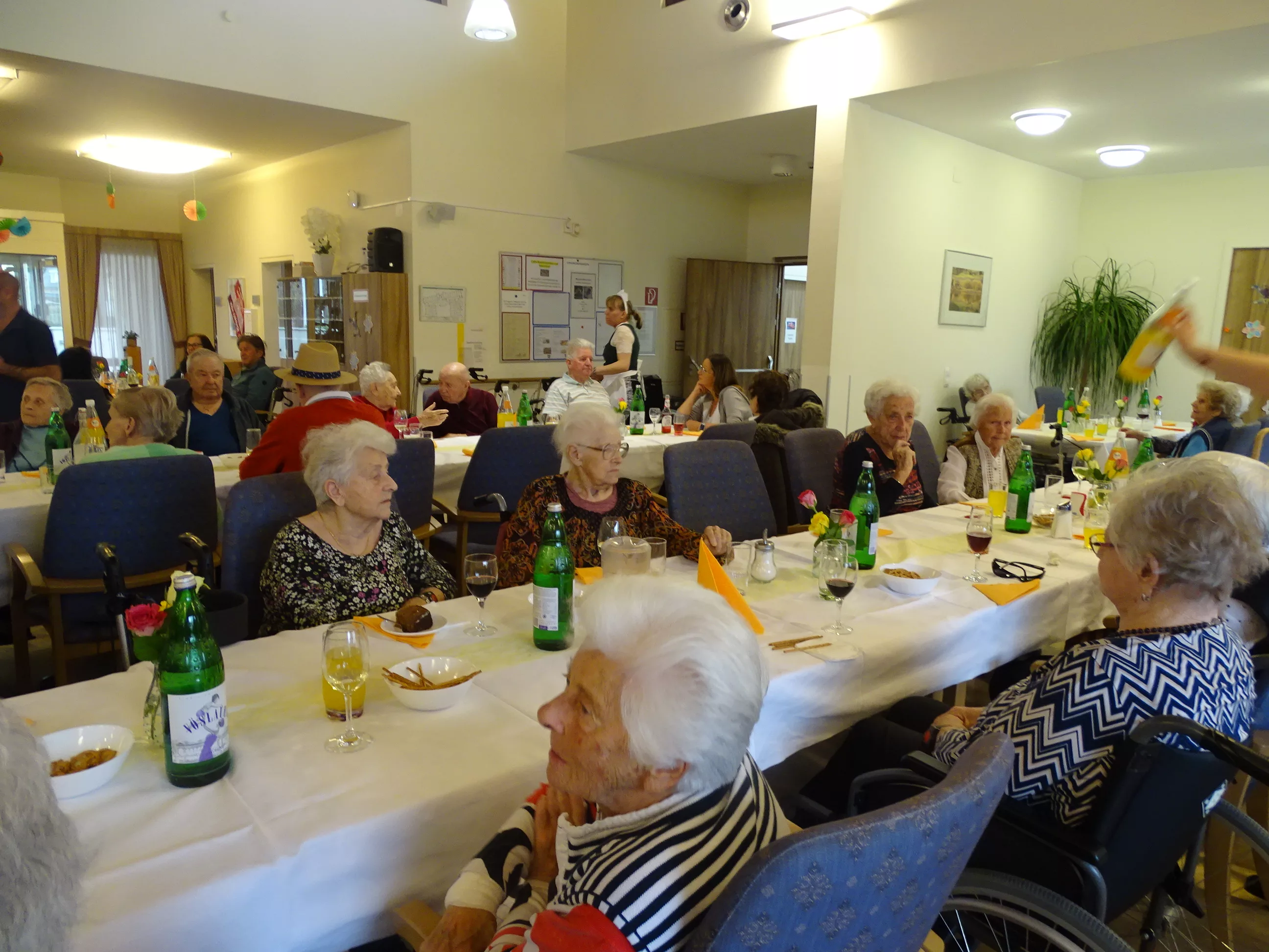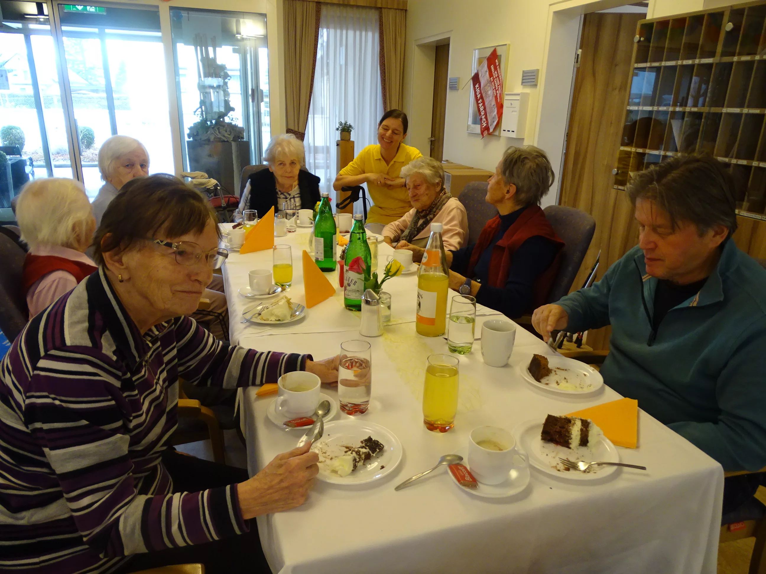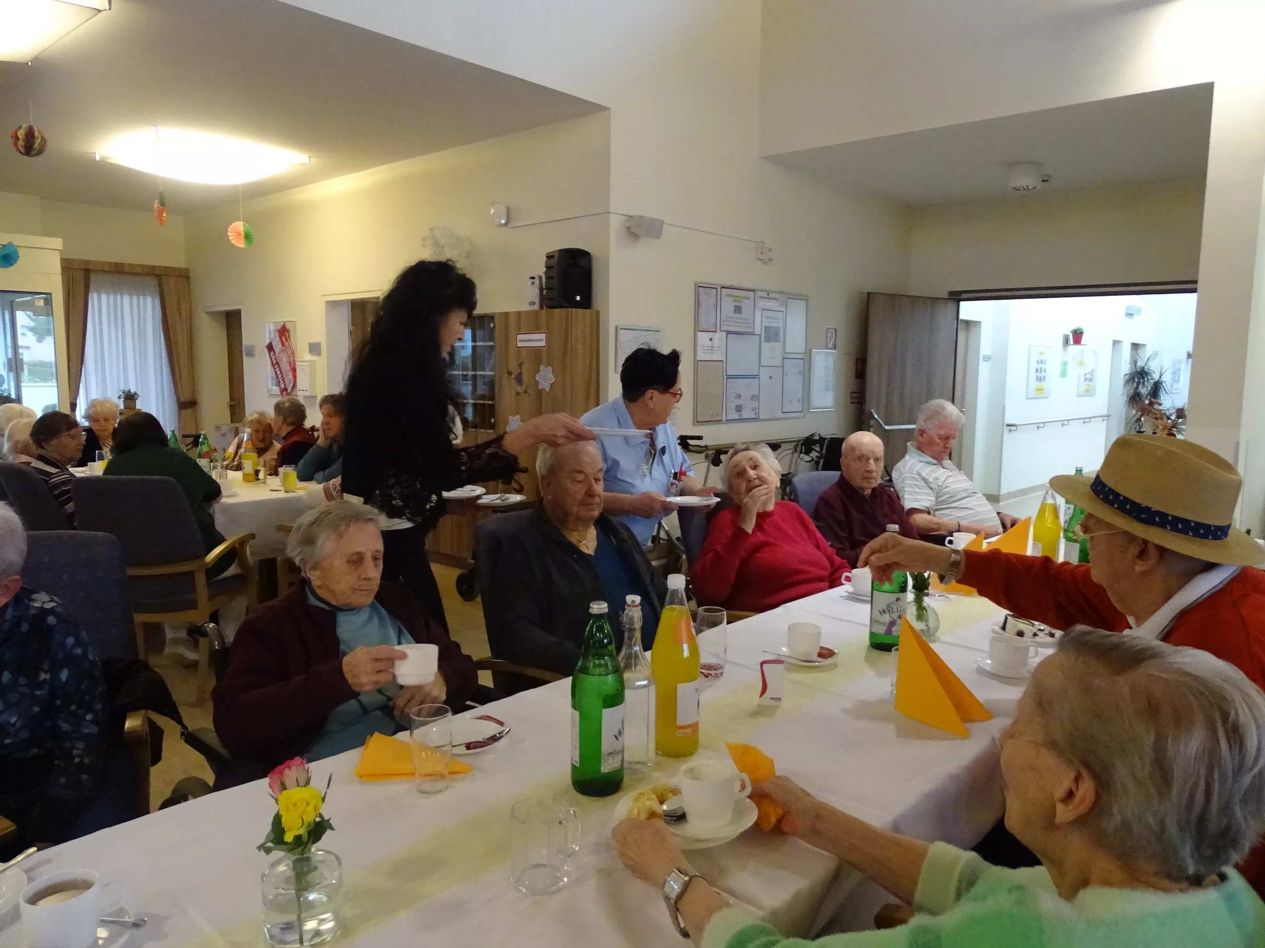 Unser „Wiener Cafehaus“ am 11.02.2025 war ein tolles Zusammenkommen von unseren BewohnerInnen. Unsere DJ Sabine brachte mit Ihrem Wurlitzer beste Stimmungunser Haus! Unsere BewohnerInnen wünschten sich die verschiedensten Lieder. Es wurde getanzt, gesungen miteinander ein Achterl Wein getrunken und geschunkelt. Der Höhepunkt war das Service von unseren „Servierpersonal“ Sabine und Sabine, die die leckeren Torten unserer Claudia im perfekten Servier „Look“ unseren BewohnerInnen brachten. Die Polonaise war ein weiterer Höhepunkt unserer kleinen aber feinen Feier!
