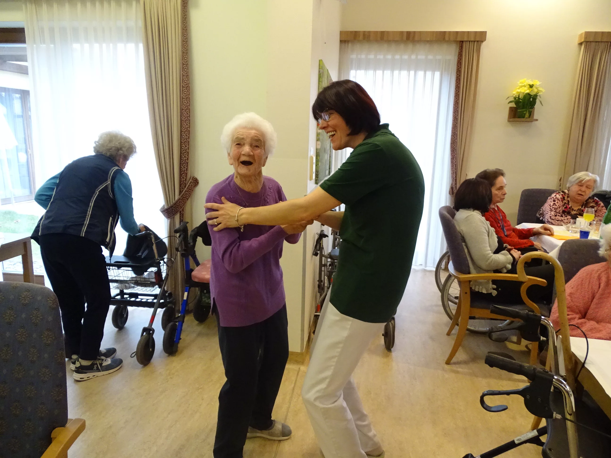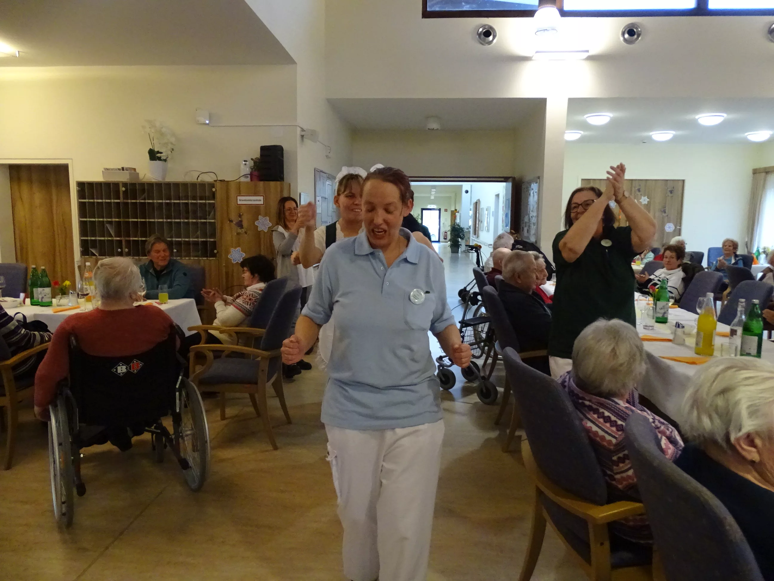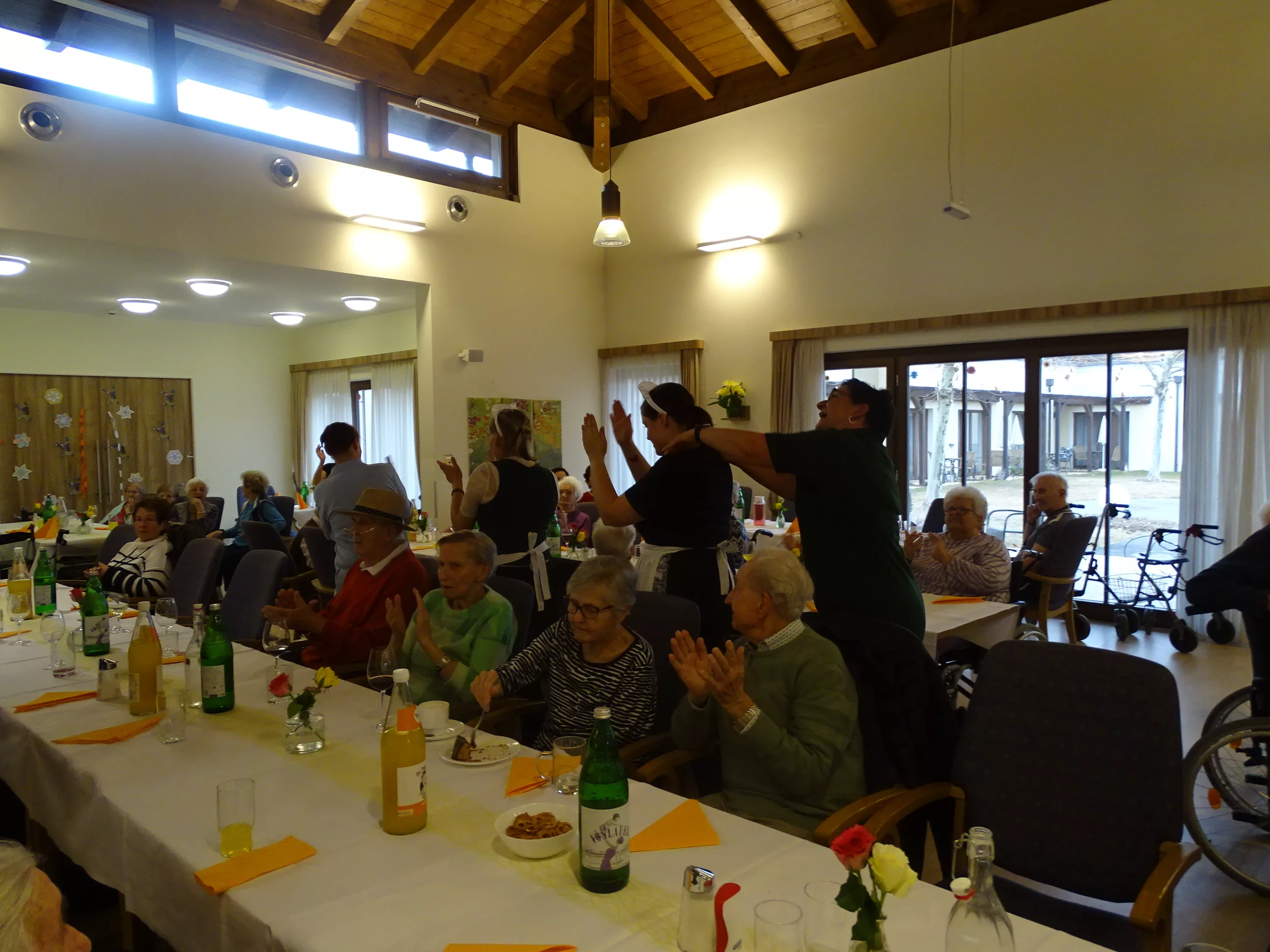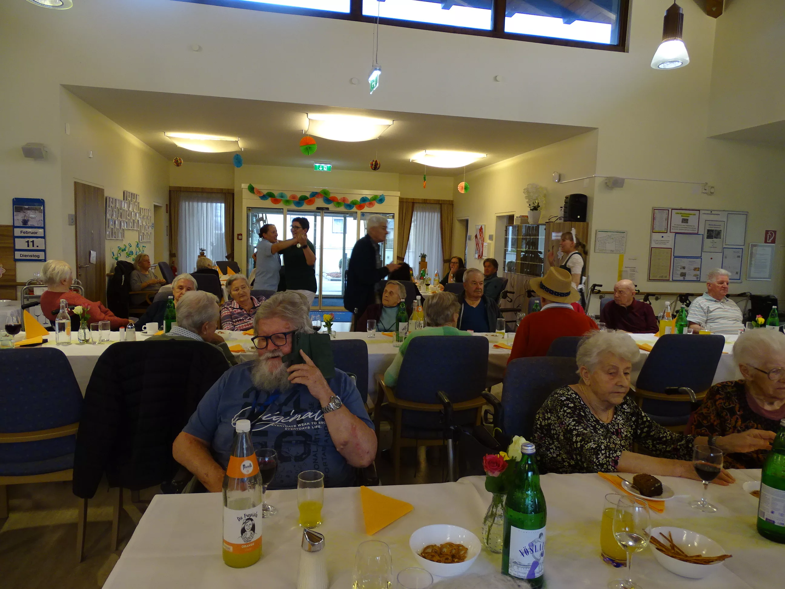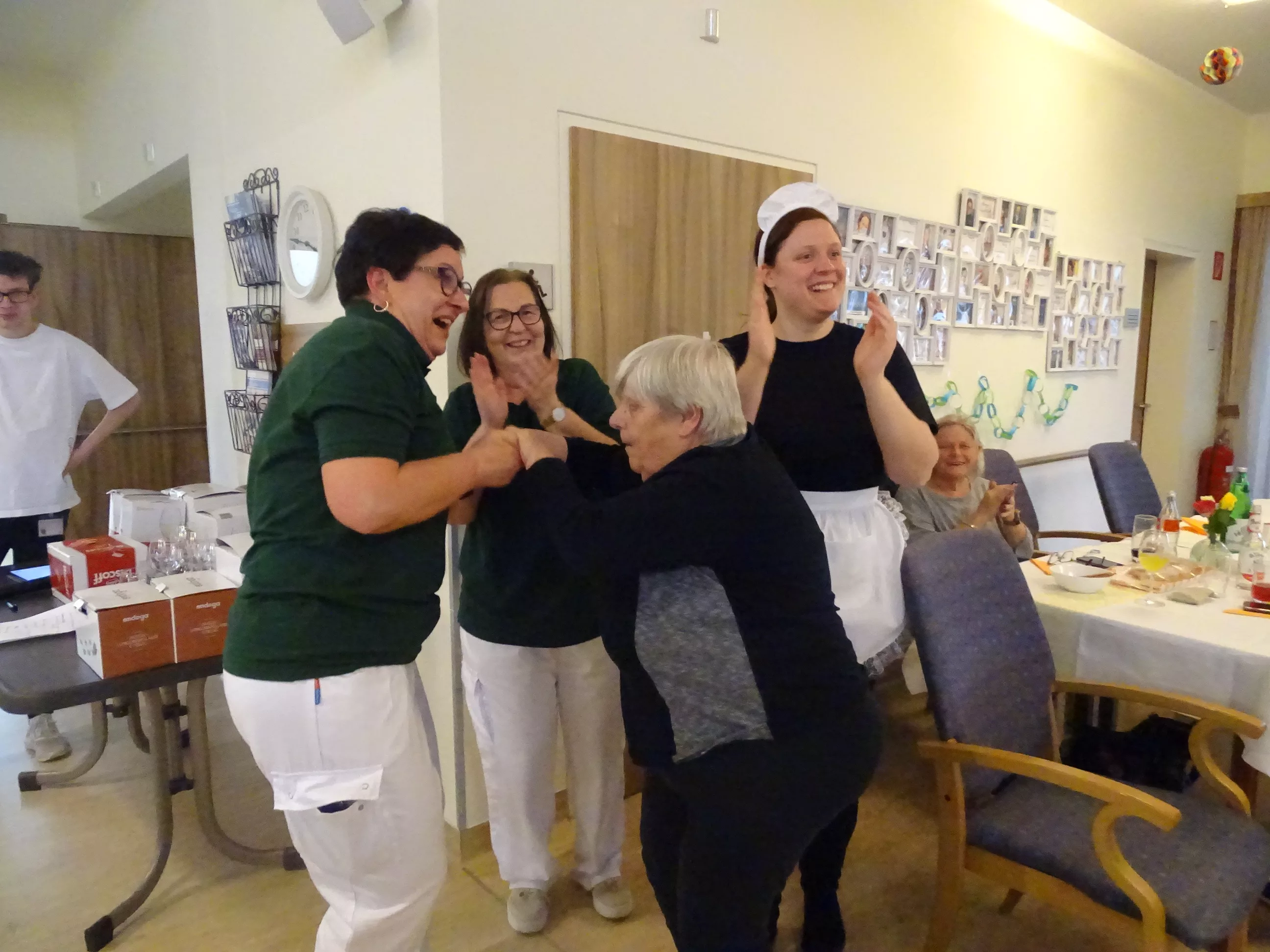 Unser „Wiener Cafehaus“ am 11.02.2025 war ein tolles Zusammenkommen von unseren BewohnerInnen. Unsere DJ Sabine brachte mit Ihrem Wurlitzer beste Stimmungunser Haus! Unsere BewohnerInnen wünschten sich die verschiedensten Lieder. Es wurde getanzt, gesungen miteinander ein Achterl Wein getrunken und geschunkelt. Der Höhepunkt war das Service von unseren „Servierpersonal“ Sabine und Sabine, die die leckeren Torten unserer Claudia im perfekten Servier „Look“ unseren BewohnerInnen brachten. Die Polonaise war ein weiterer Höhepunkt unserer kleinen aber feinen Feier!