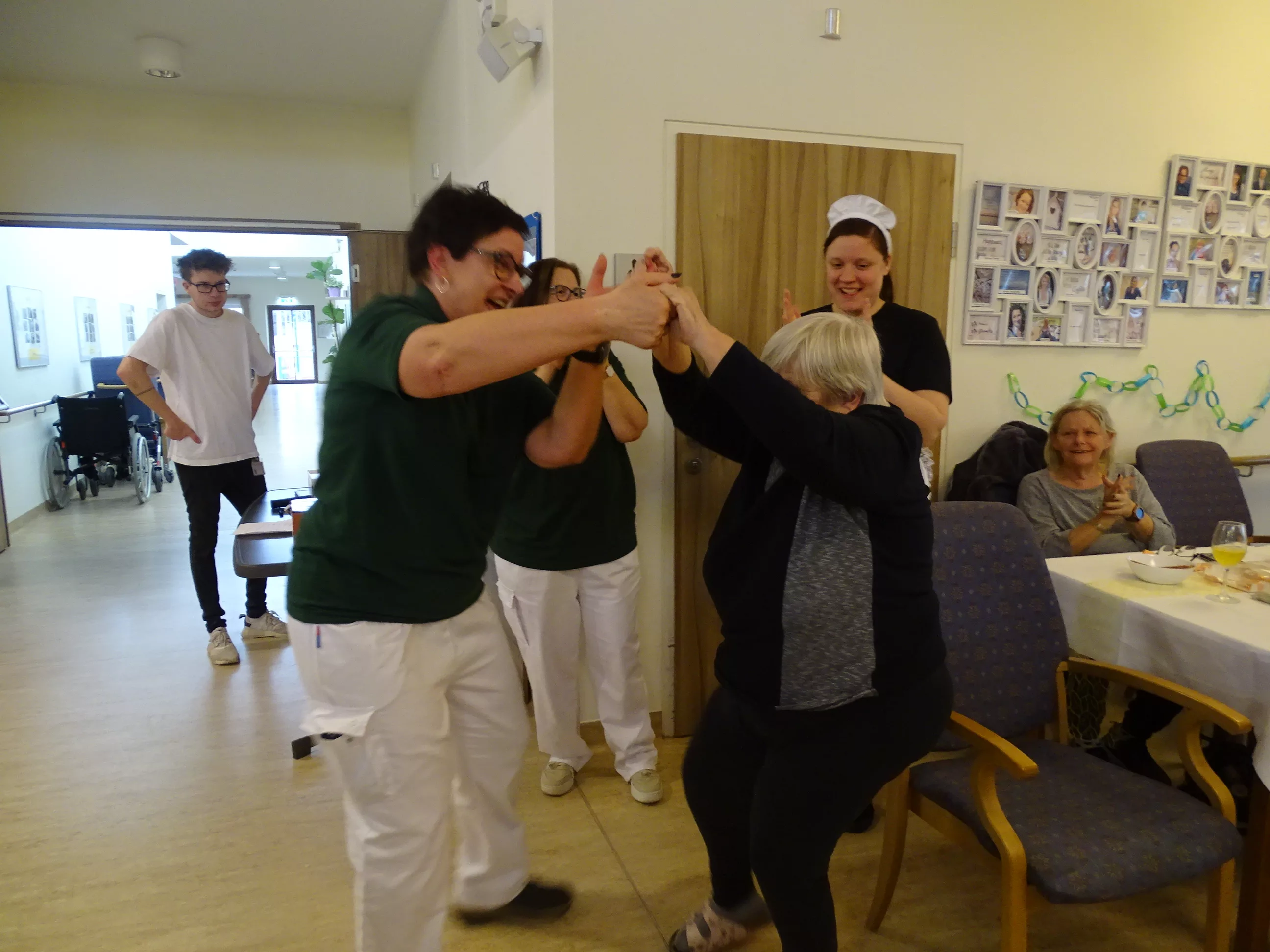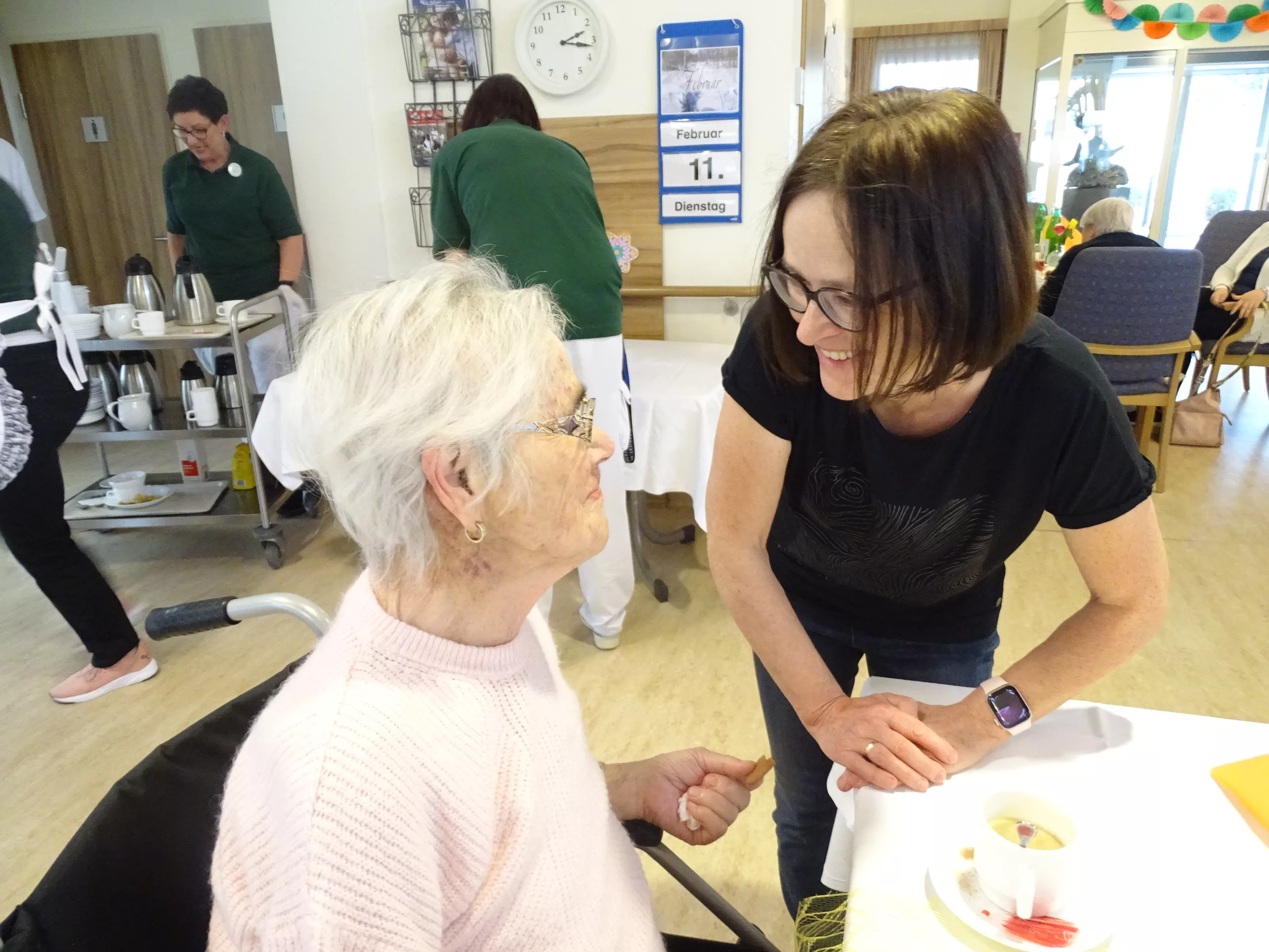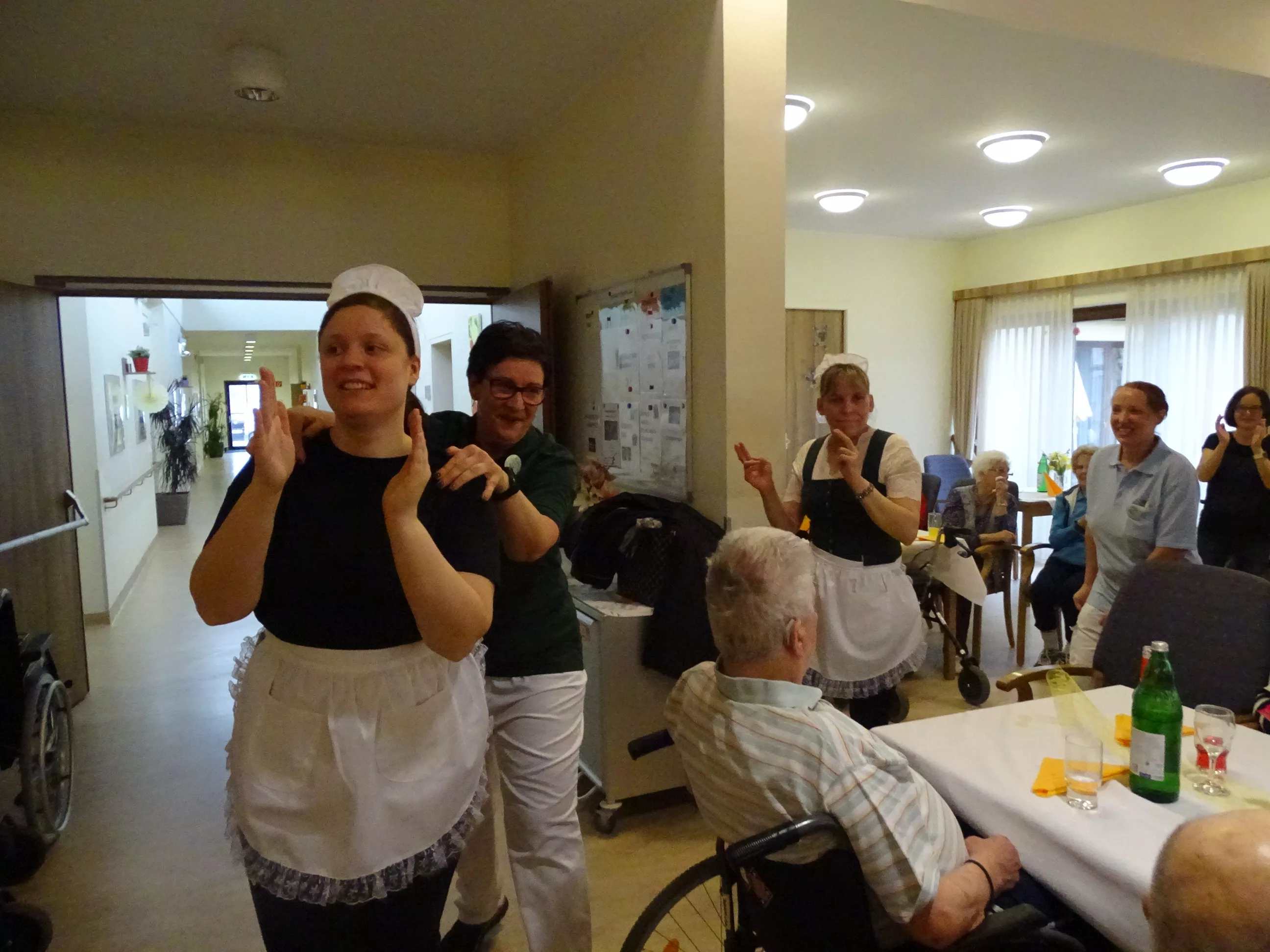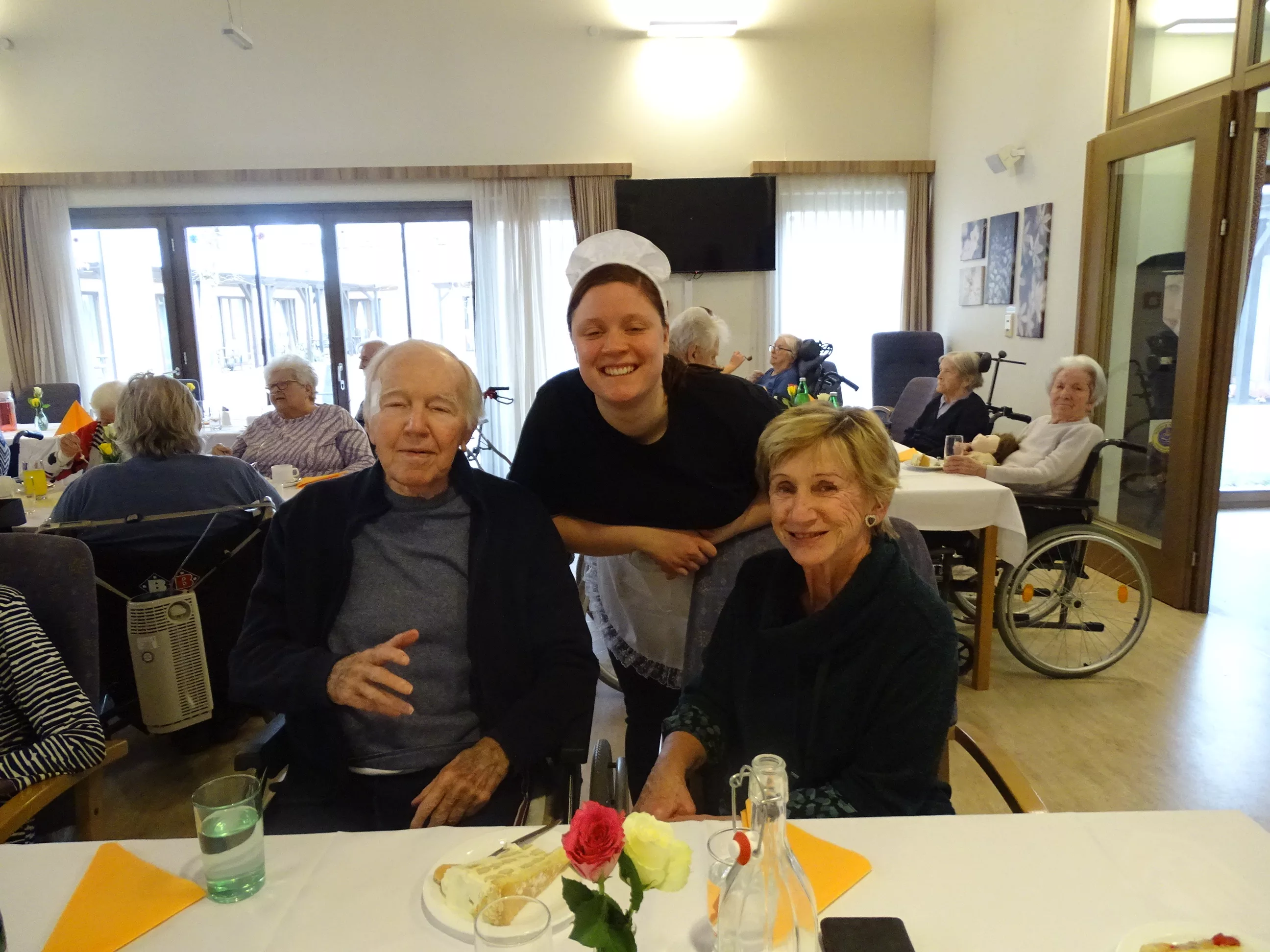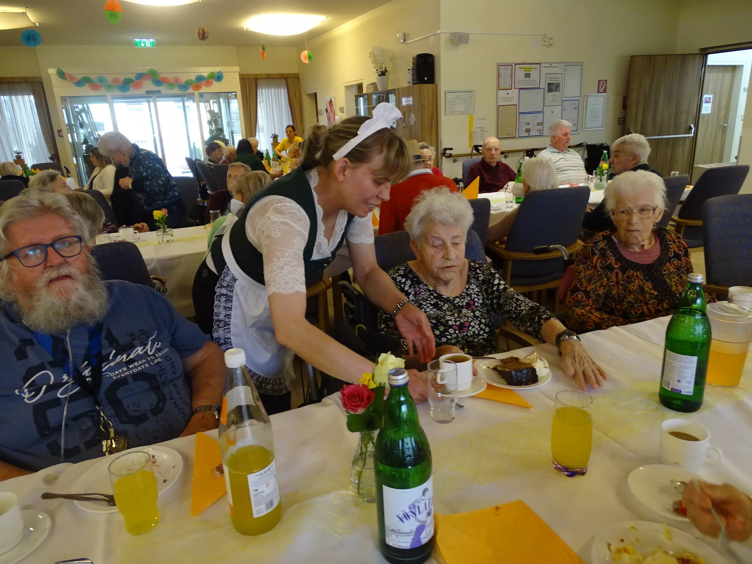 Unser „Wiener Cafehaus“ am 11.02.2025 war ein tolles Zusammenkommen von unseren BewohnerInnen. Unsere DJ Sabine brachte mit Ihrem Wurlitzer beste Stimmungunser Haus! Unsere BewohnerInnen wünschten sich die verschiedensten Lieder. Es wurde getanzt, gesungen miteinander ein Achterl Wein getrunken und geschunkelt. Der Höhepunkt war das Service von unseren „Servierpersonal“ Sabine und Sabine, die die leckeren Torten unserer Claudia im perfekten Servier „Look“ unseren BewohnerInnen brachten. Die Polonaise war ein weiterer Höhepunkt unserer kleinen aber feinen Feier!