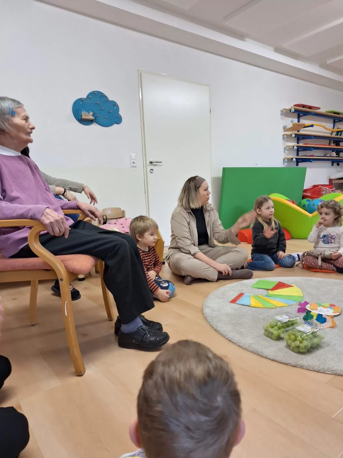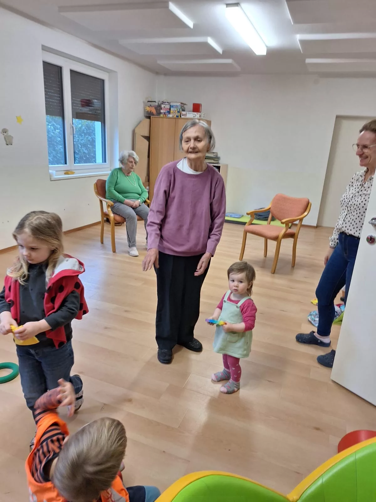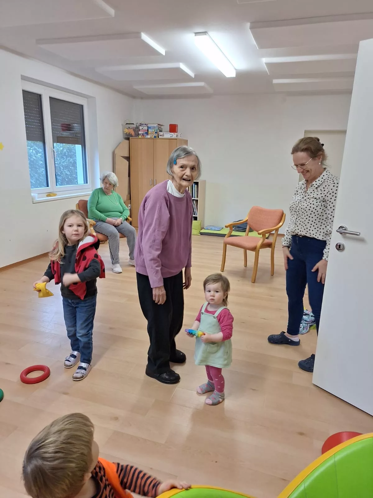 Die Kinder der Kindertagesstätte Abracadabra und die Bewohner und Bewohnerinnen des „Wie daham…“ Generationenparks Welzenegg verbrachten heute einen lustigen Vormittag in der Kita.