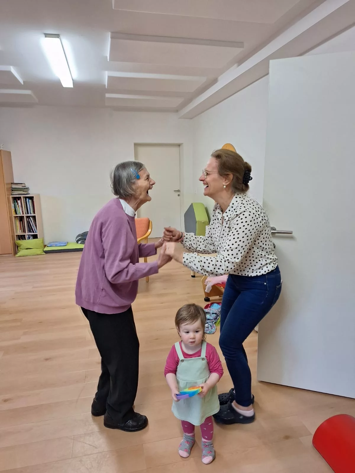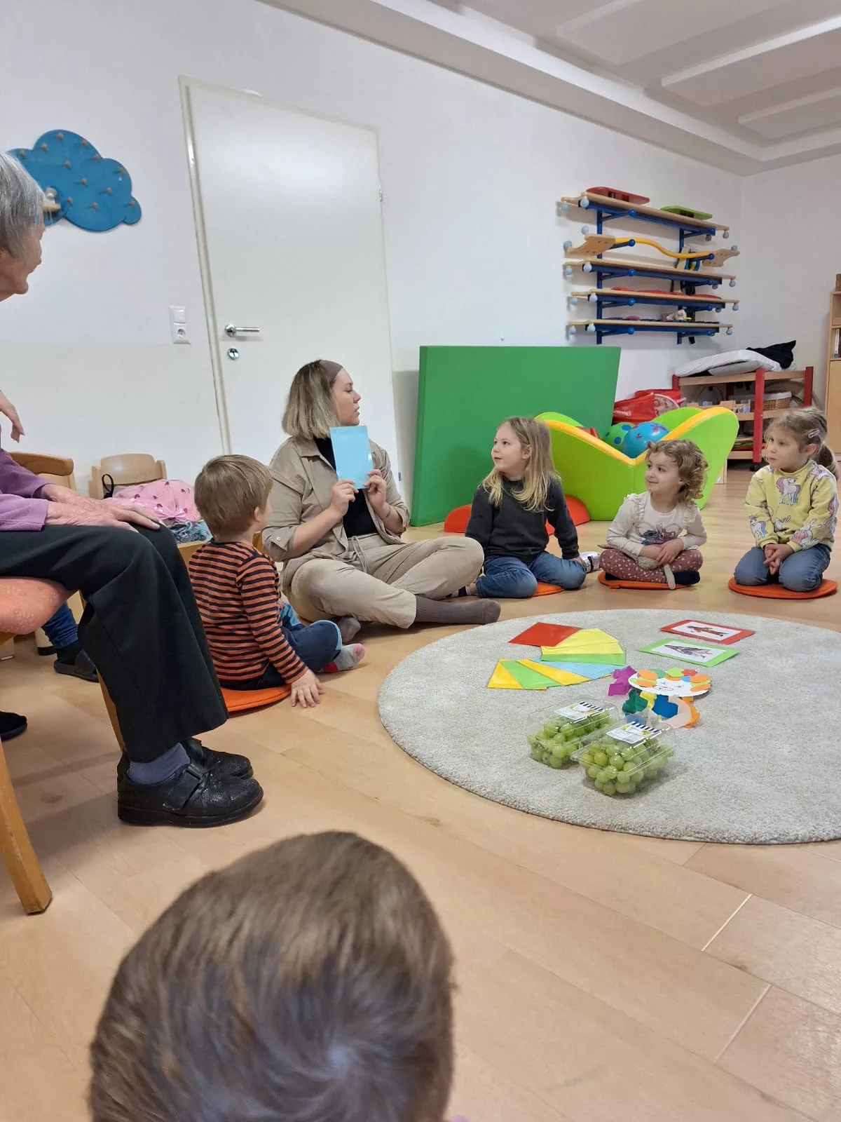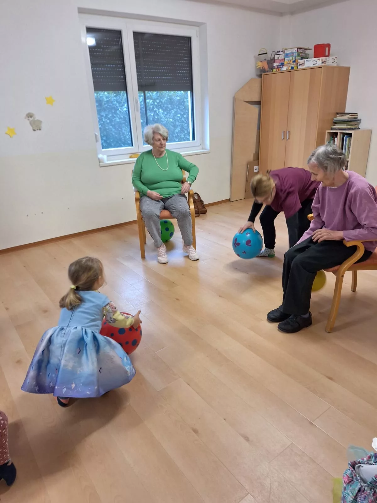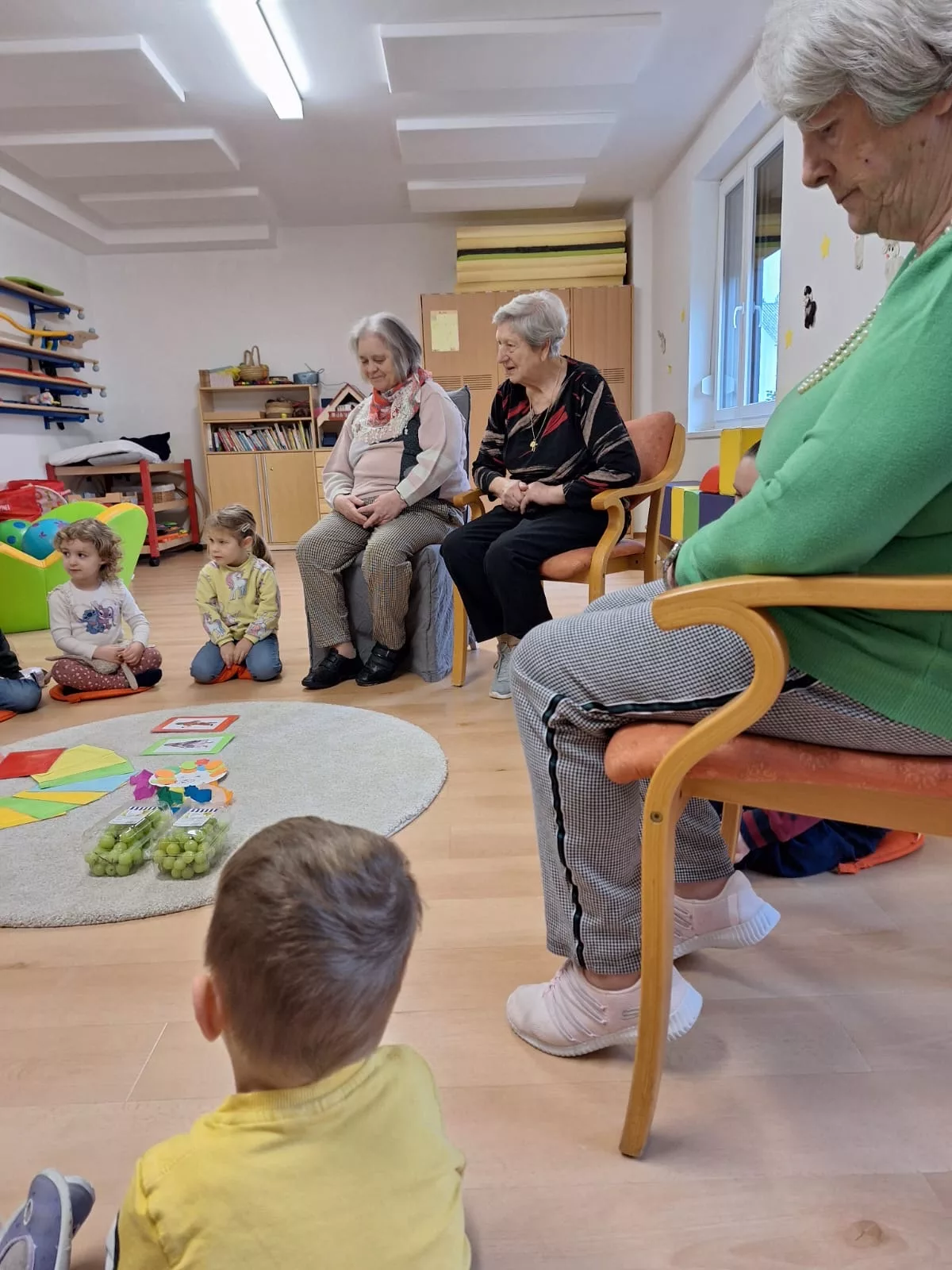 Die Kinder der Kindertagesstätte Abracadabra und die Bewohner und Bewohnerinnen des „Wie daham…“ Generationenparks Welzenegg verbrachten heute einen lustigen Vormittag in der Kita.