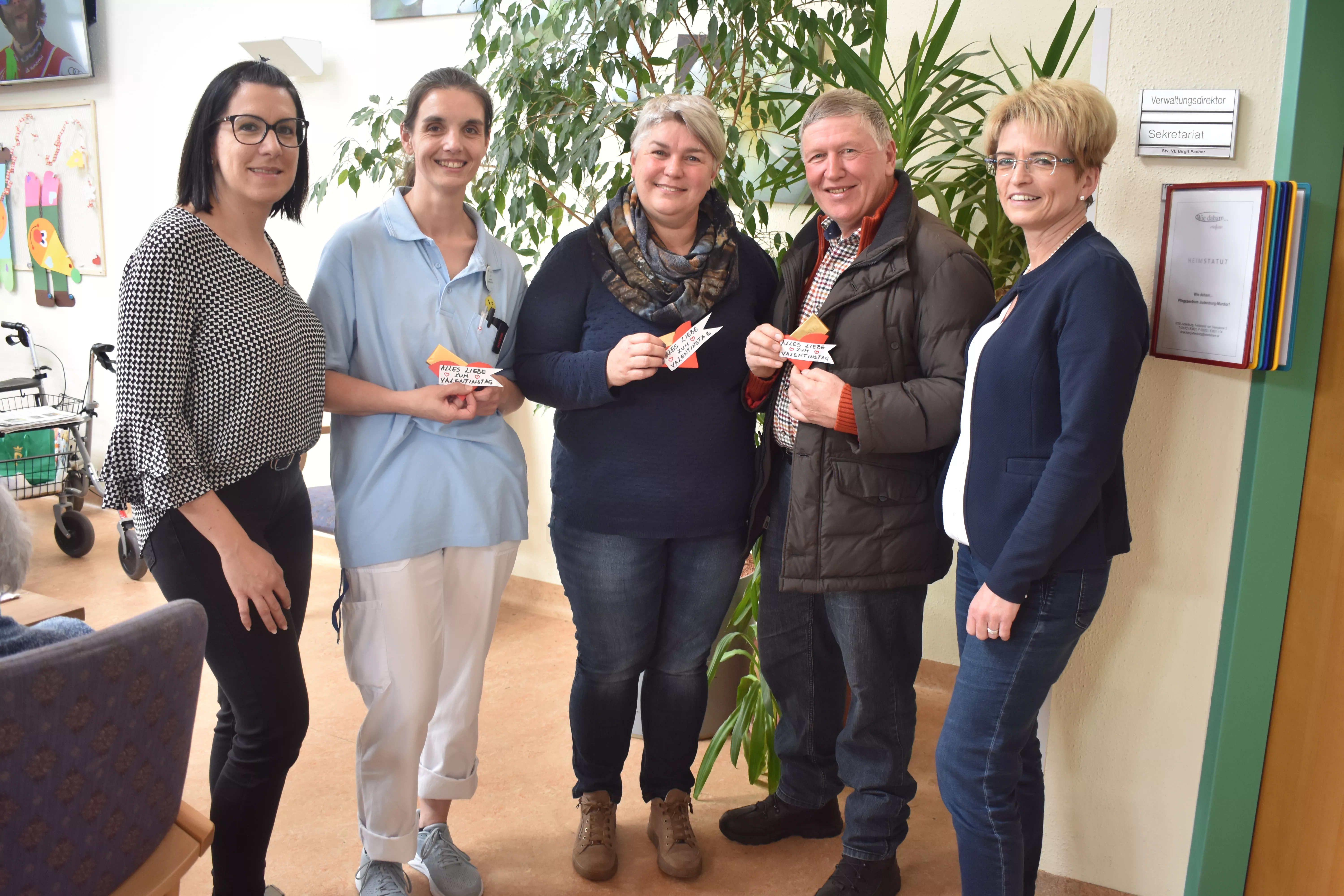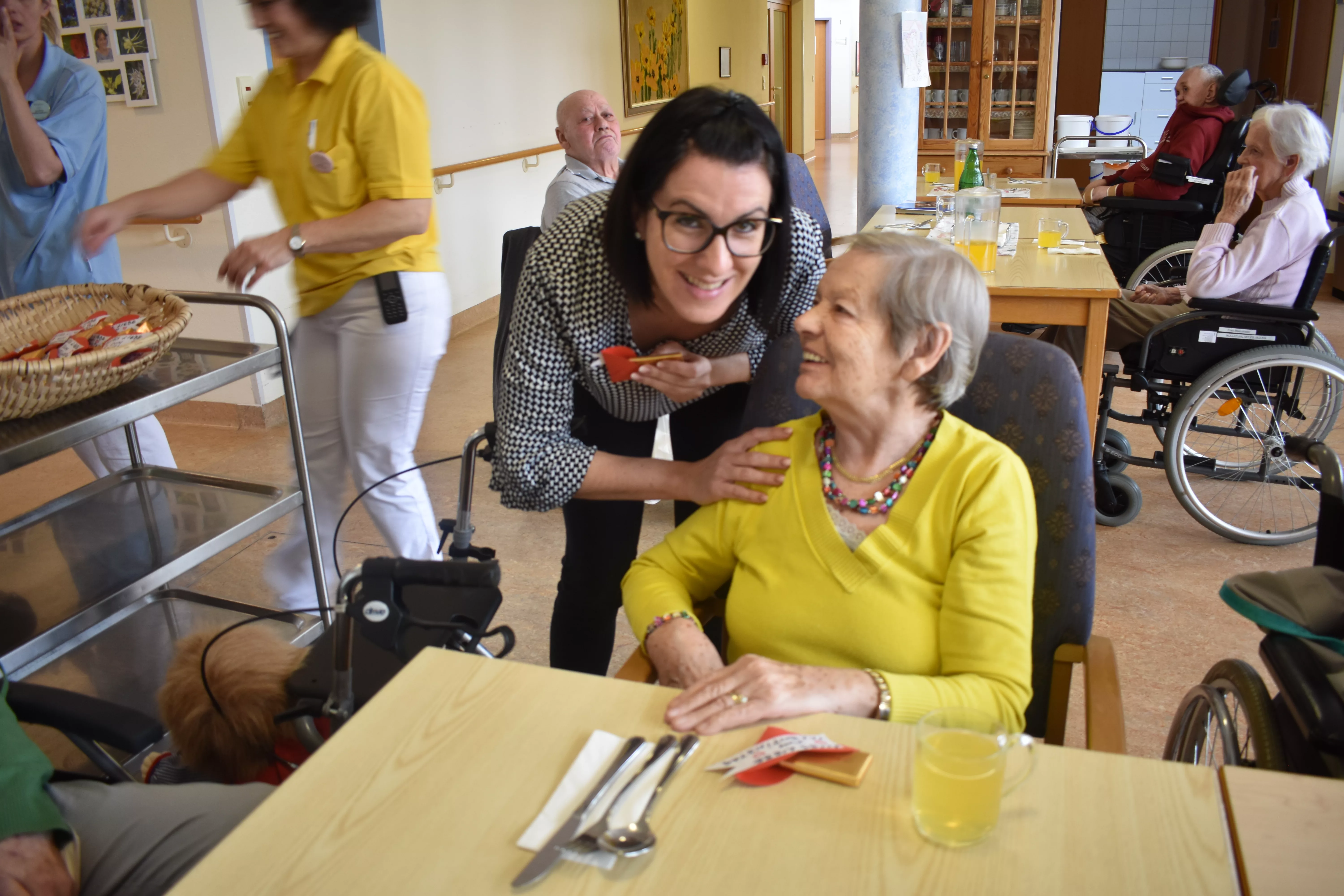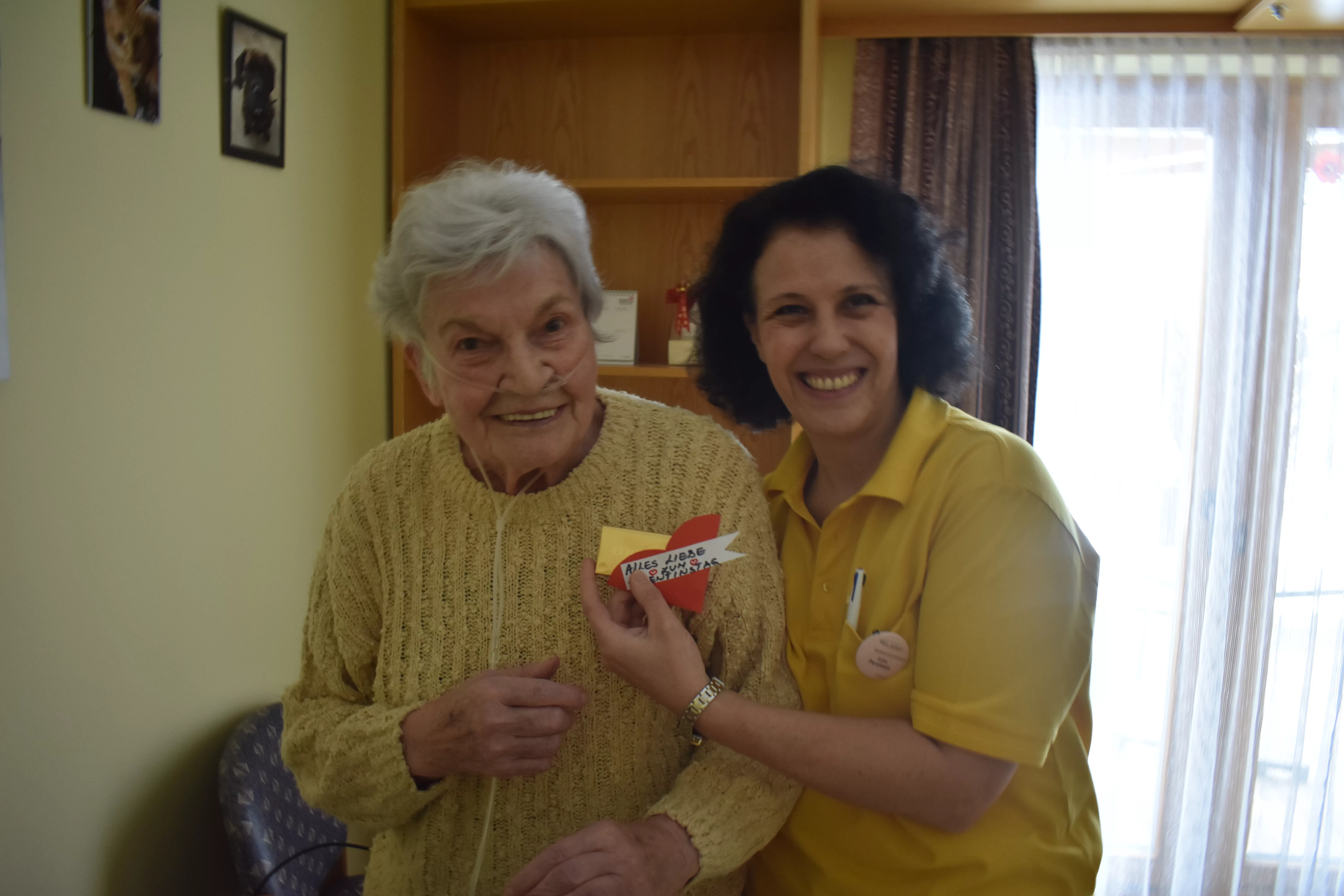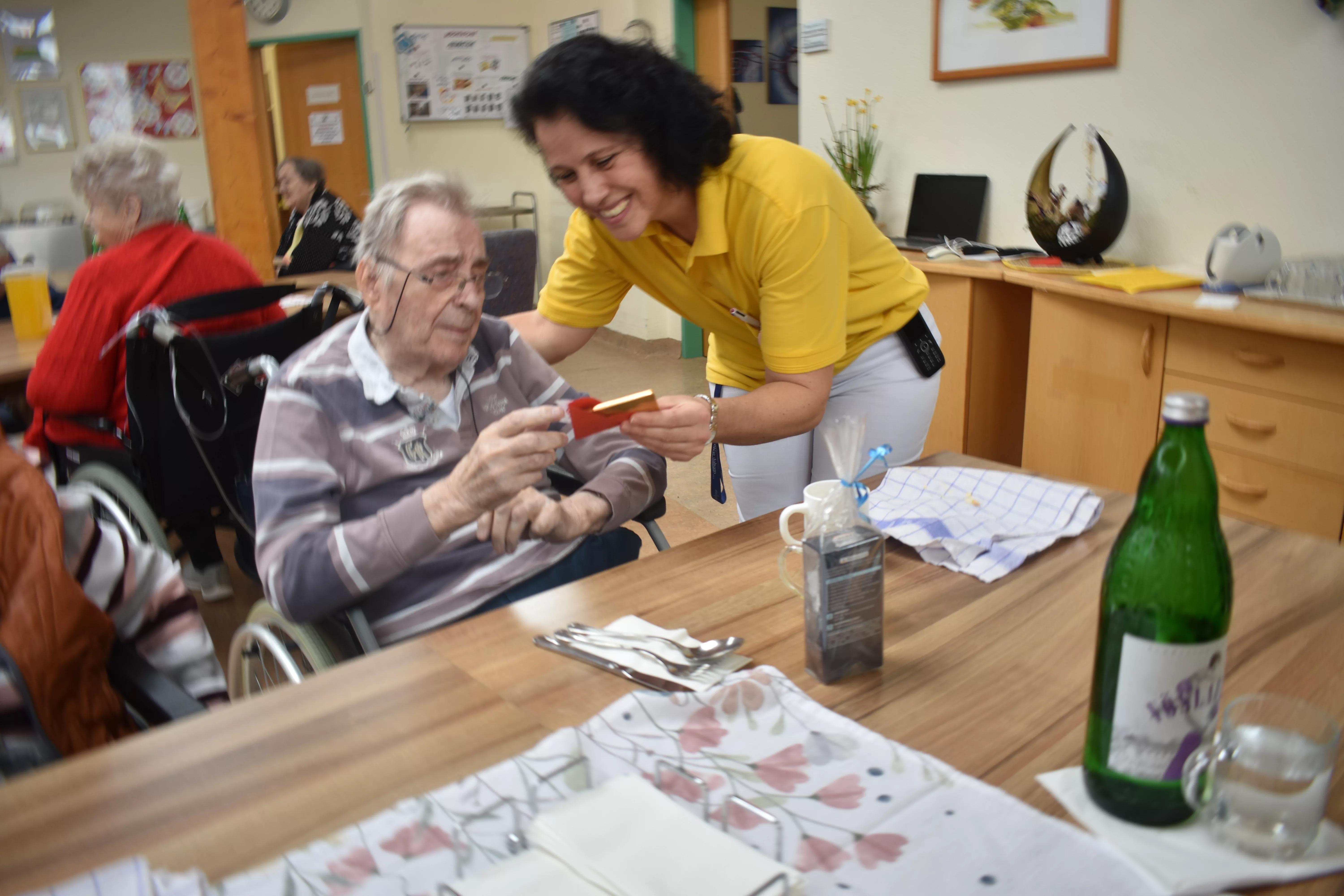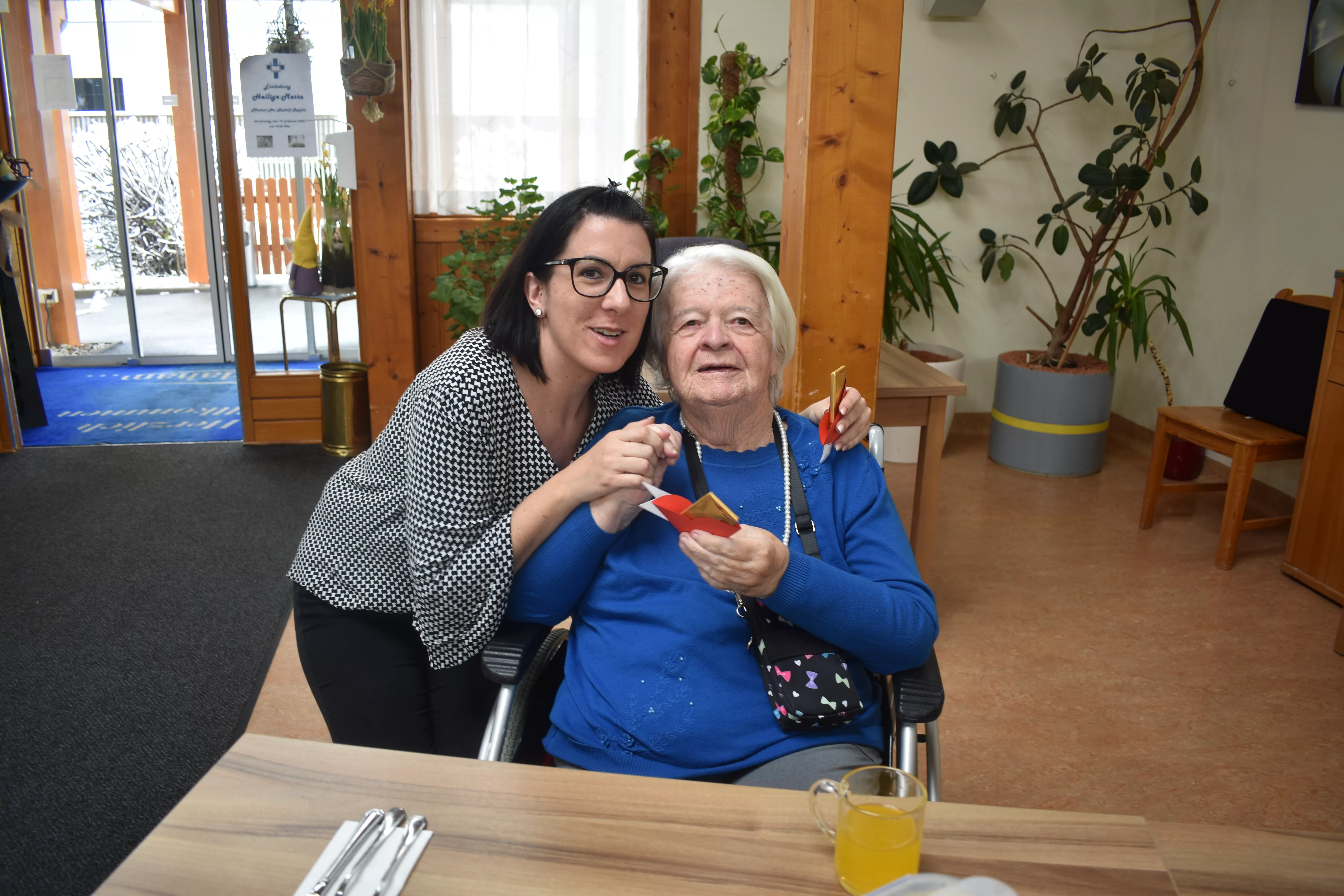 Mit einem „schokoladigen Herzerl-Gruß“ wurden die BewohnerInnen sowie das ganze Team des Wie daham… Pflegezentrums Murdorf am 14. Februar zum Valentinstag überrascht. Ein breites Strahlen konnte man in den einzelnen Gesichtern sehen und alle nahmen die herzliche Aufmerksamkeit entgegen. Eine großen Portion Dankbarkeit brachte die Freude der BewohnerInnen und MitarbeiterInnen zum Ausdruck. Diese liebe Geste zeigt den Zusammenhalt und die Wertschätzung innerhalb des Hauses.