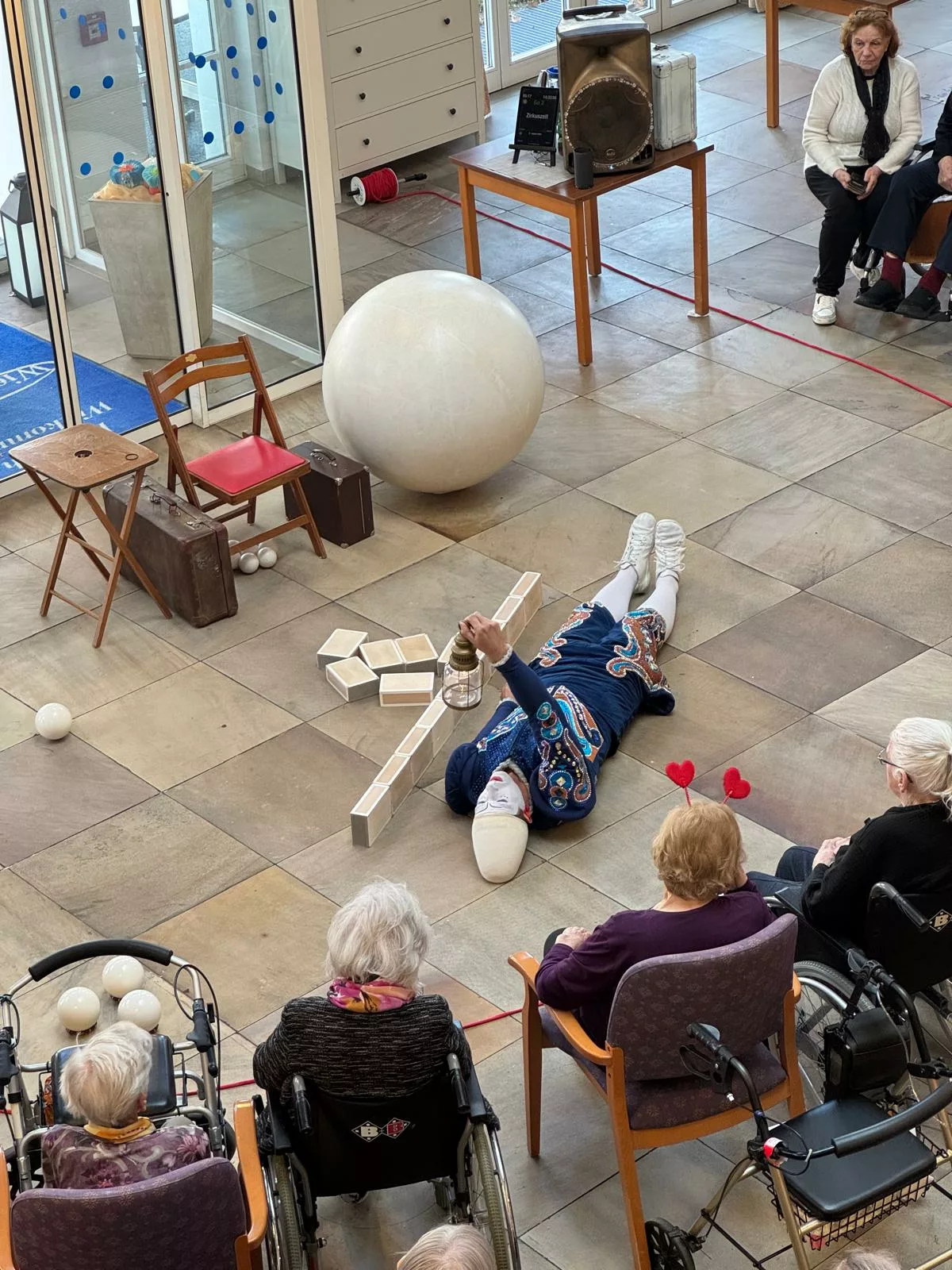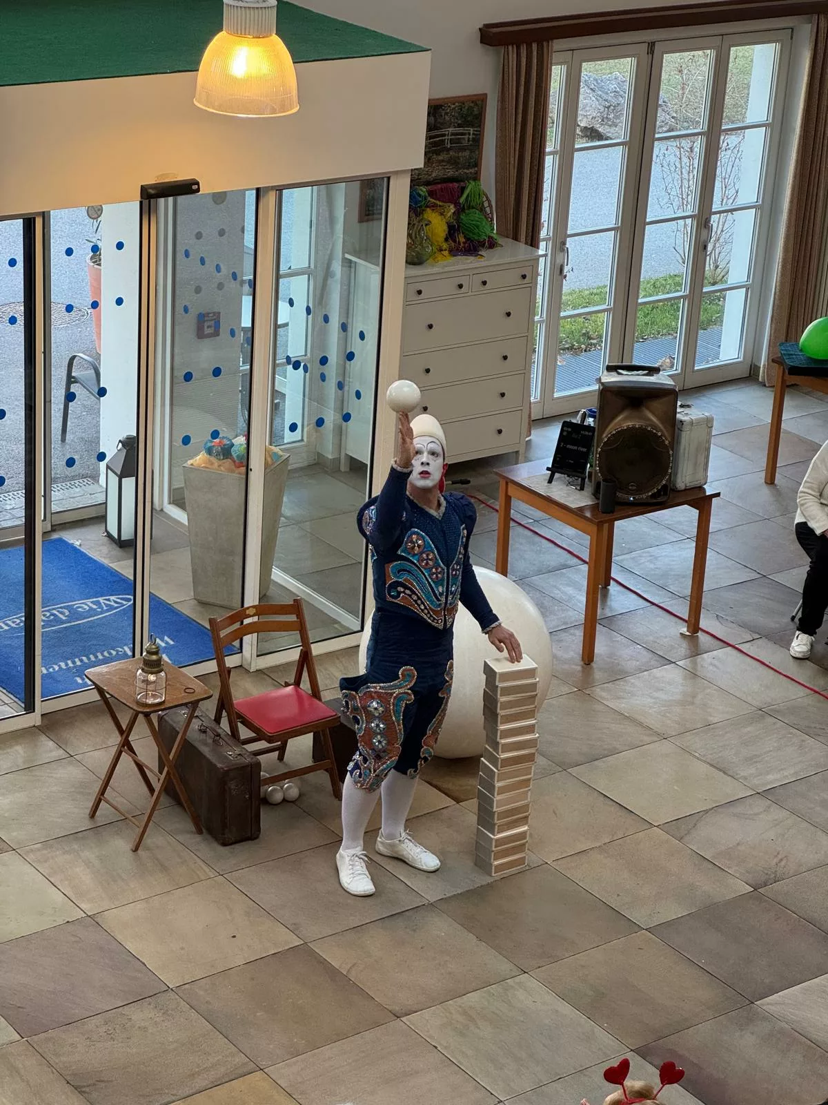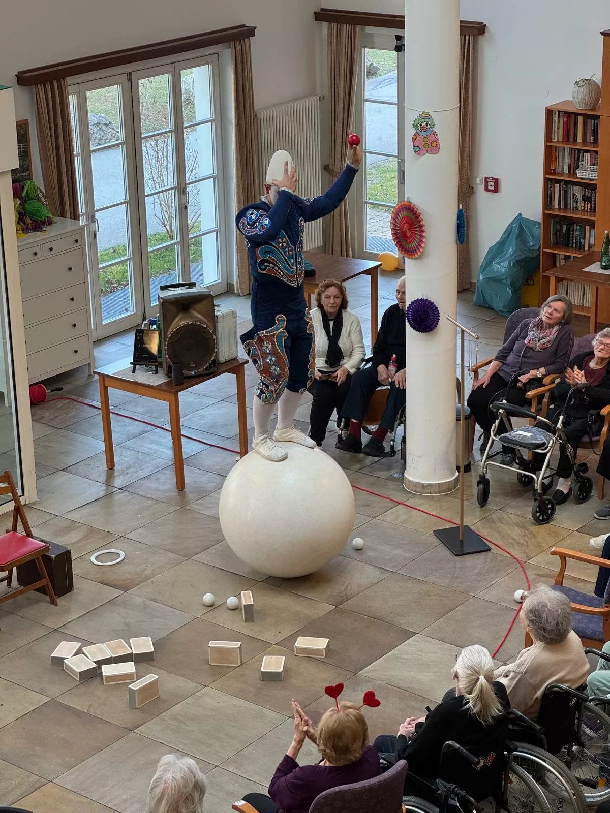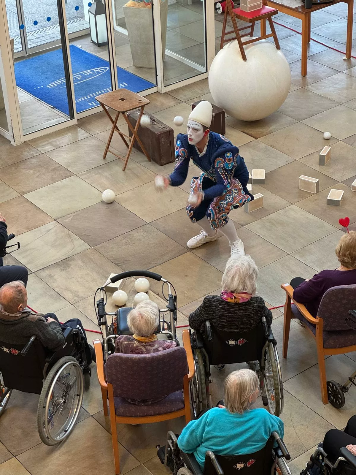 Um den Bewohnern und Bewohnerinnen das Handwerk des Weißclowns näher zu bringen gab es im Anschluss noch die Möglichkeit sich mit dem Künstler auszutauschen und Fragen zu stellen.