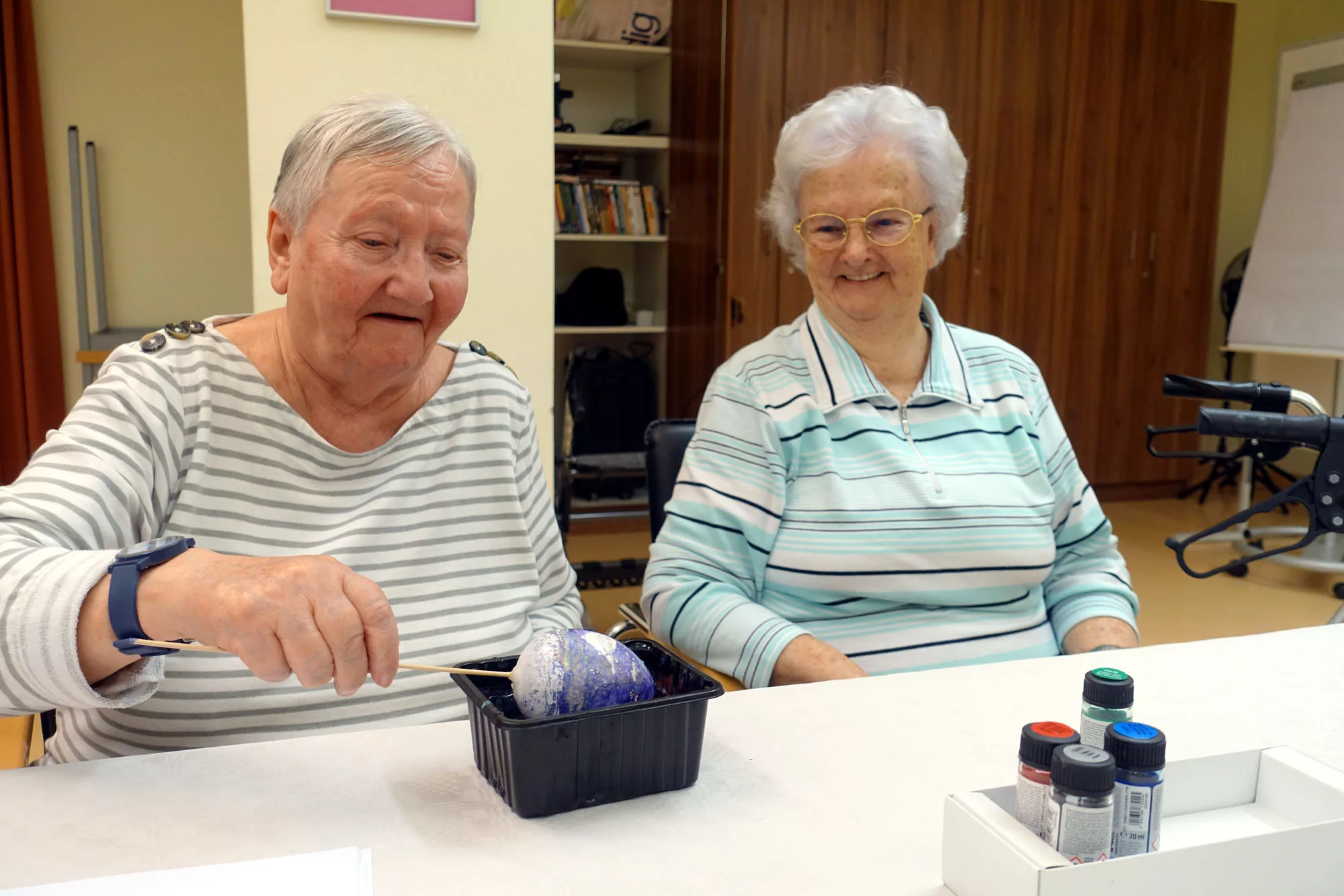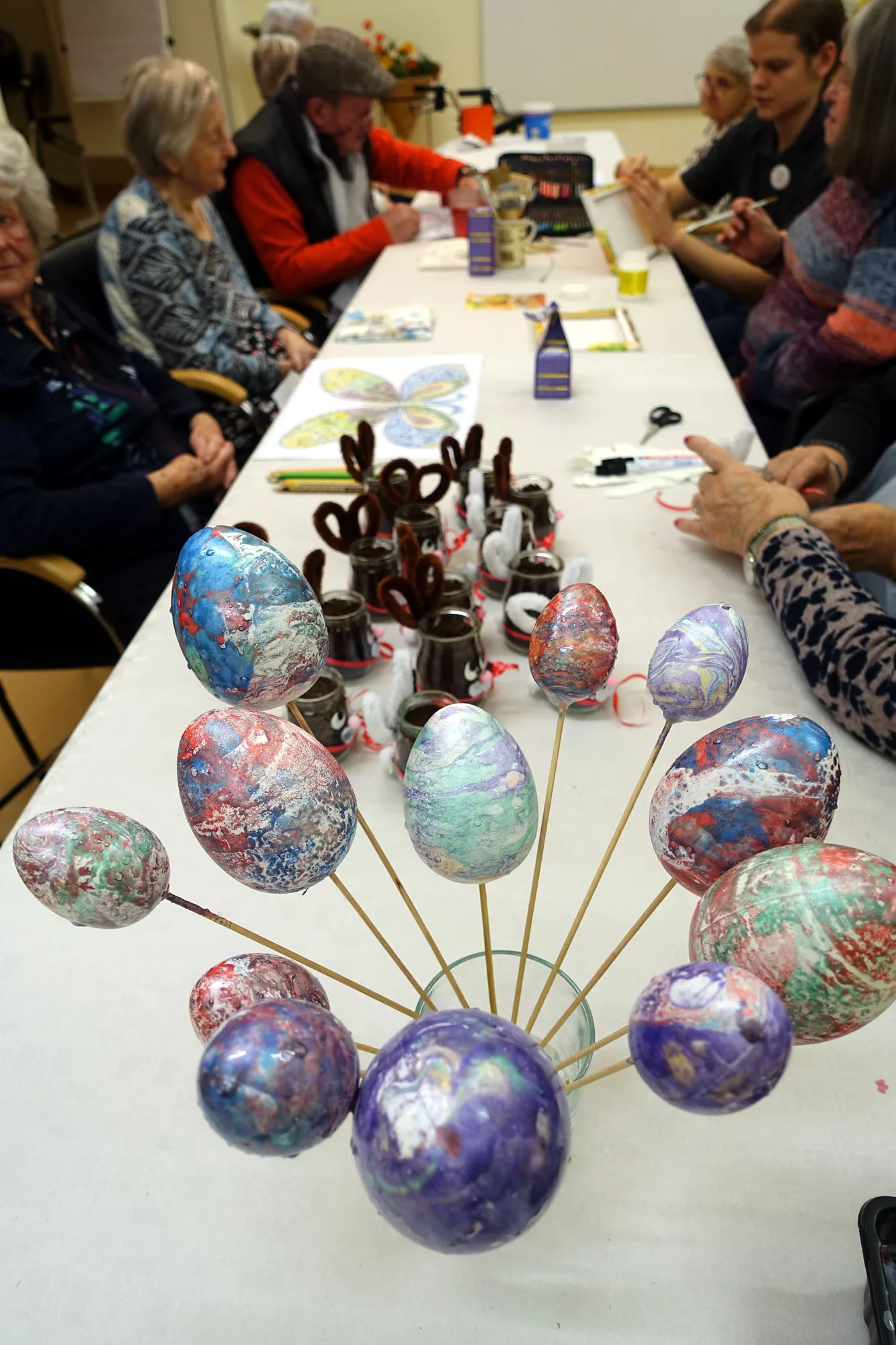 Basteln für den Ostermarkt Auch heuer soll das Angebot für den Ostermarkt breit gefächert sein. Die Senioren basteln bereits seit Tagen mit Unterstützung des Animationsteams an den kleinen Kunsthandwerken, die am 3. April am hauseigenen Ostermarkt angeboten werden.