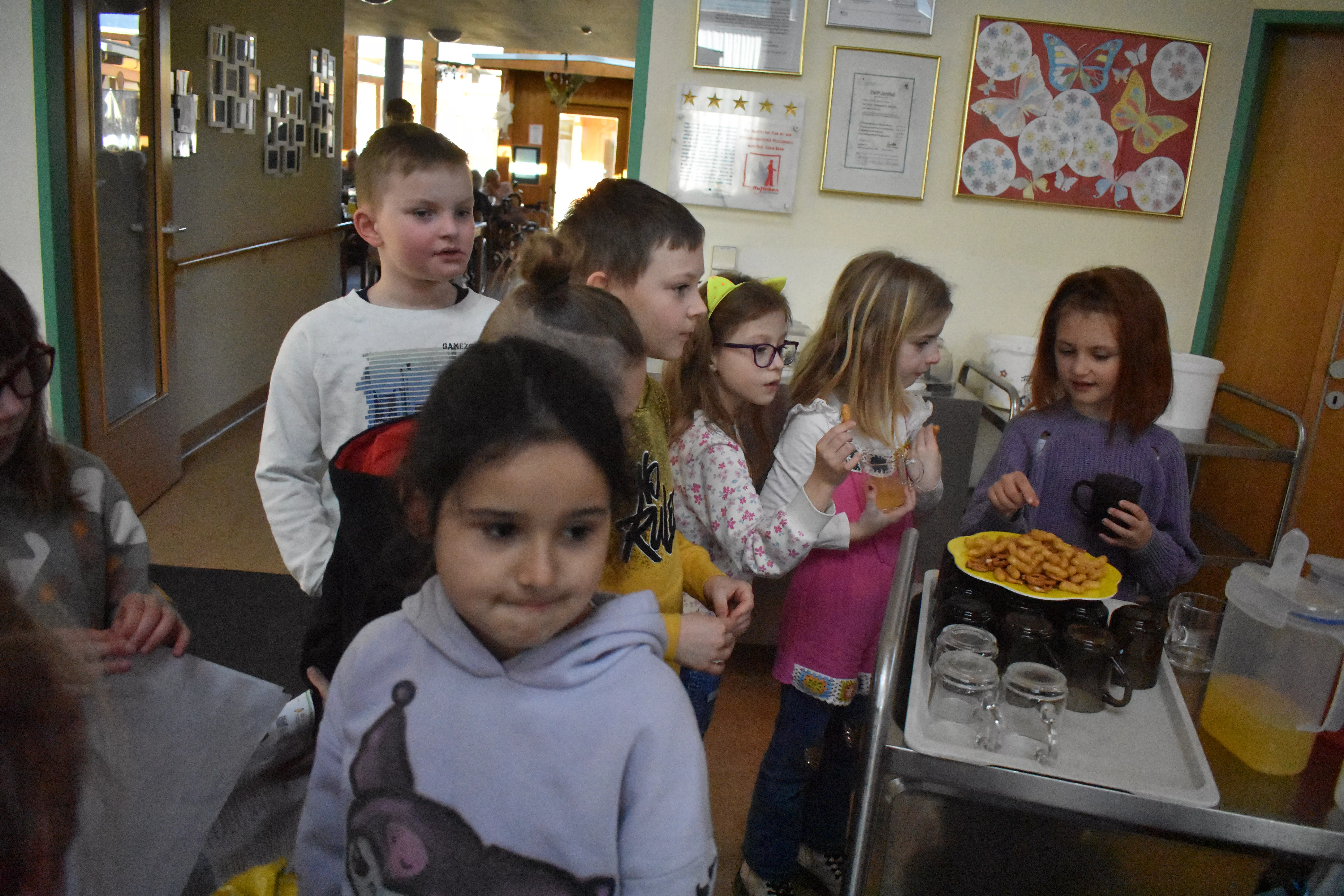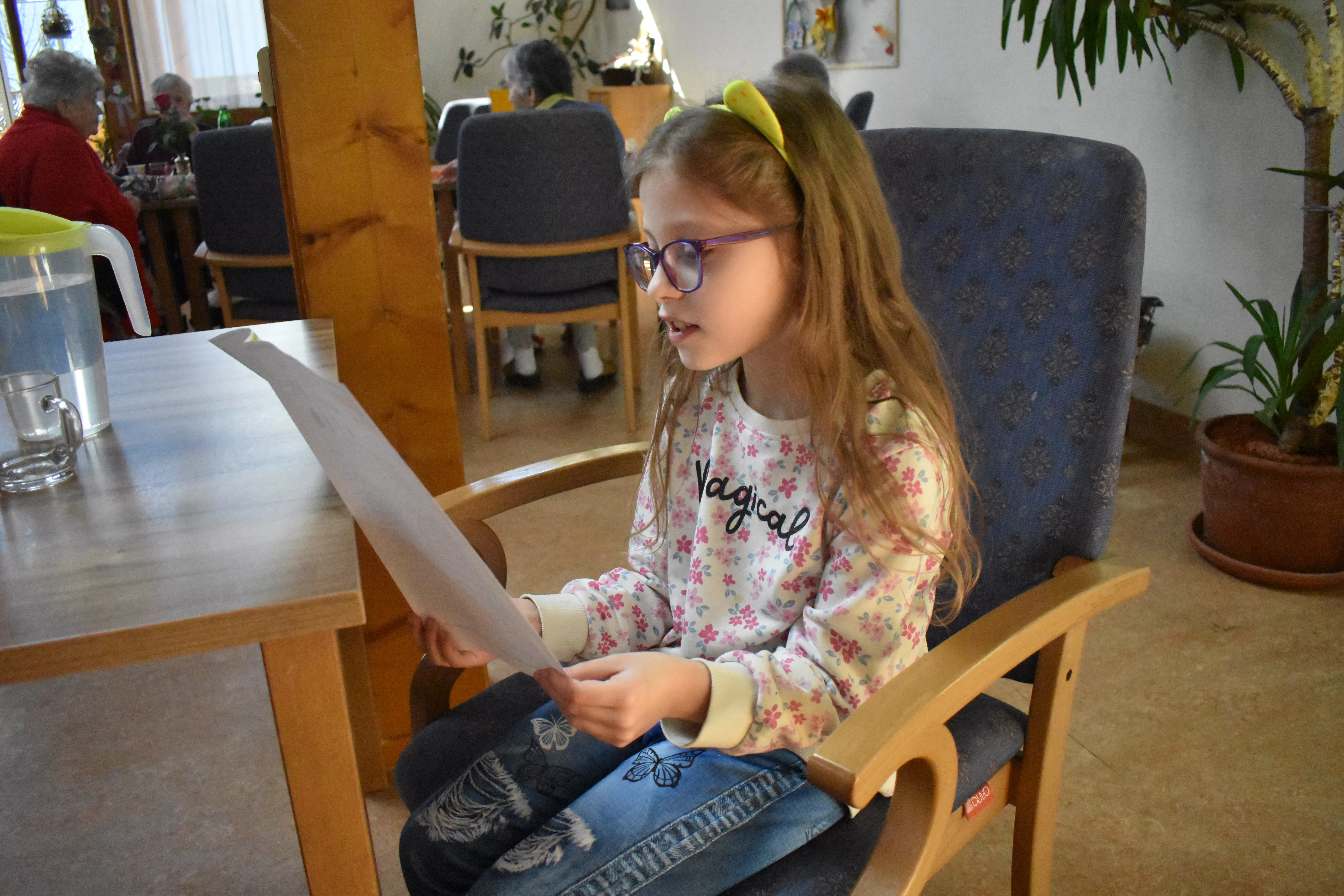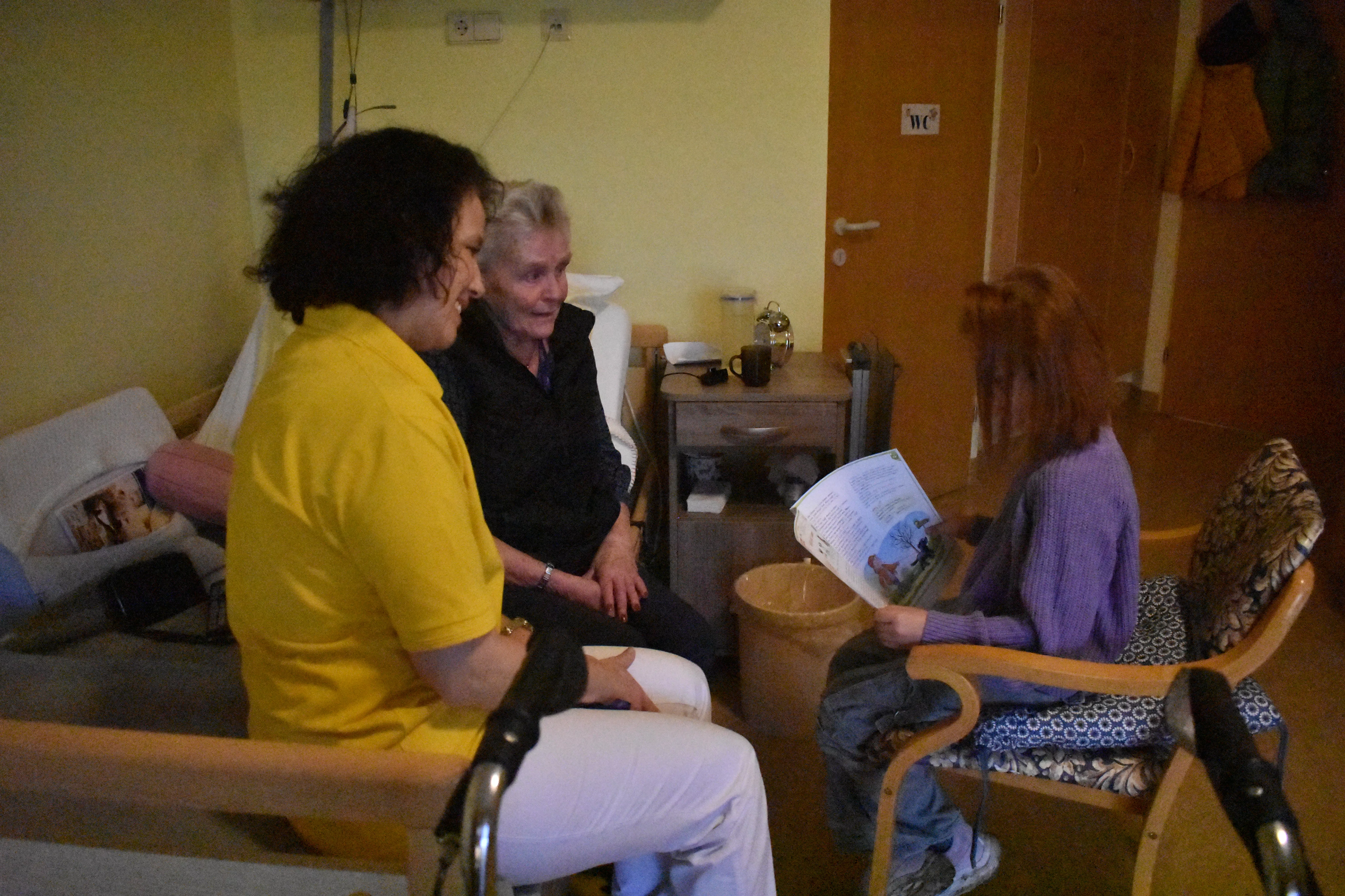 Nach der Begrüßung wurden die SchülerInnen im ganzen Haus aufgeteilt. Sie wurden von den BewohnerInnen schon sehnsüchtig erwartet. Viele davon hatten schon die vorherigen Lesungen genossen. Am Ende applaudierten und bedankten sie sich sehr für diese liebe Geste. Mit Fruchtsäften, Salzgebäck und Süßigkeiten wurden die SchülerInnen belohnt.